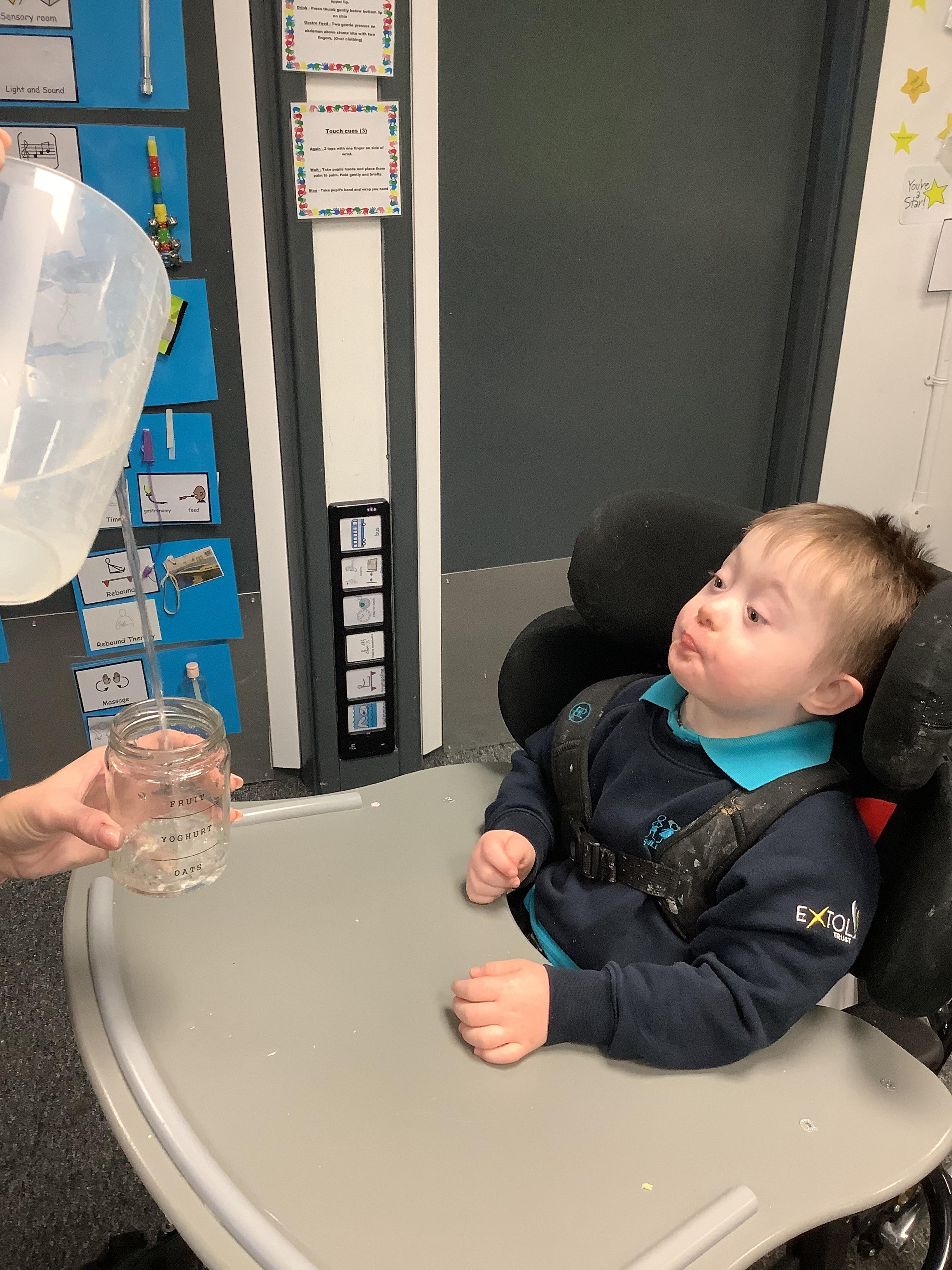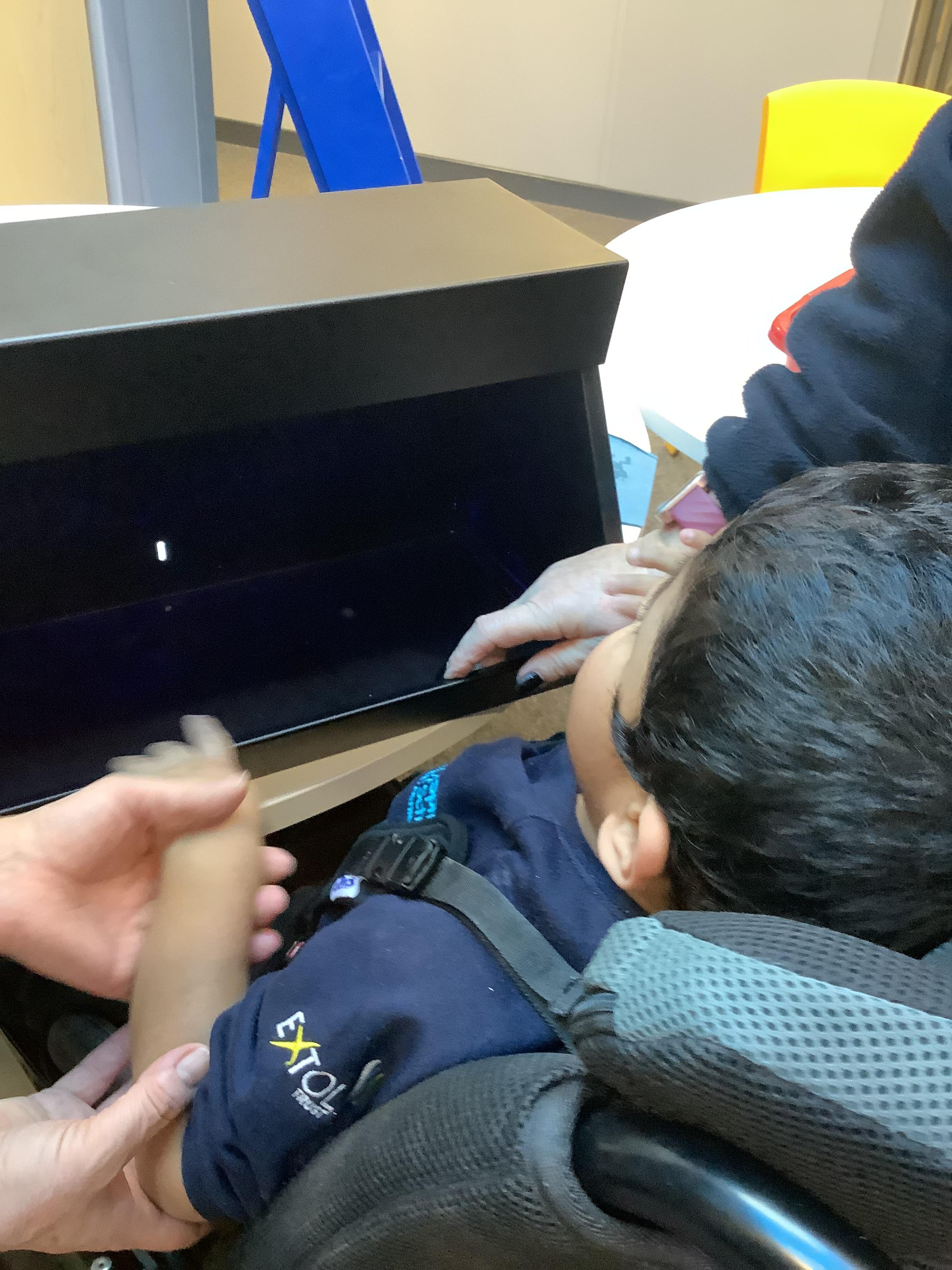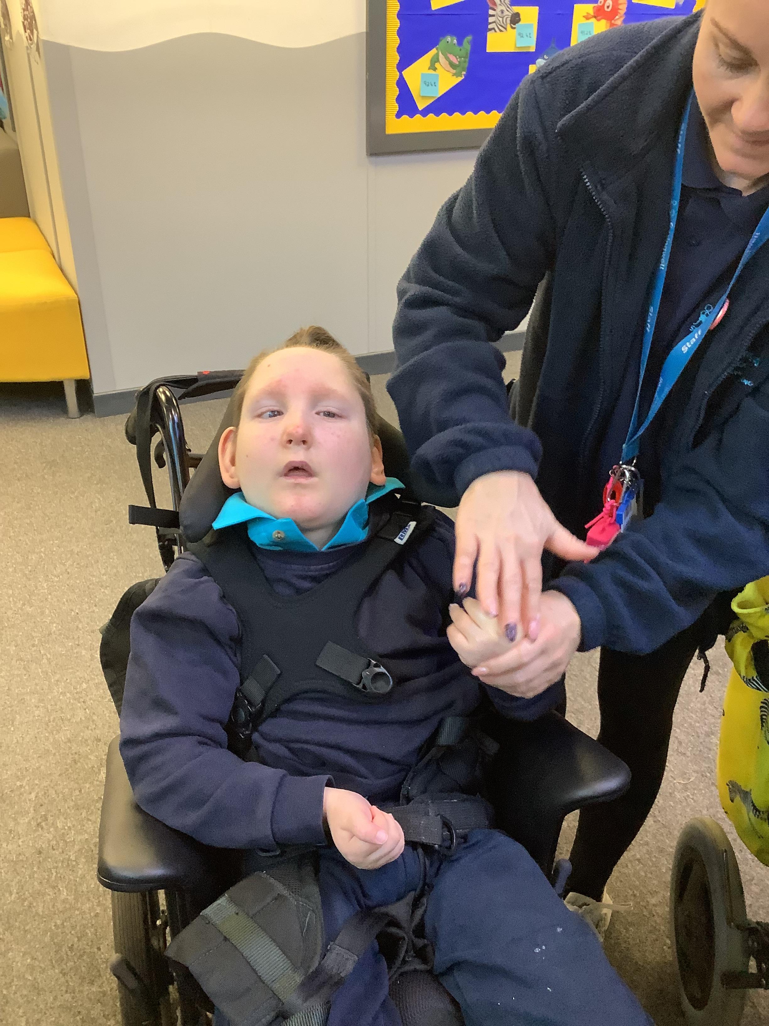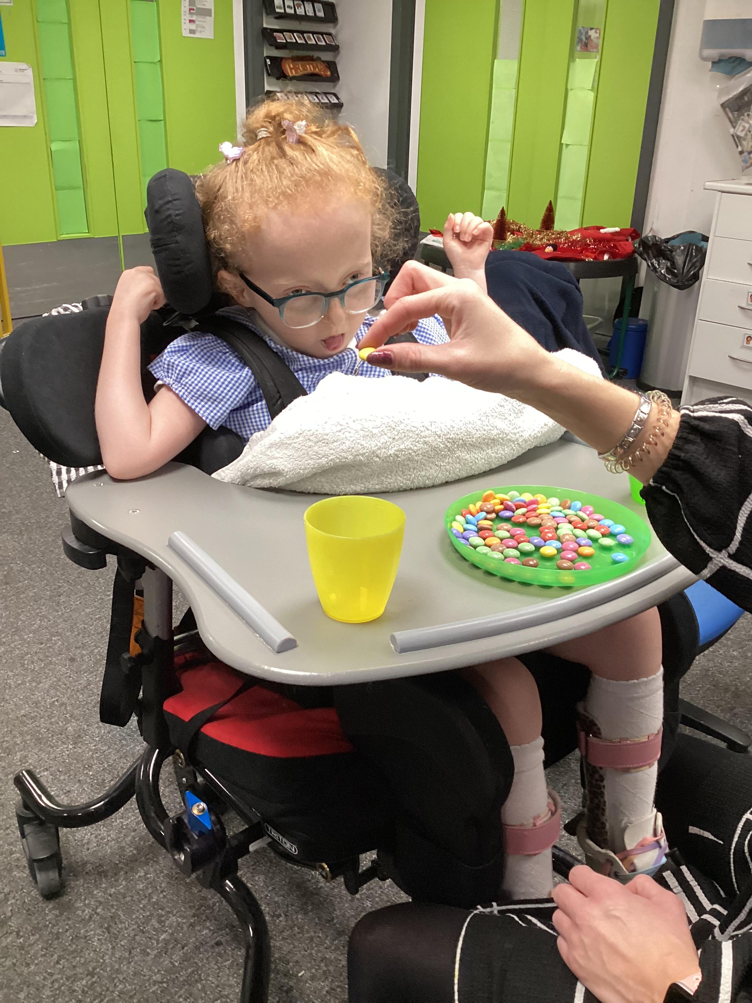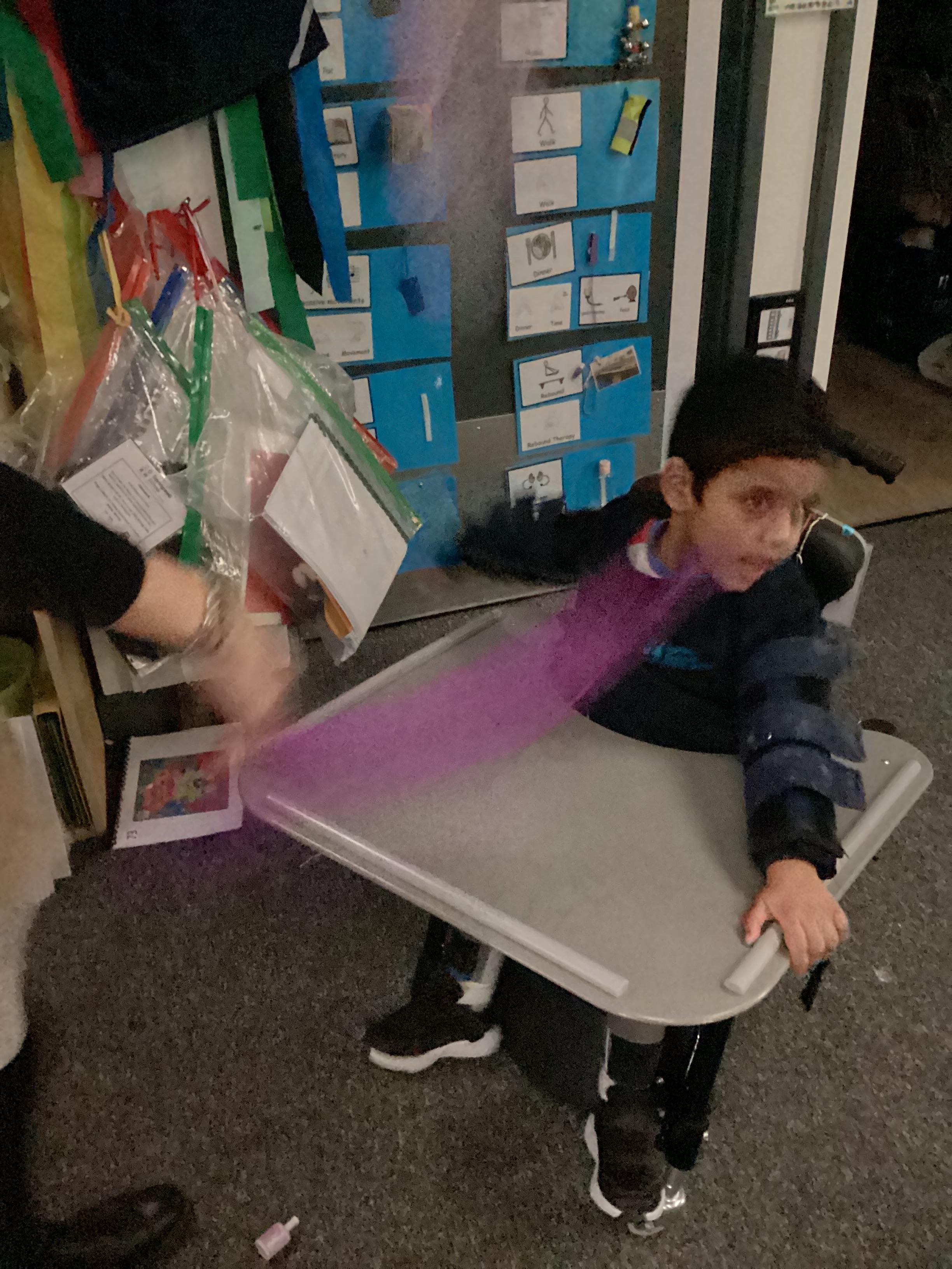 Throughout each week we spend time in our standing frames, completing a range of fun activities linked to our targets. We love making marks on the interactive whiteboard and exploring sensory toys, making choices to indicate our preferred items.