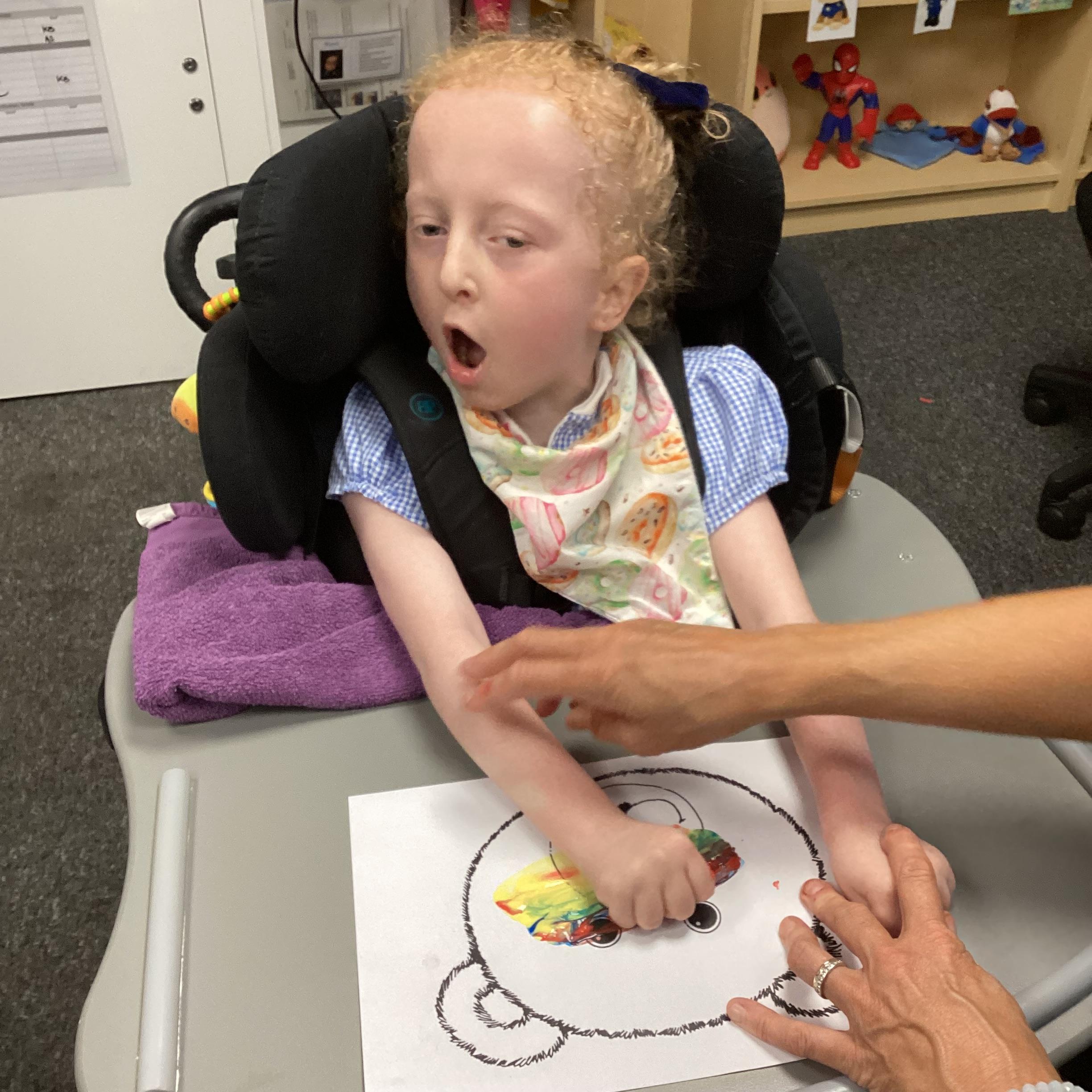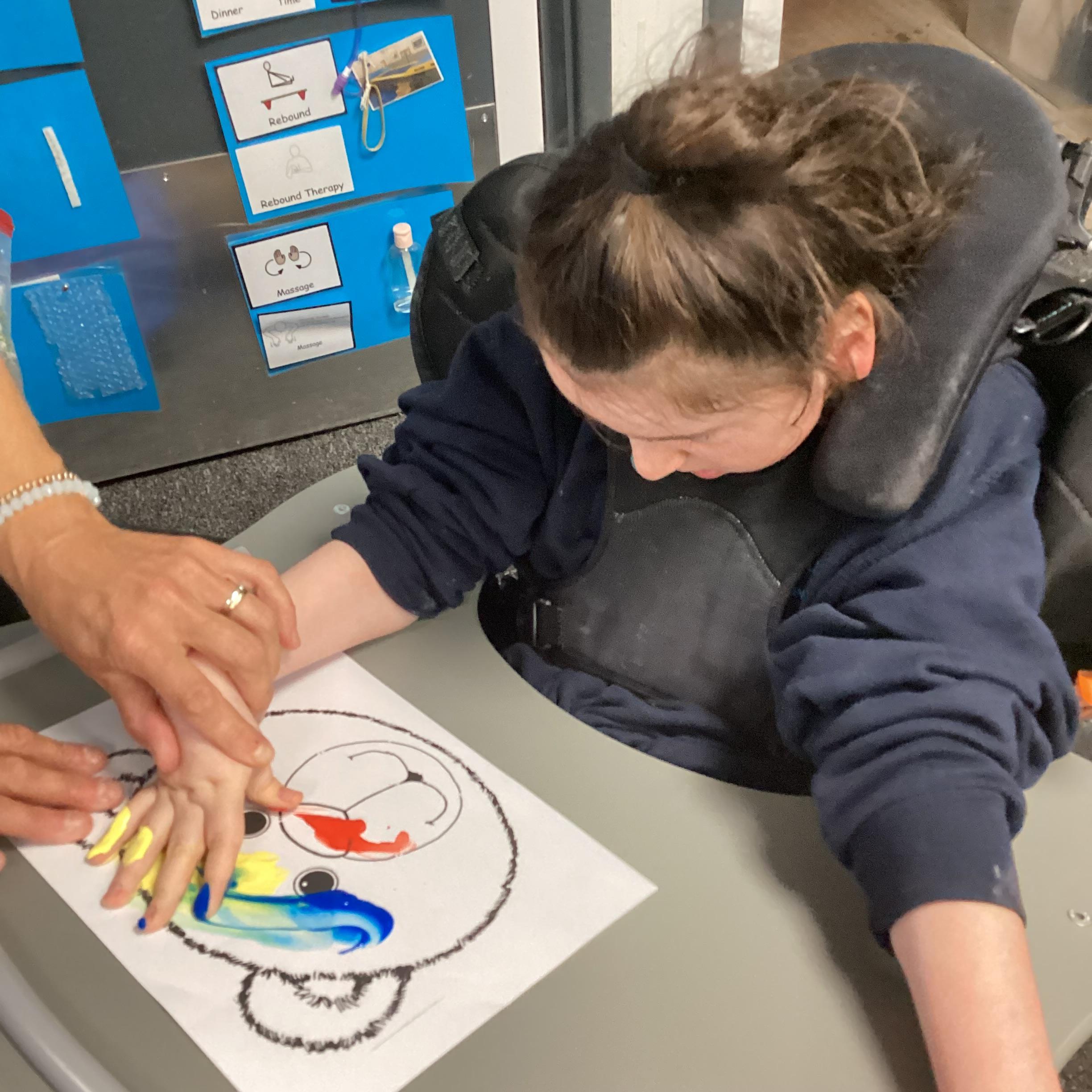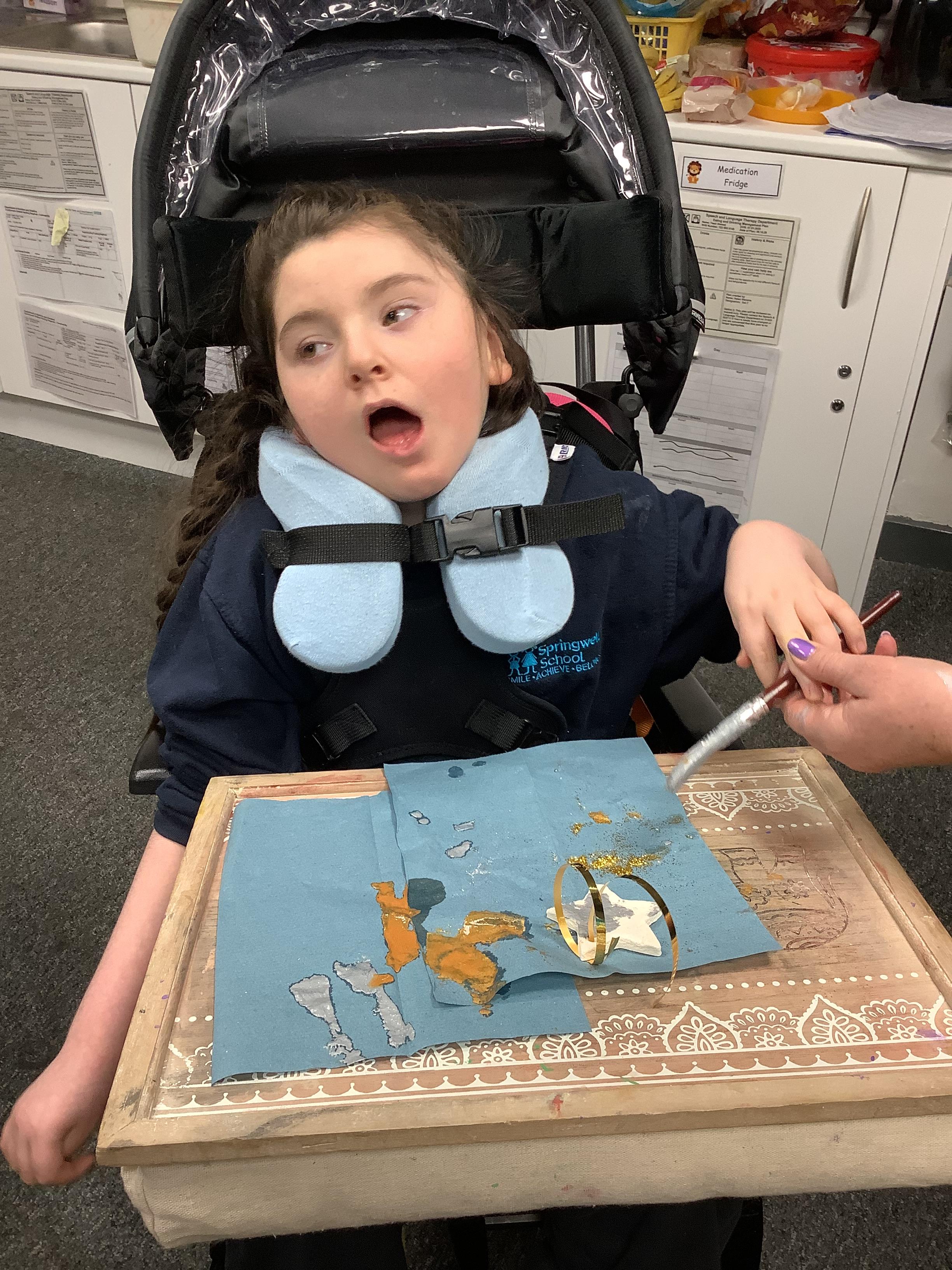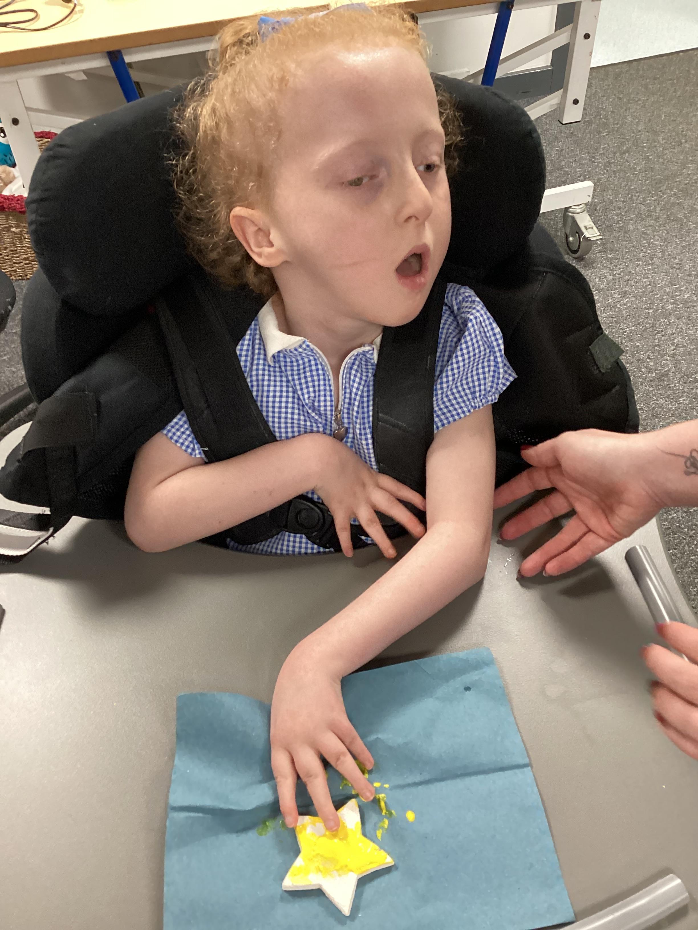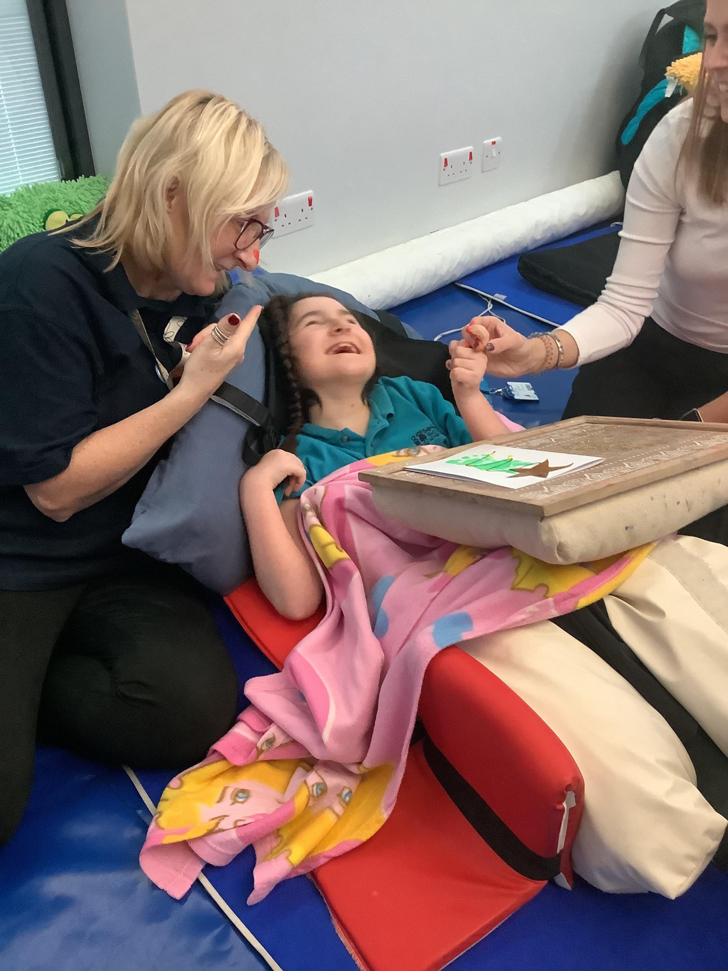 Throughout each week we spend time in our standing frames, completing a range of fun activities linked to our targets. We love making marks on the interactive whiteboard and exploring sensory toys, making choices to indicate our preferred items.
