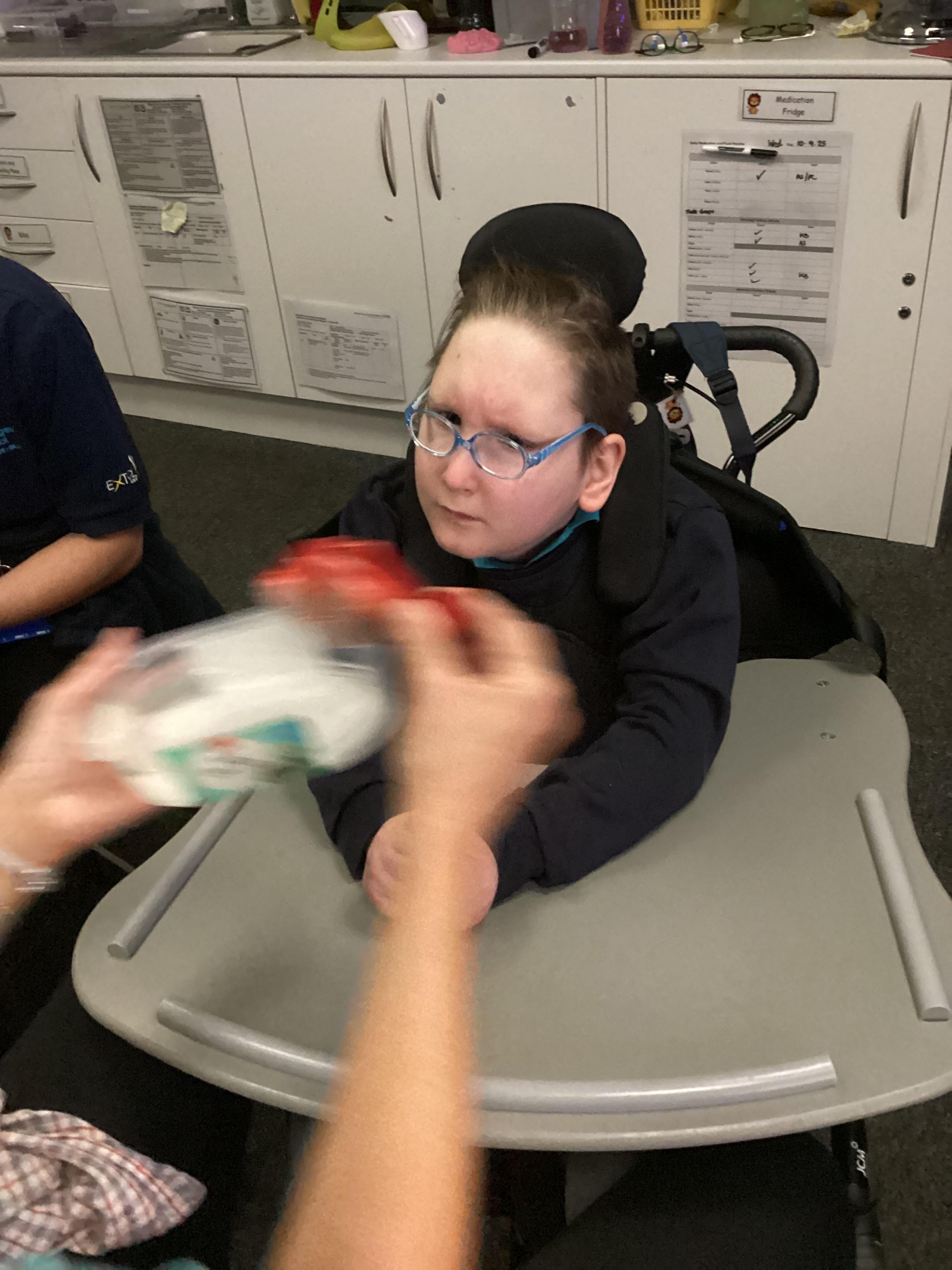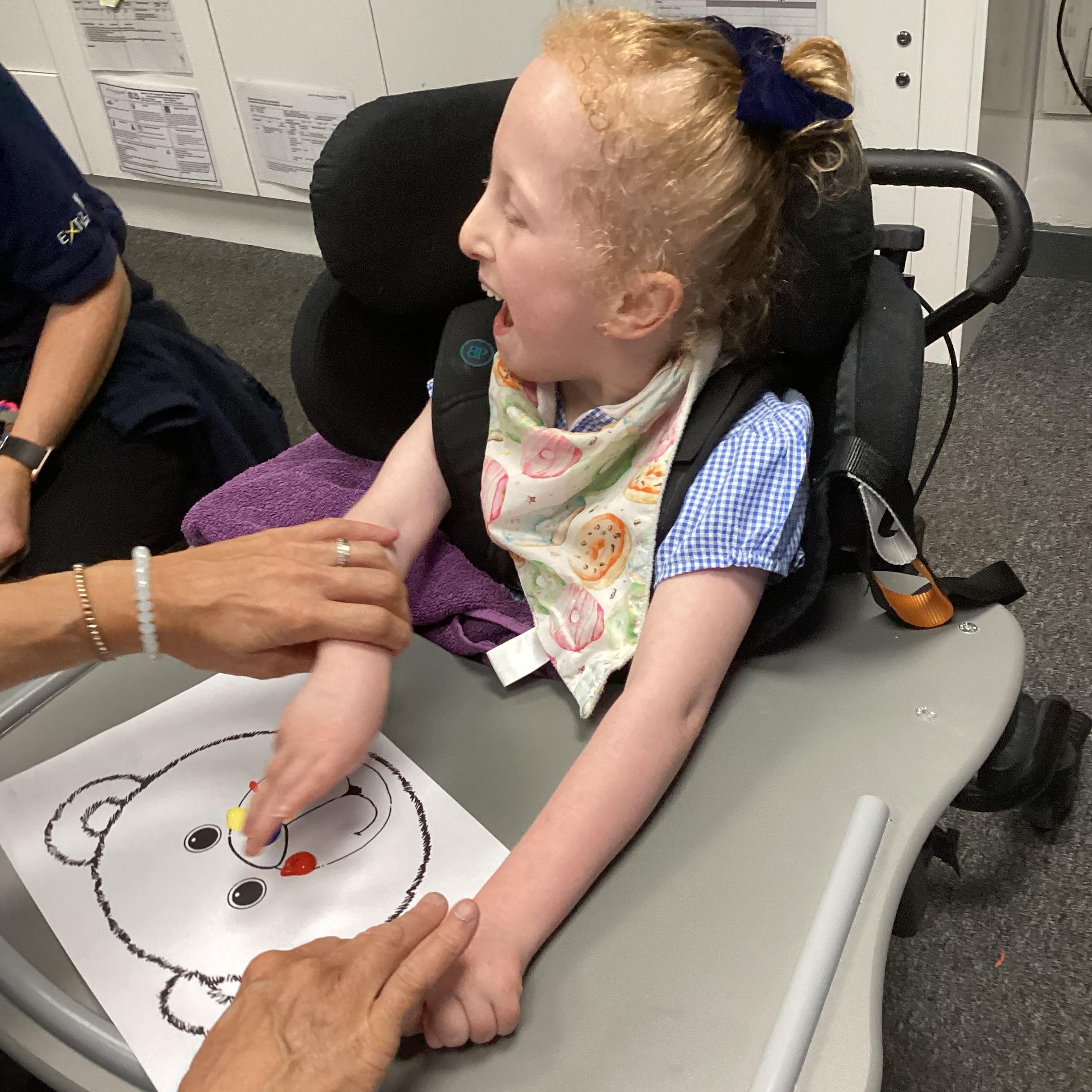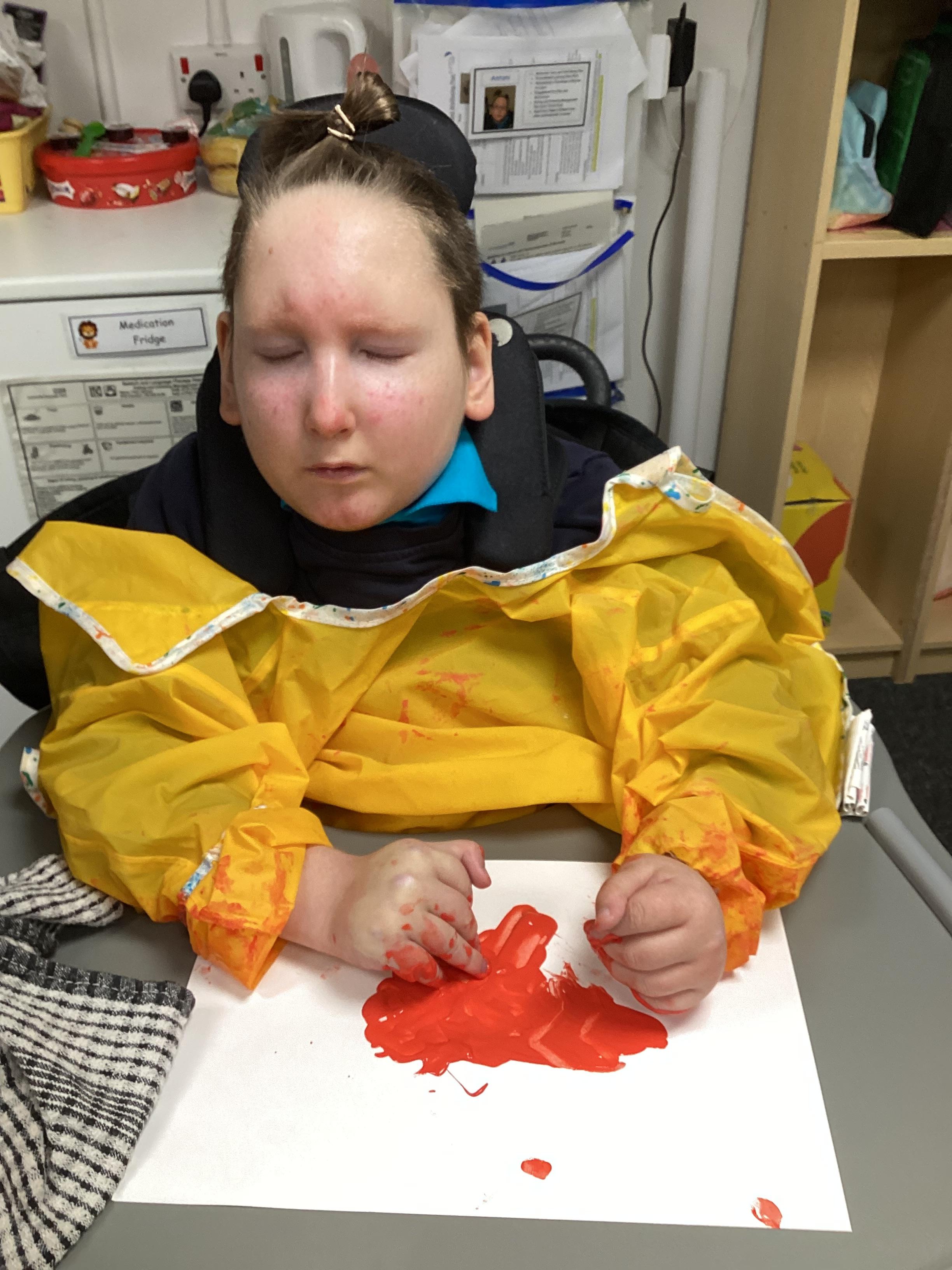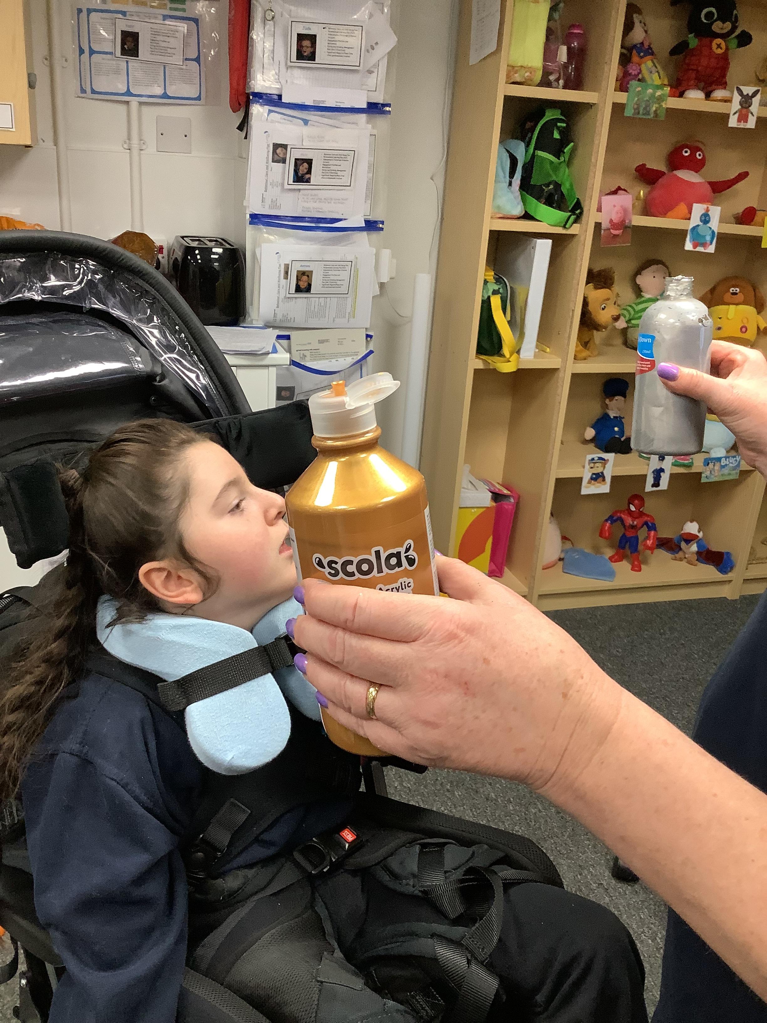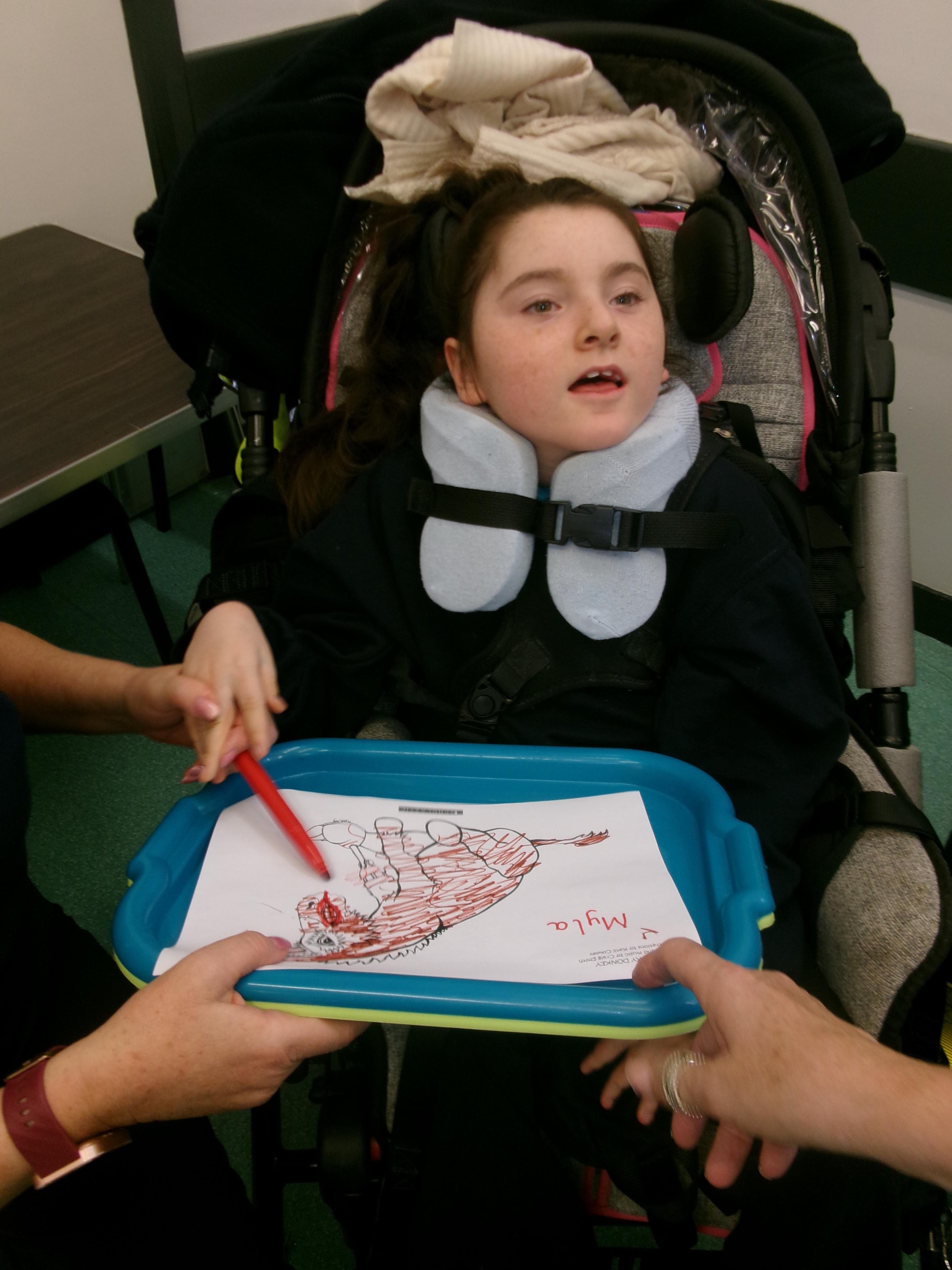 Throughout each week we spend time in our standing frames, completing a range of fun activities linked to our targets. We love making marks on the interactive whiteboard and exploring sensory toys, making choices to indicate our preferred items.