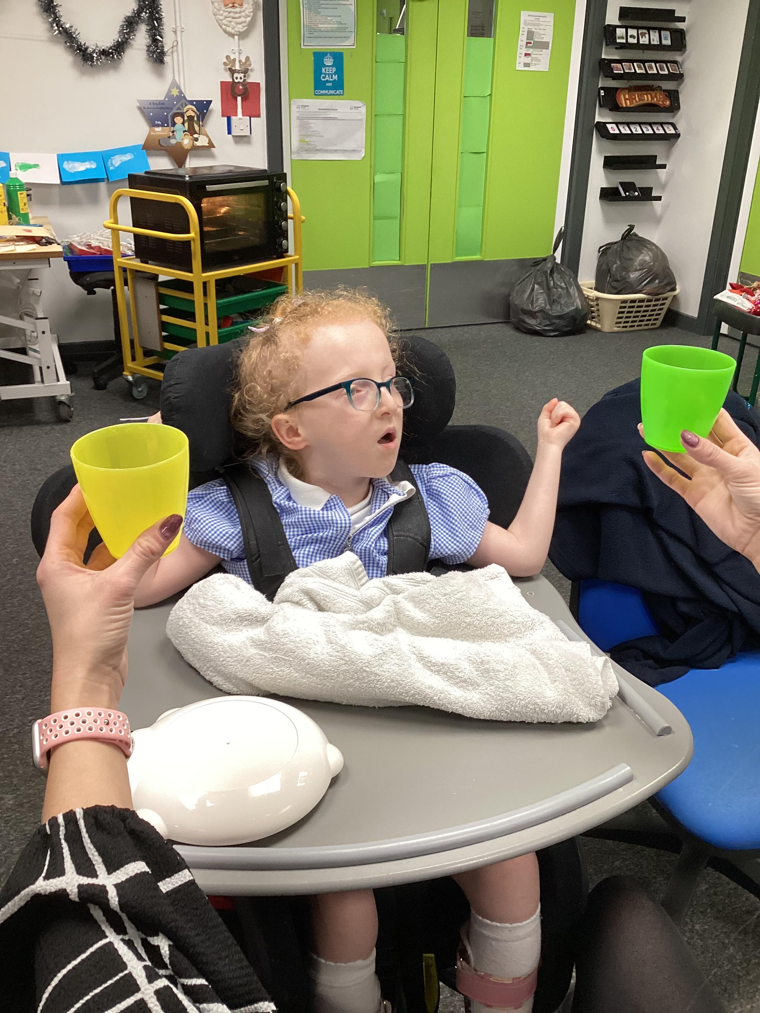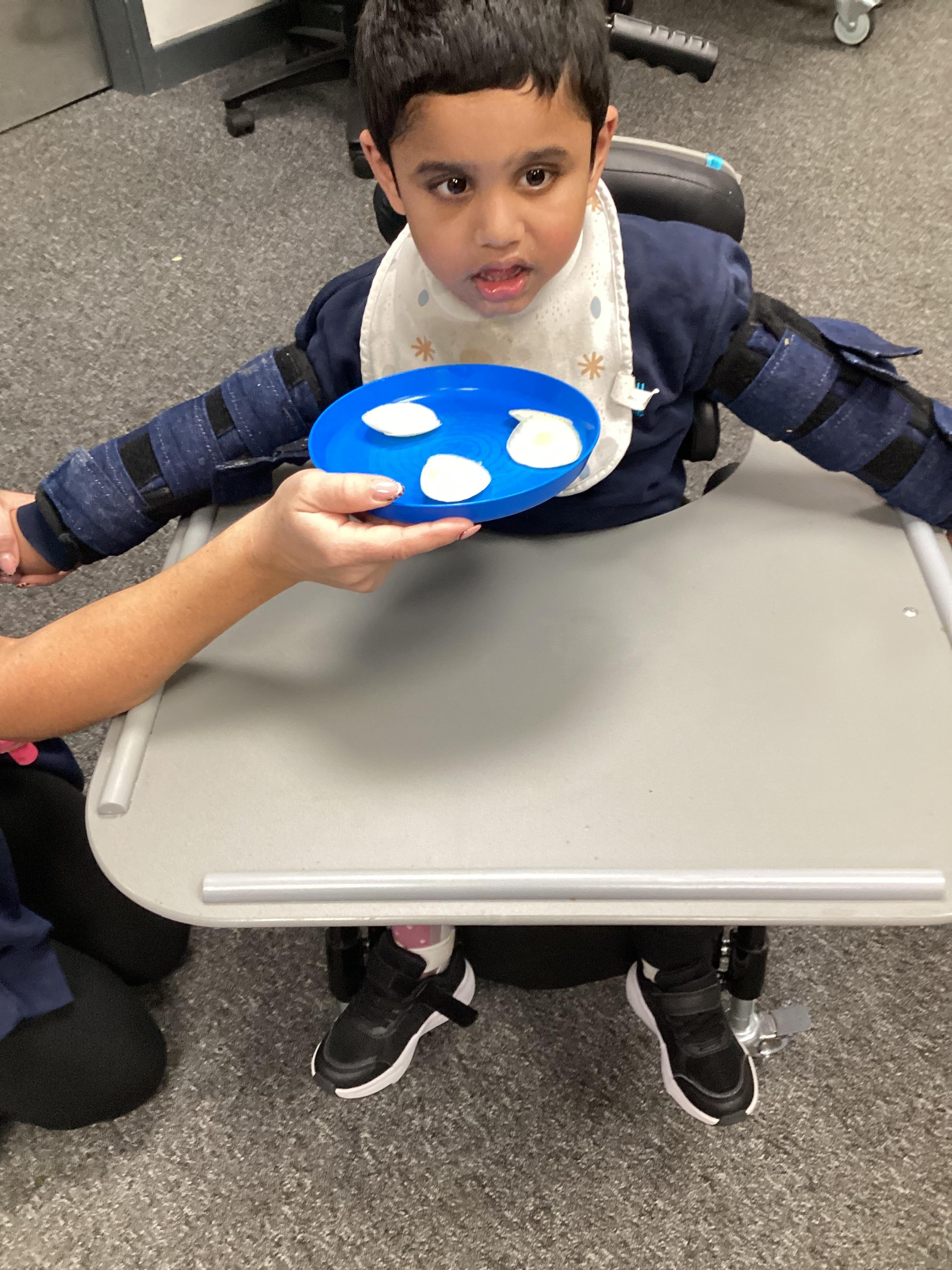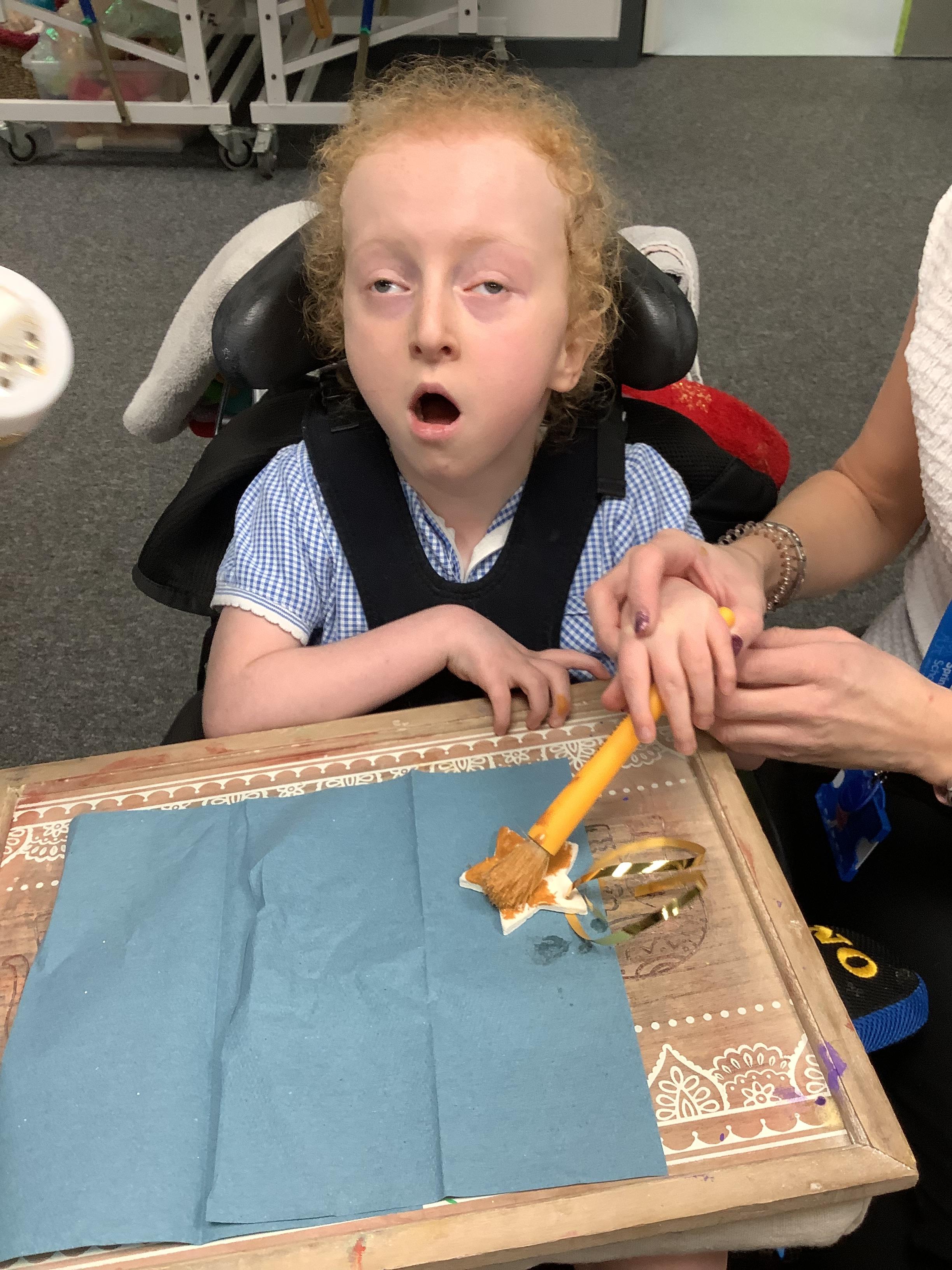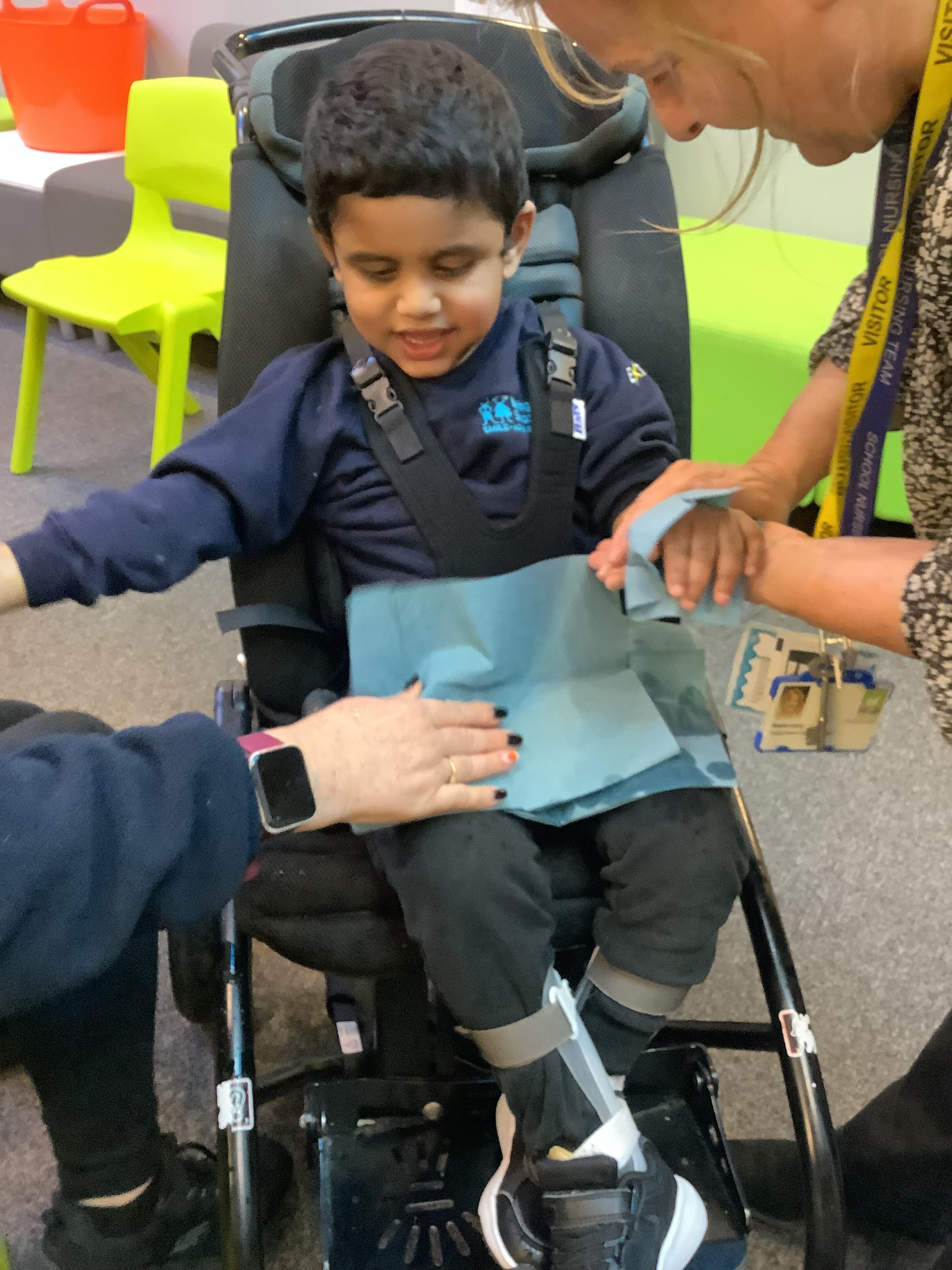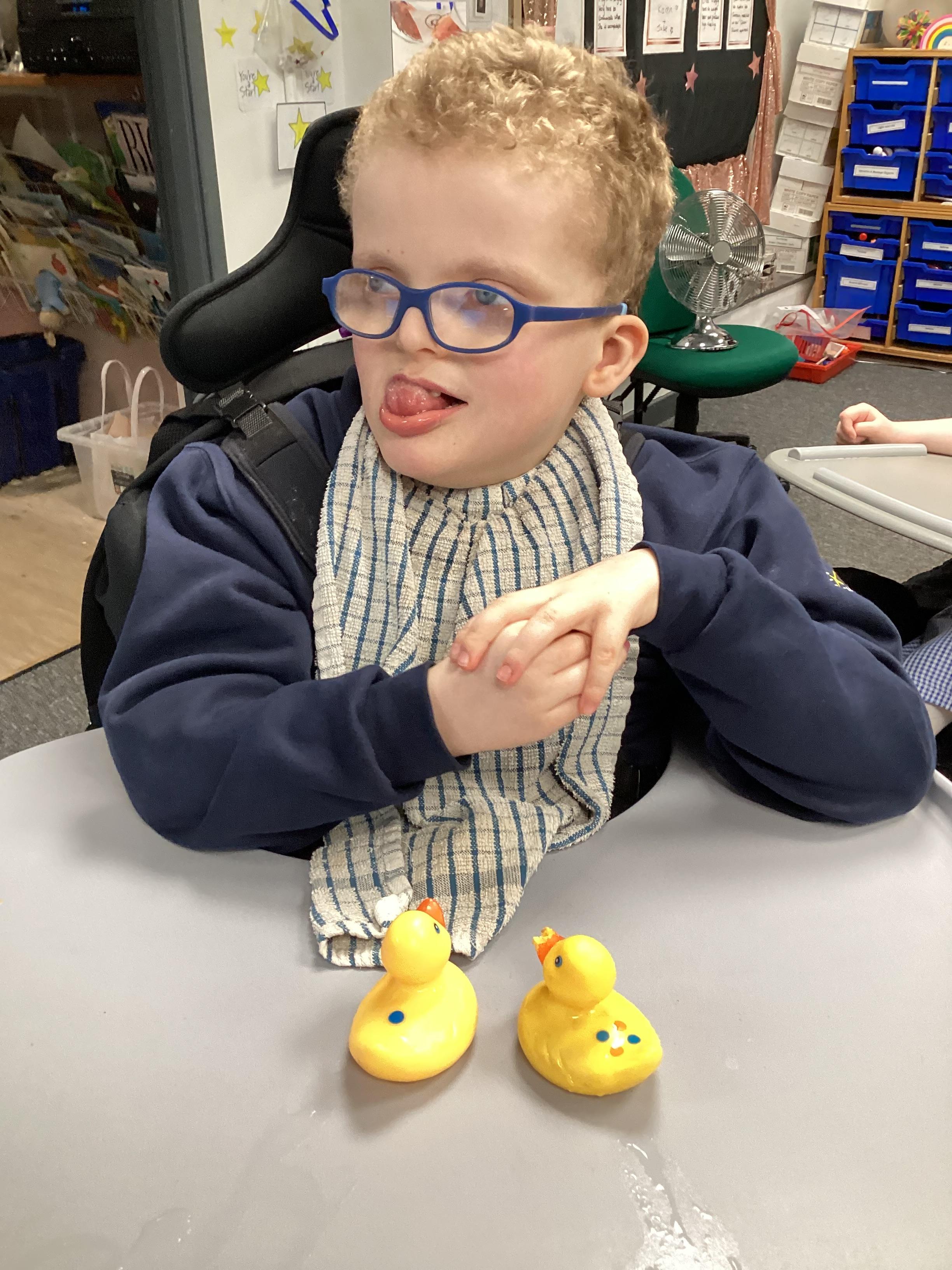 Throughout each week we spend time in our standing frames, completing a range of fun activities linked to our targets. We love making marks on the interactive whiteboard and exploring sensory toys, making choices to indicate our preferred items.