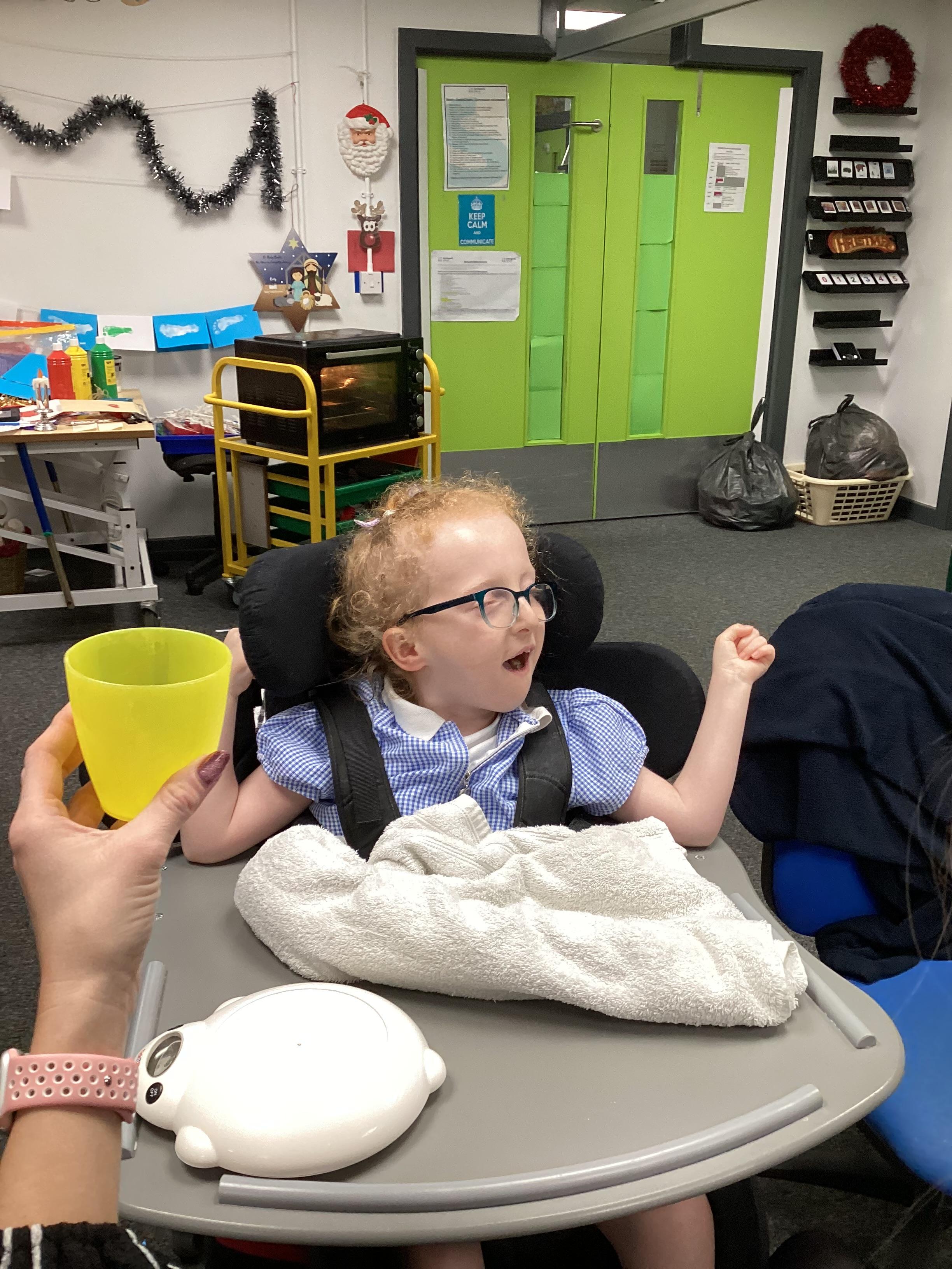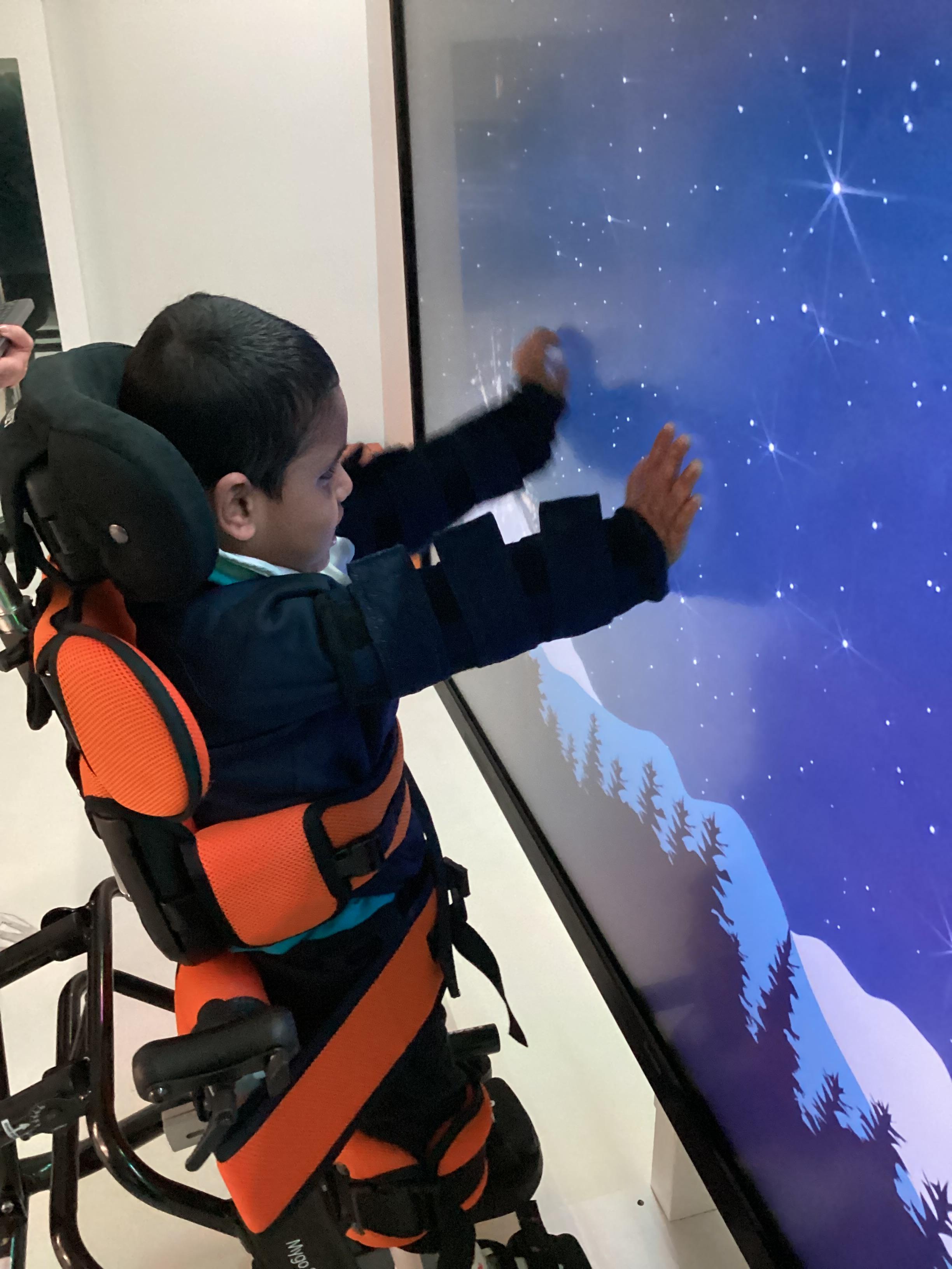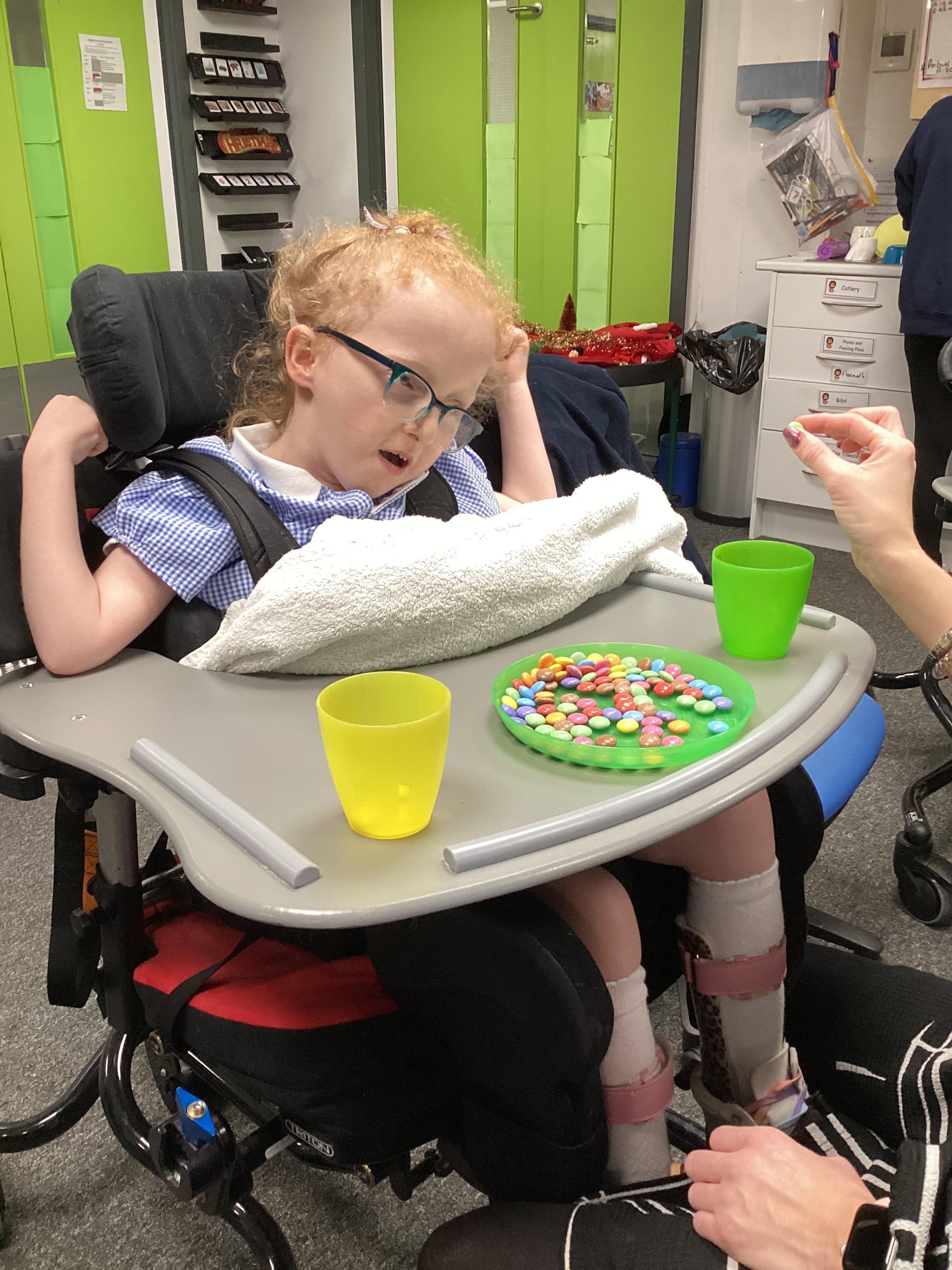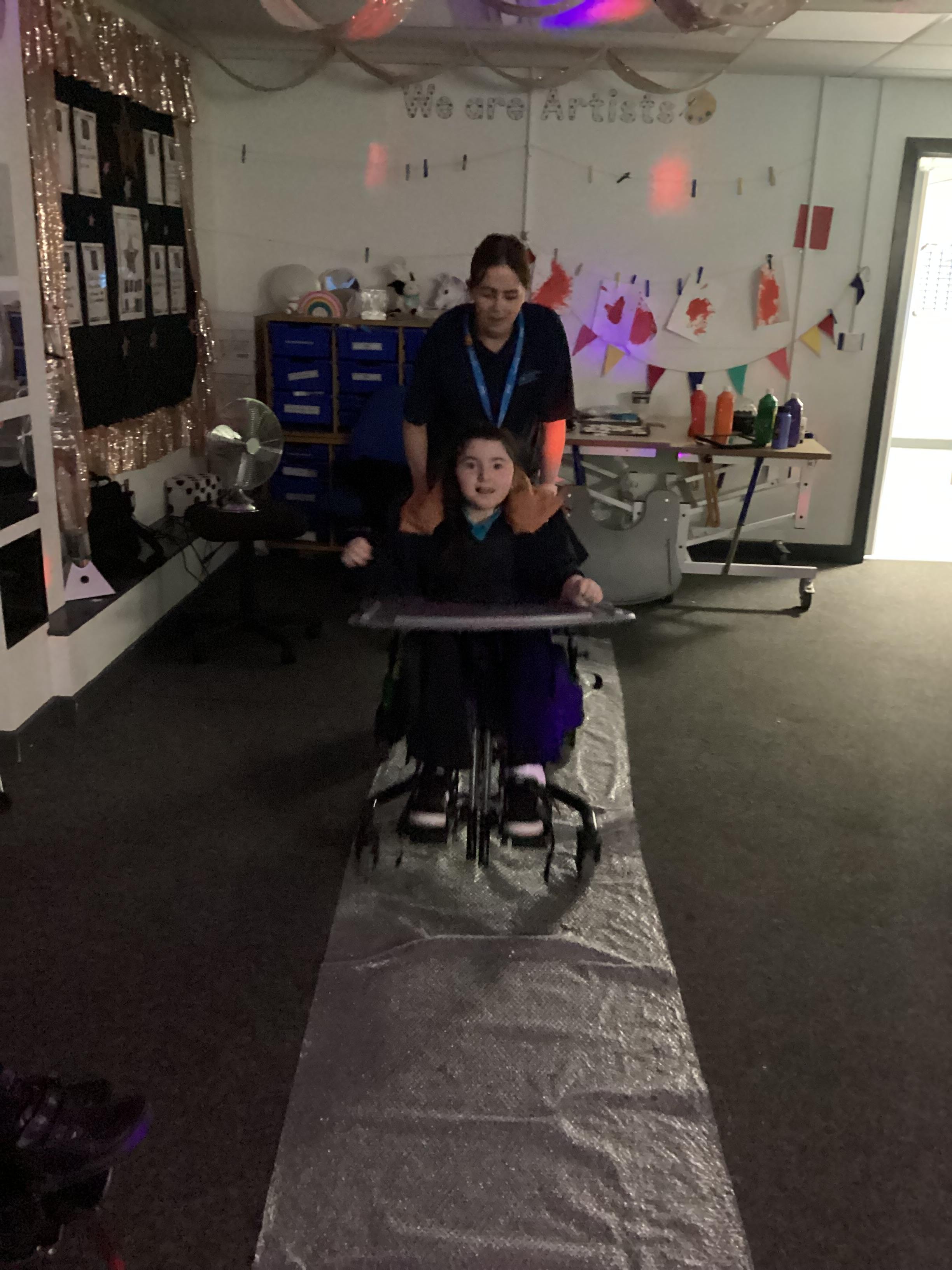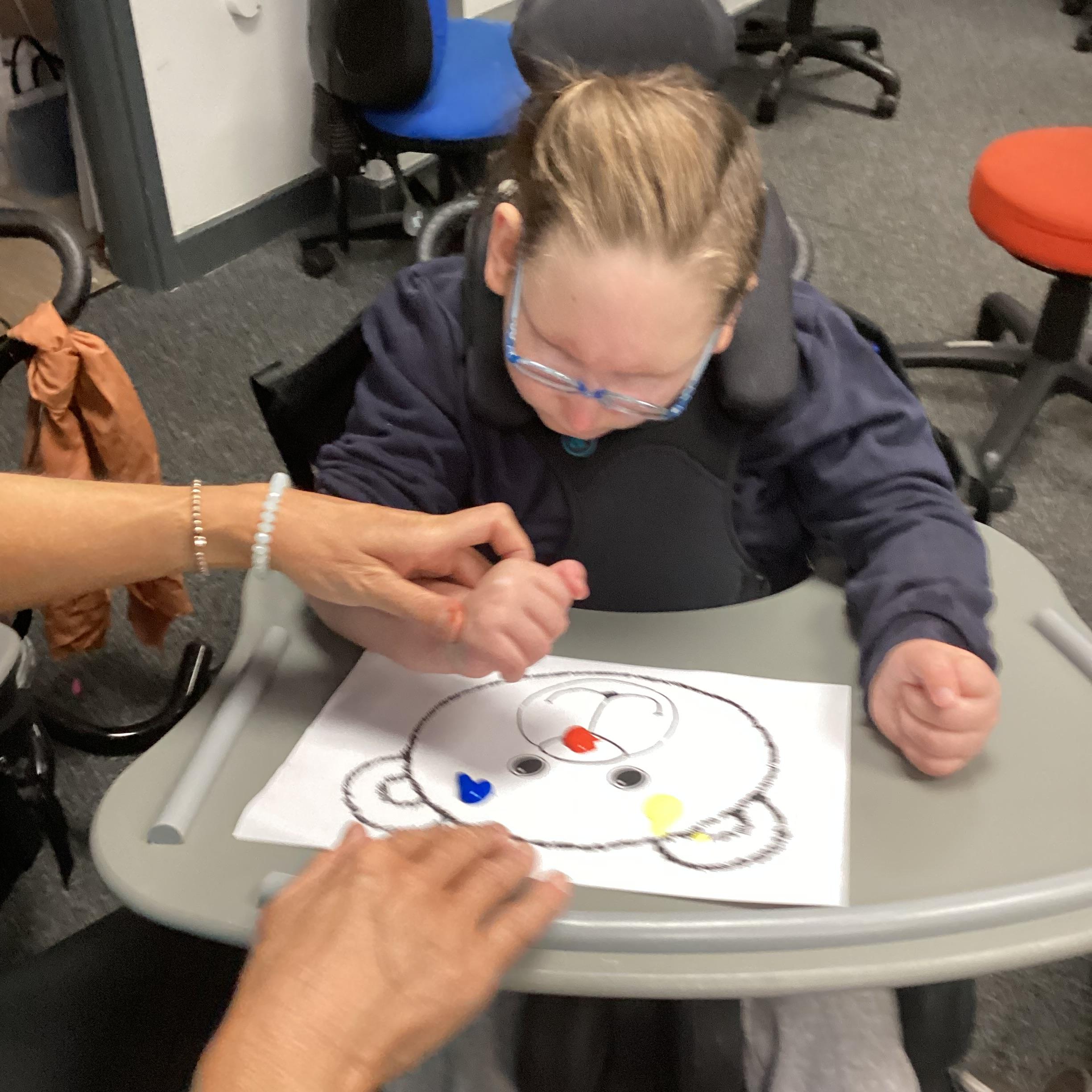 Throughout each week we spend time in our standing frames, completing a range of fun activities linked to our targets. We love making marks on the interactive whiteboard and exploring sensory toys, making choices to indicate our preferred items.
