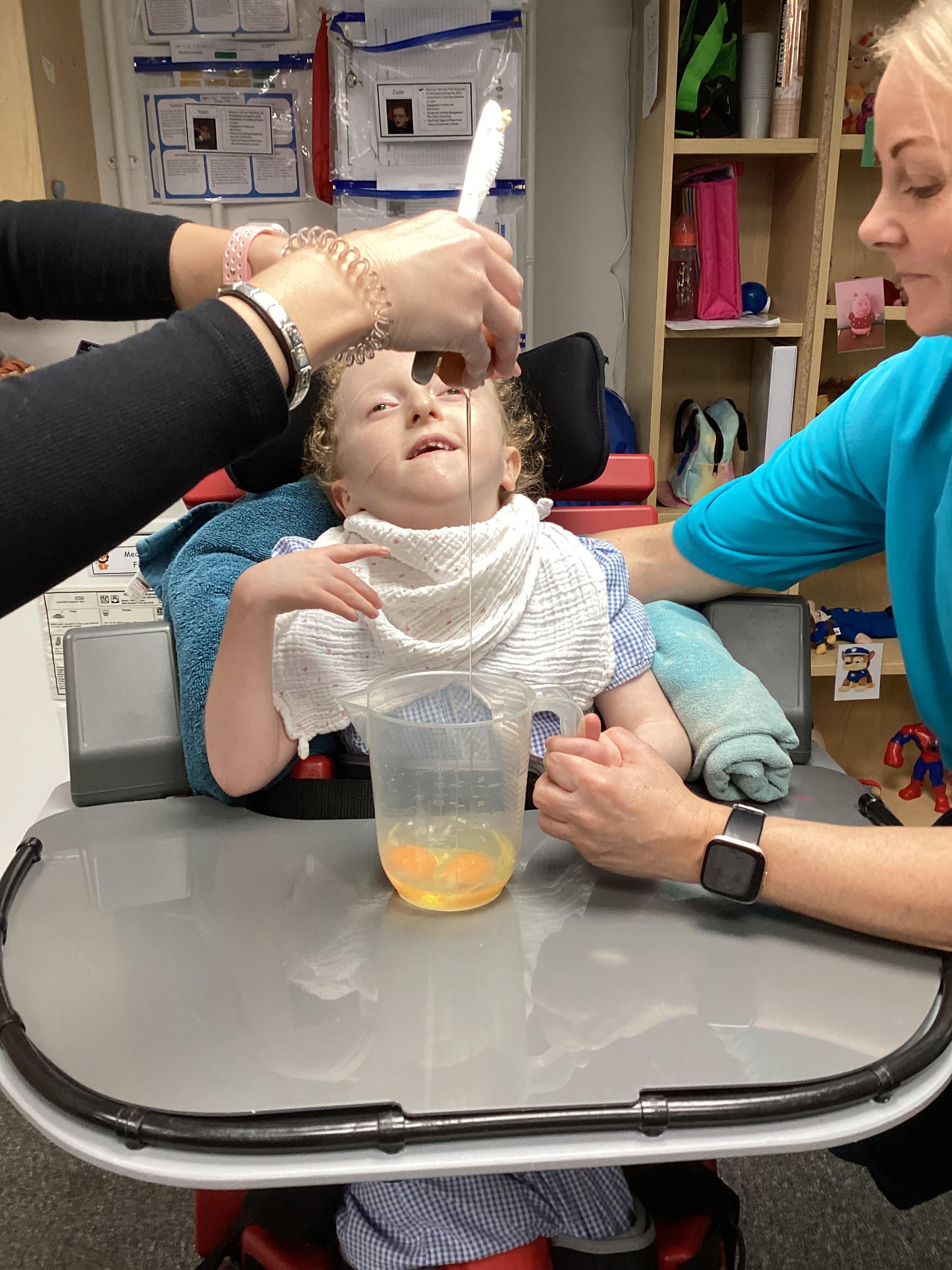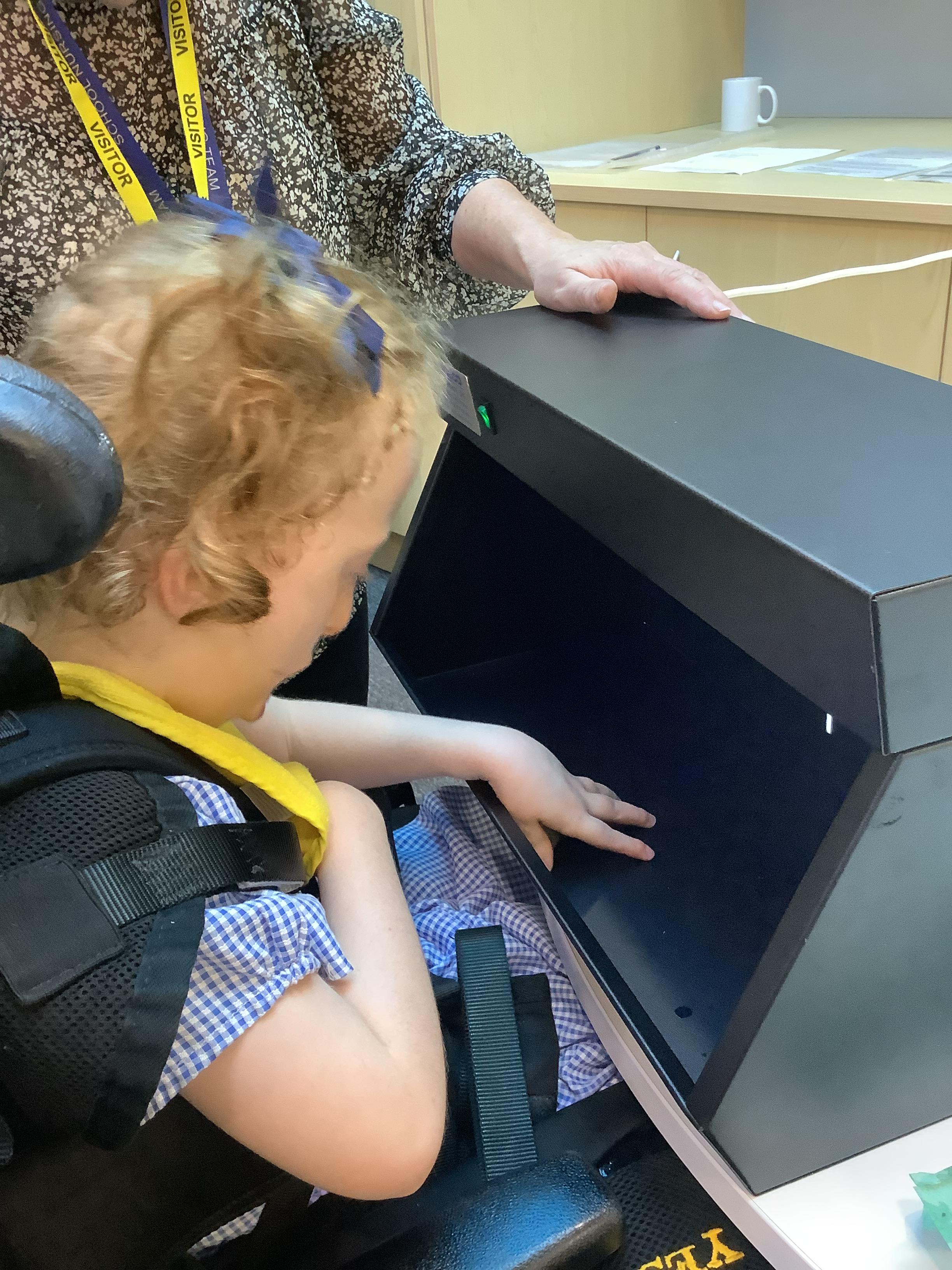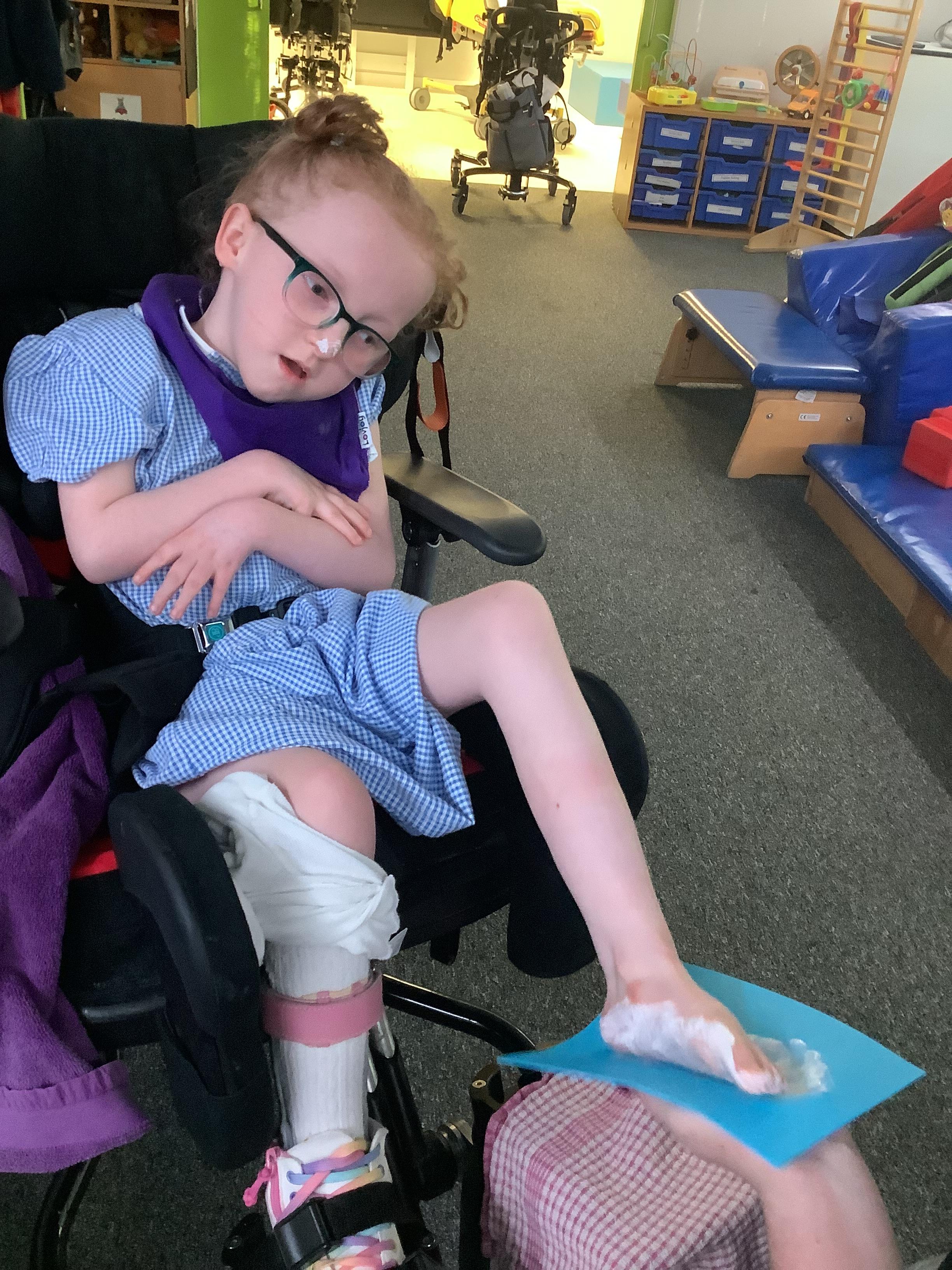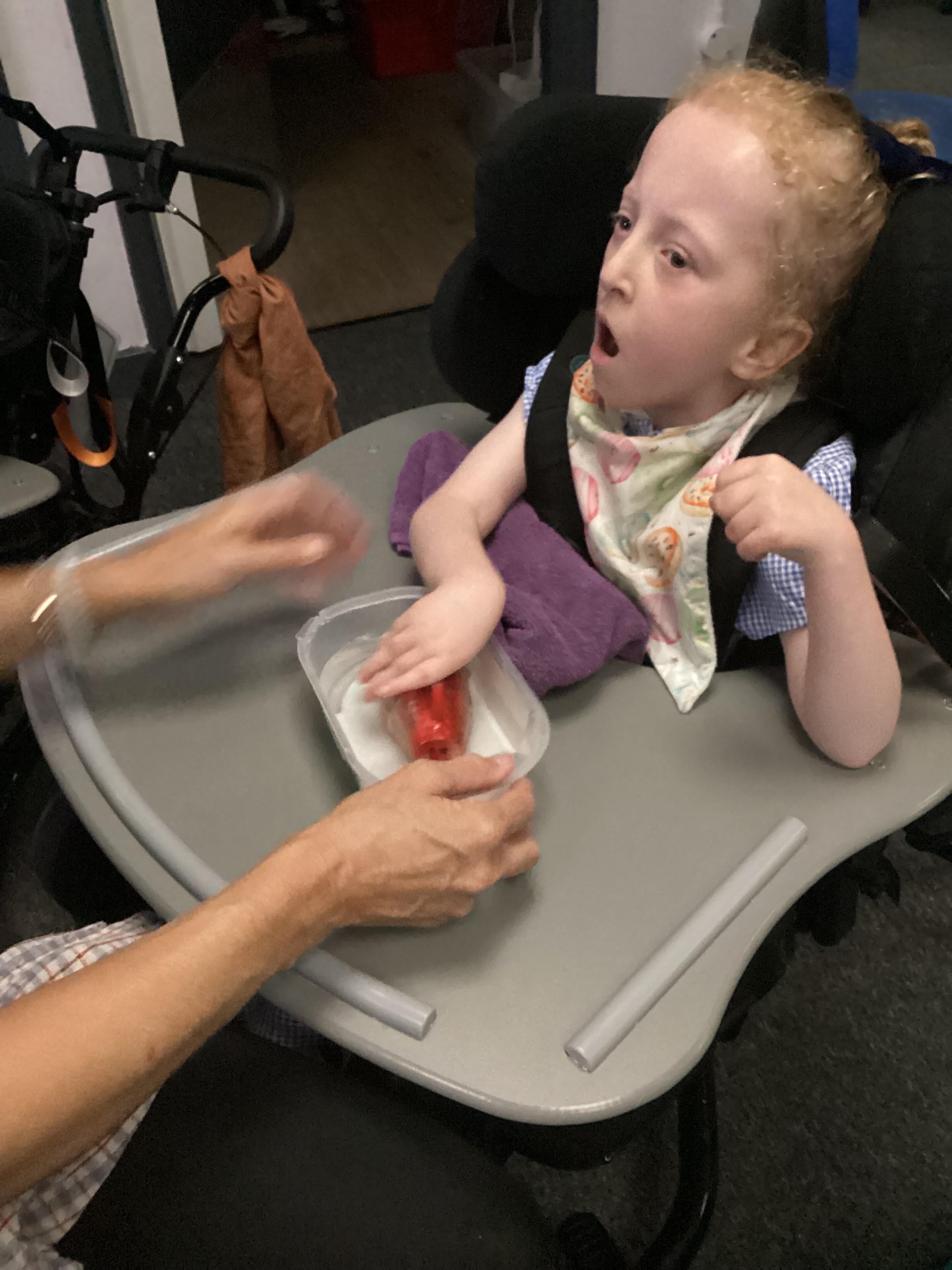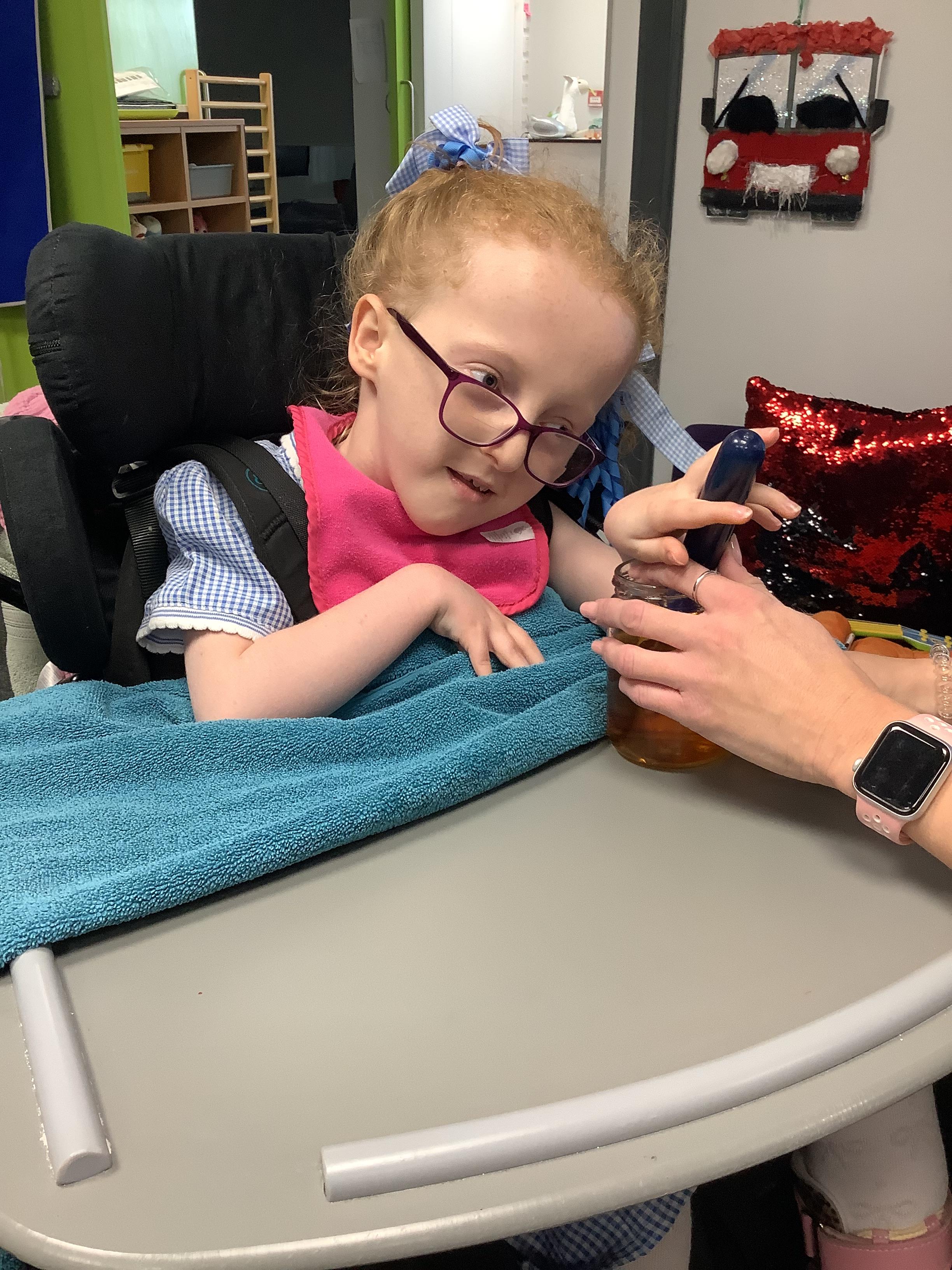 Throughout each week we spend time in our standing frames, completing a range of fun activities linked to our targets. We love making marks on the interactive whiteboard and exploring sensory toys, making choices to indicate our preferred items.