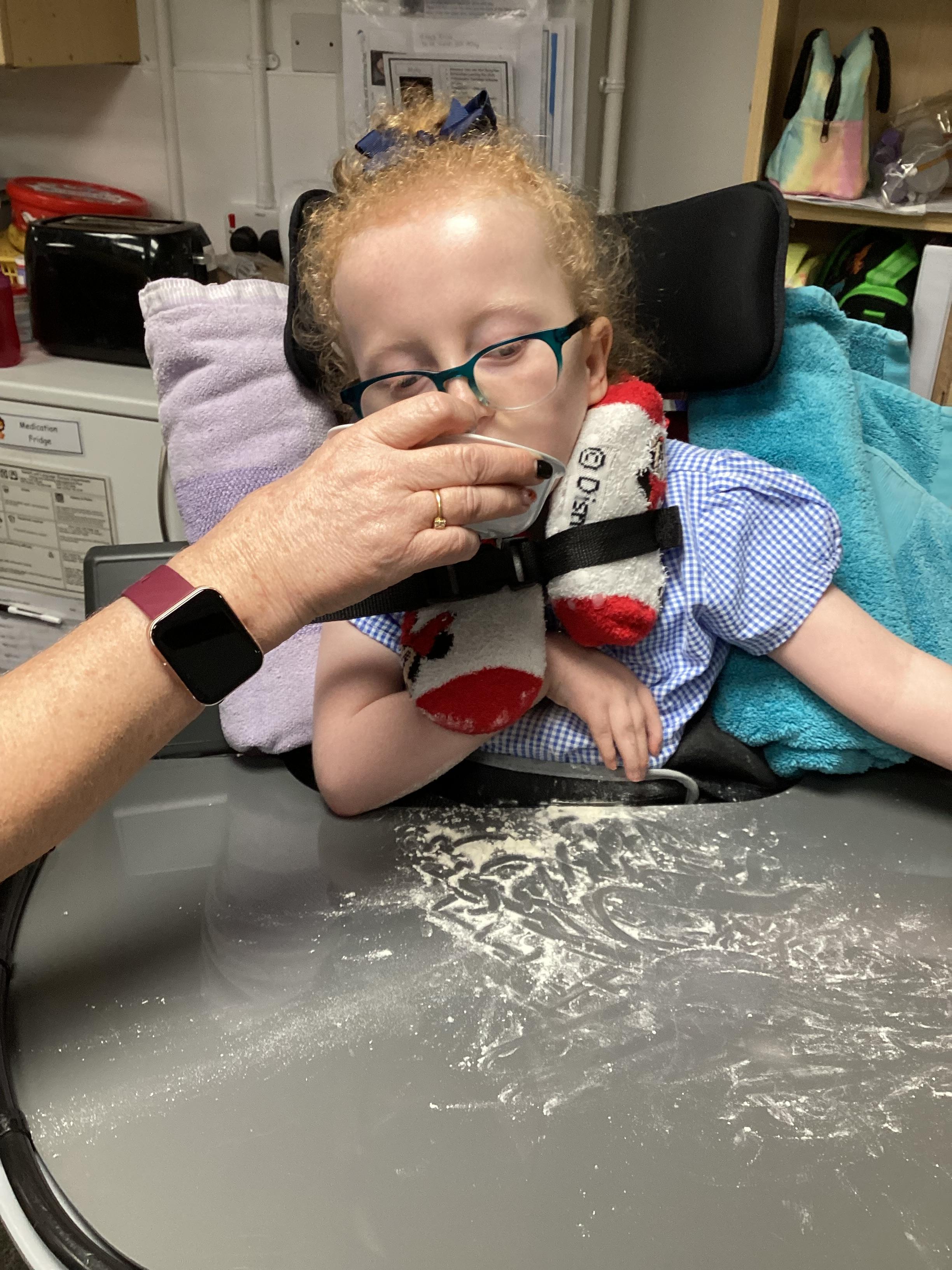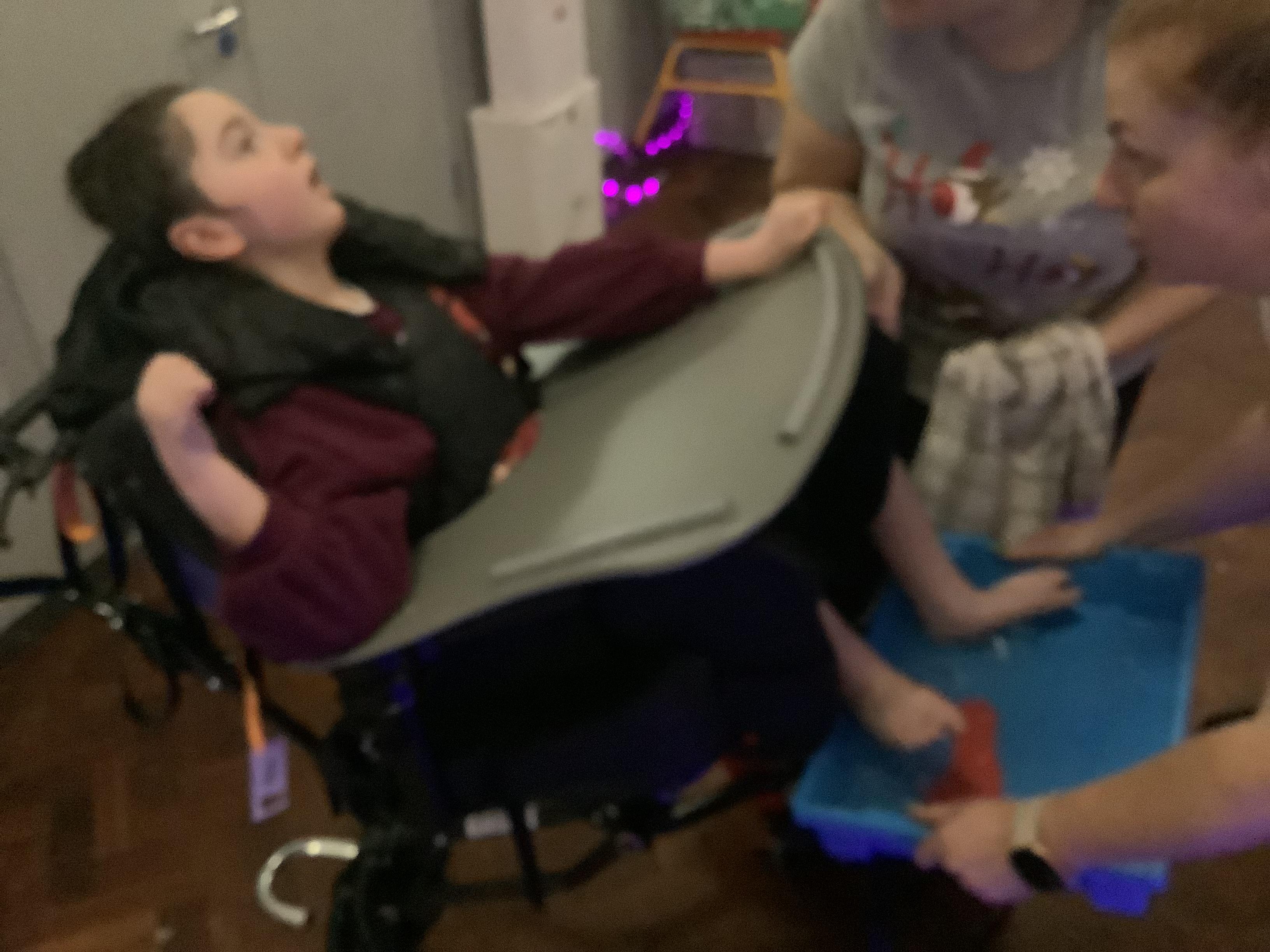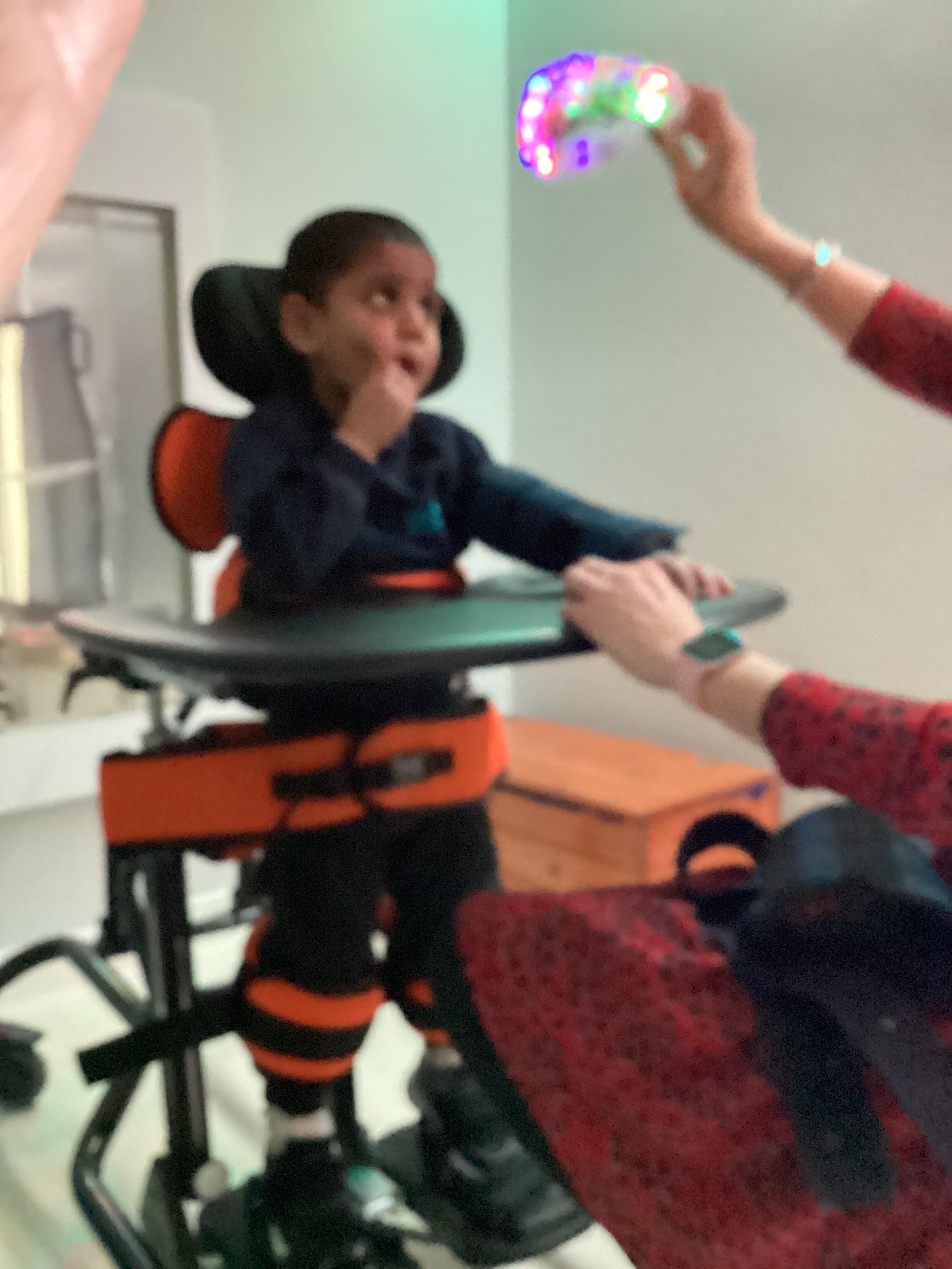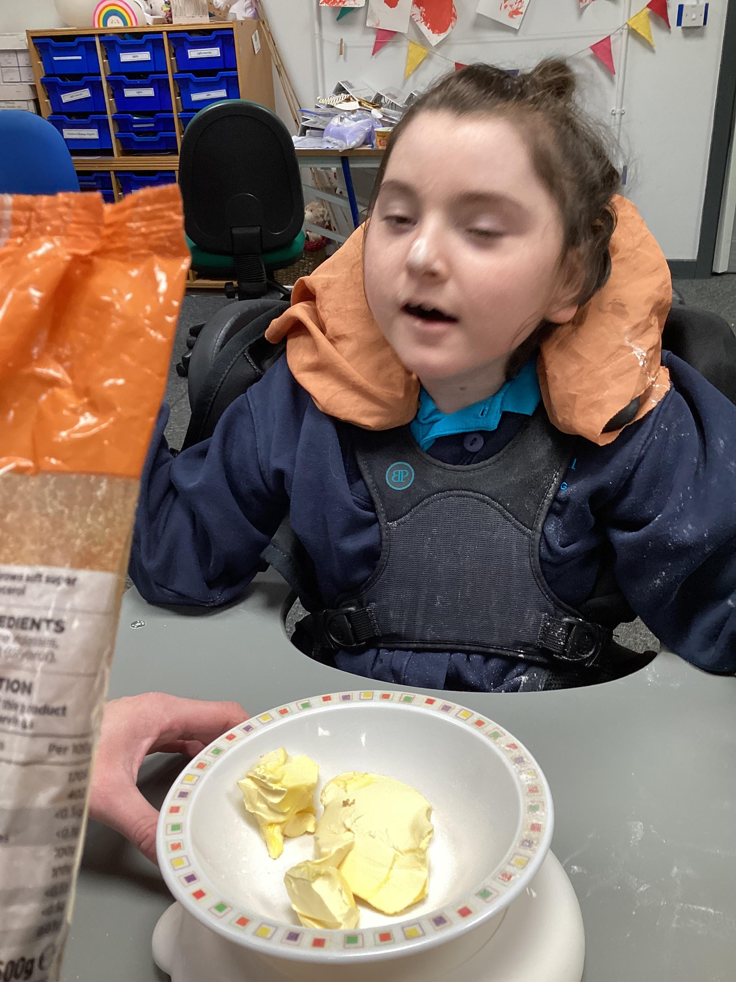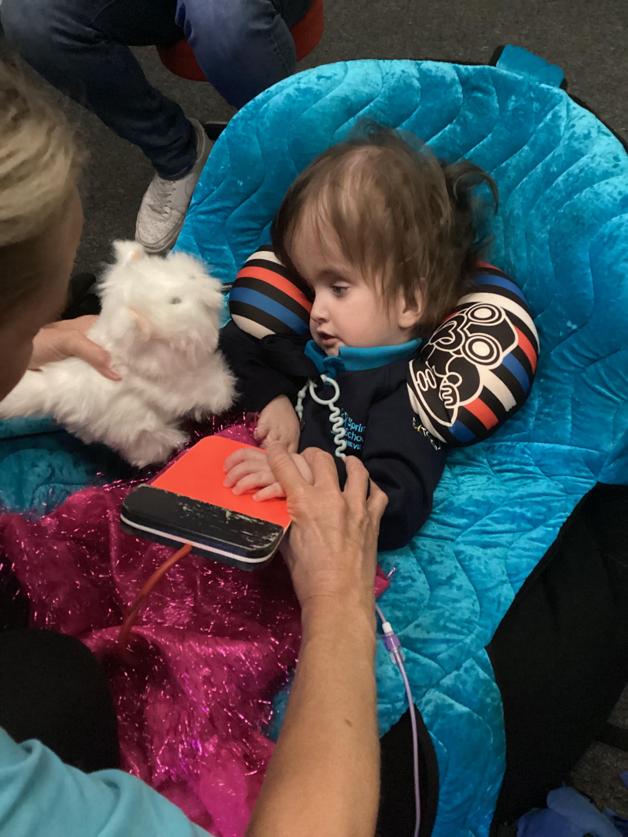 Throughout each week we spend time in our standing frames, completing a range of fun activities linked to our targets. We love making marks on the interactive whiteboard and exploring sensory toys, making choices to indicate our preferred items.