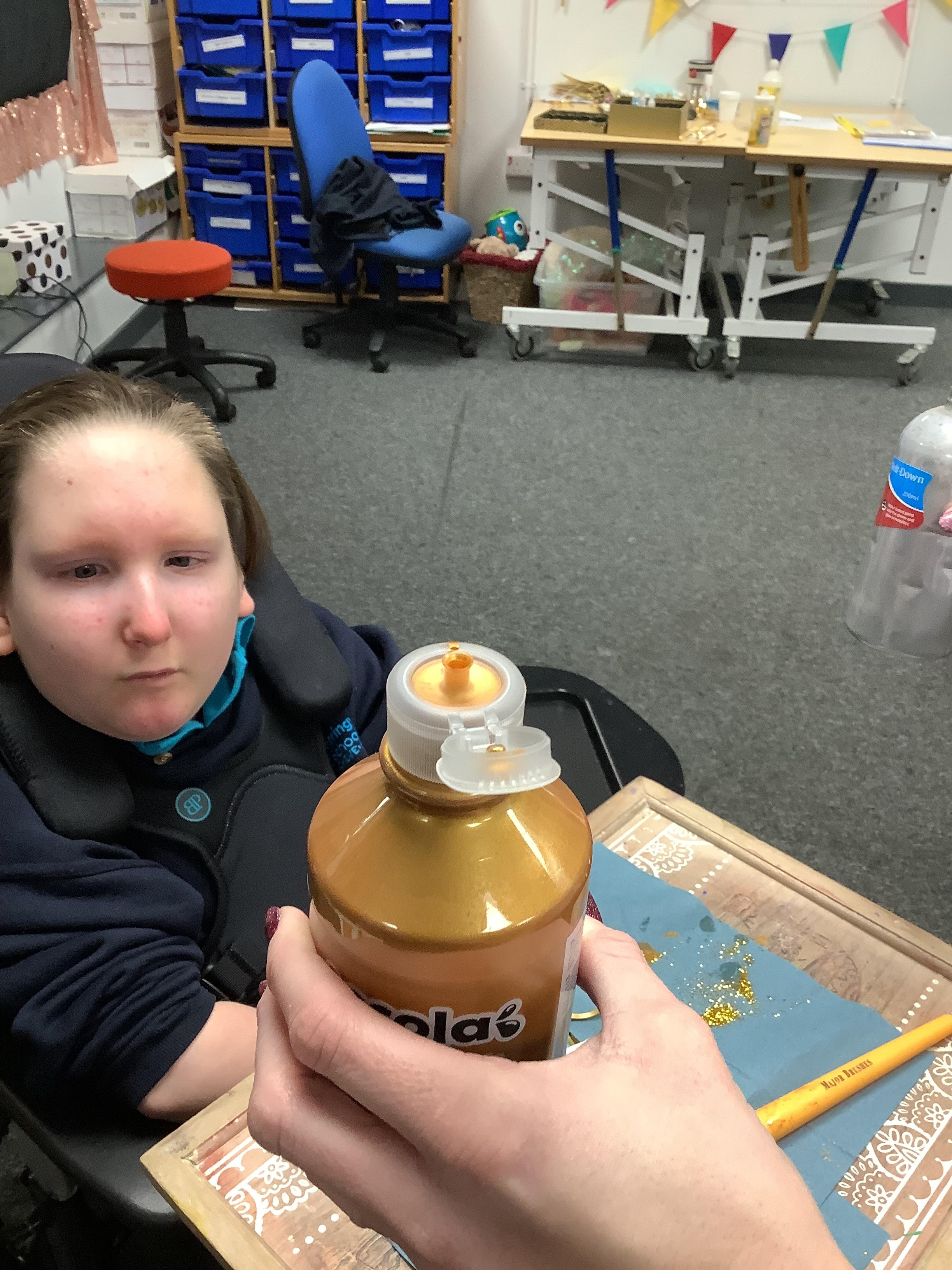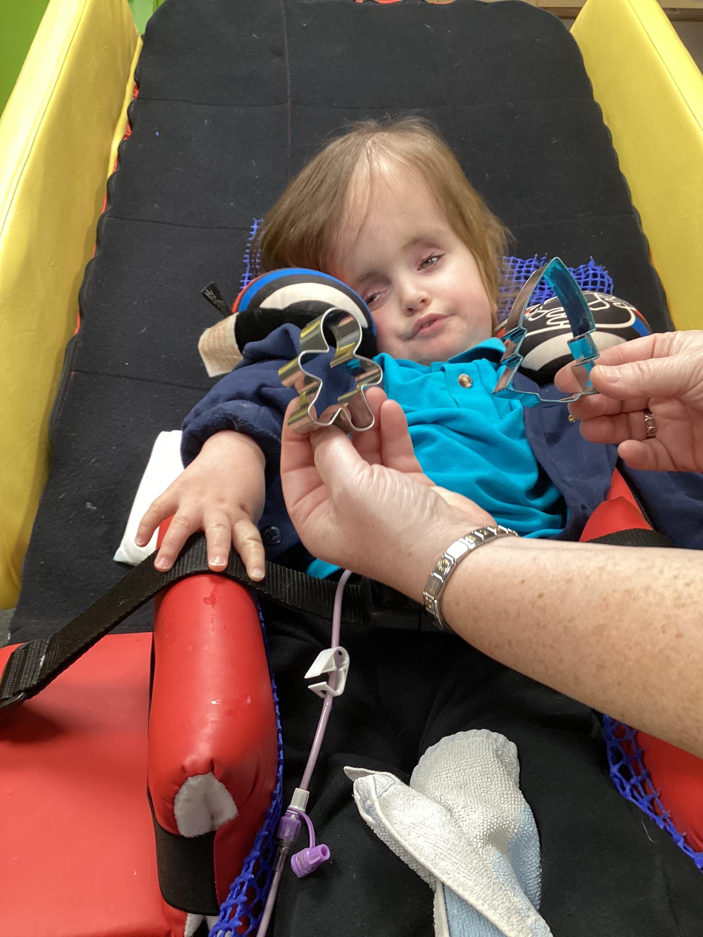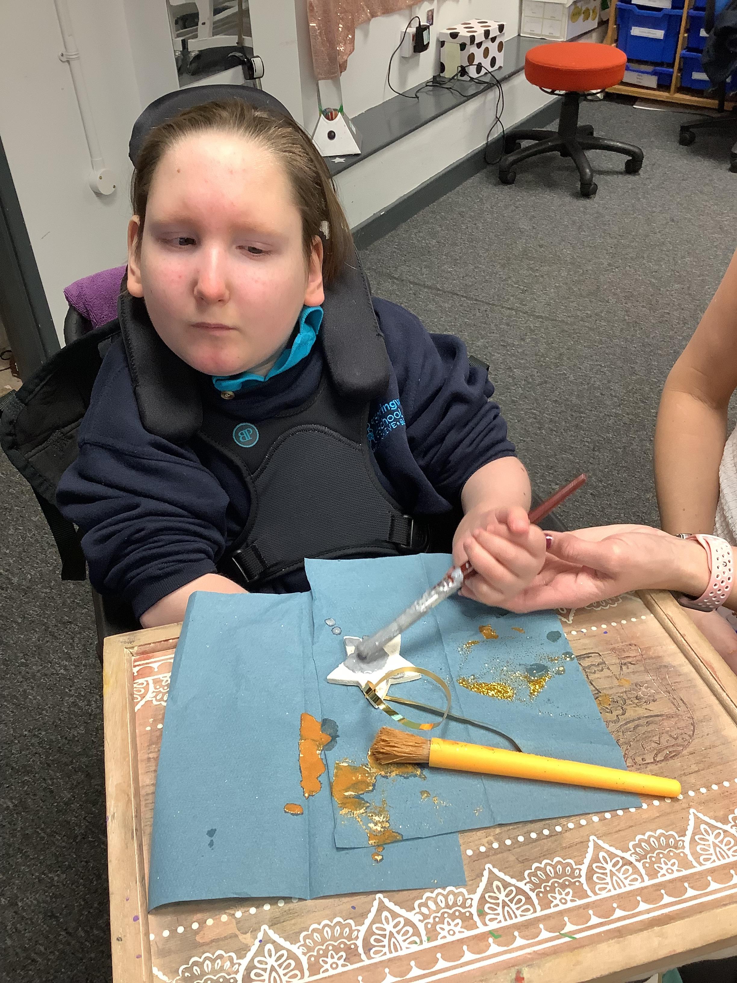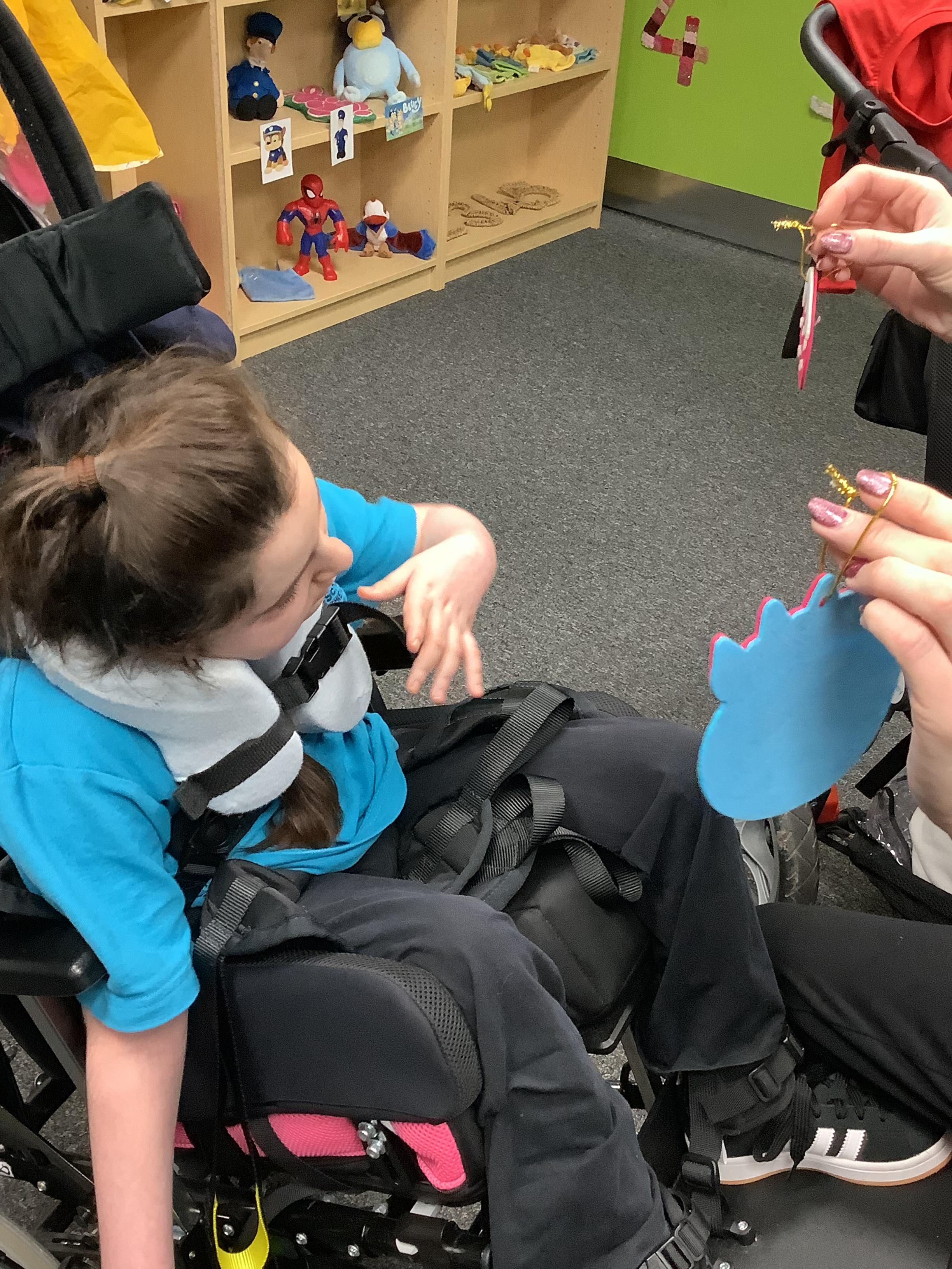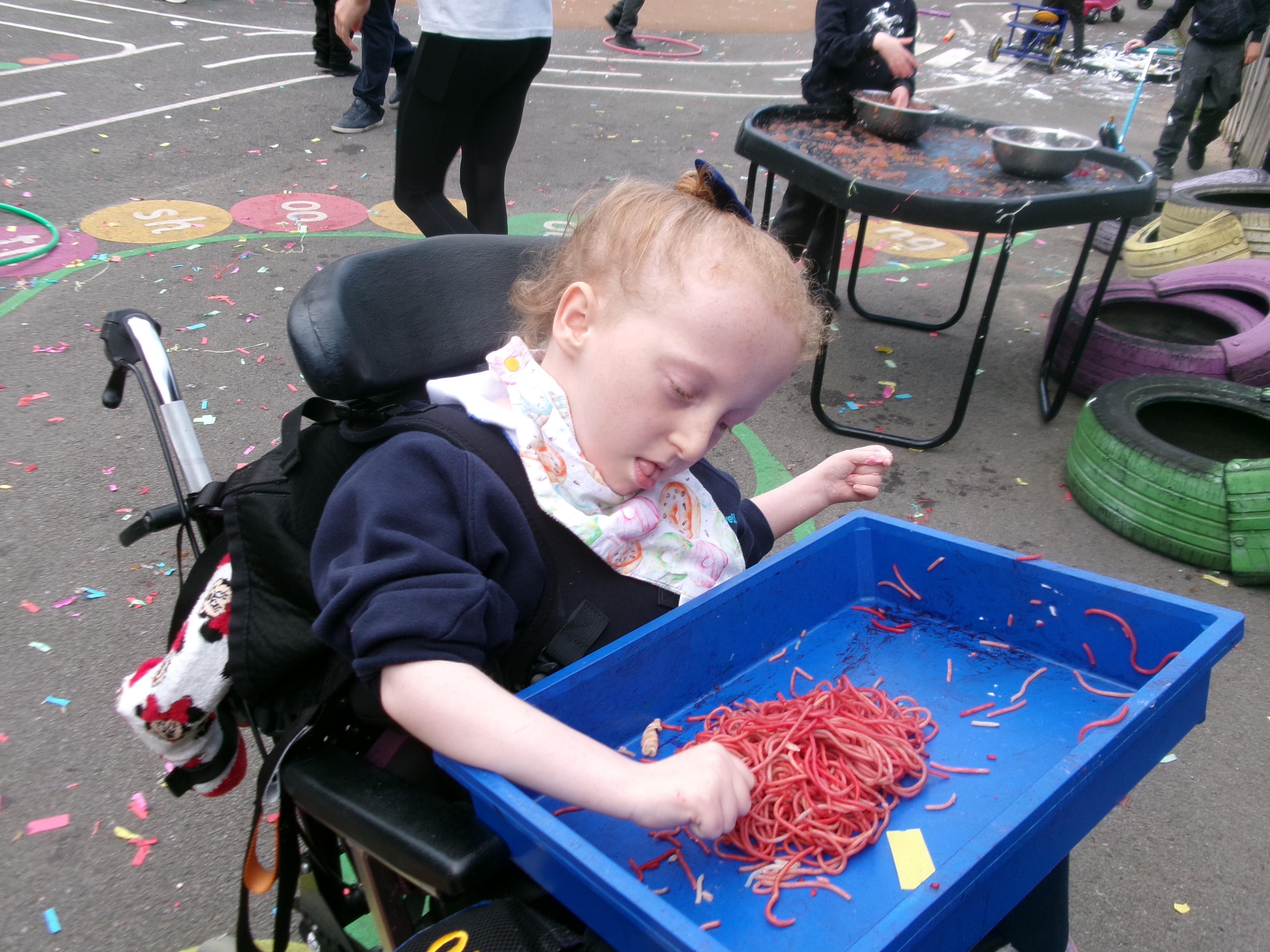 Throughout each week we spend time in our standing frames, completing a range of fun activities linked to our targets. We love making marks on the interactive whiteboard and exploring sensory toys, making choices to indicate our preferred items.