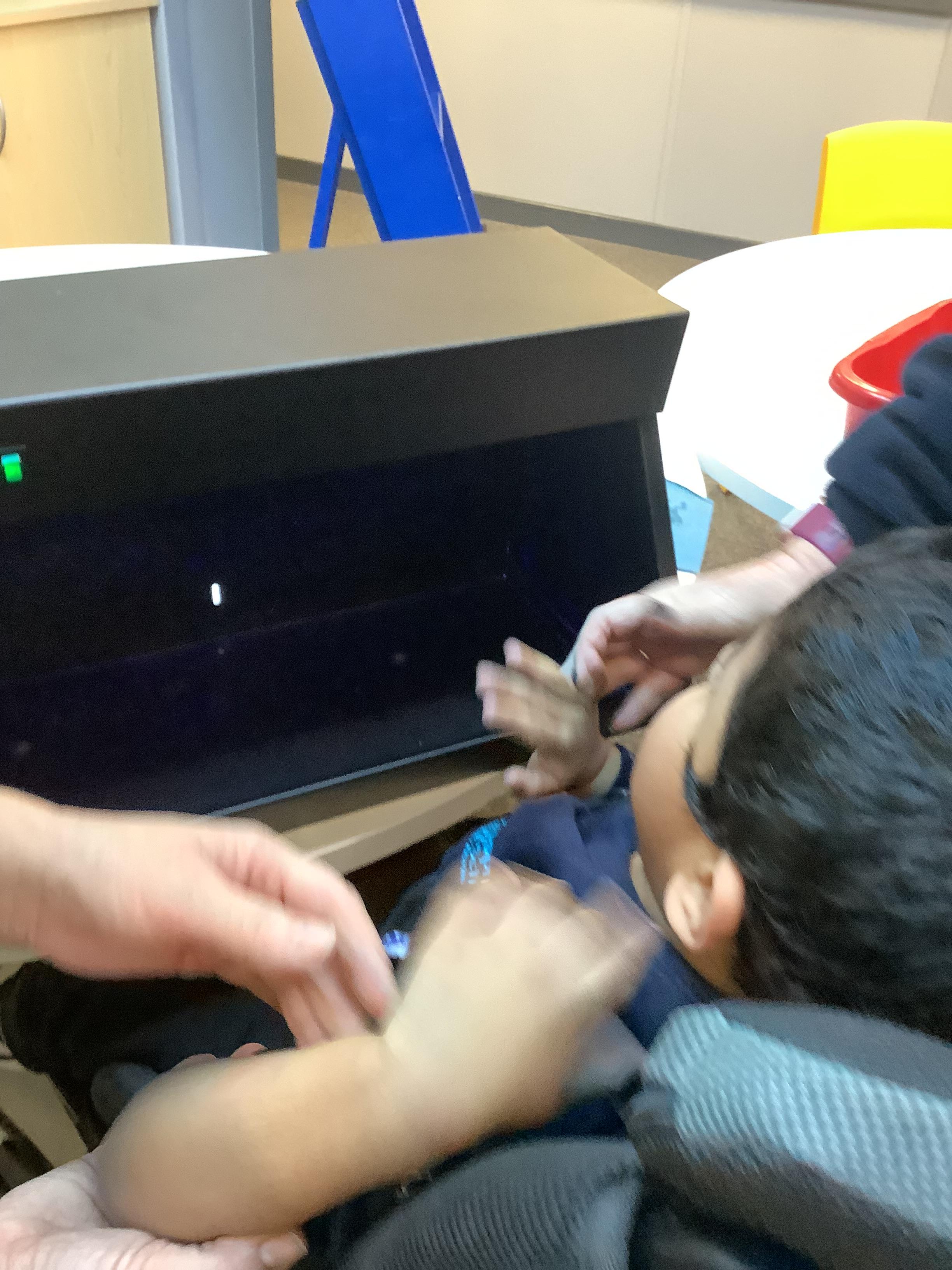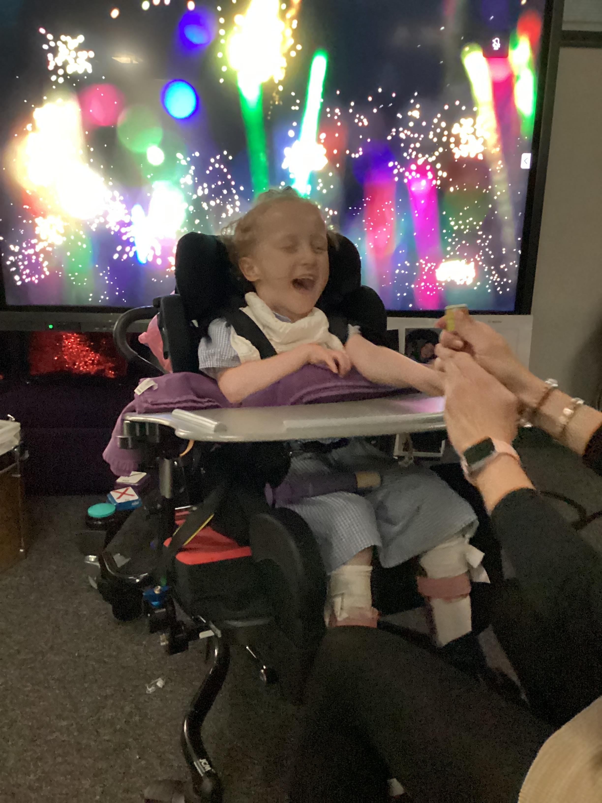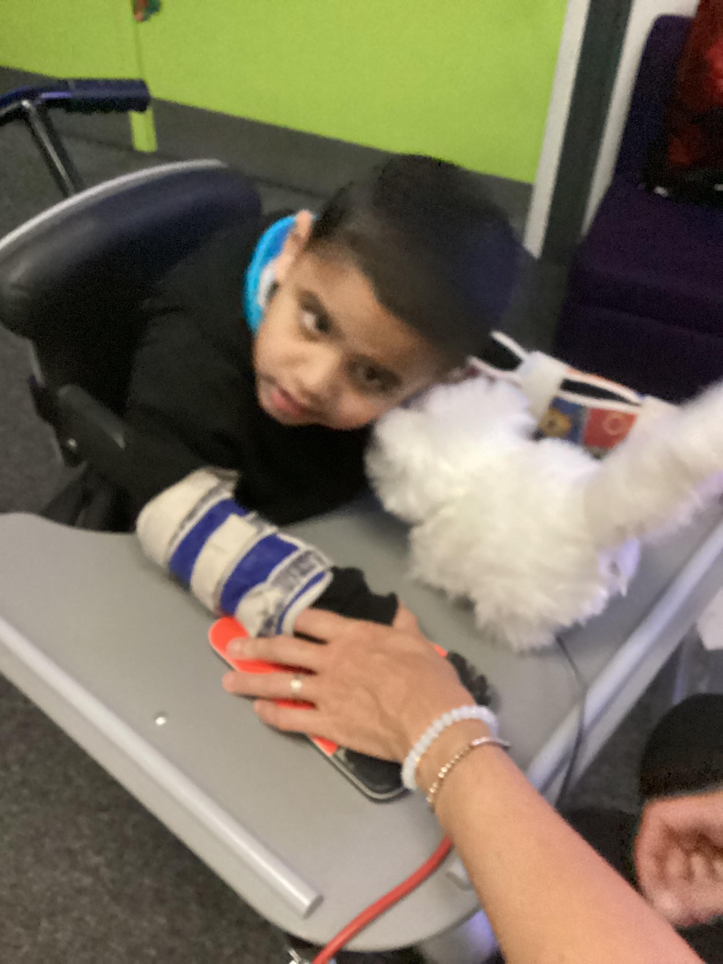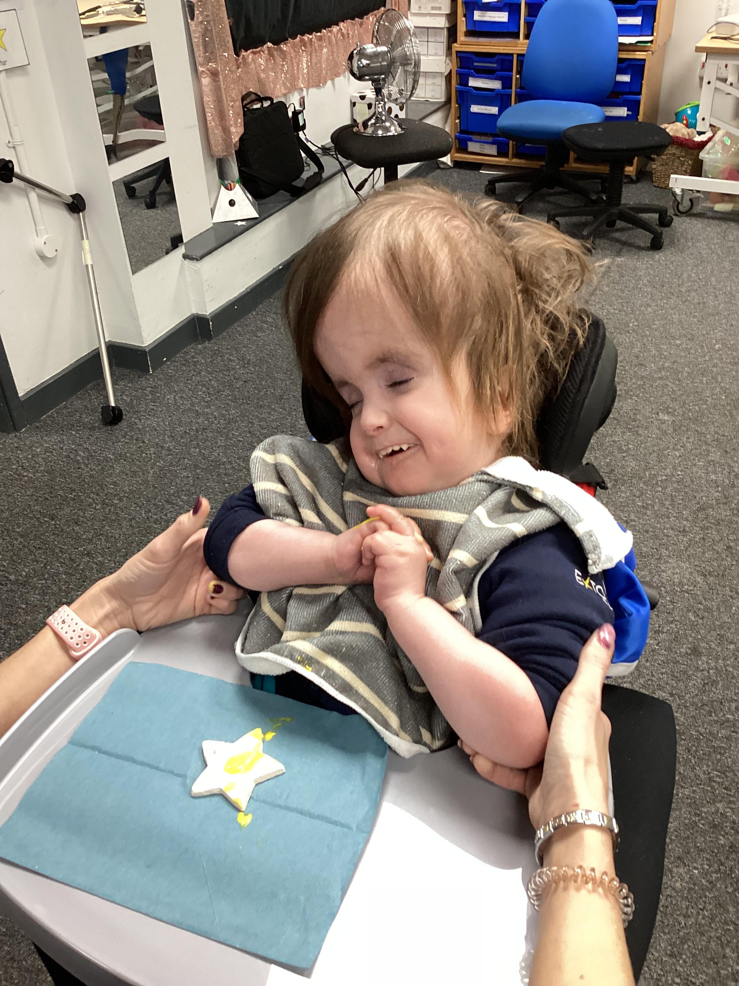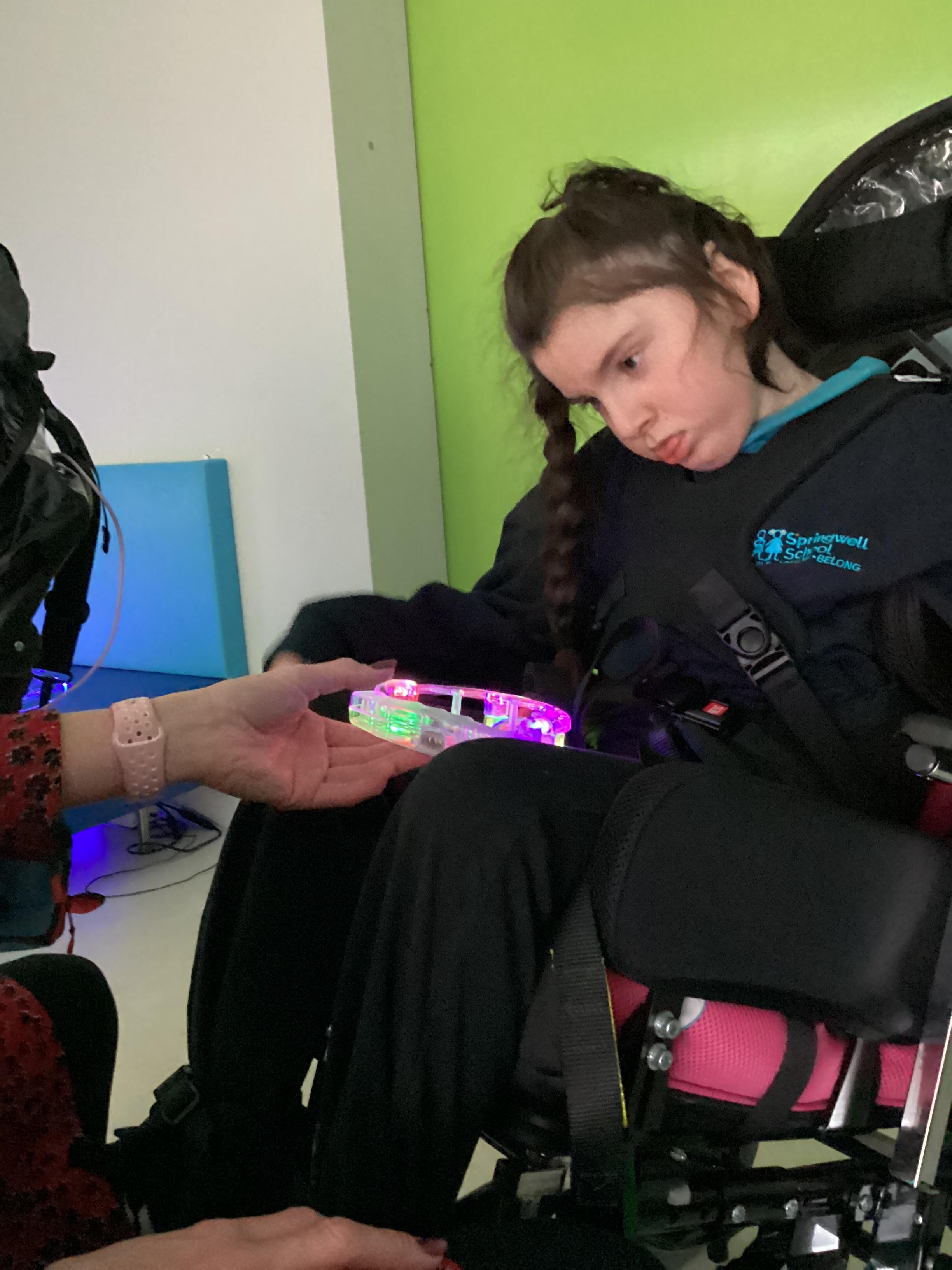 Throughout each week we spend time in our standing frames, completing a range of fun activities linked to our targets. We love making marks on the interactive whiteboard and exploring sensory toys, making choices to indicate our preferred items.