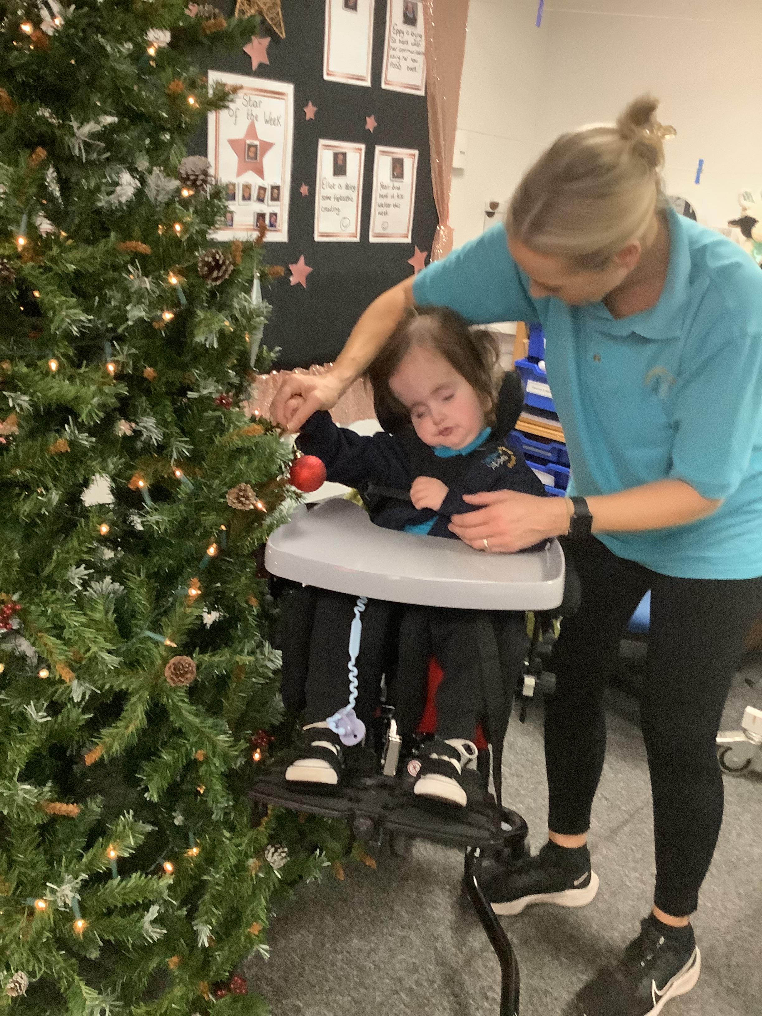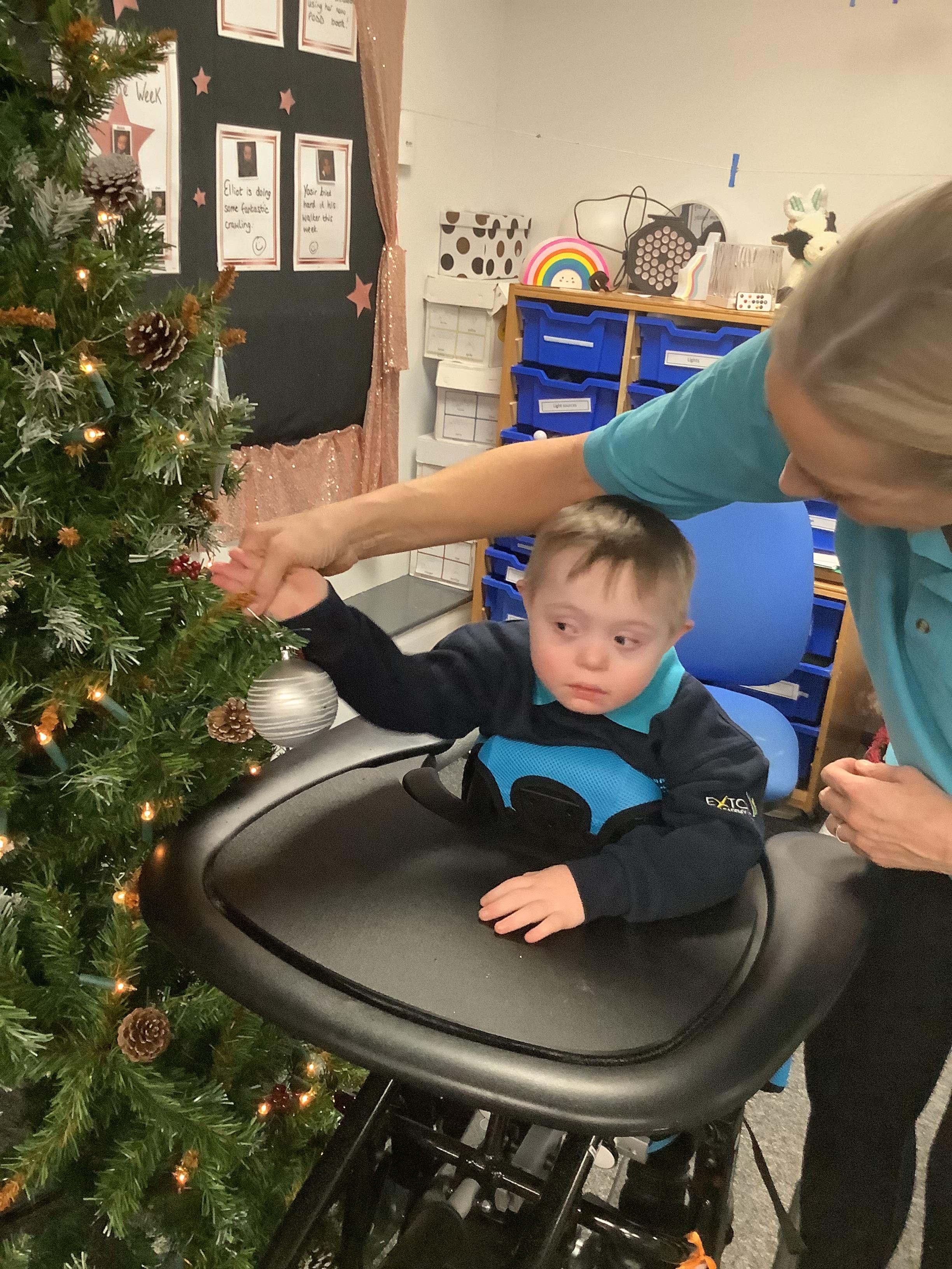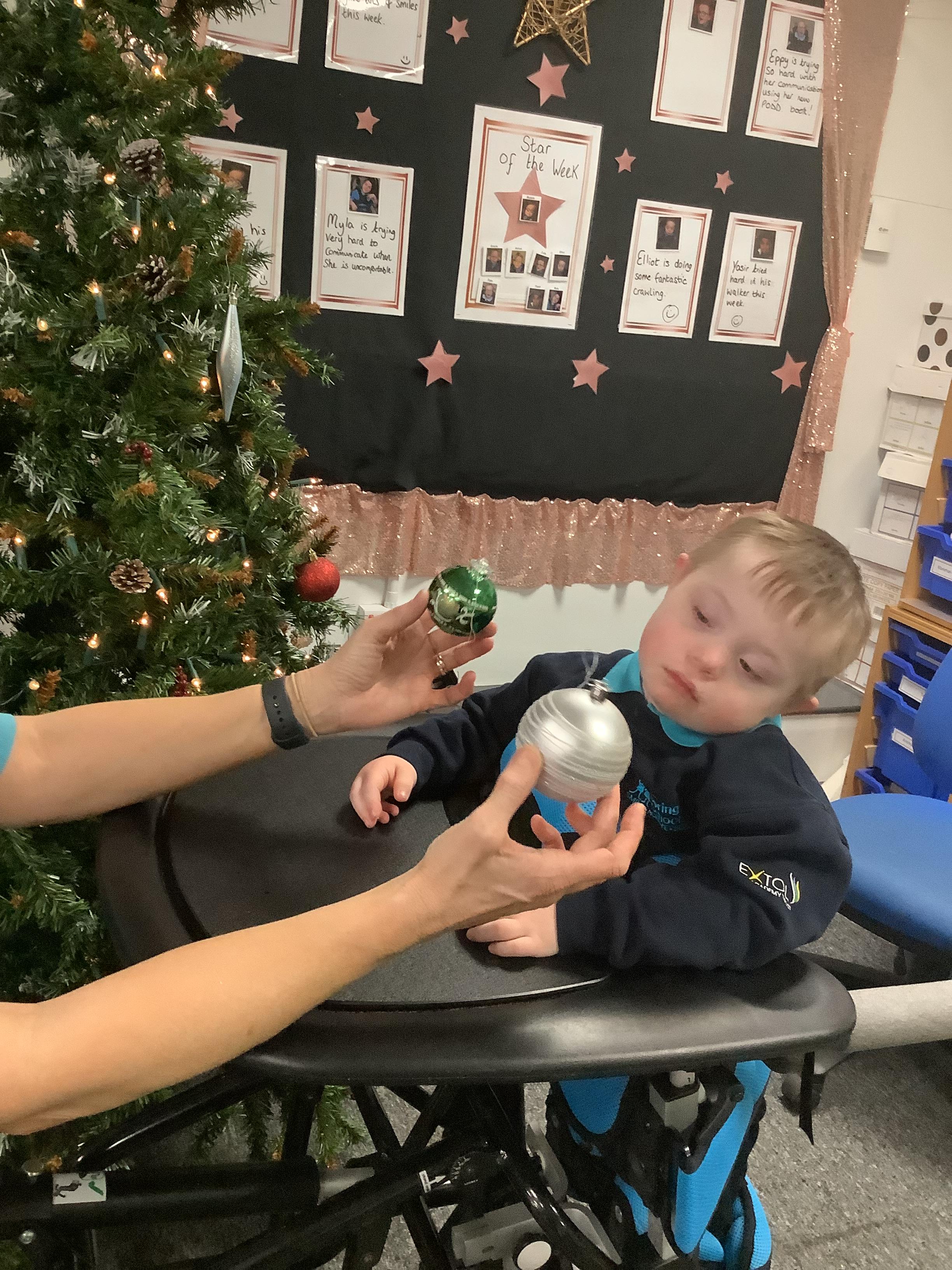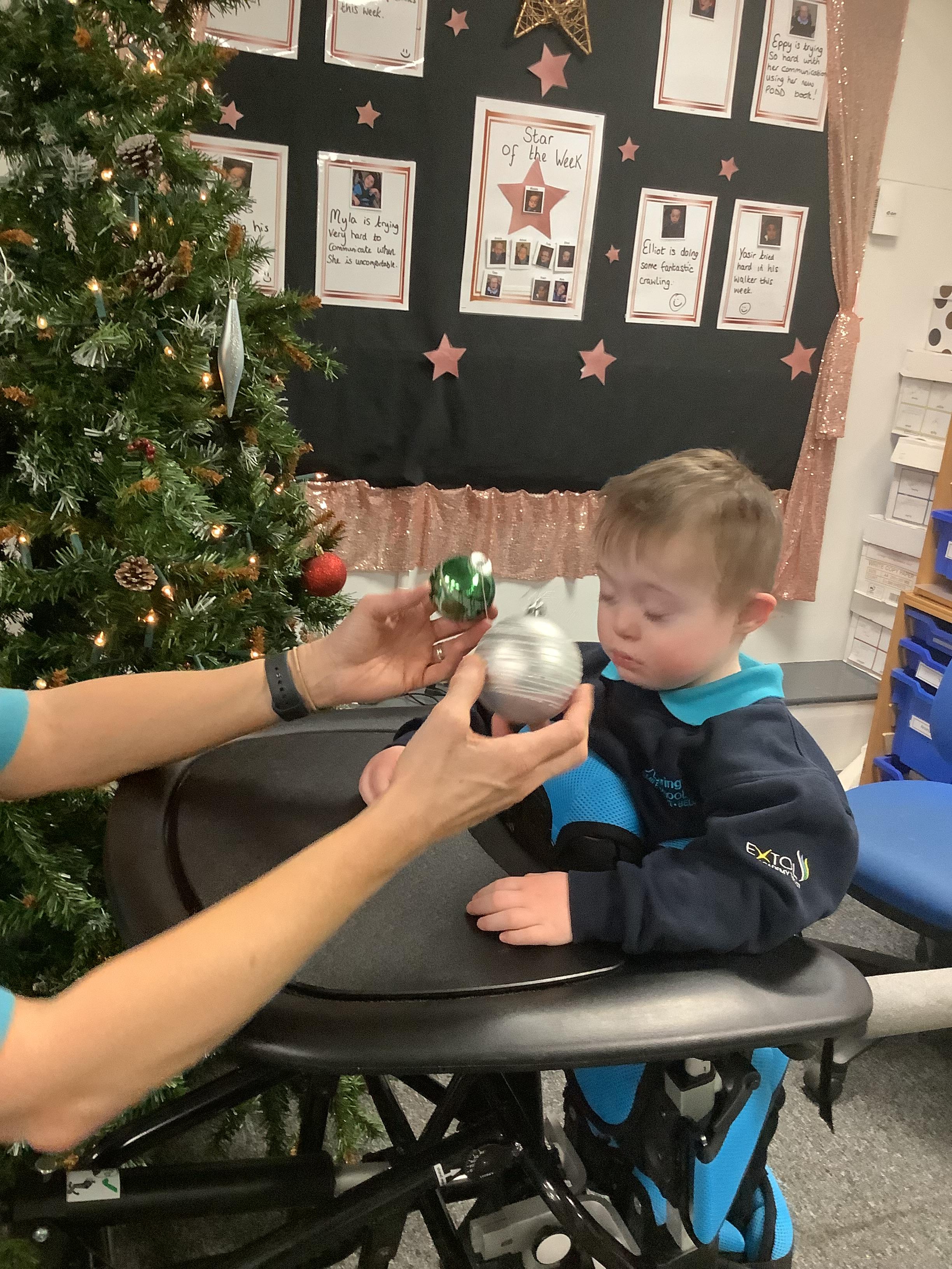 Today we made choices about which baubles we wanted to put on to the Christmas tree. We explored with our eyes and our hands and then worked together to place them on the tree. Didn't we do a fabulous job!?