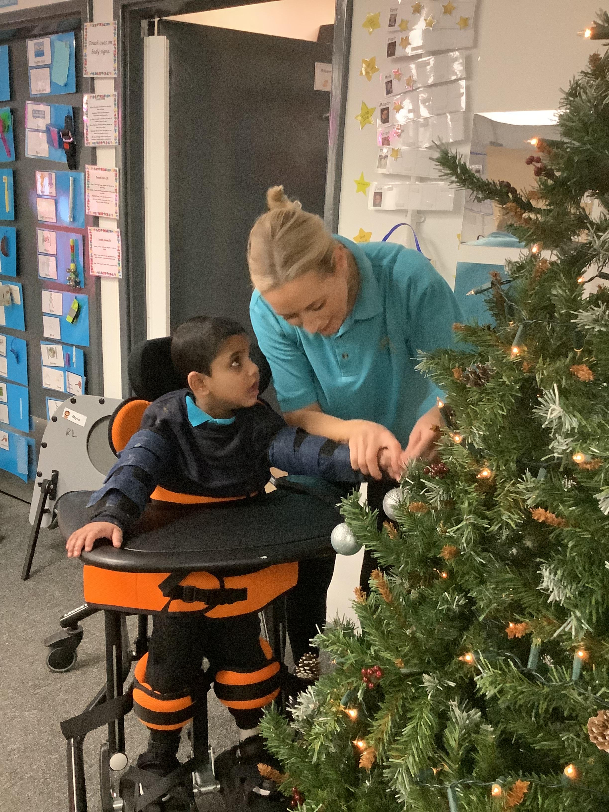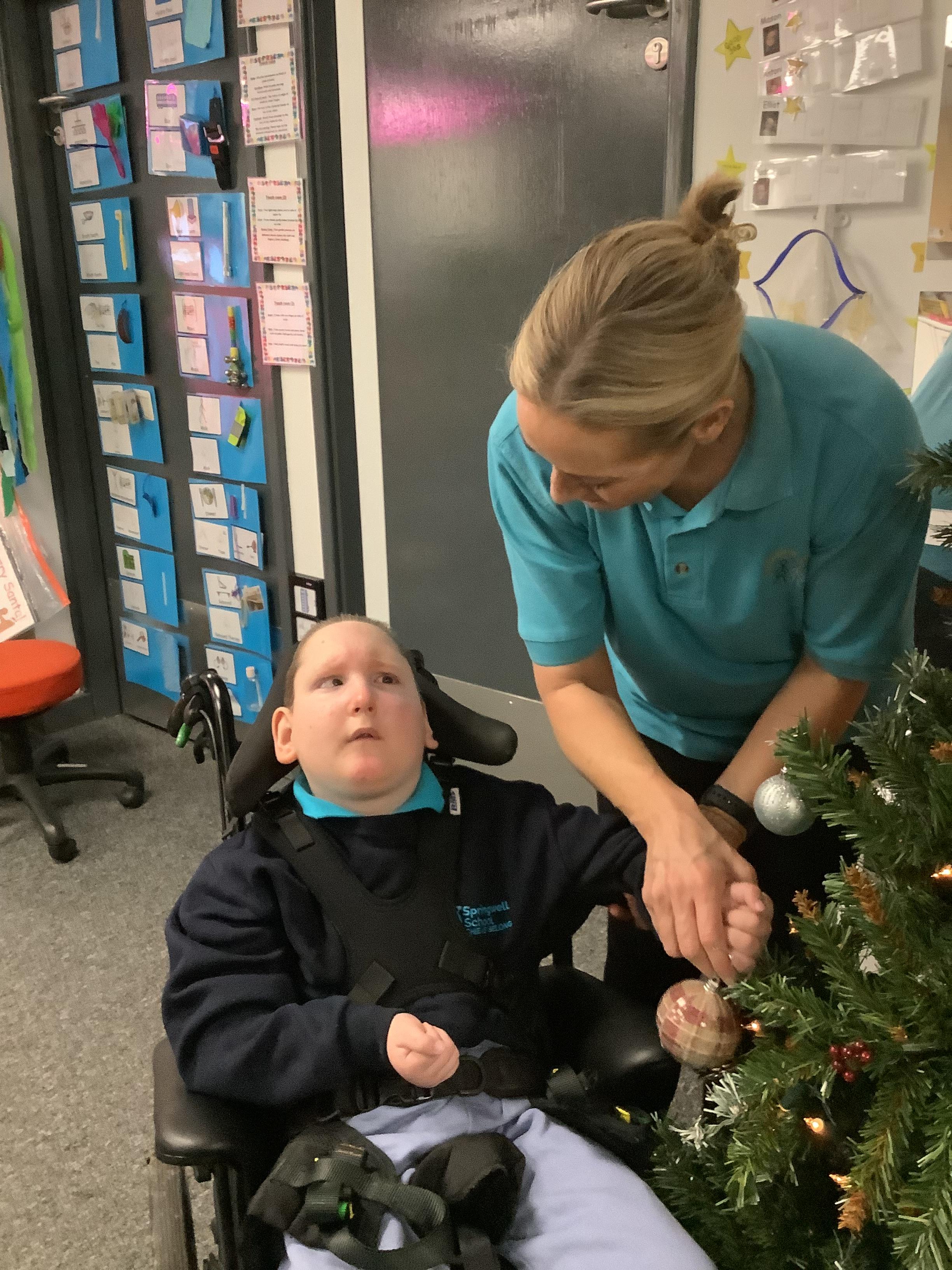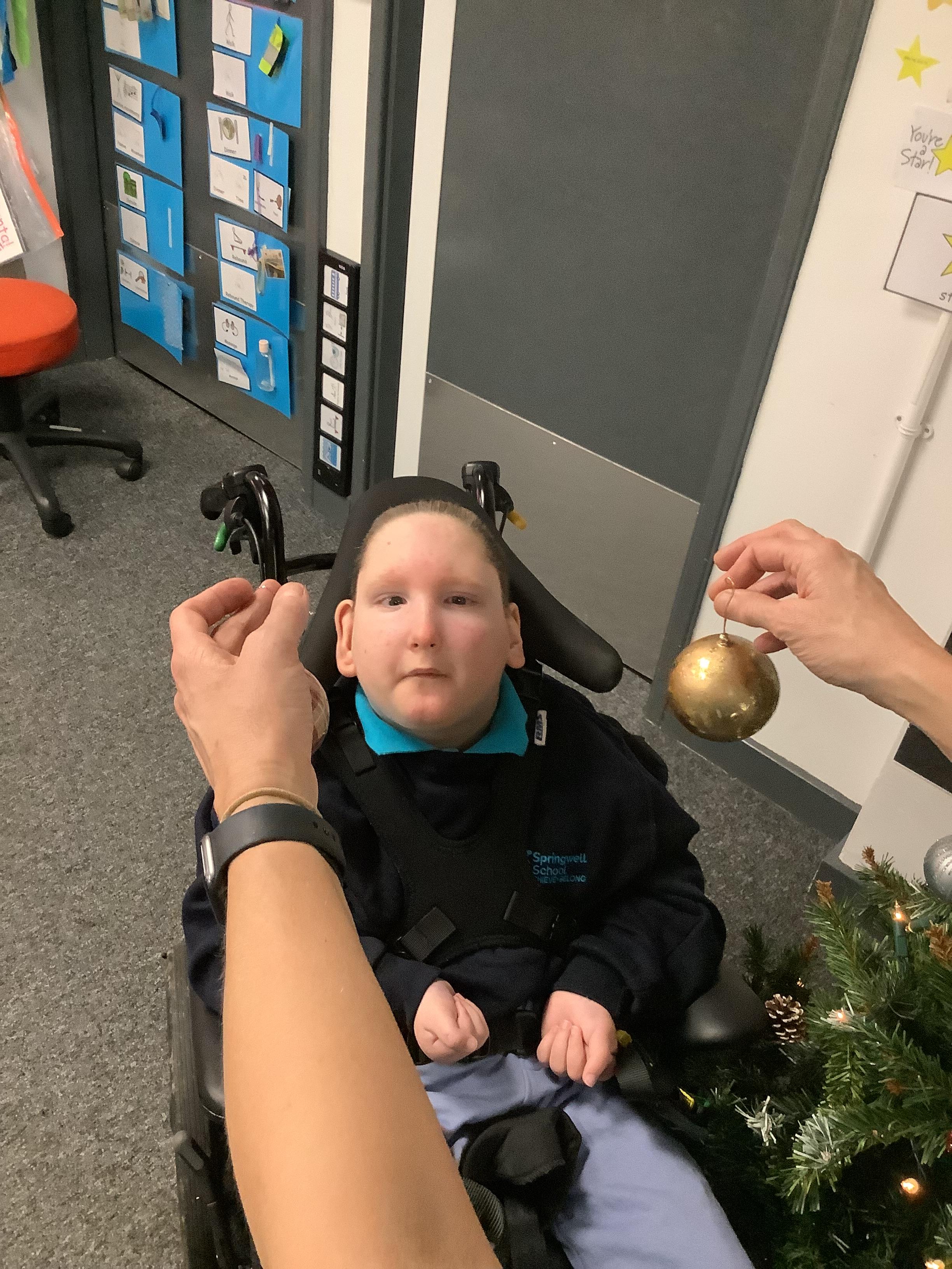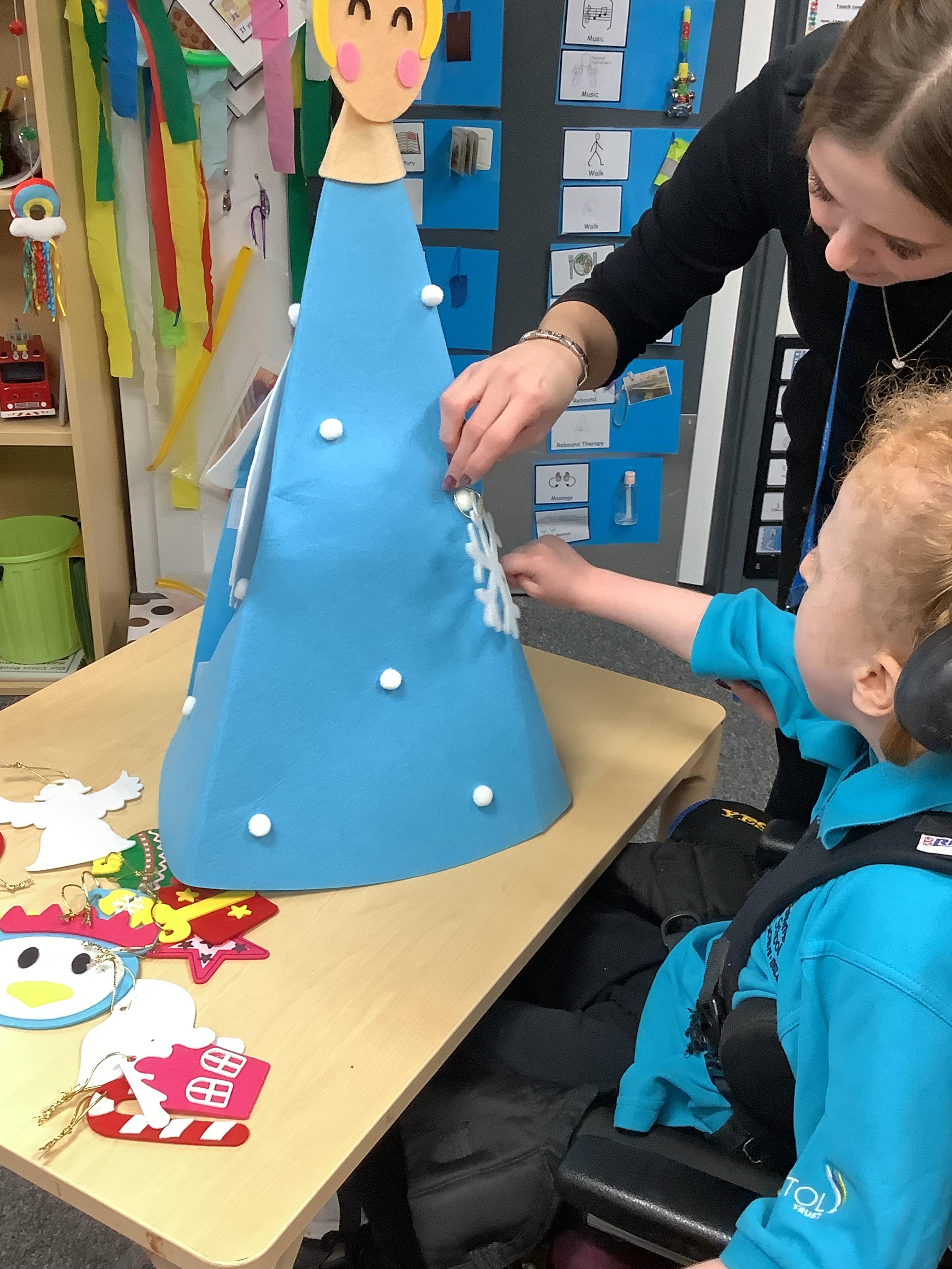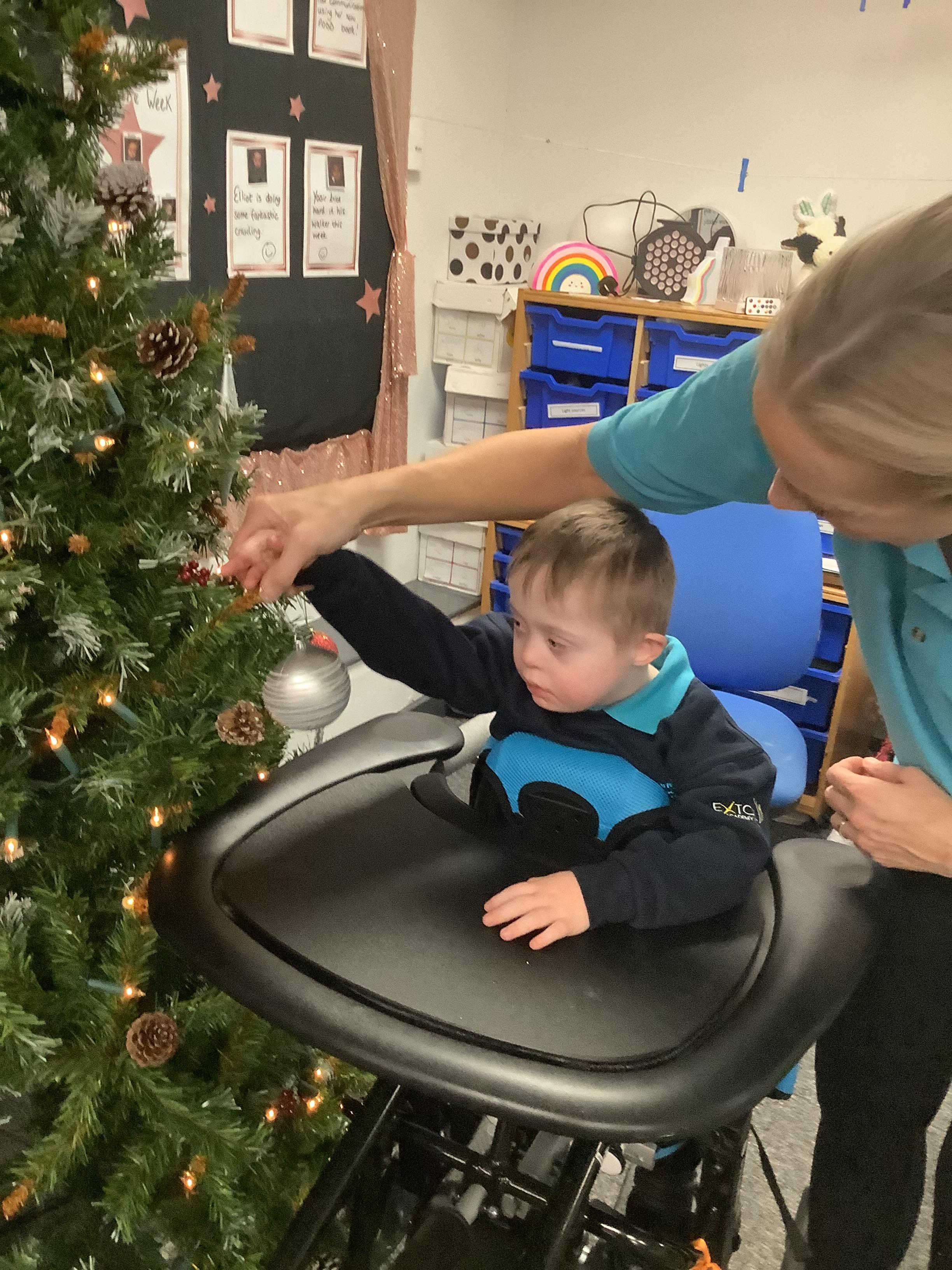 Today we made choices about which baubles we wanted to put on to the Christmas tree. We explored with our eyes and our hands and then worked together to place them on the tree. Didn't we do a fabulous job!?