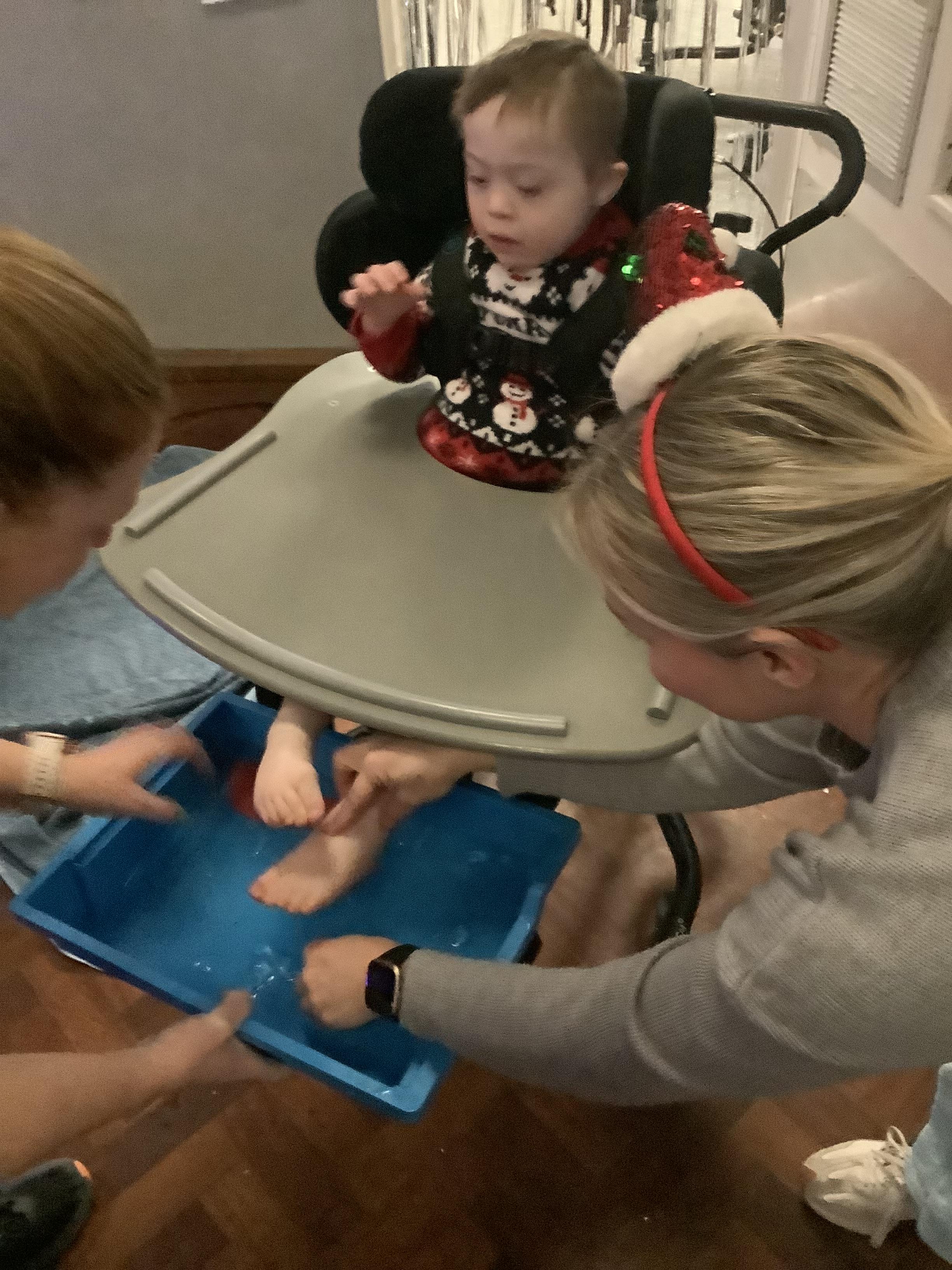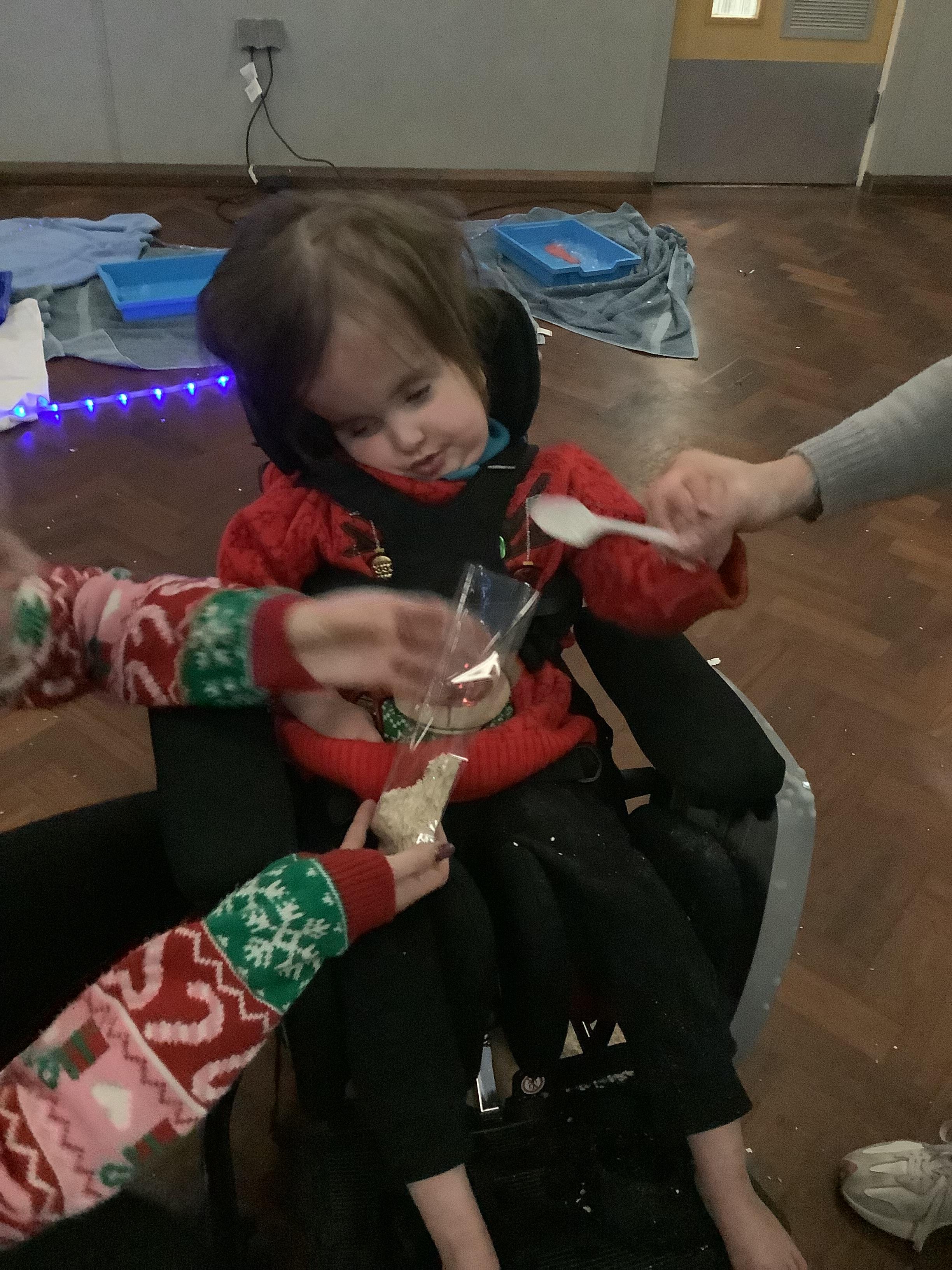This morning we had a load of fun in the hall exploring the Sensory Fayre and all it had to offer. We explored a range of sensory materials, created some special reindeer dust to sprinkle on the lawn on Christmas Eve and had our feet painted to create a beautiful piece of art work (which will be sent home before the end of term)!