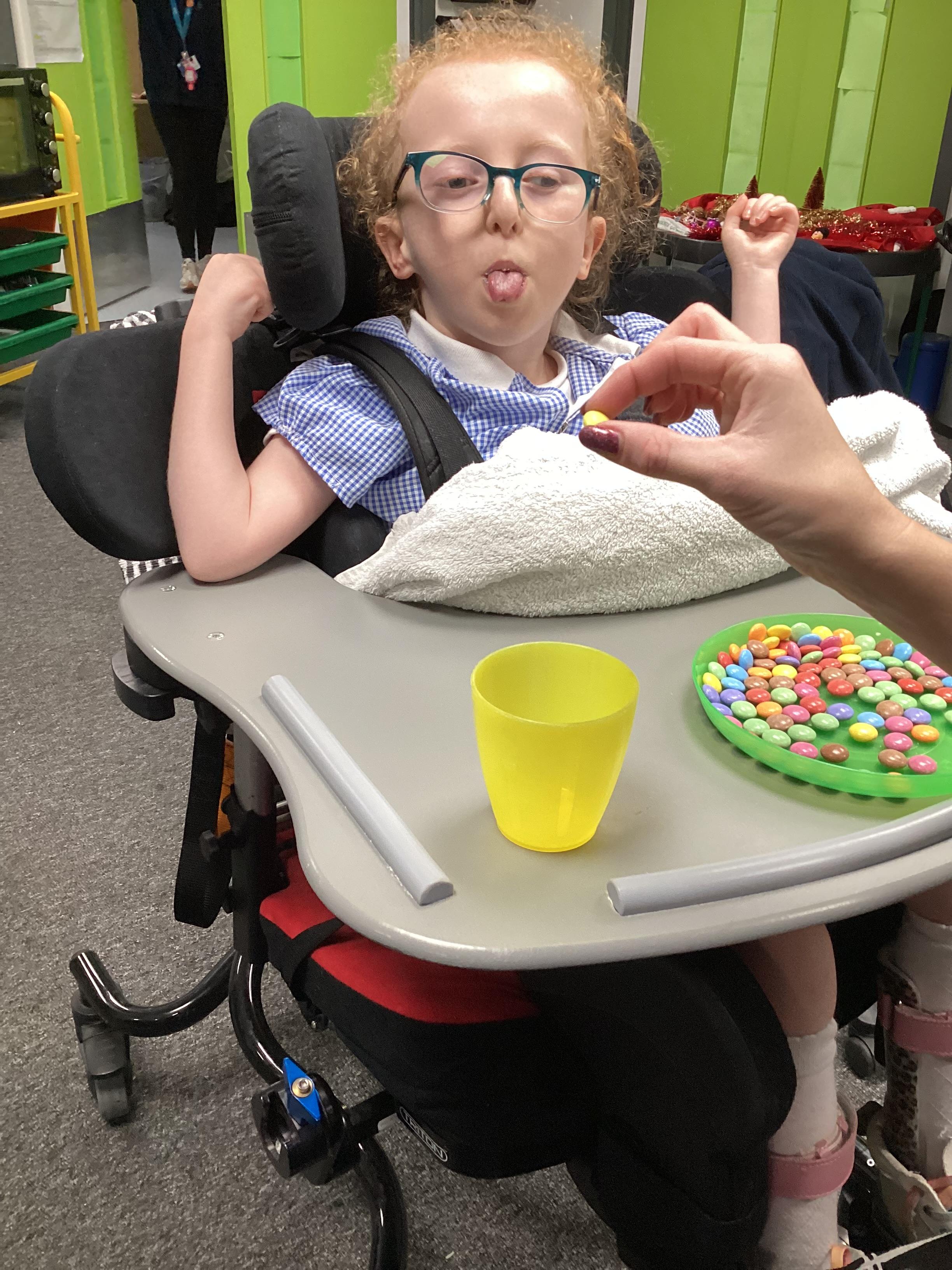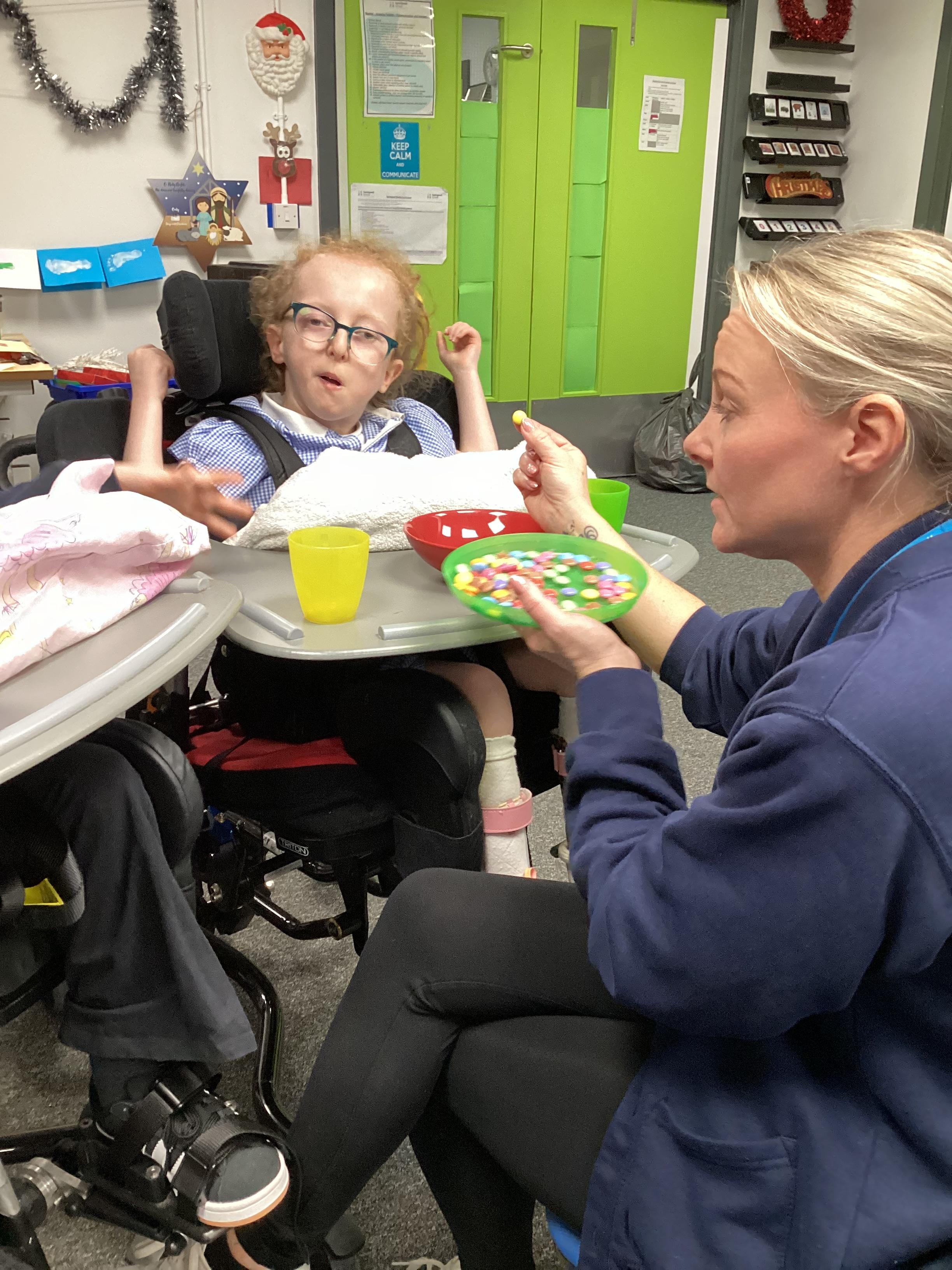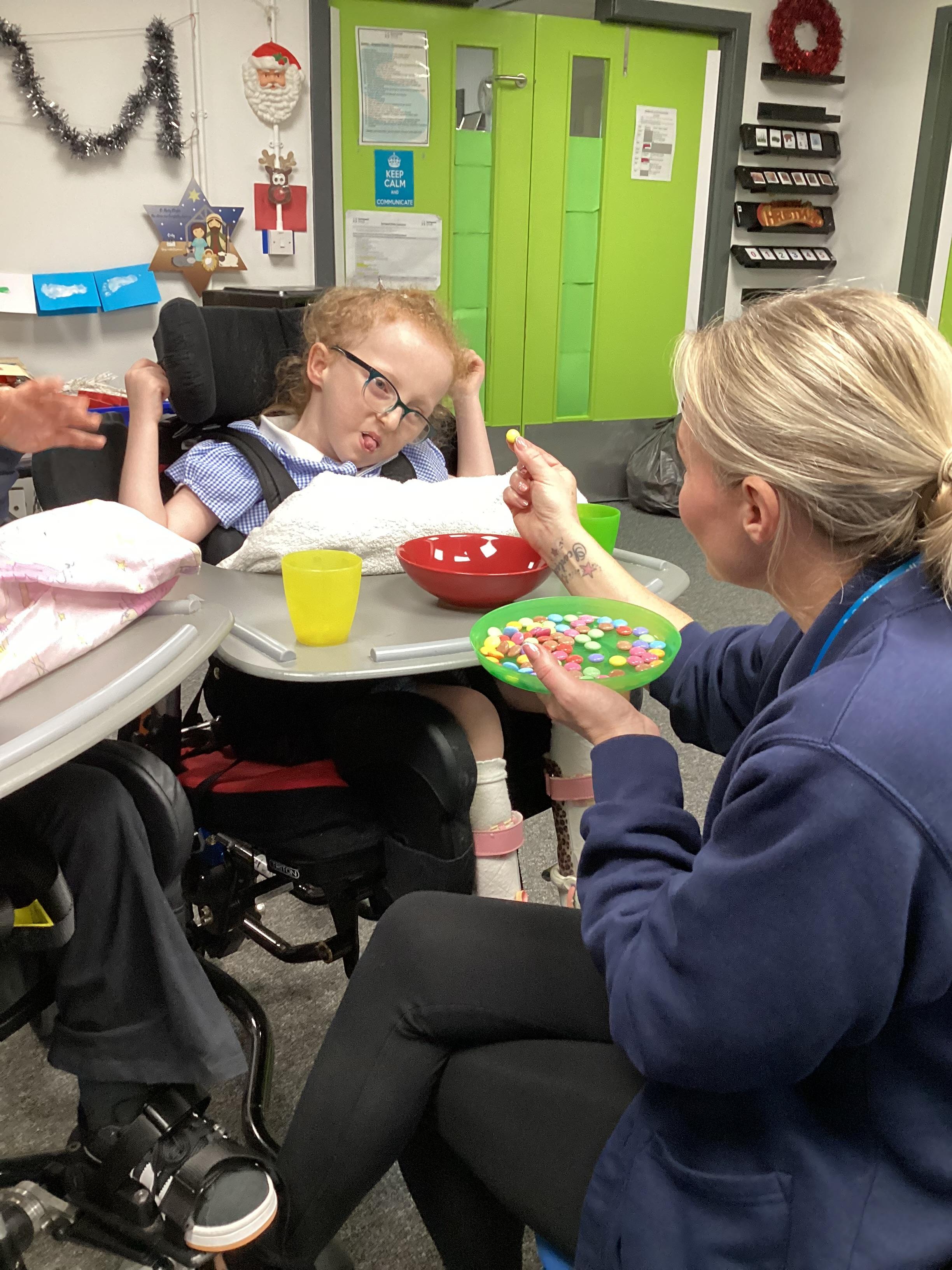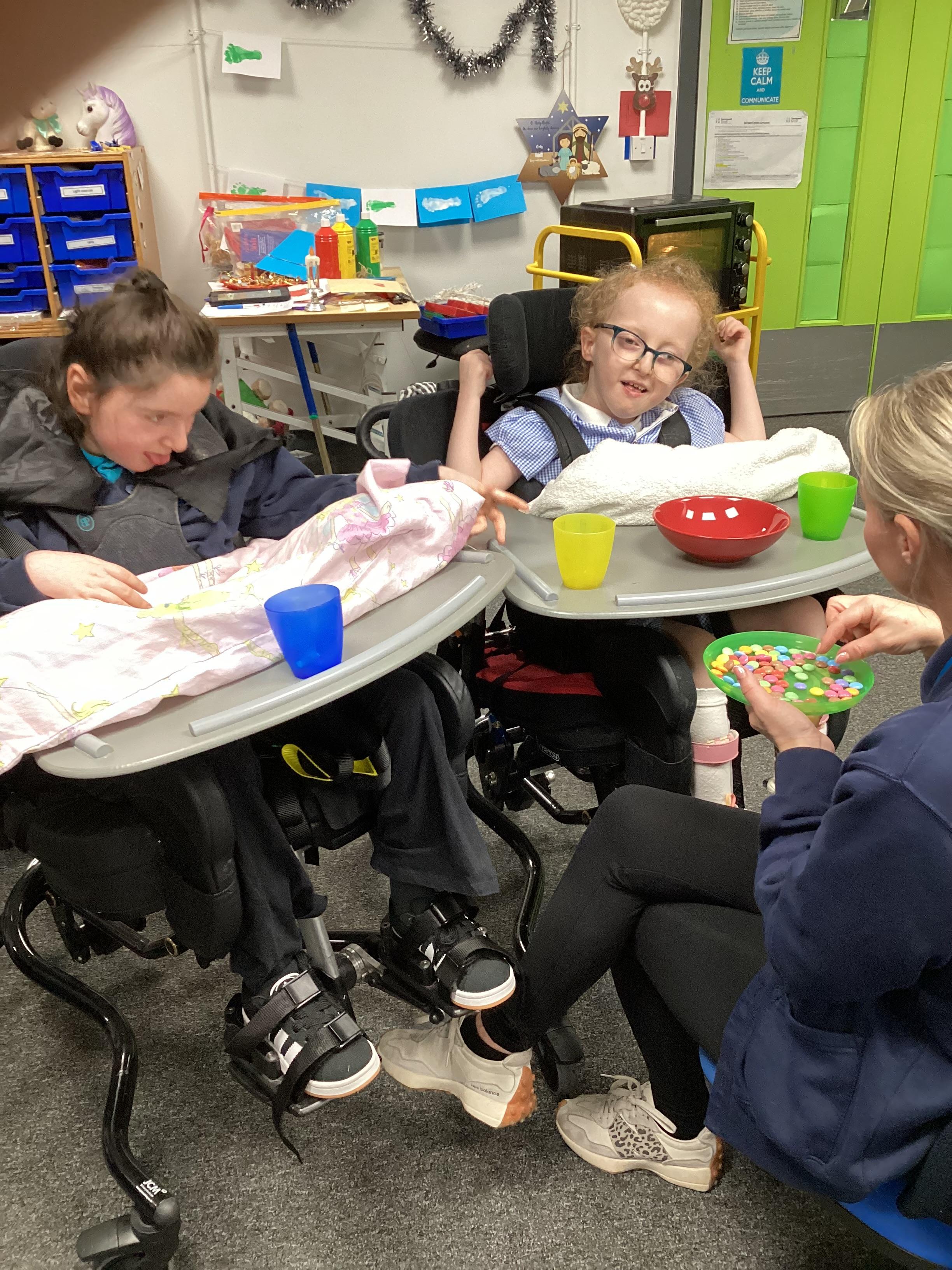 We made chocolate brownie reindeer today in sensory cookery. We did lots of work on colour and some of us helped to match the smarties to the correct coloured cup.
