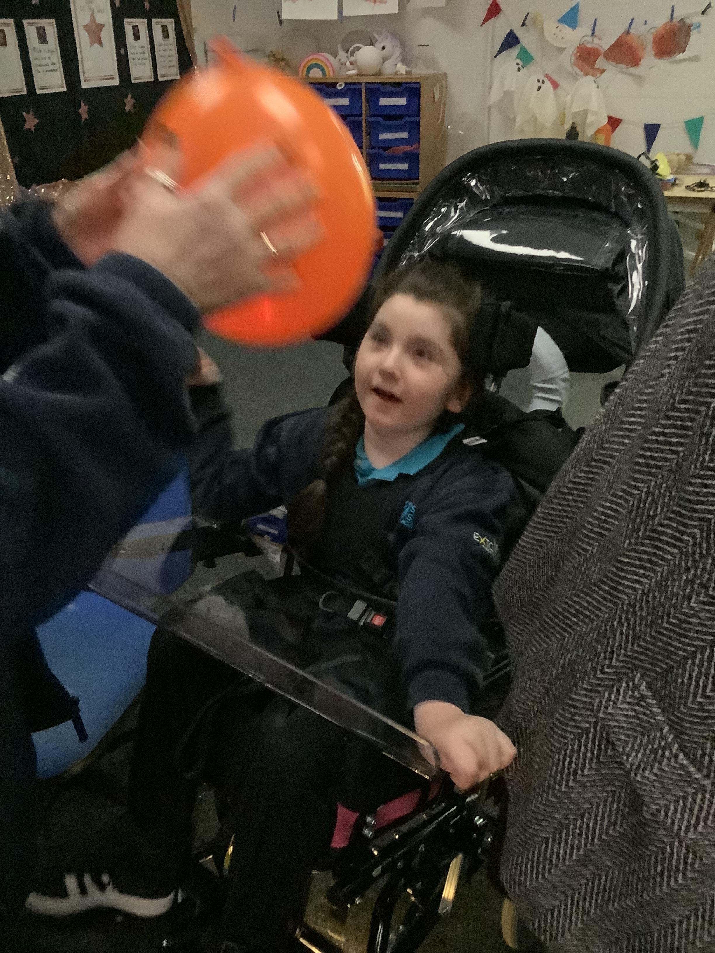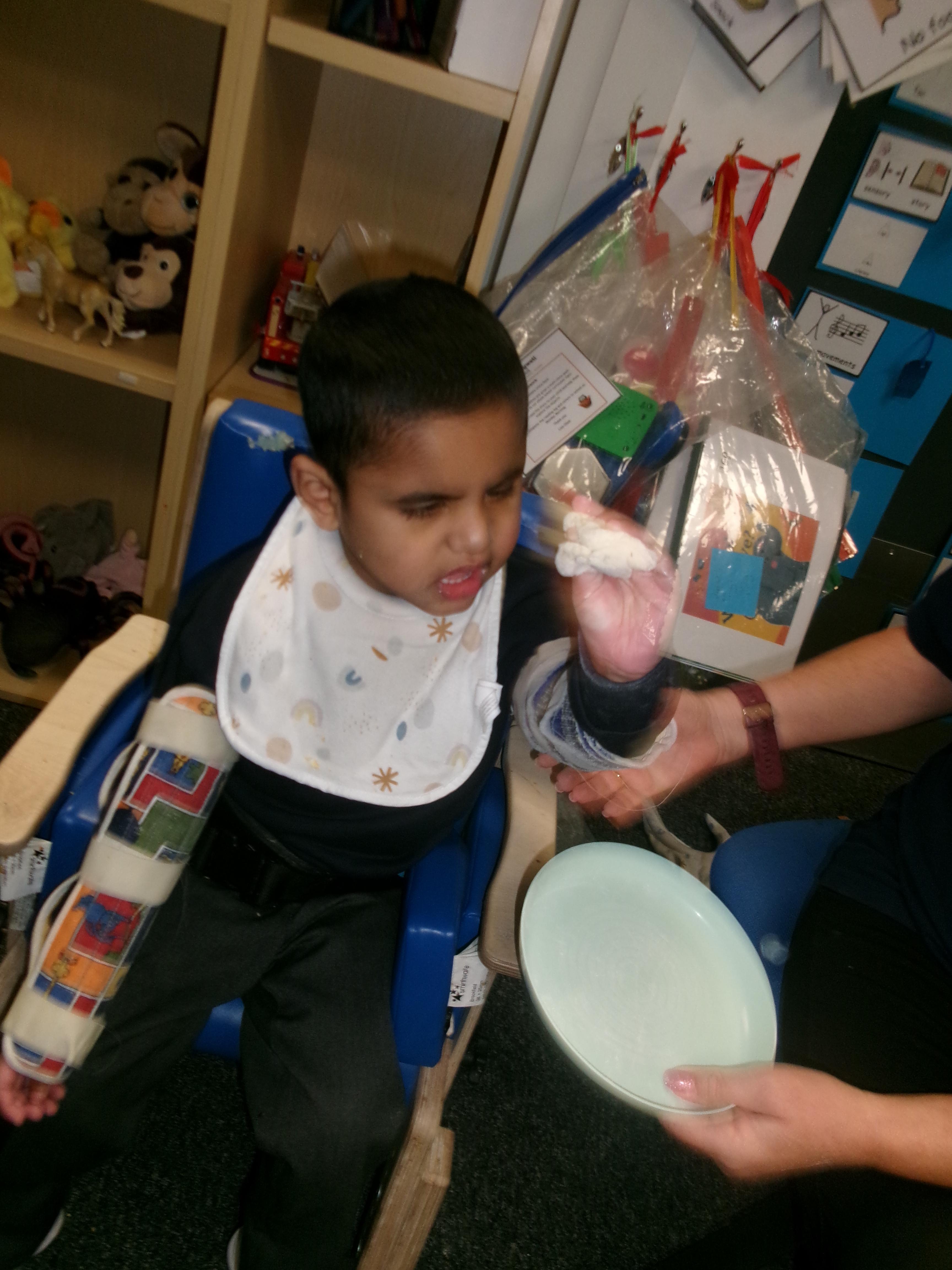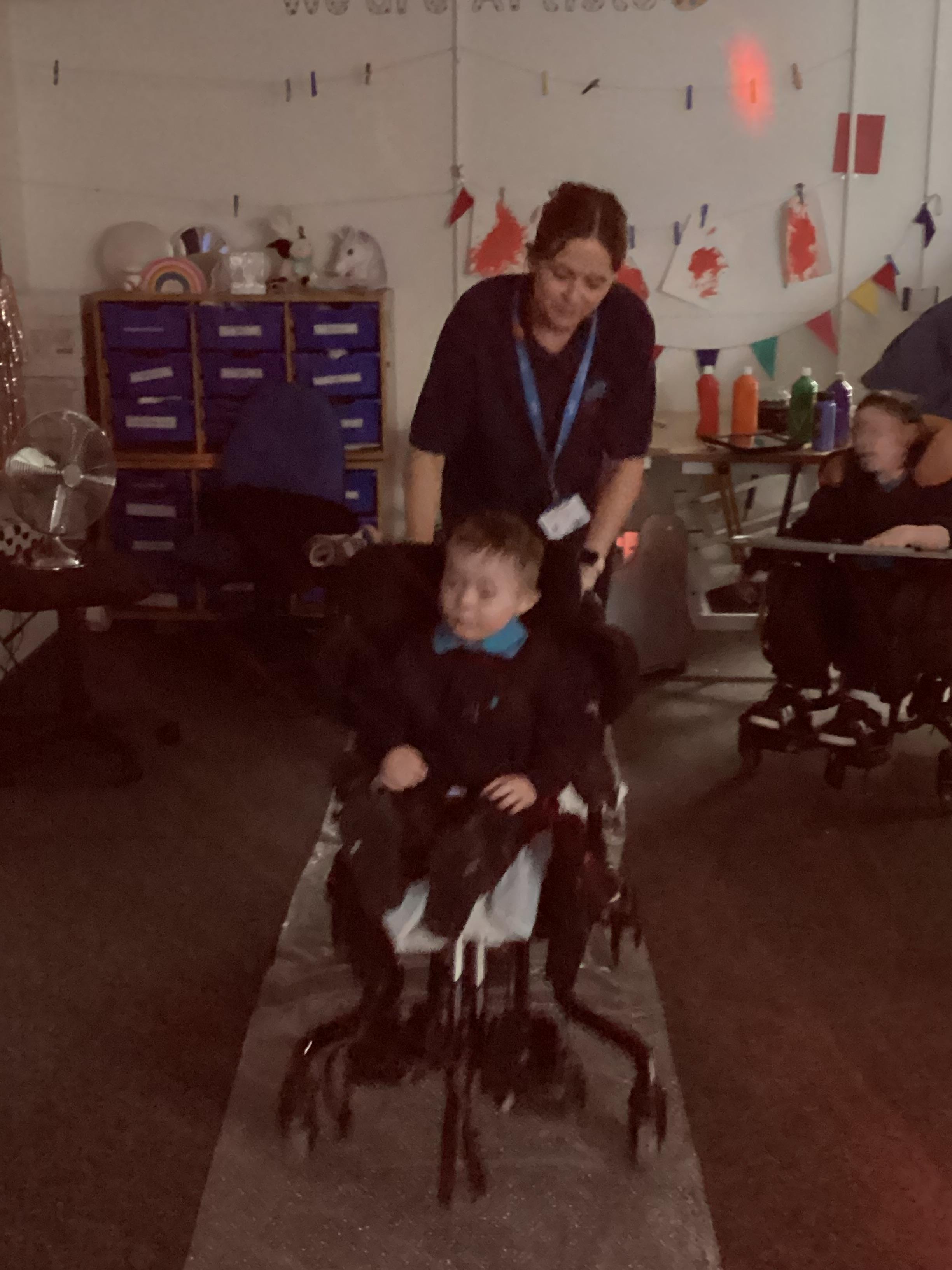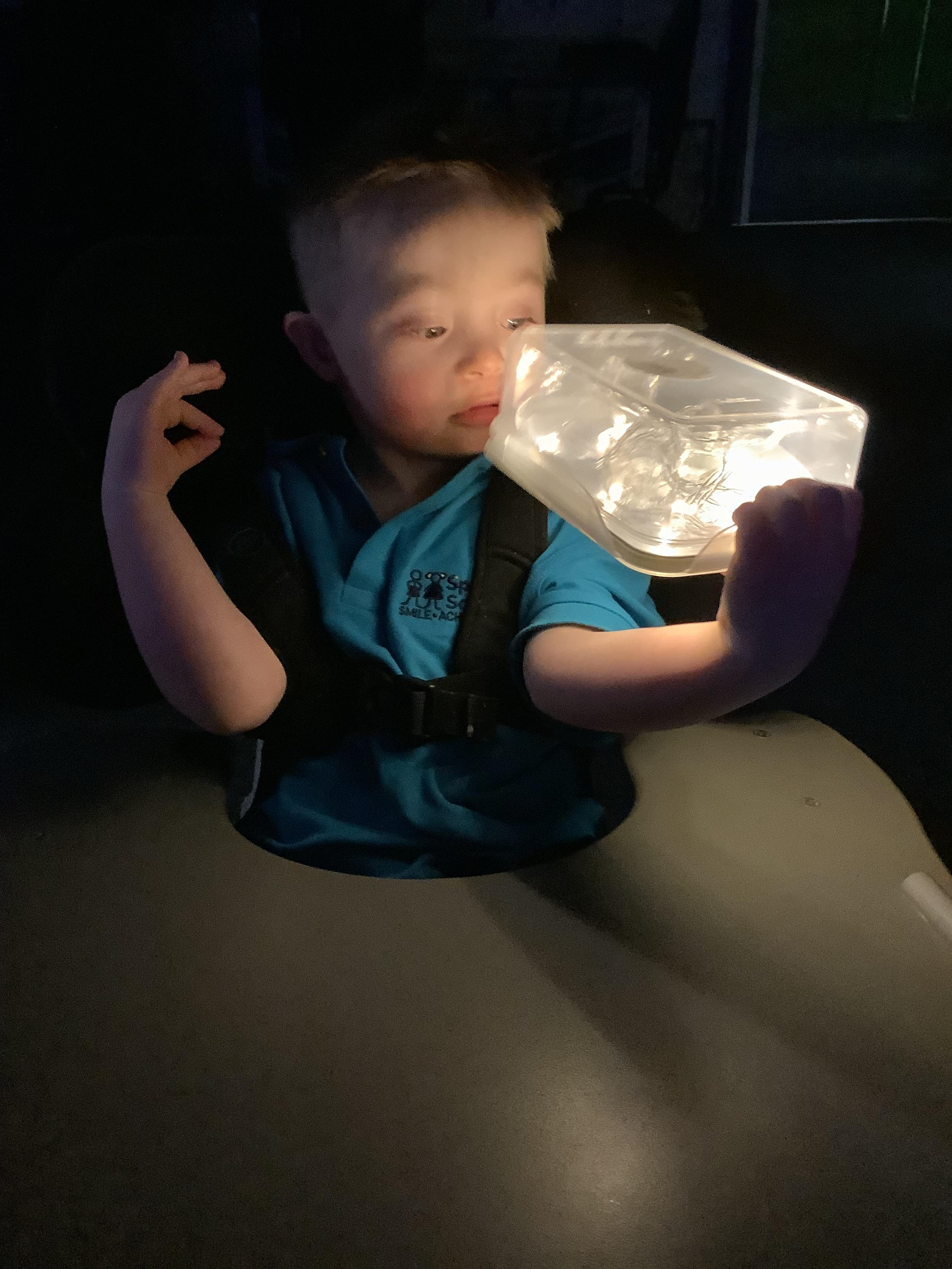 As we move closer to Halloween, we have been listening to a spooky sensory story, exploring the props and anticipating what comes next. We worked hard to demonstrate our want to continue exploring favoured objects and we were very clear in our responses when we didn't particularly like a stimulus.