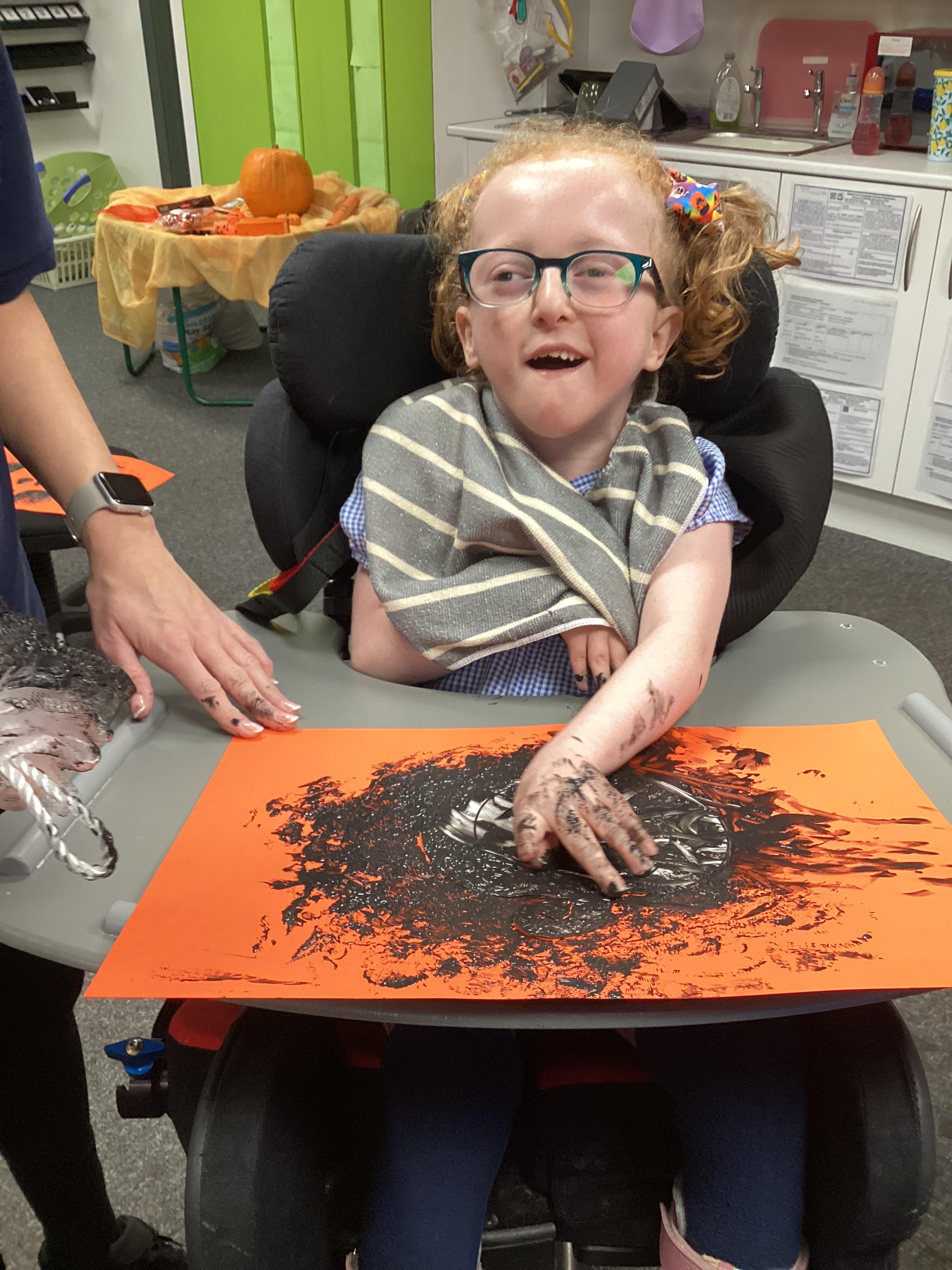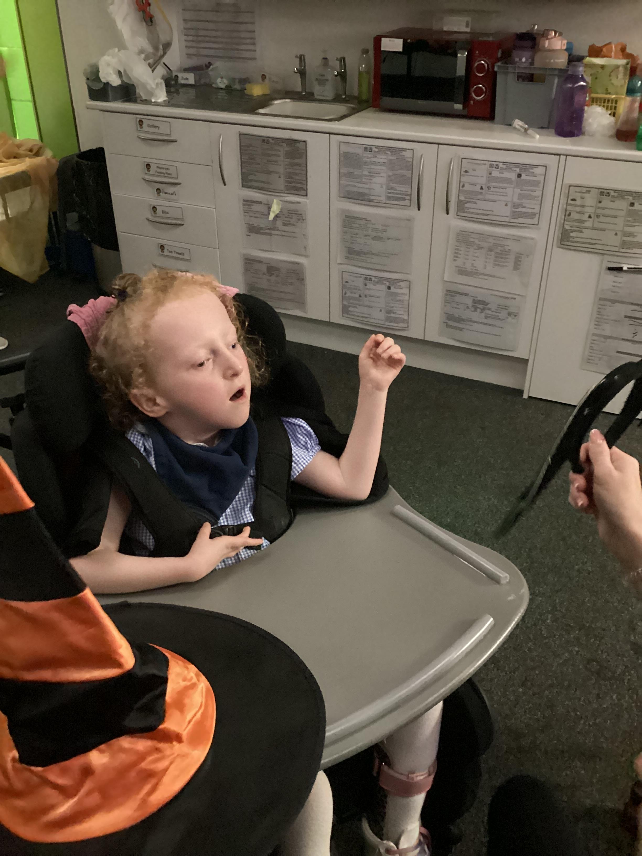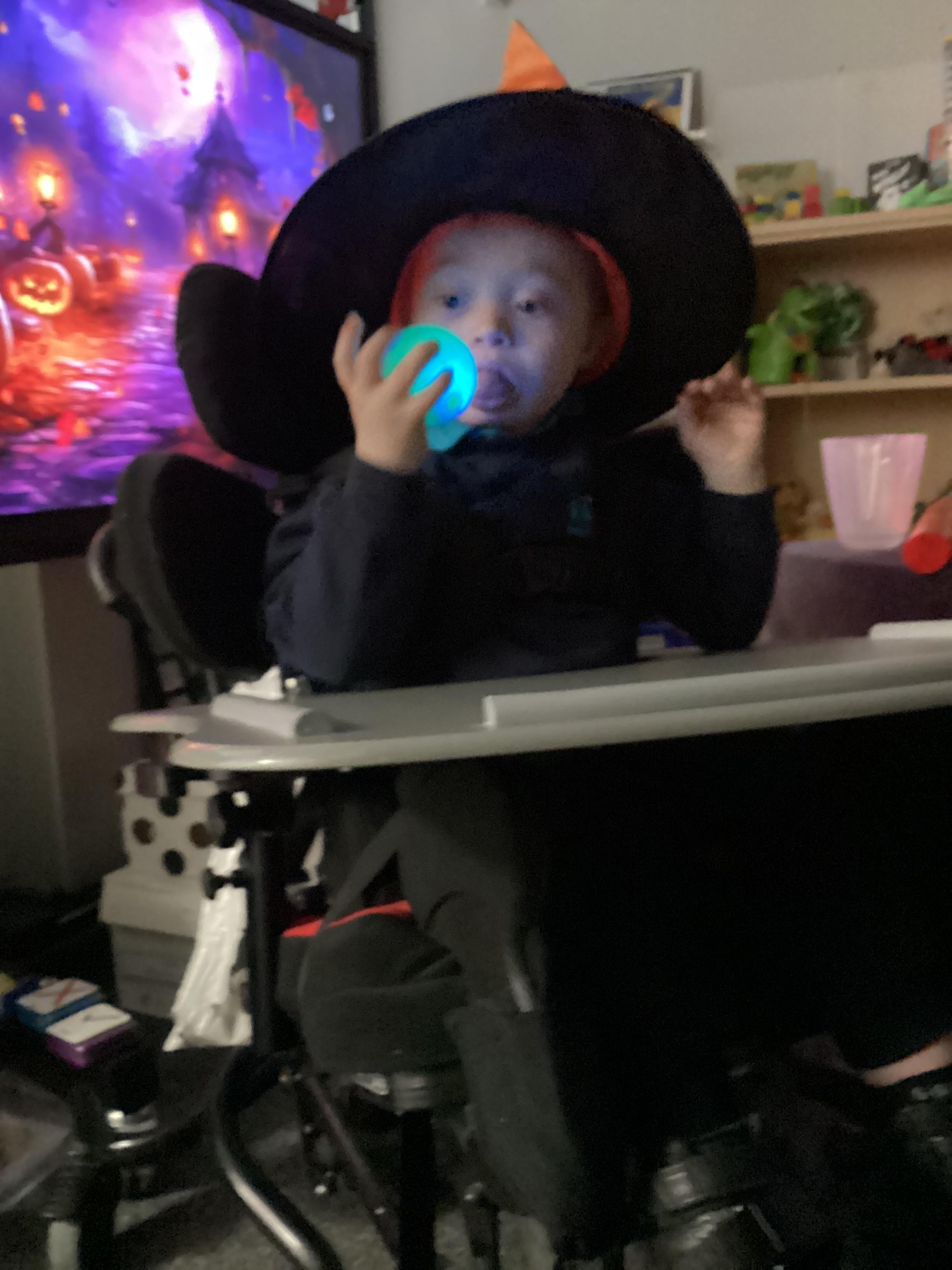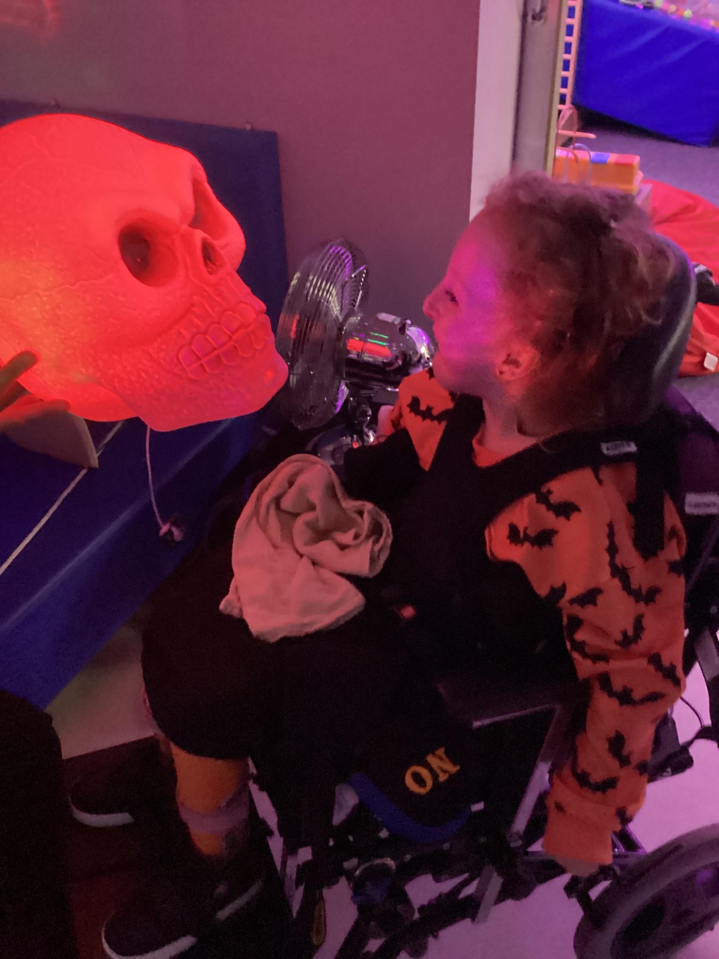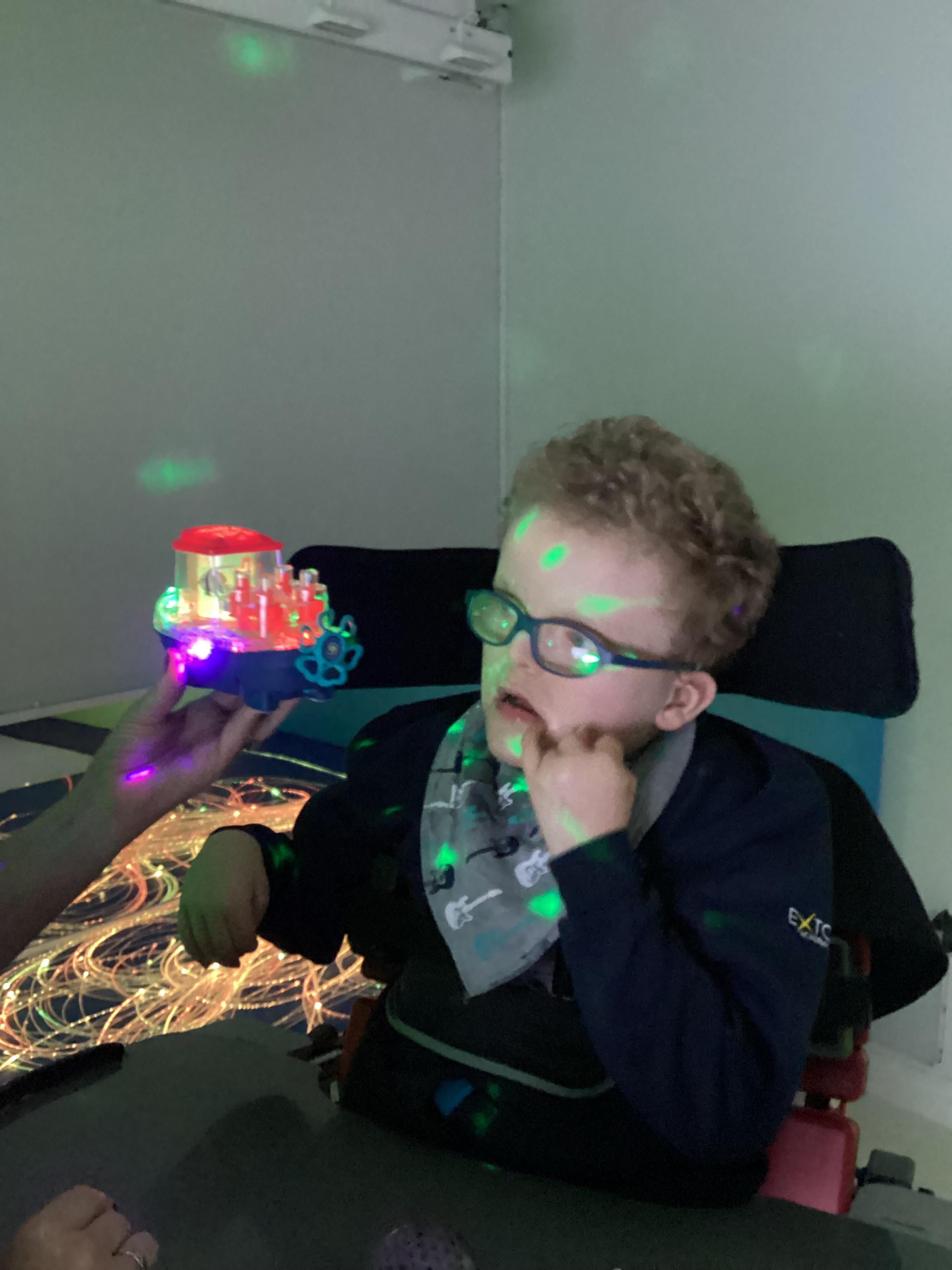 As we move closer to Halloween, we have been listening to a spooky sensory story, exploring the props and anticipating what comes next. We worked hard to demonstrate our want to continue exploring favoured objects and we were very clear in our responses when we didn't particularly like a stimulus.