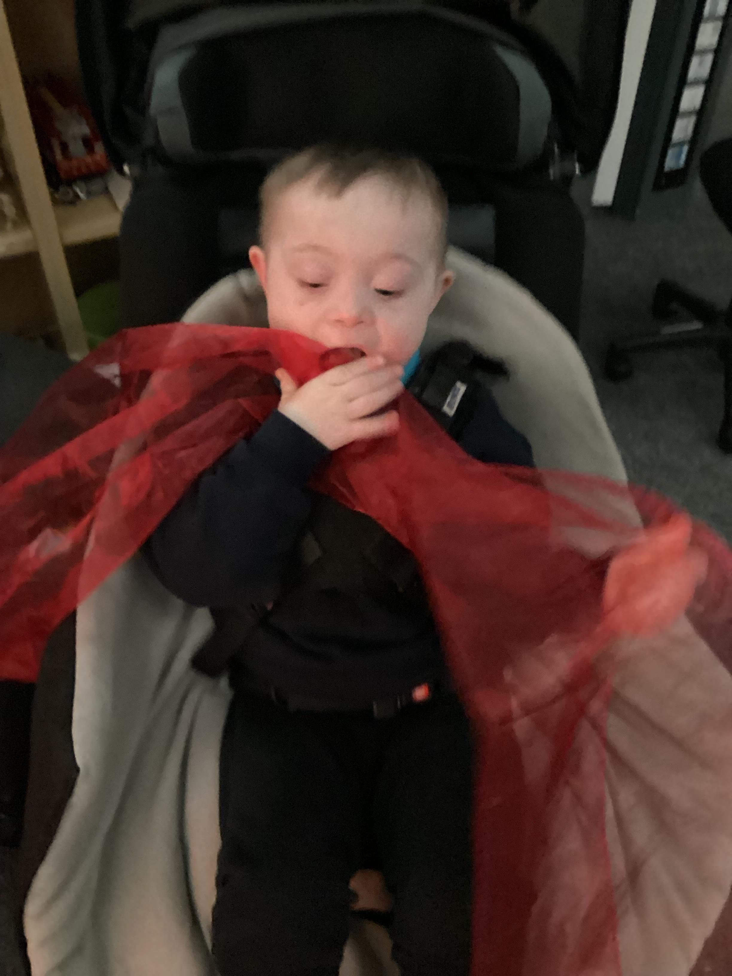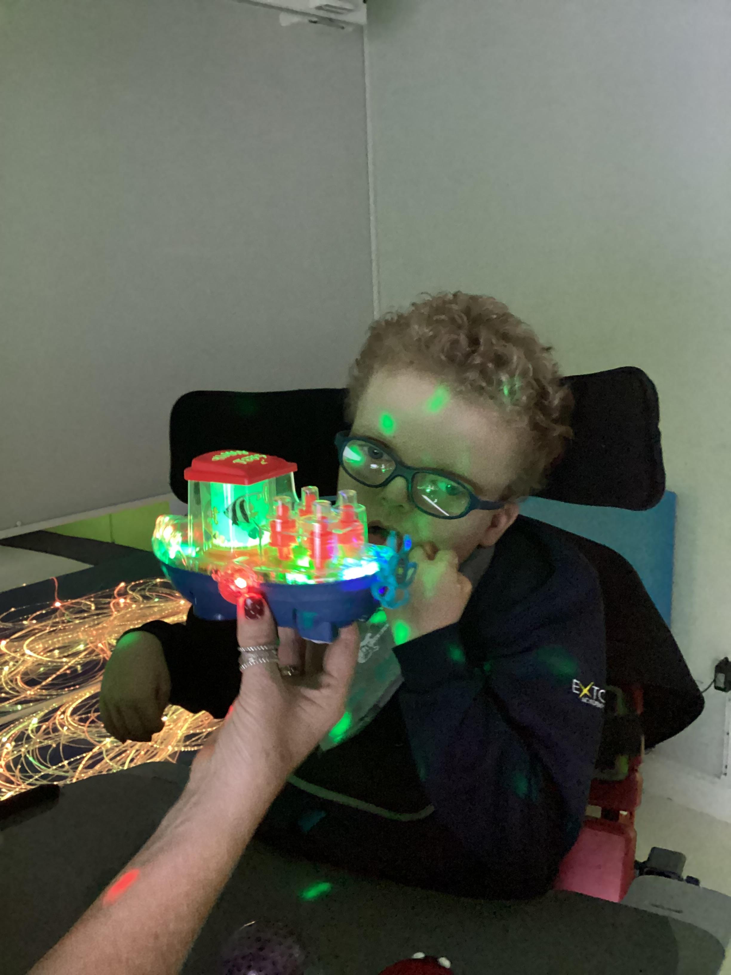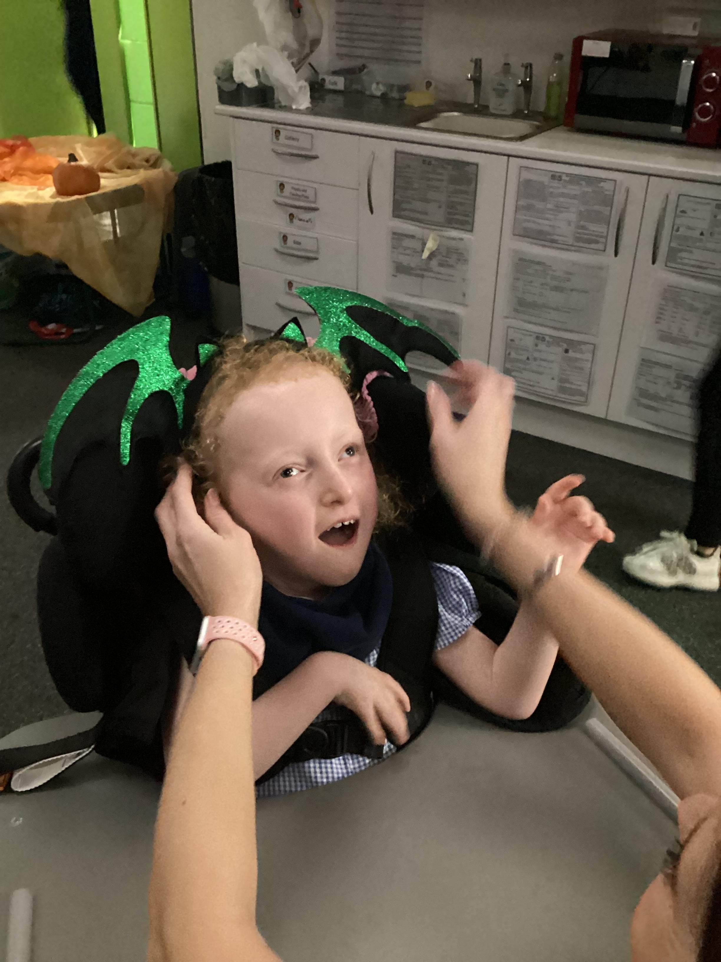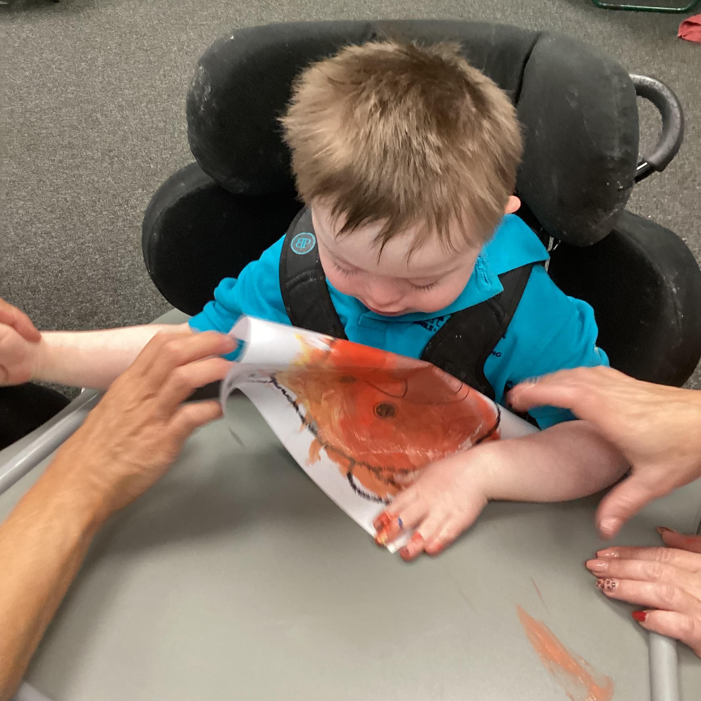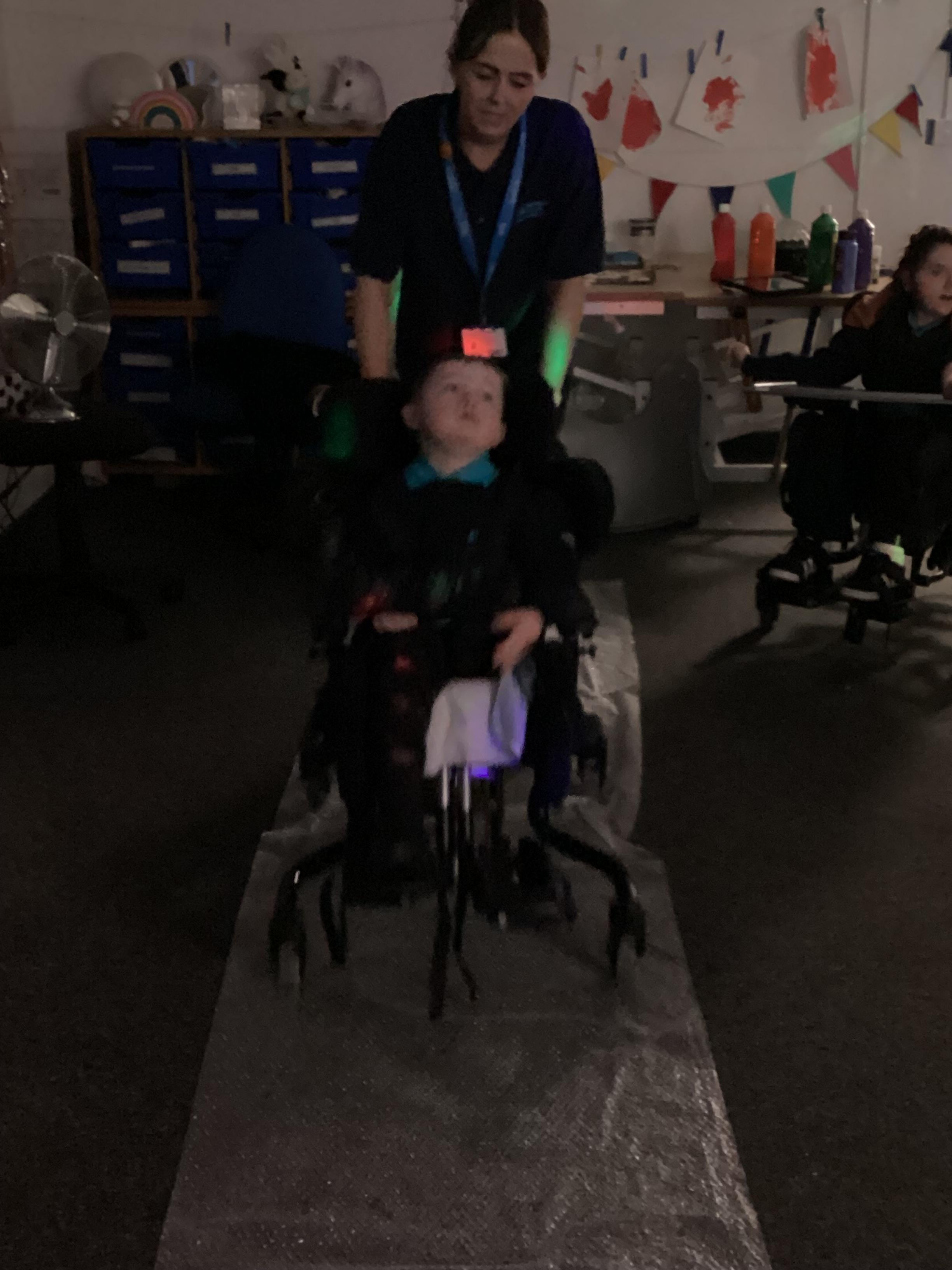 As we move closer to Halloween, we have been listening to a spooky sensory story, exploring the props and anticipating what comes next. We worked hard to demonstrate our want to continue exploring favoured objects and we were very clear in our responses when we didn't particularly like a stimulus.