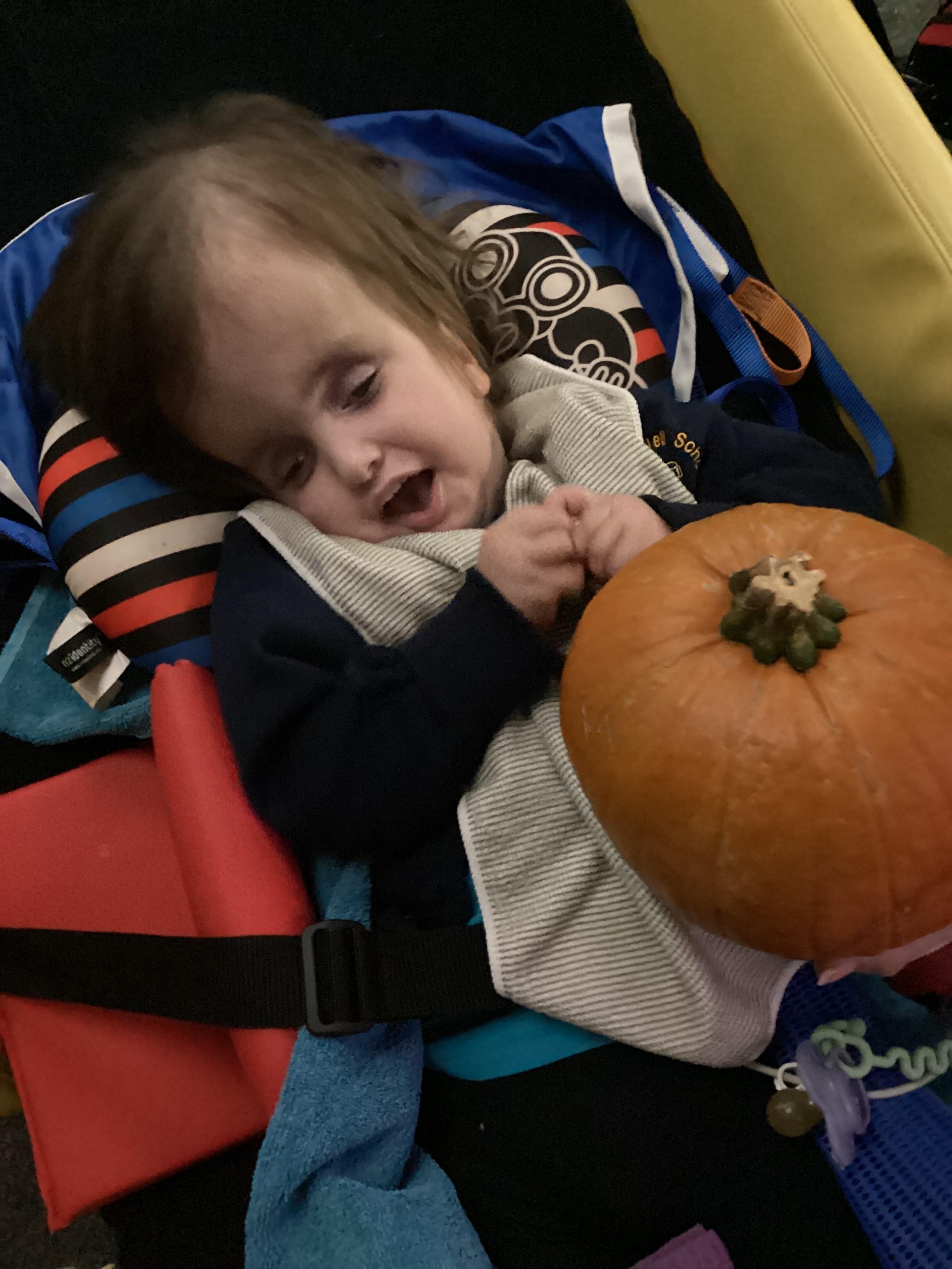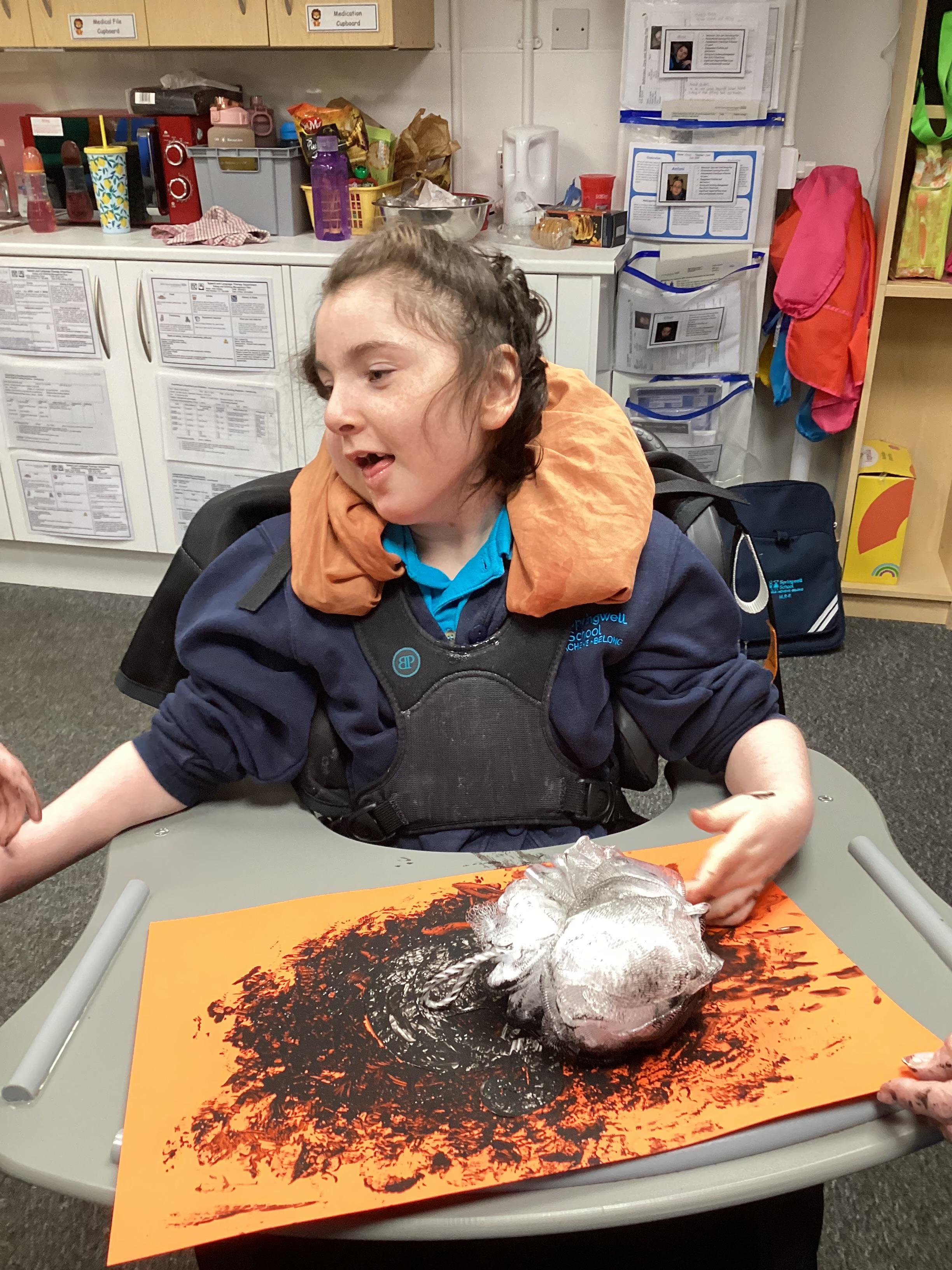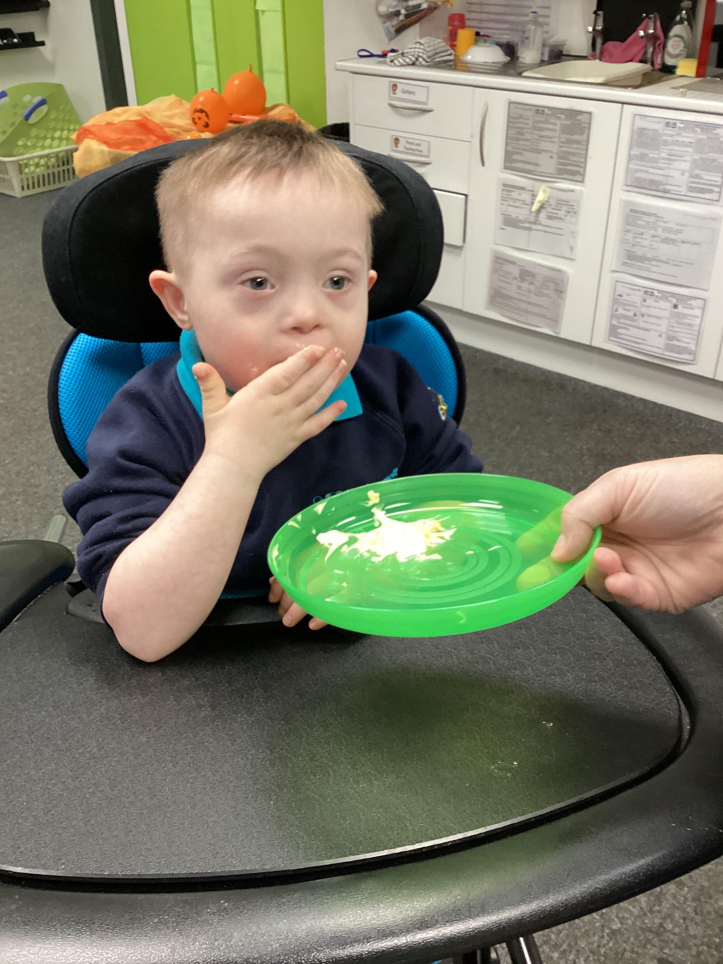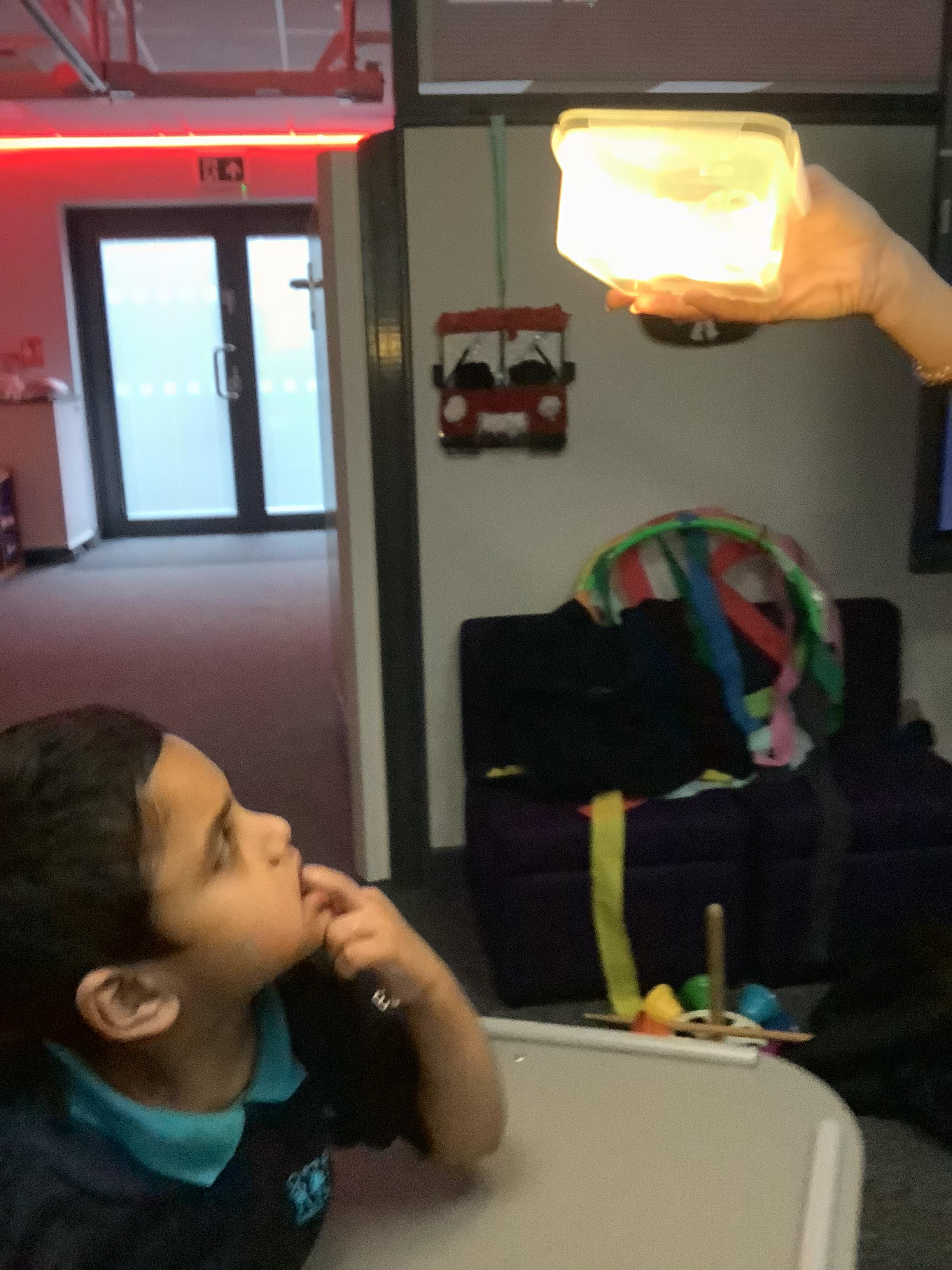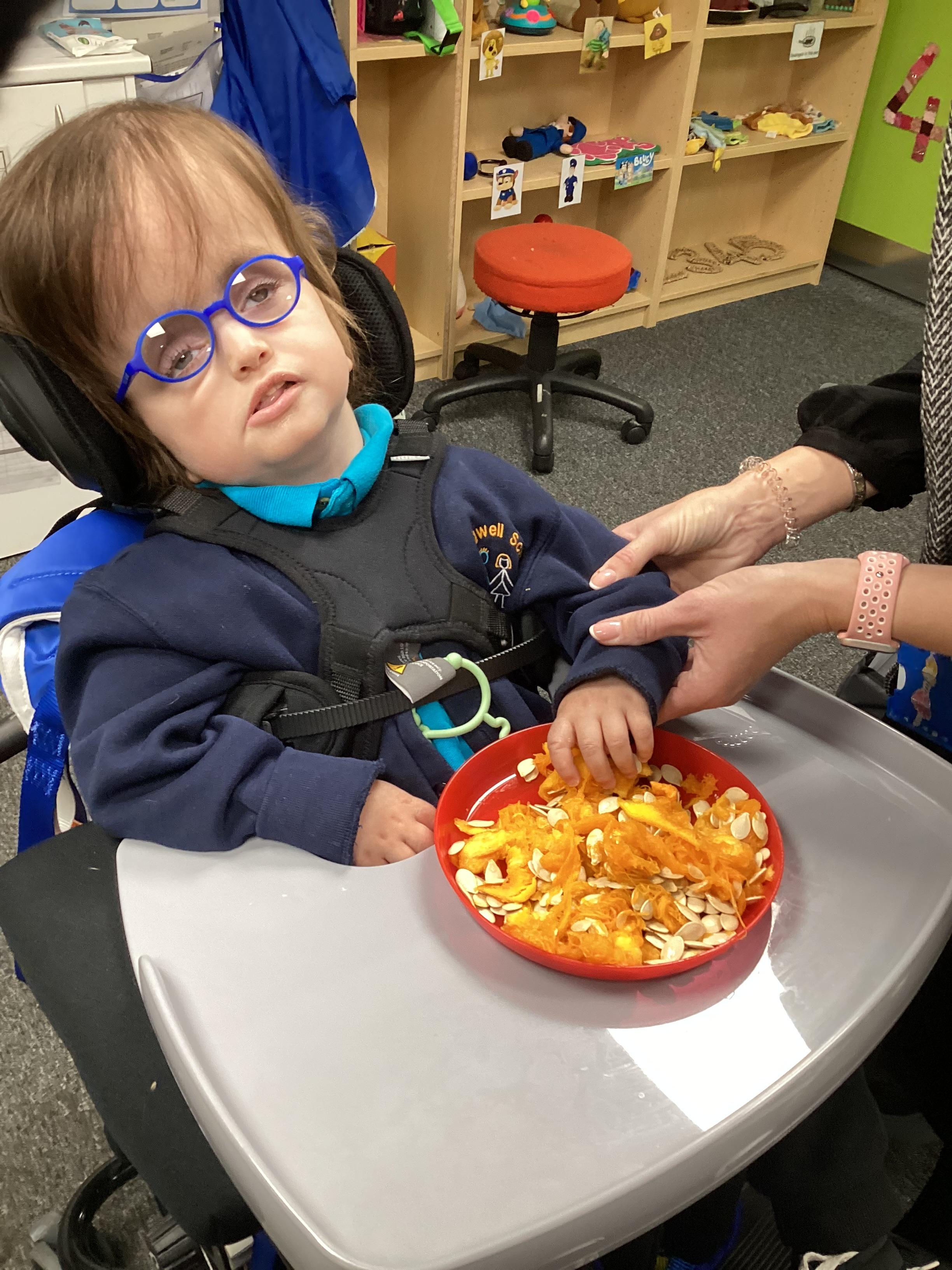 As we move closer to Halloween, we have been listening to a spooky sensory story, exploring the props and anticipating what comes next. We worked hard to demonstrate our want to continue exploring favoured objects and we were very clear in our responses when we didn't particularly like a stimulus.