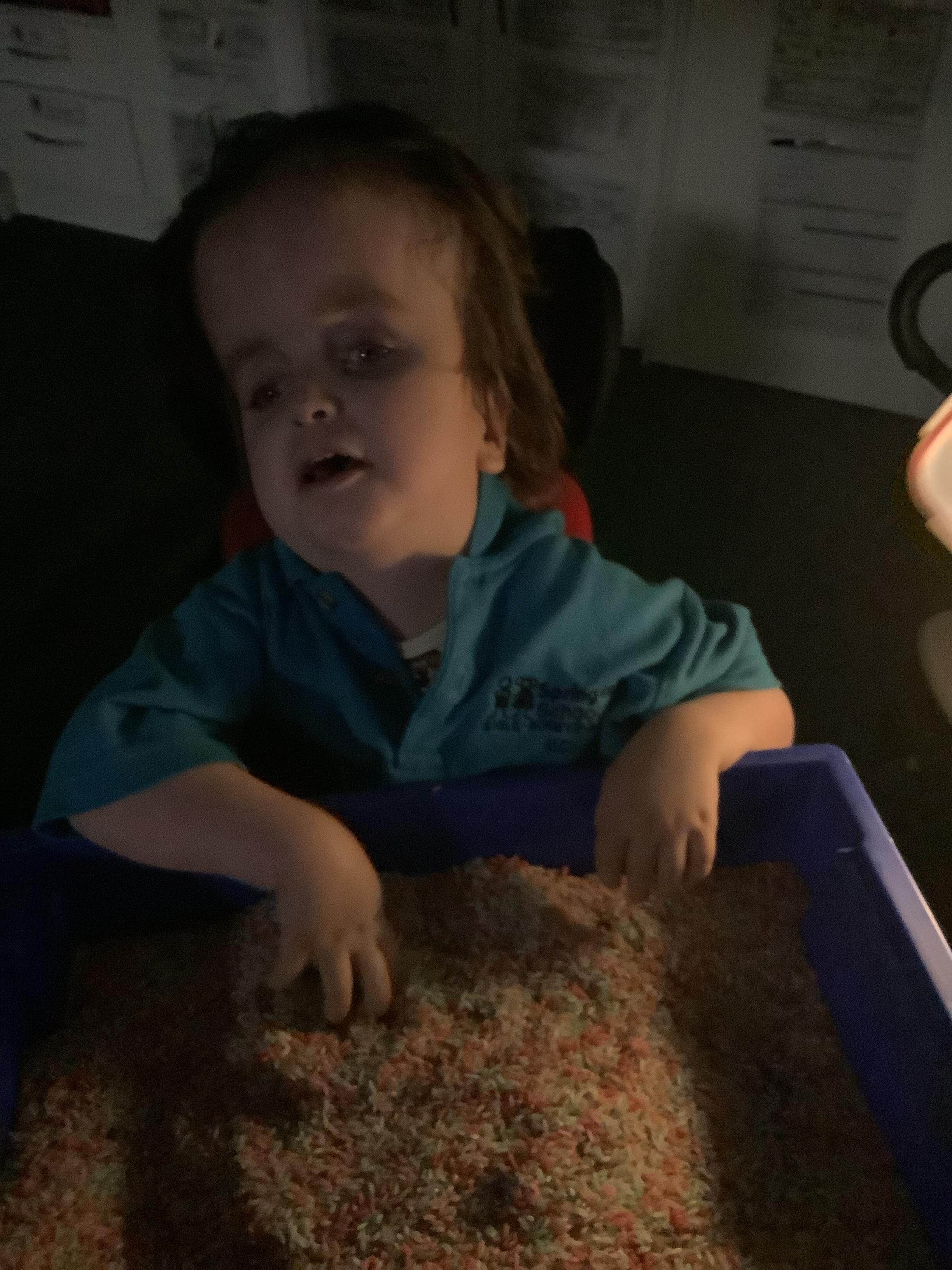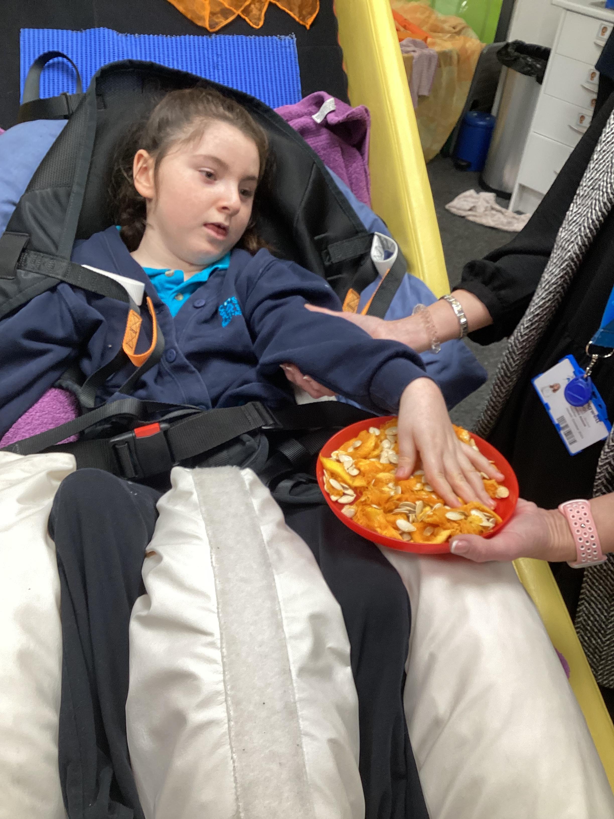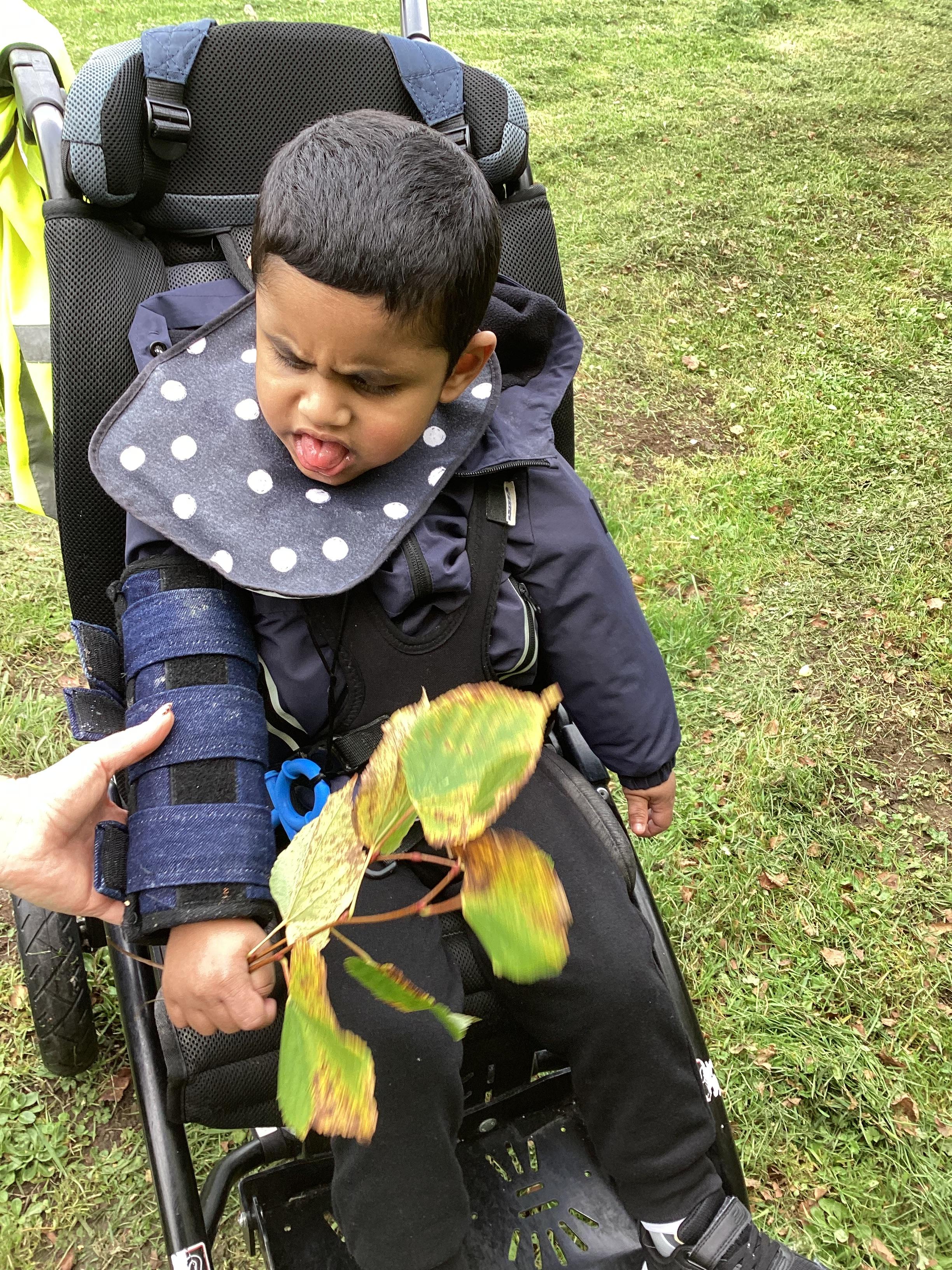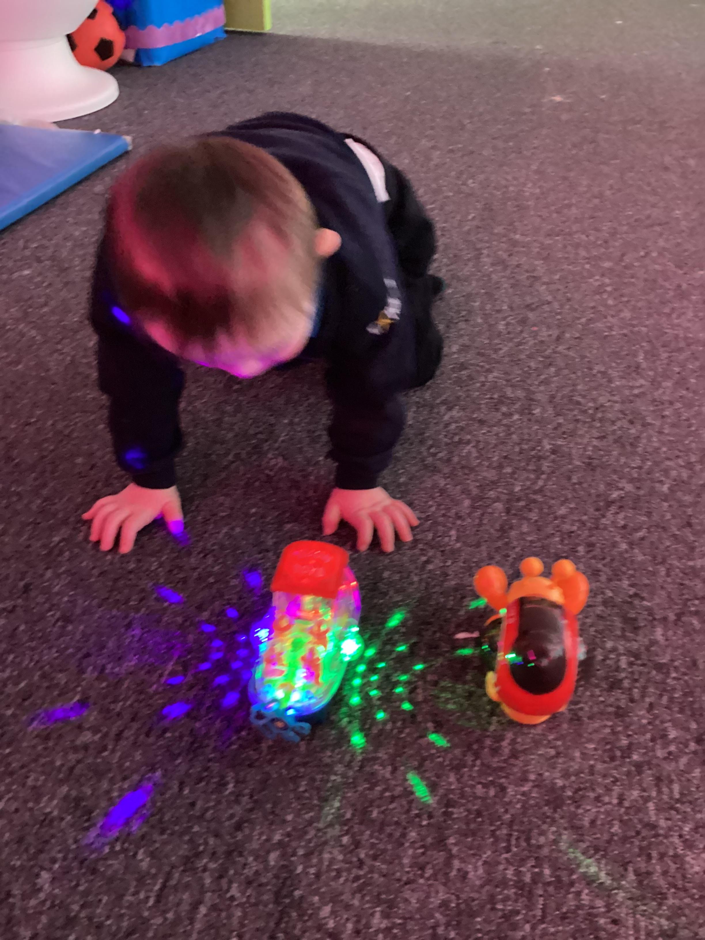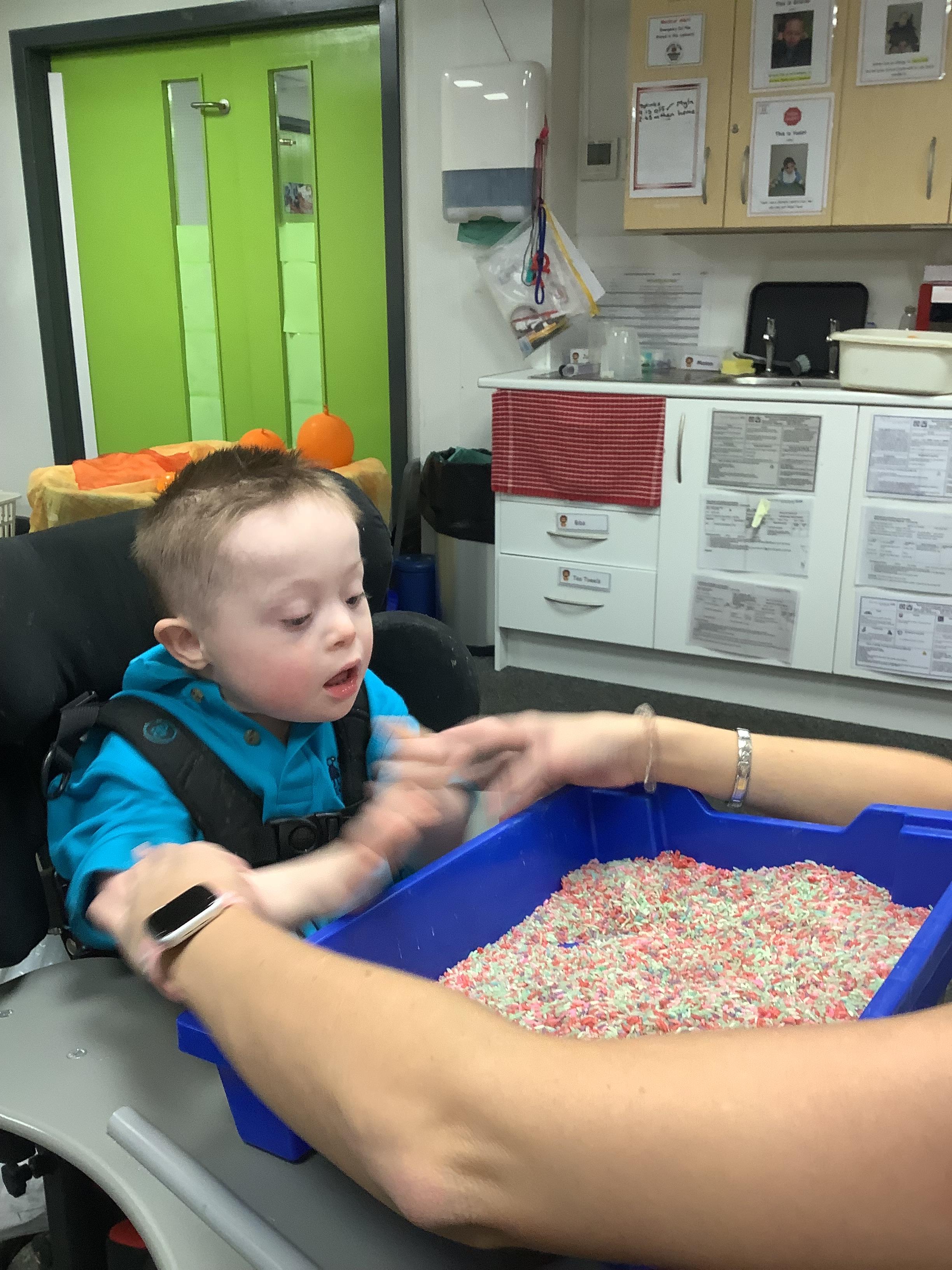 As we move closer to Halloween, we have been listening to a spooky sensory story, exploring the props and anticipating what comes next. We worked hard to demonstrate our want to continue exploring favoured objects and we were very clear in our responses when we didn't particularly like a stimulus.