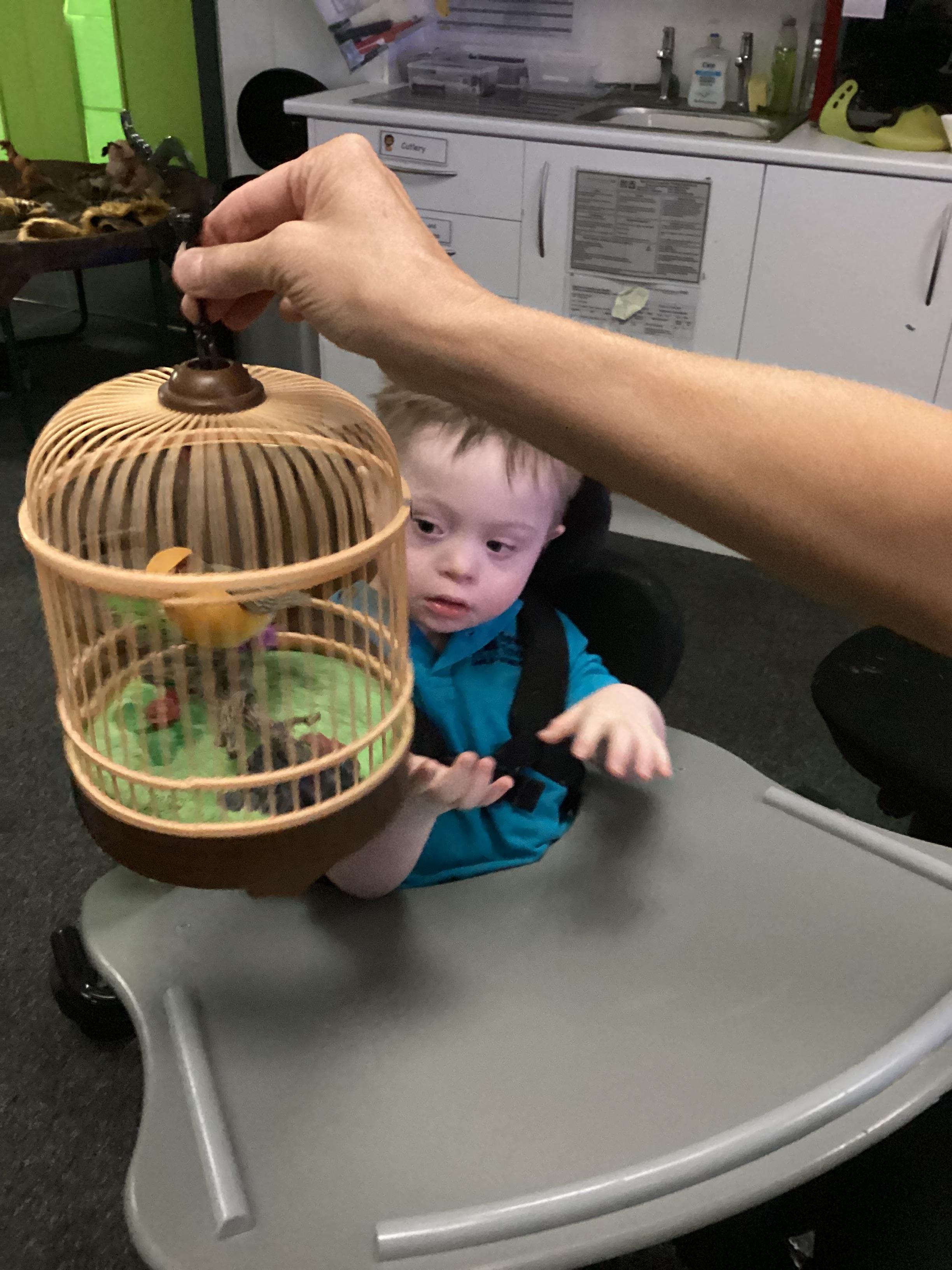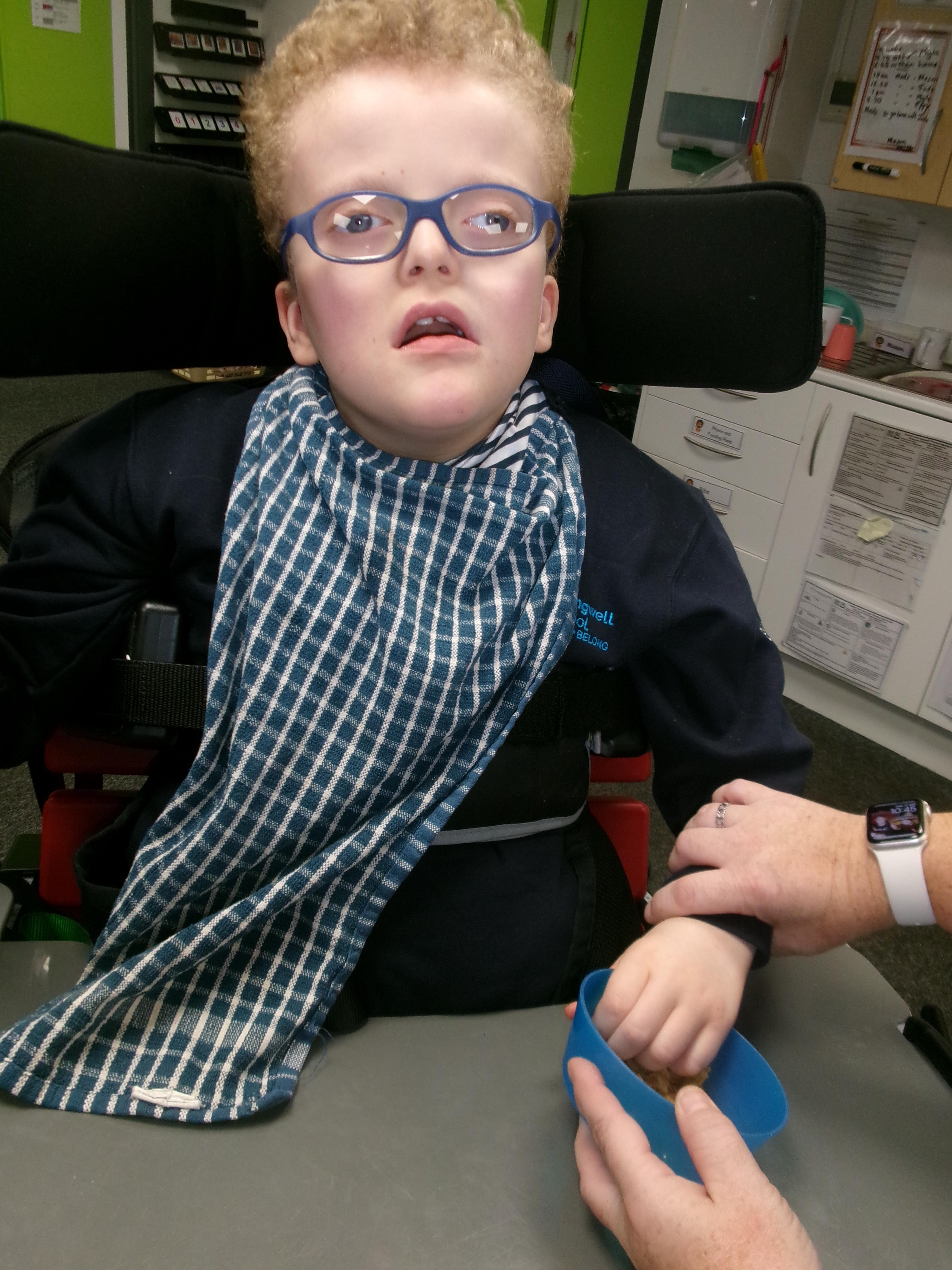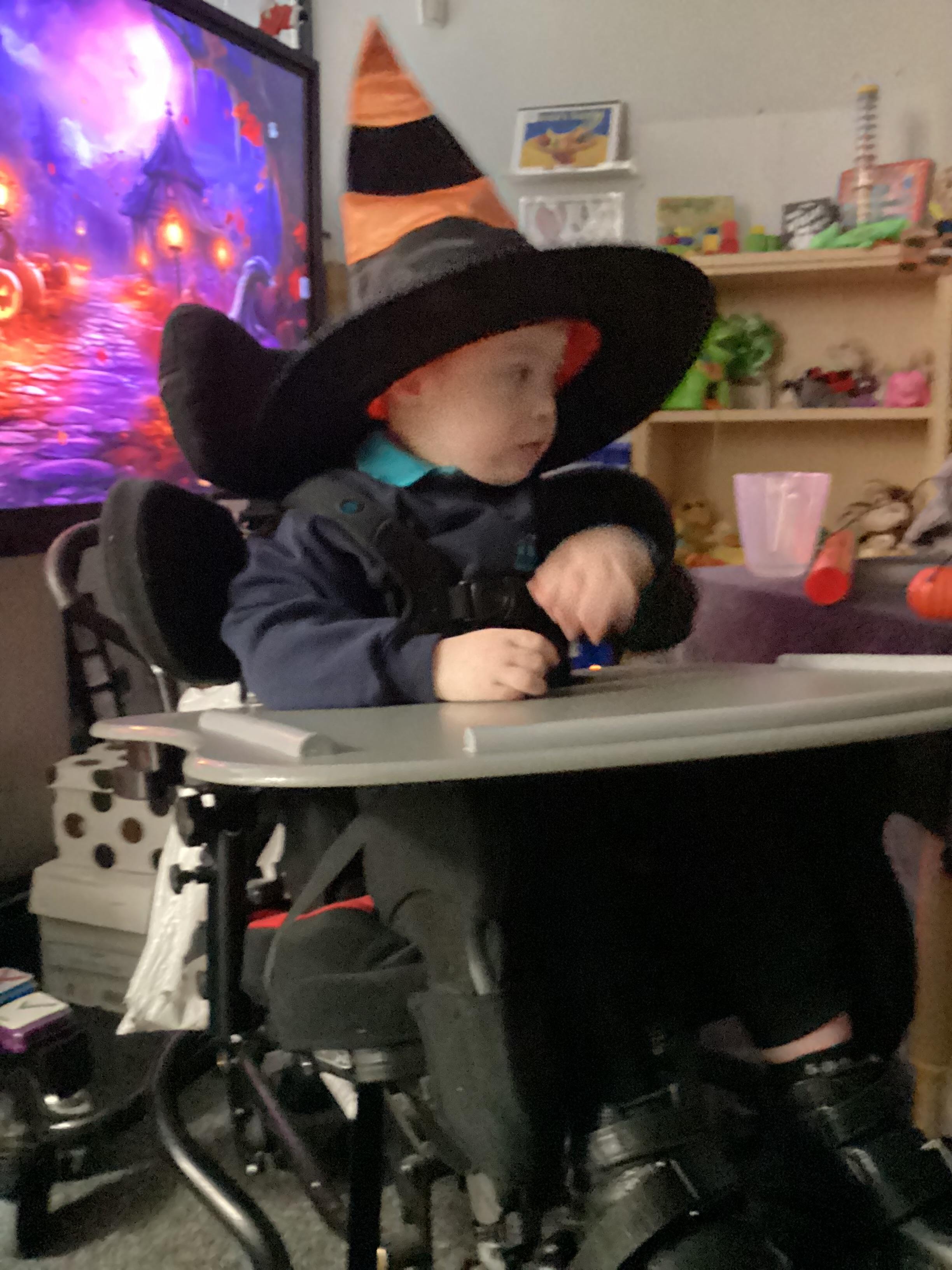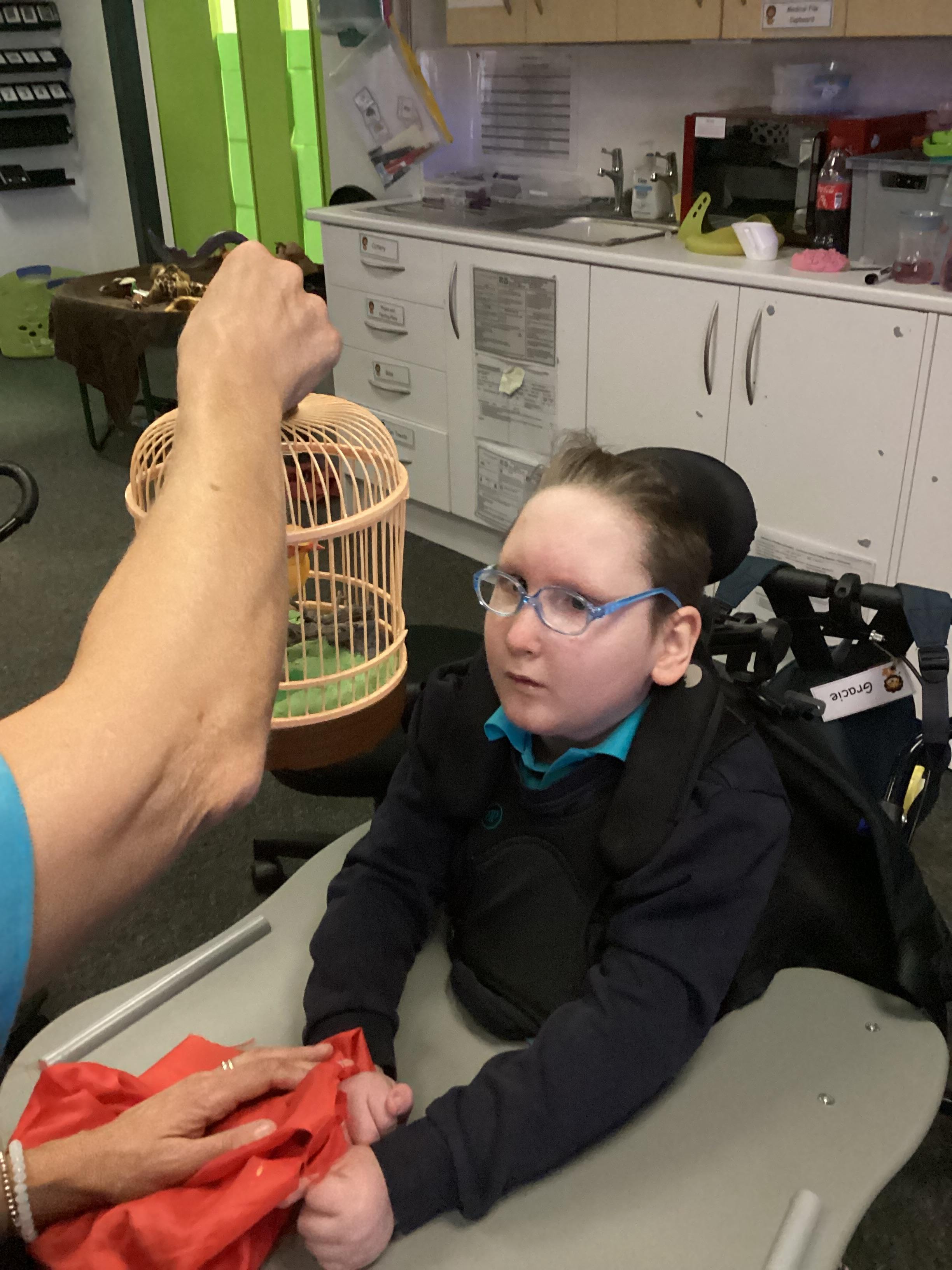 As we move closer to Halloween, we have been listening to a spooky sensory story, exploring the props and anticipating what comes next. We worked hard to demonstrate our want to continue exploring favoured objects and we were very clear in our responses when we didn't particularly like a stimulus.