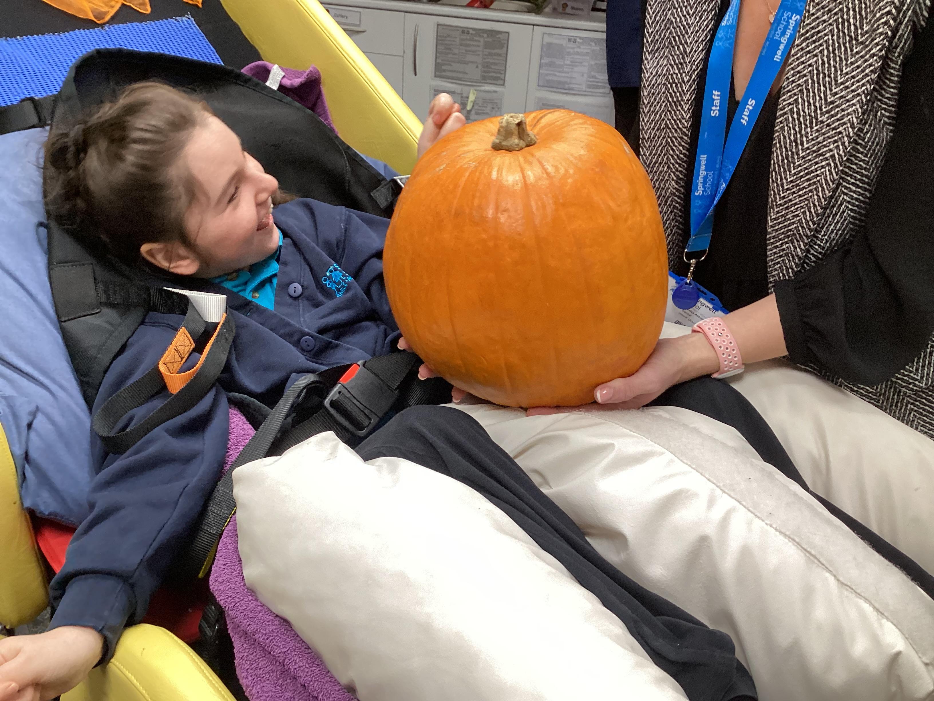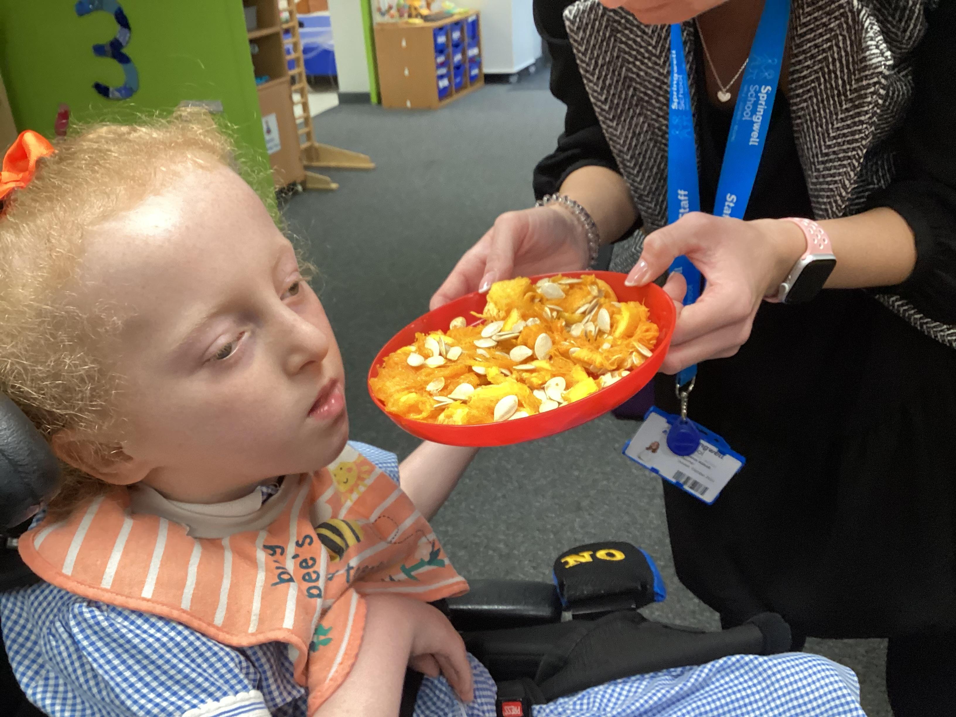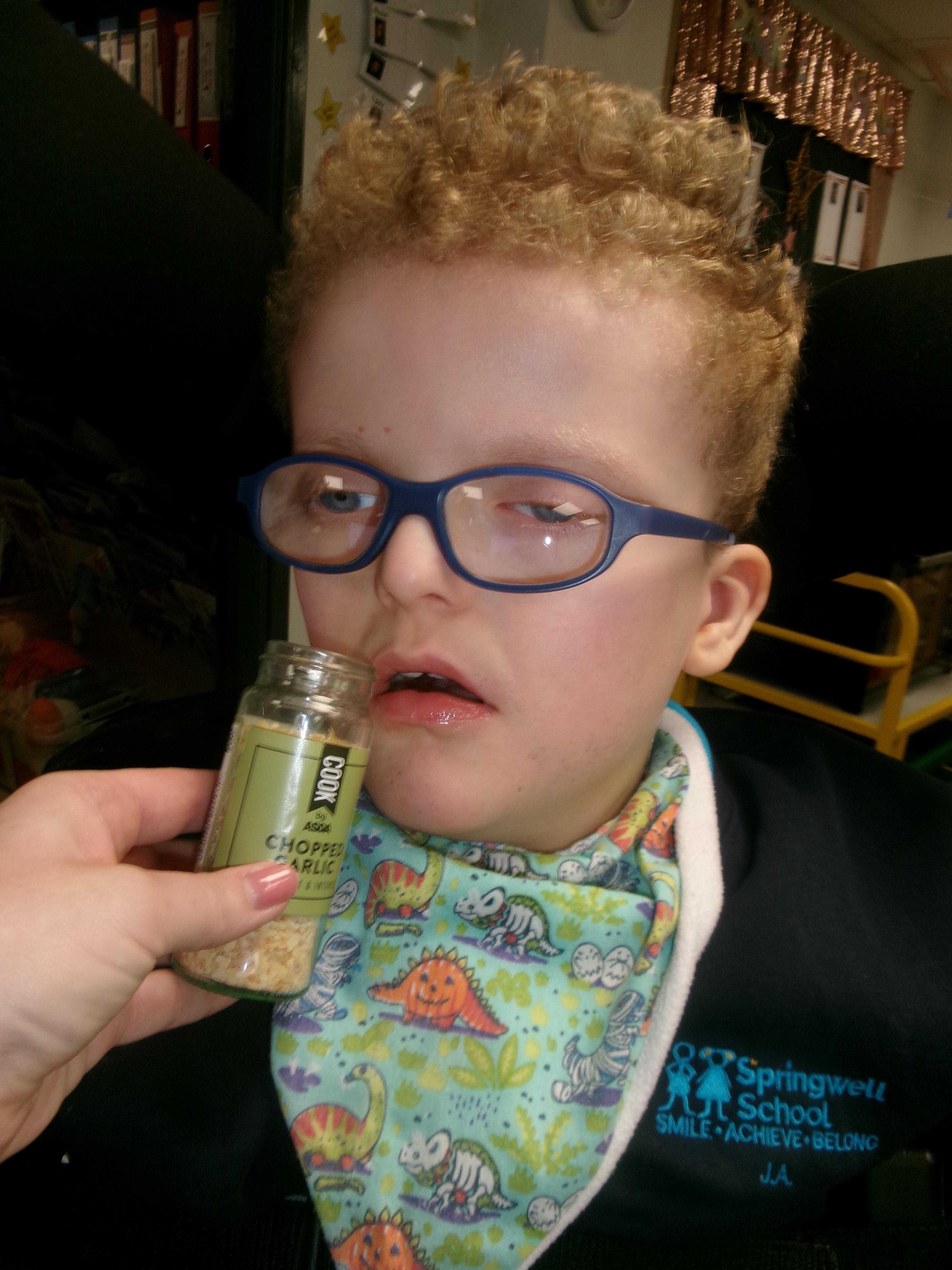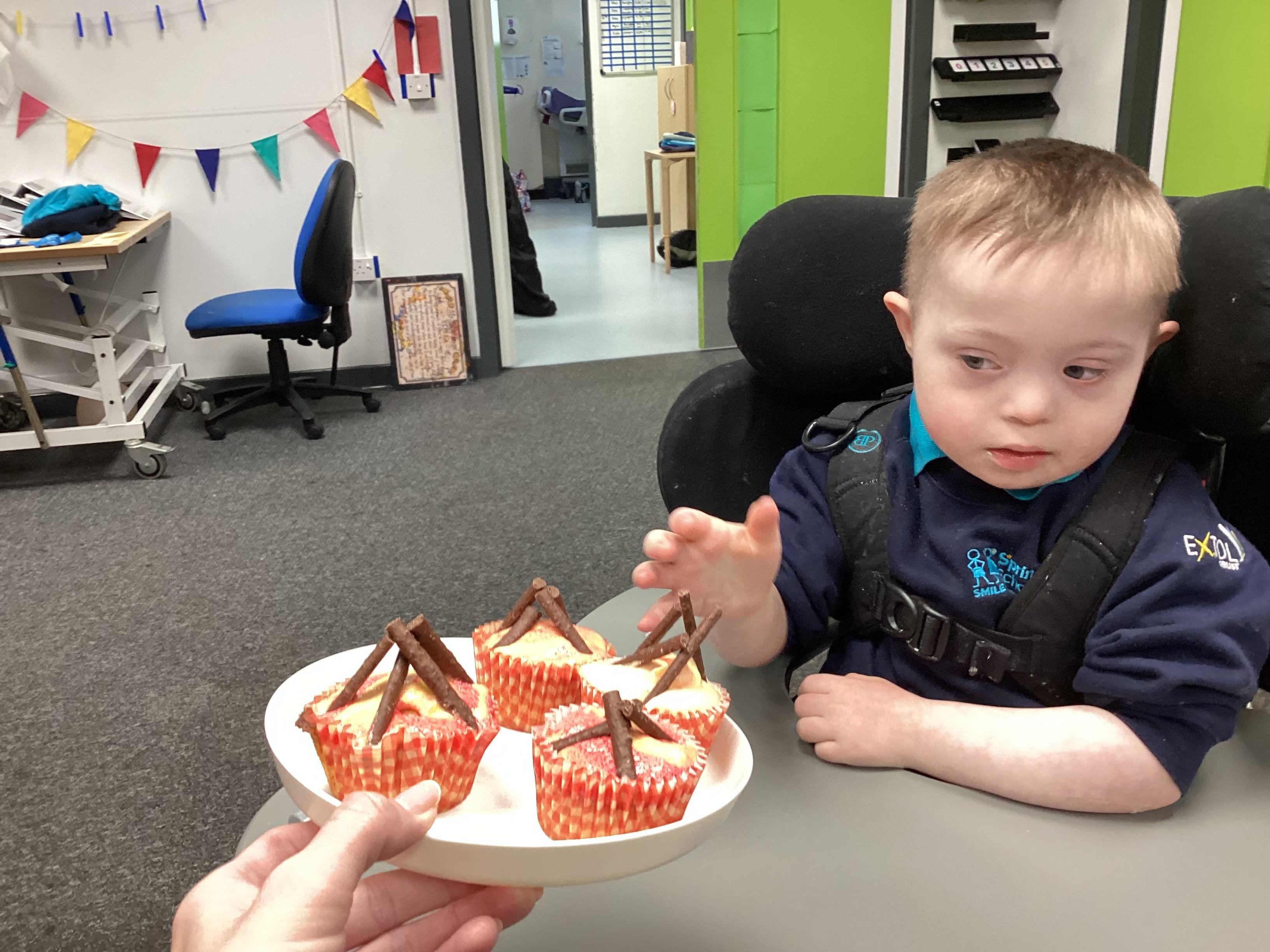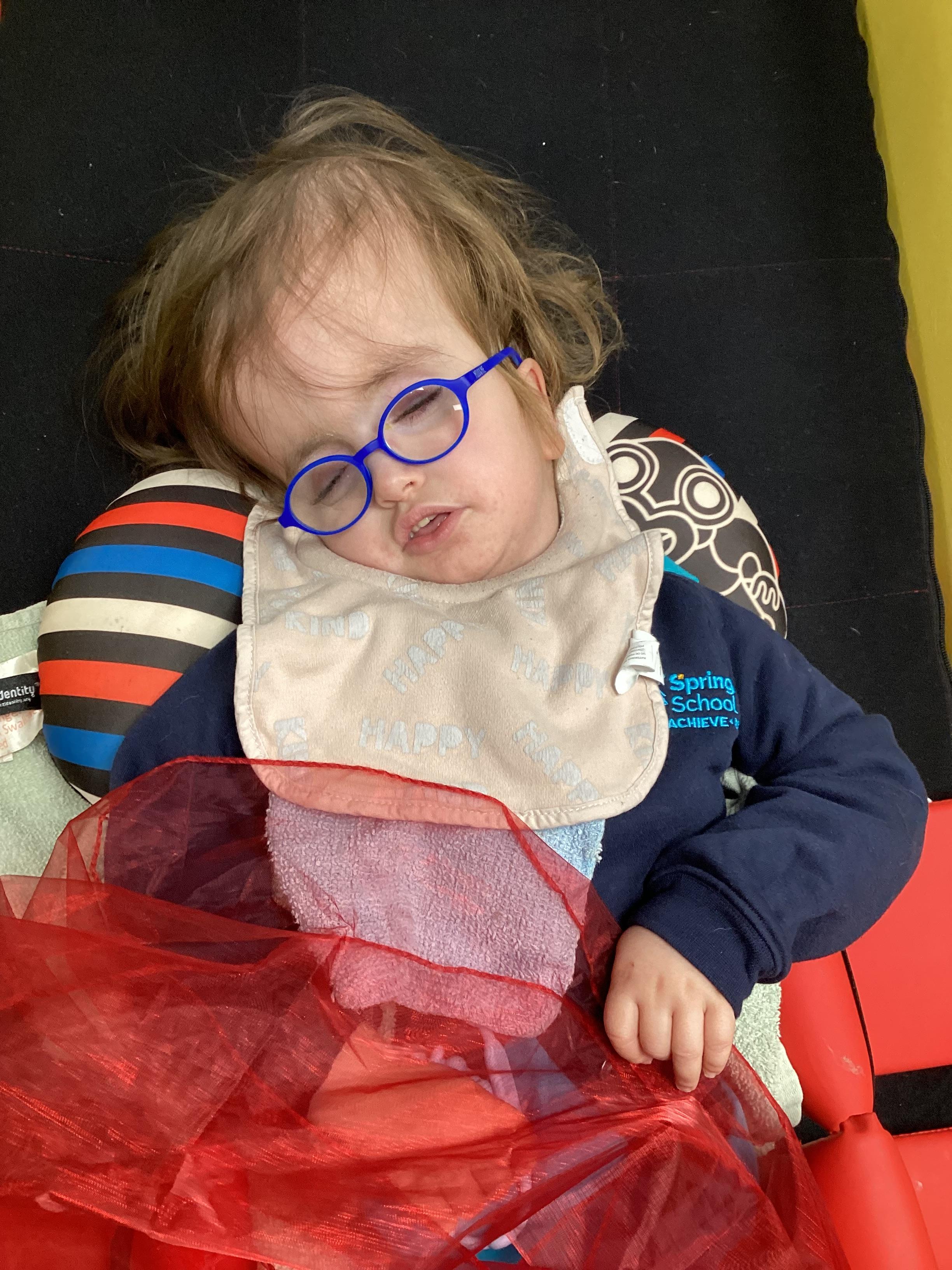 As we move closer to Halloween, we have been listening to a spooky sensory story, exploring the props and anticipating what comes next. We worked hard to demonstrate our want to continue exploring favoured objects and we were very clear in our responses when we didn't particularly like a stimulus.