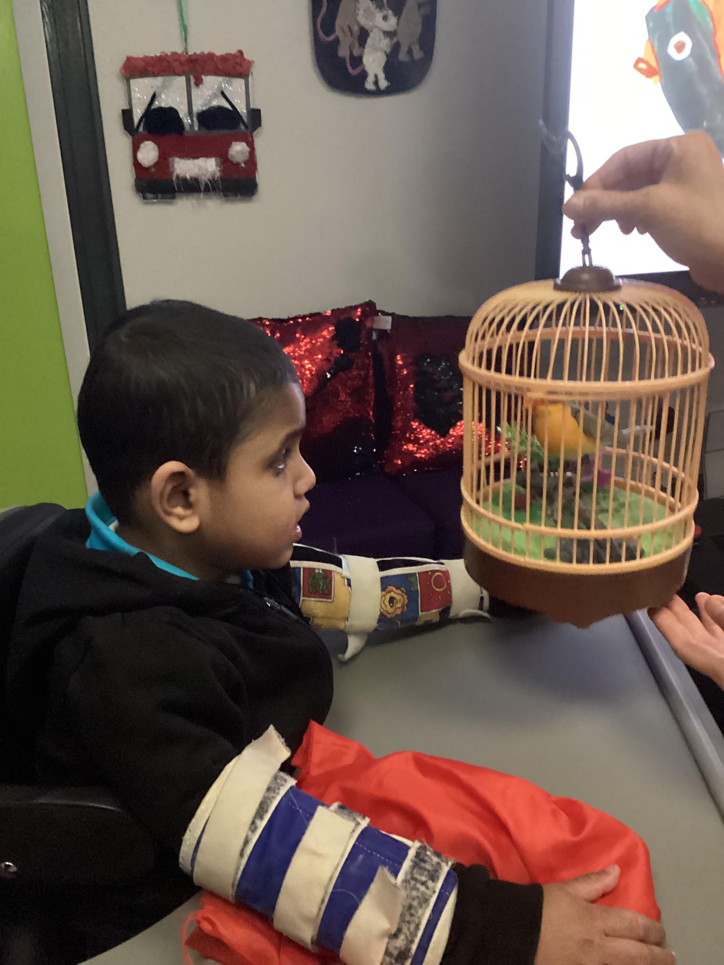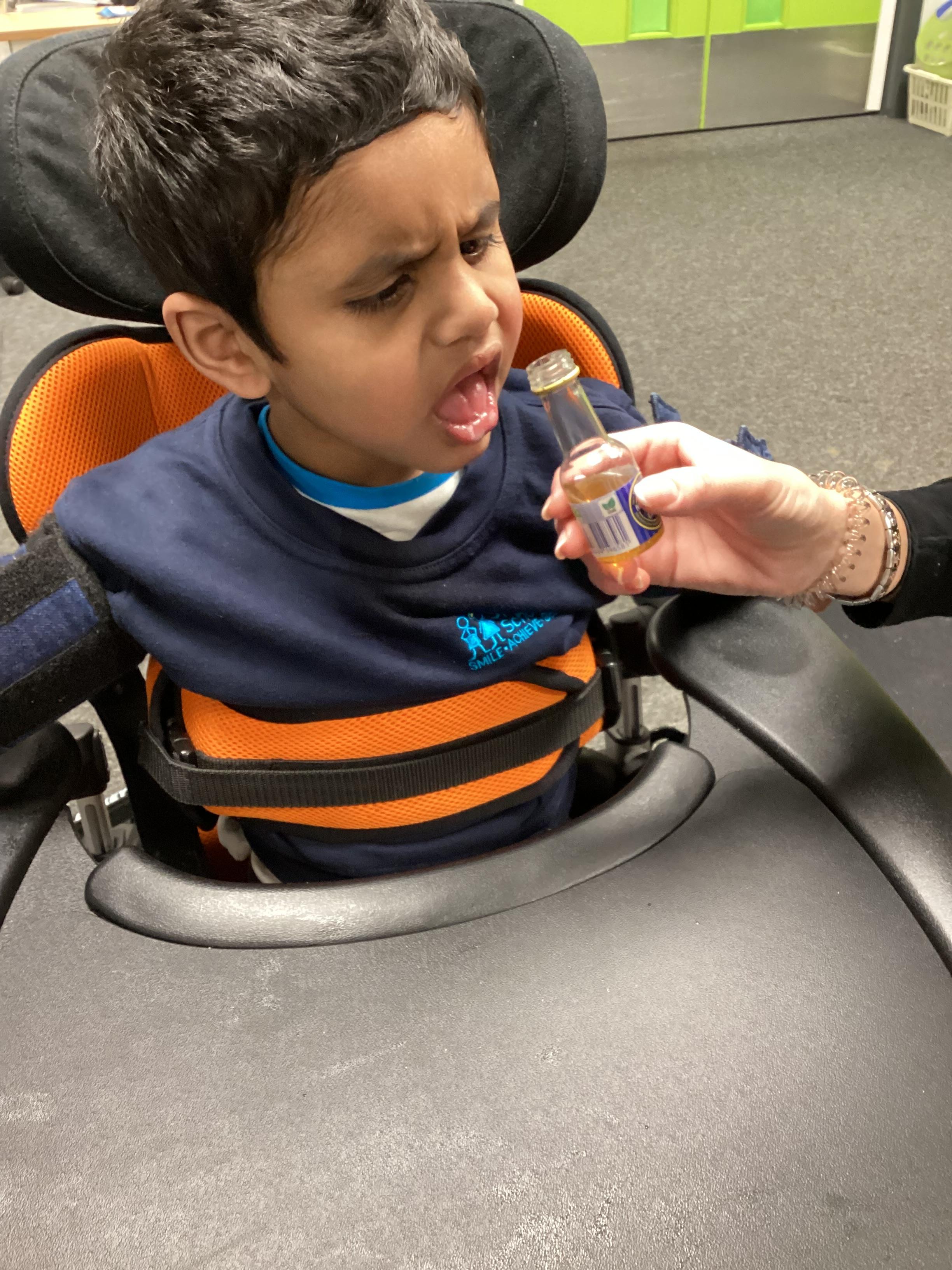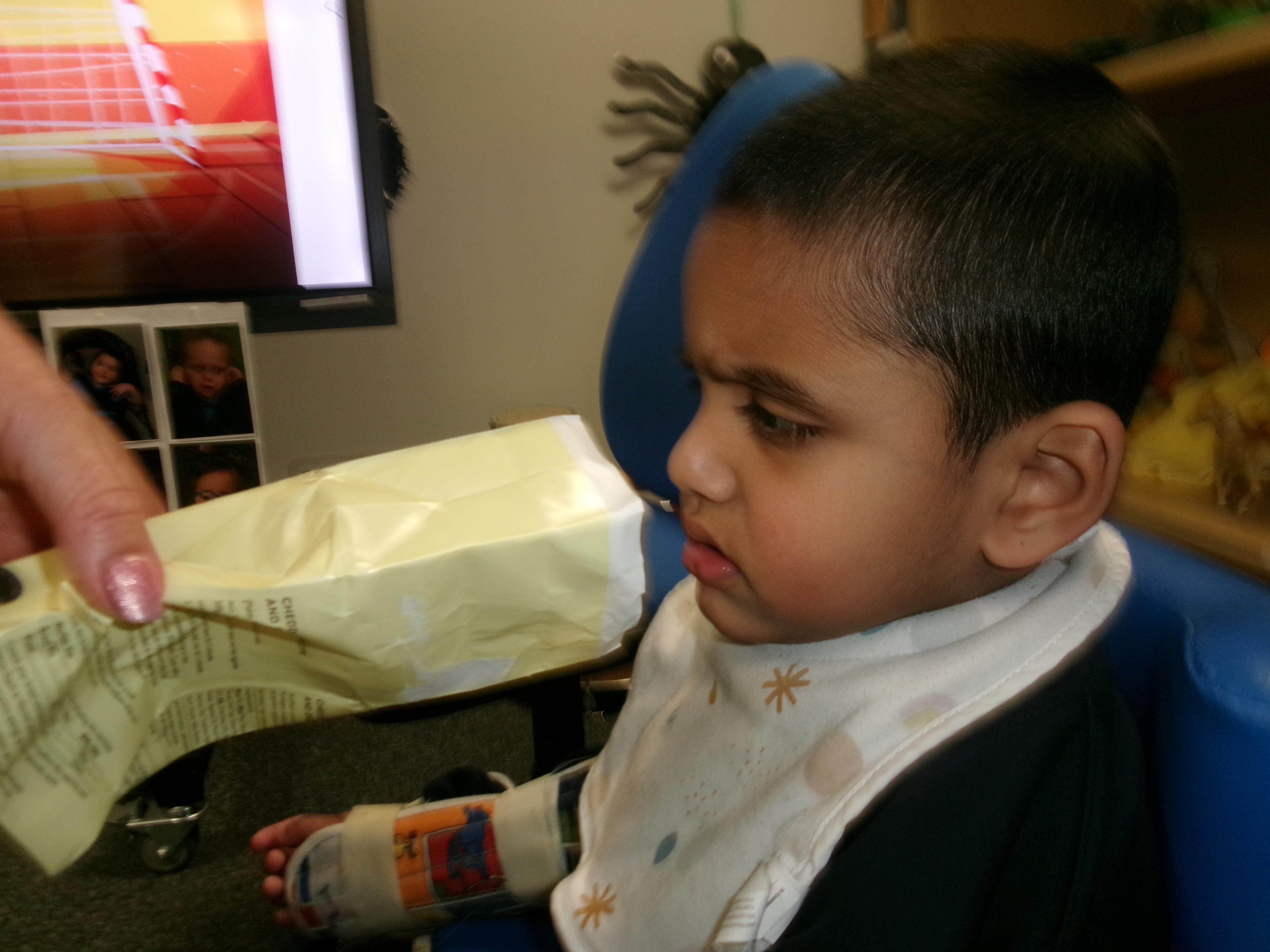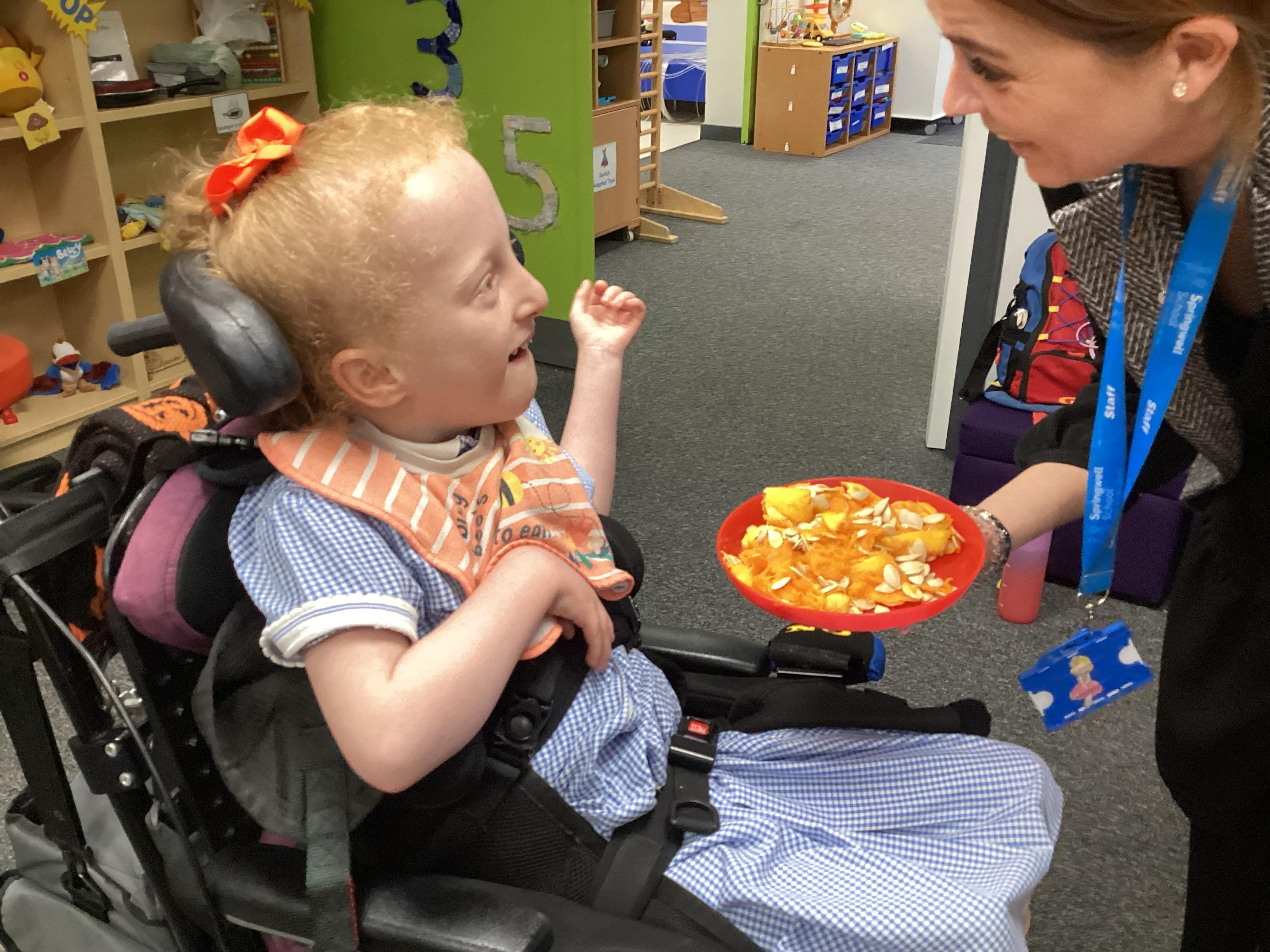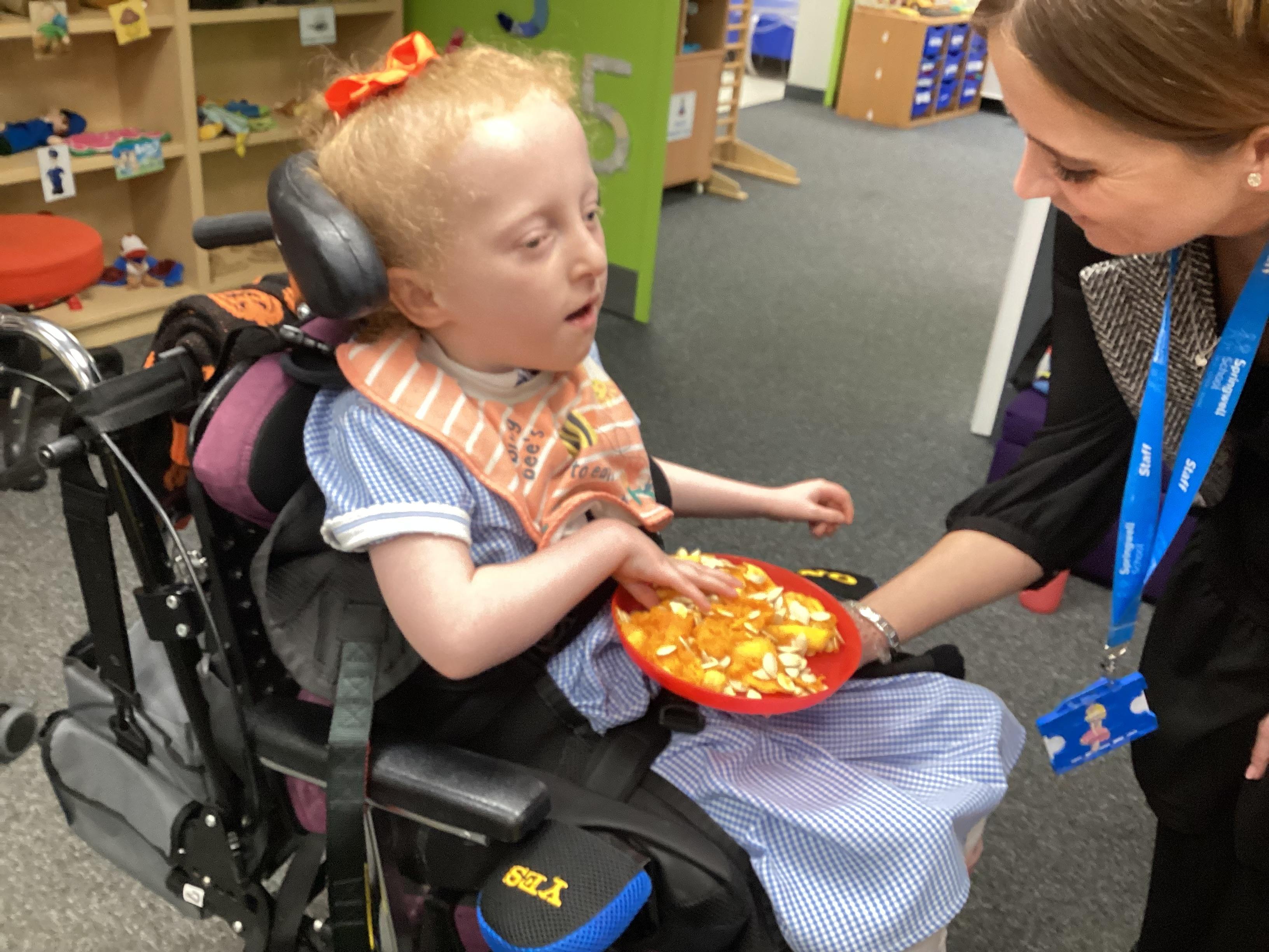As we move closer to Halloween, we have been listening to a spooky sensory story, exploring the props and anticipating what comes next. We worked hard to demonstrate our want to continue exploring favoured objects and we were very clear in our responses when we didn't particularly like a stimulus.