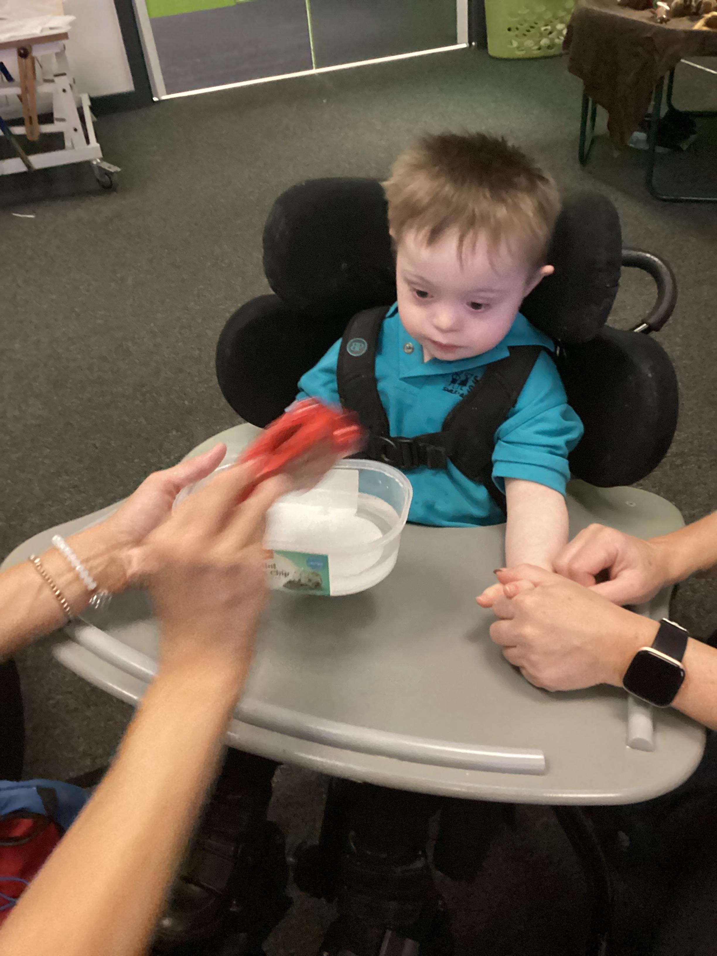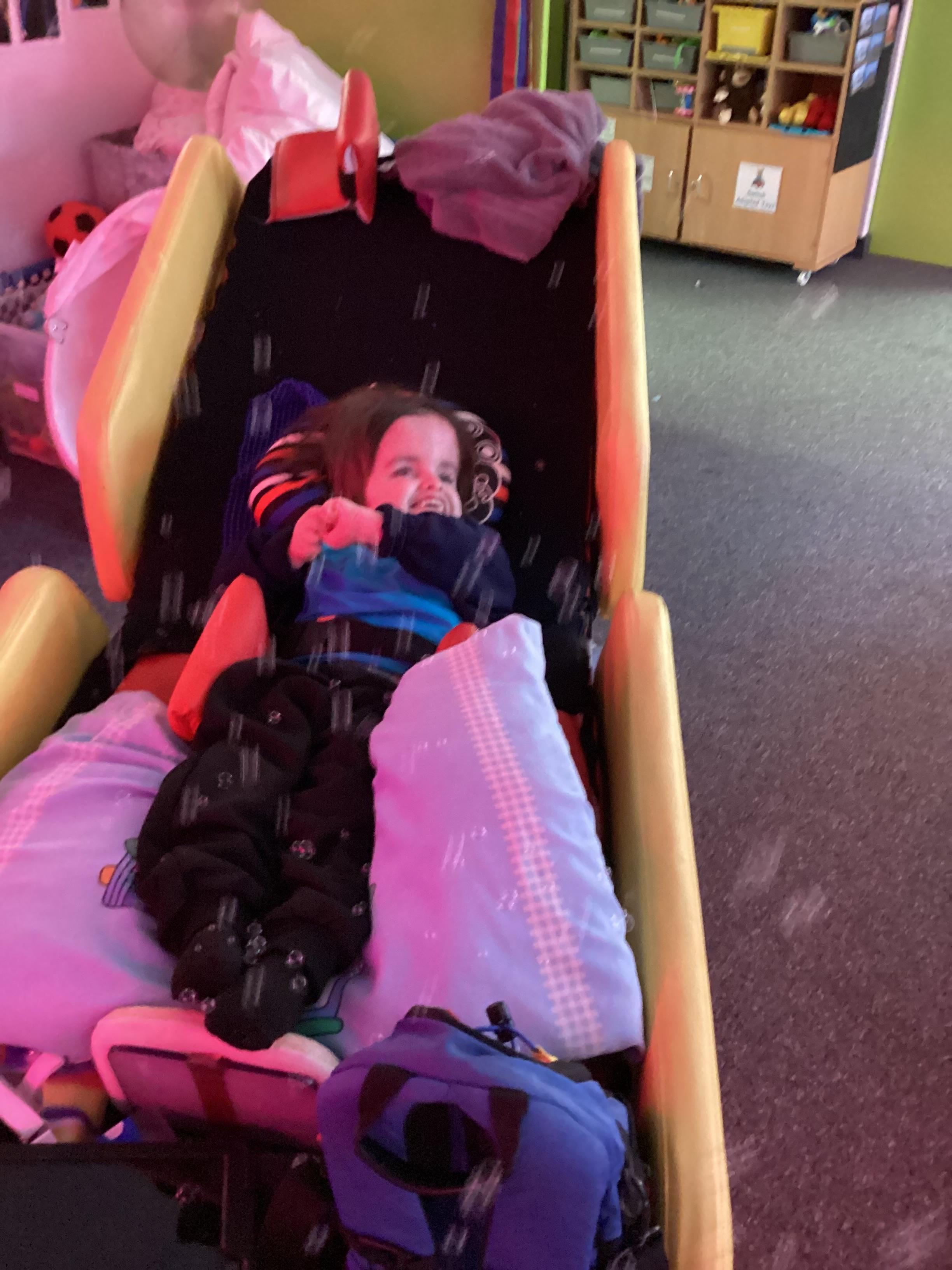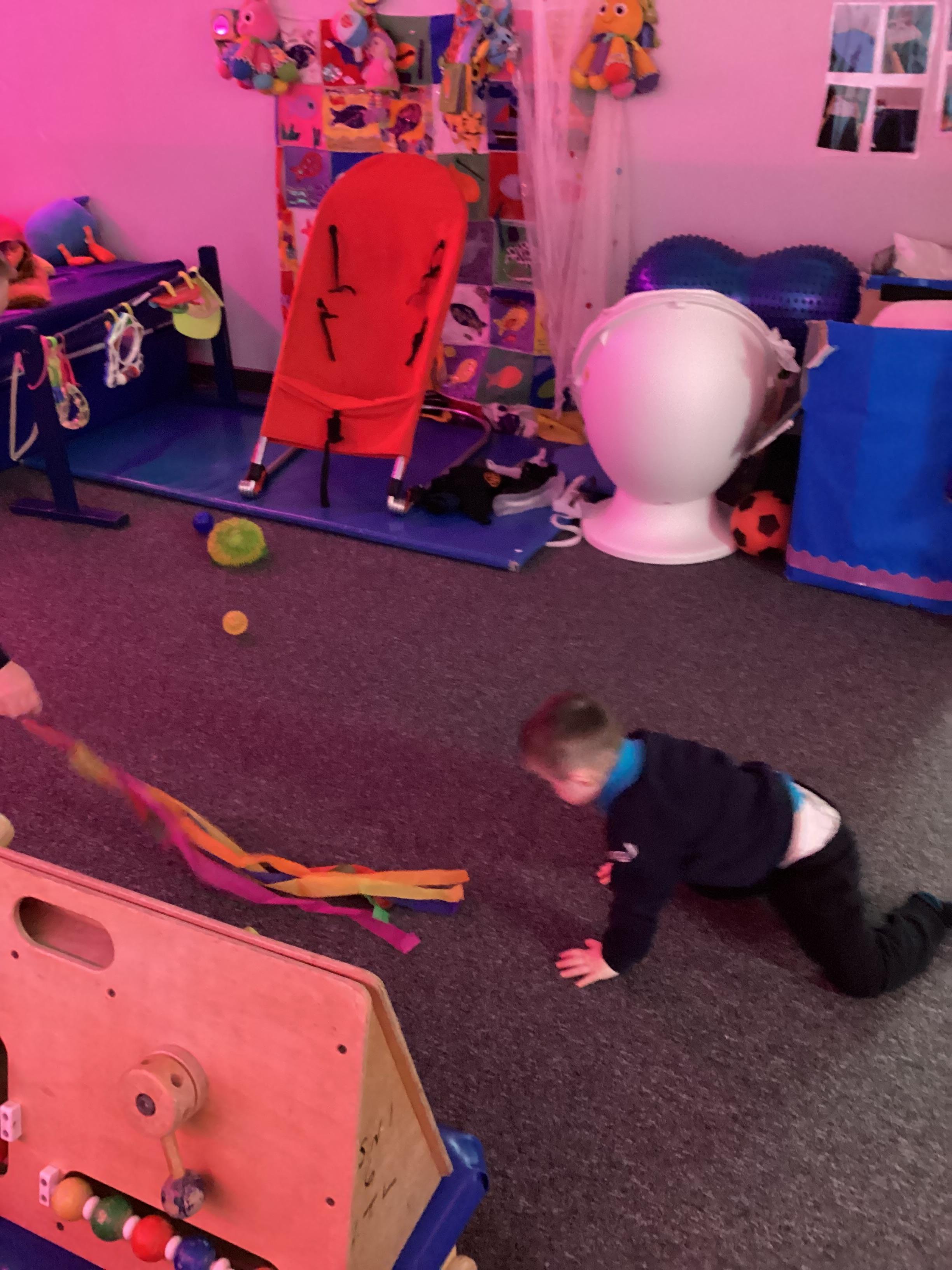 We take part in weekly Hydrotherapy and Rebound sessions which are perfect for us to relax our bodies and enjoy some 1-1 interaction time with familiar adults. We use this time to develop our communication skills to ask for more, to finish the activity or to let the adult know how we feel about our experience. Some of us love high bounces, while others might prefer more gentle, low bounces. We work hard to communicate our wants and likes!