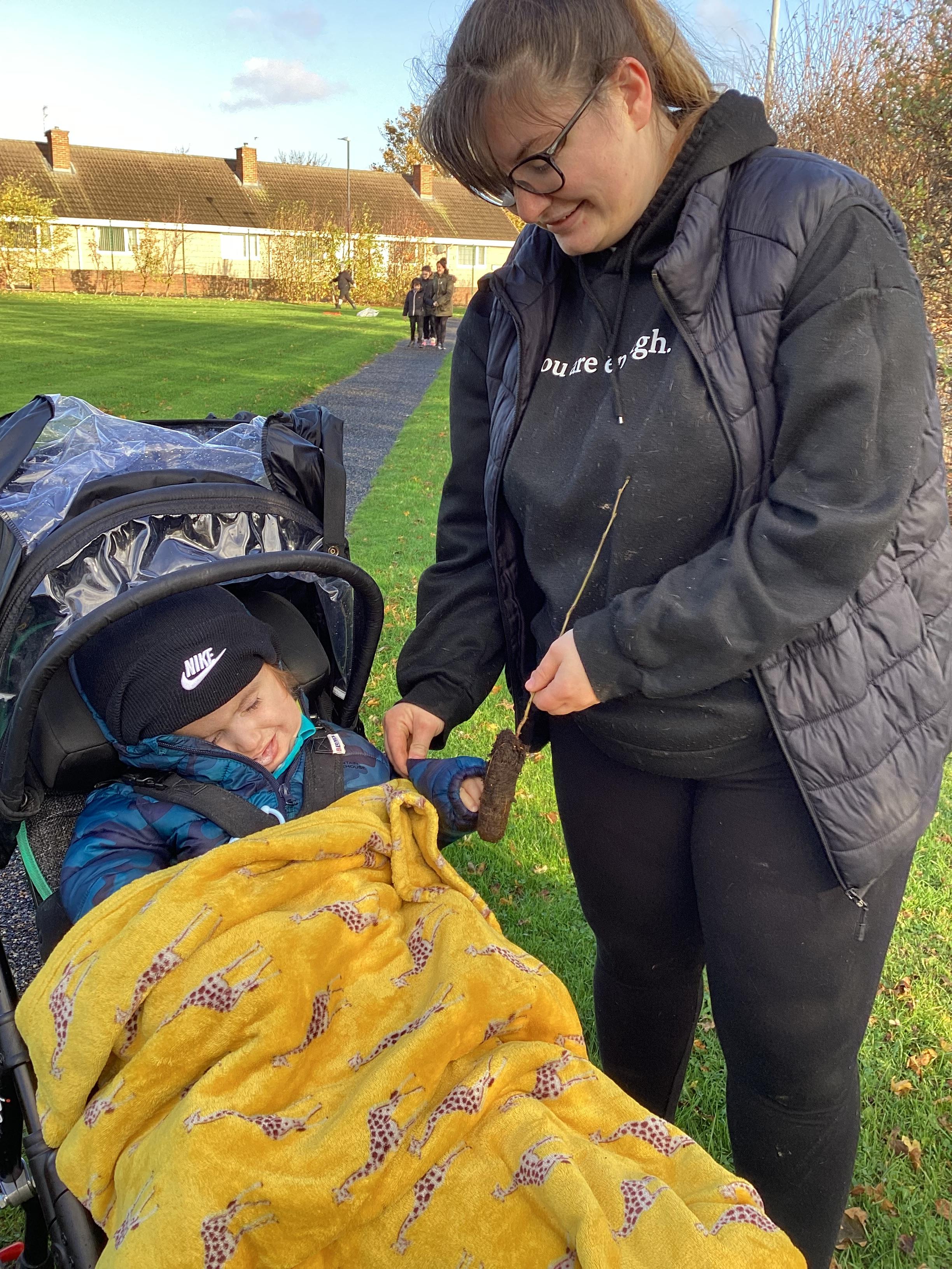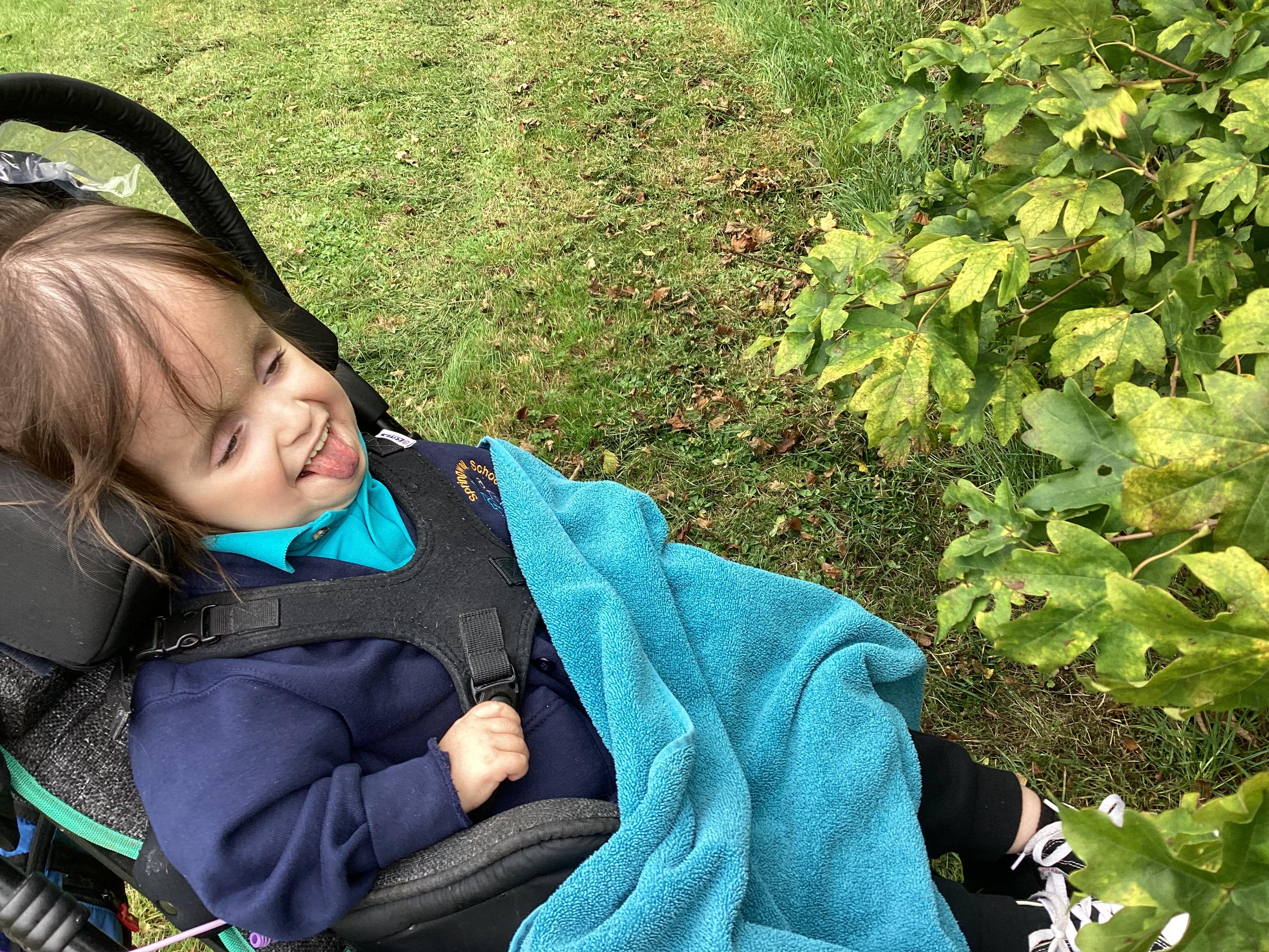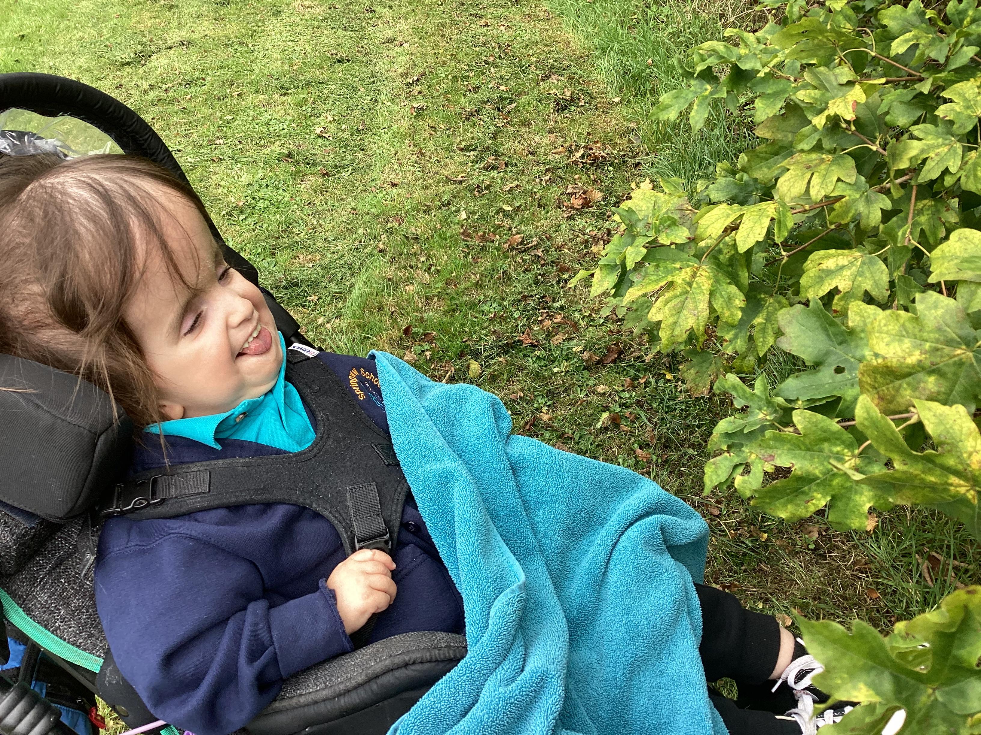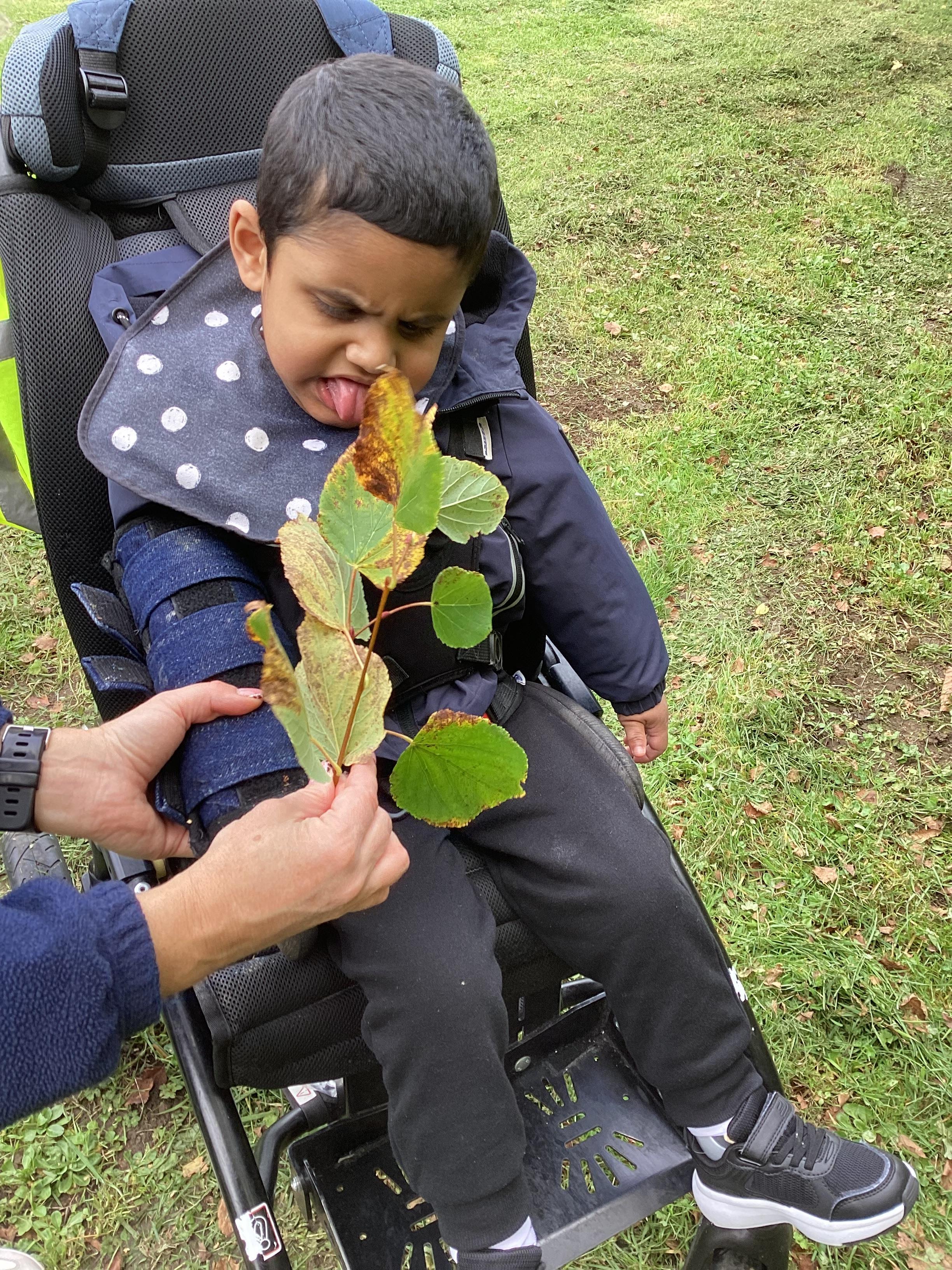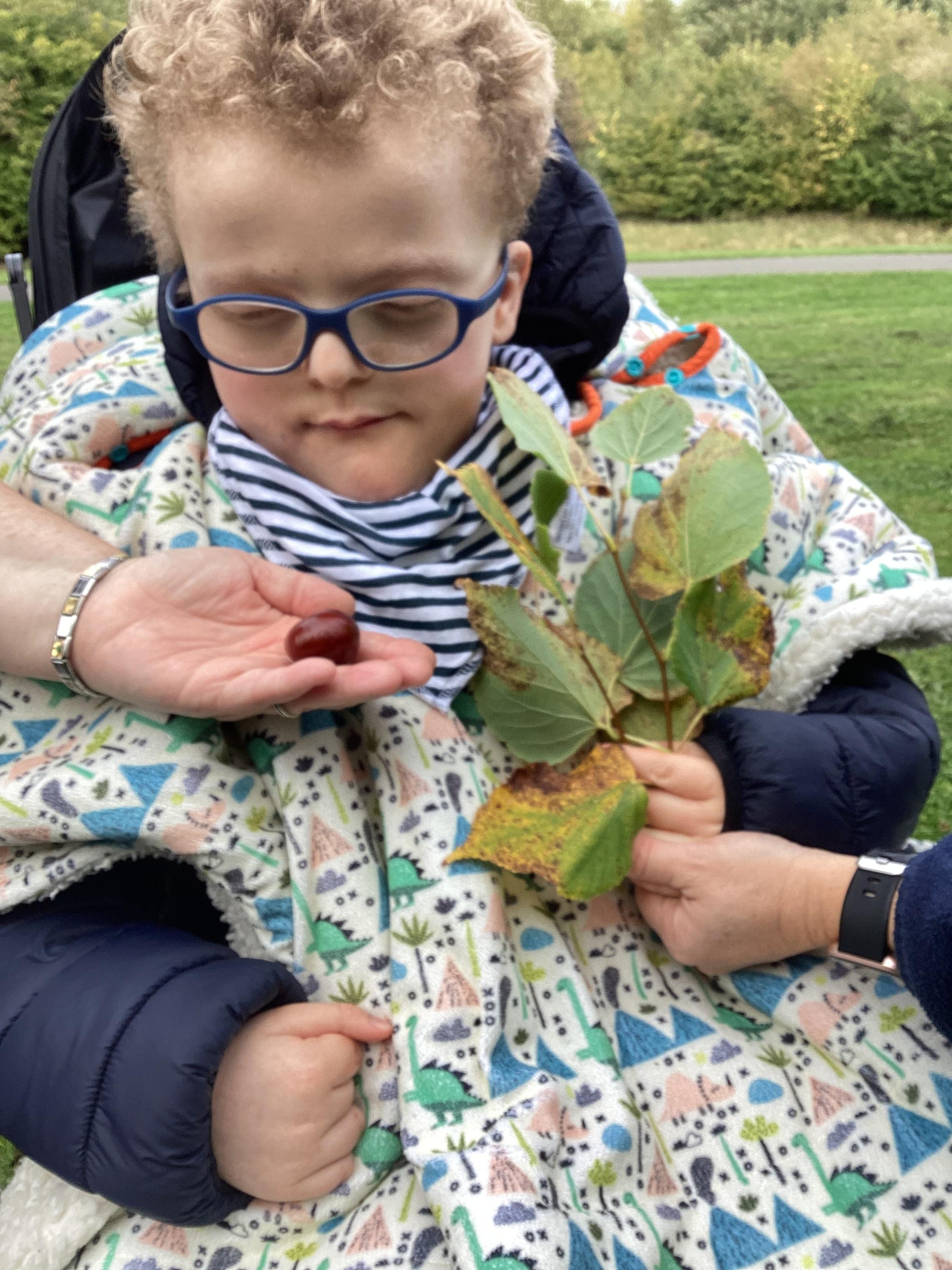 This afternoon we headed out for some fresh air and to look for signs of Autumn. We noticed the changing colours of leaves on the trees. We even spotted and explored a conker.