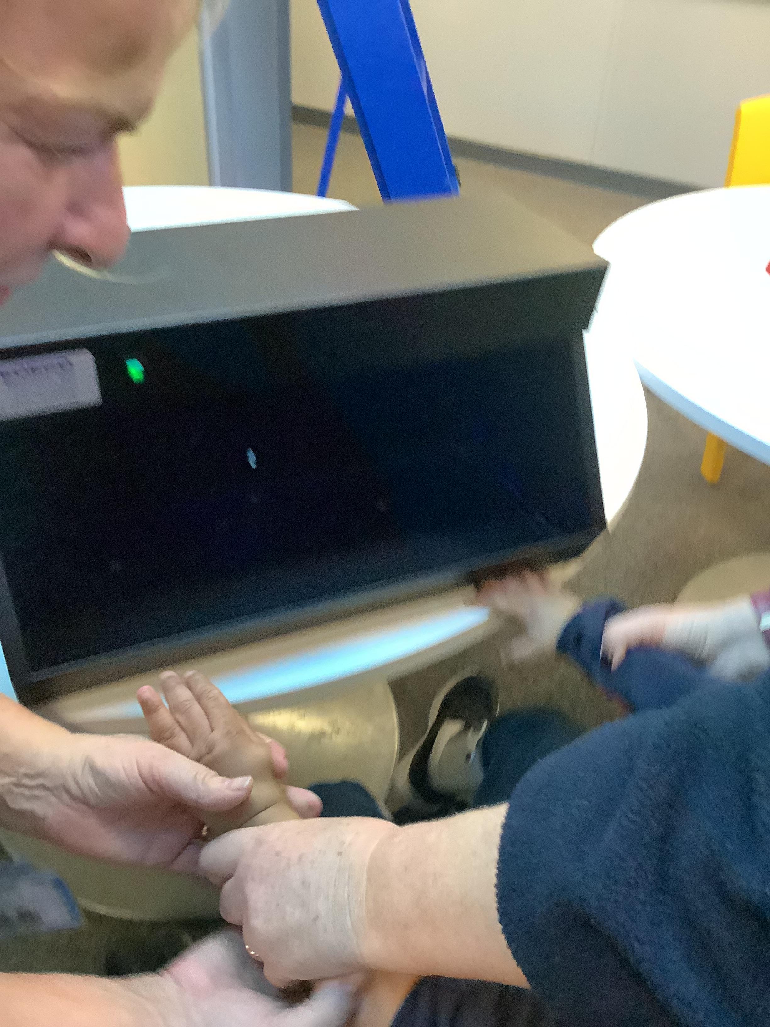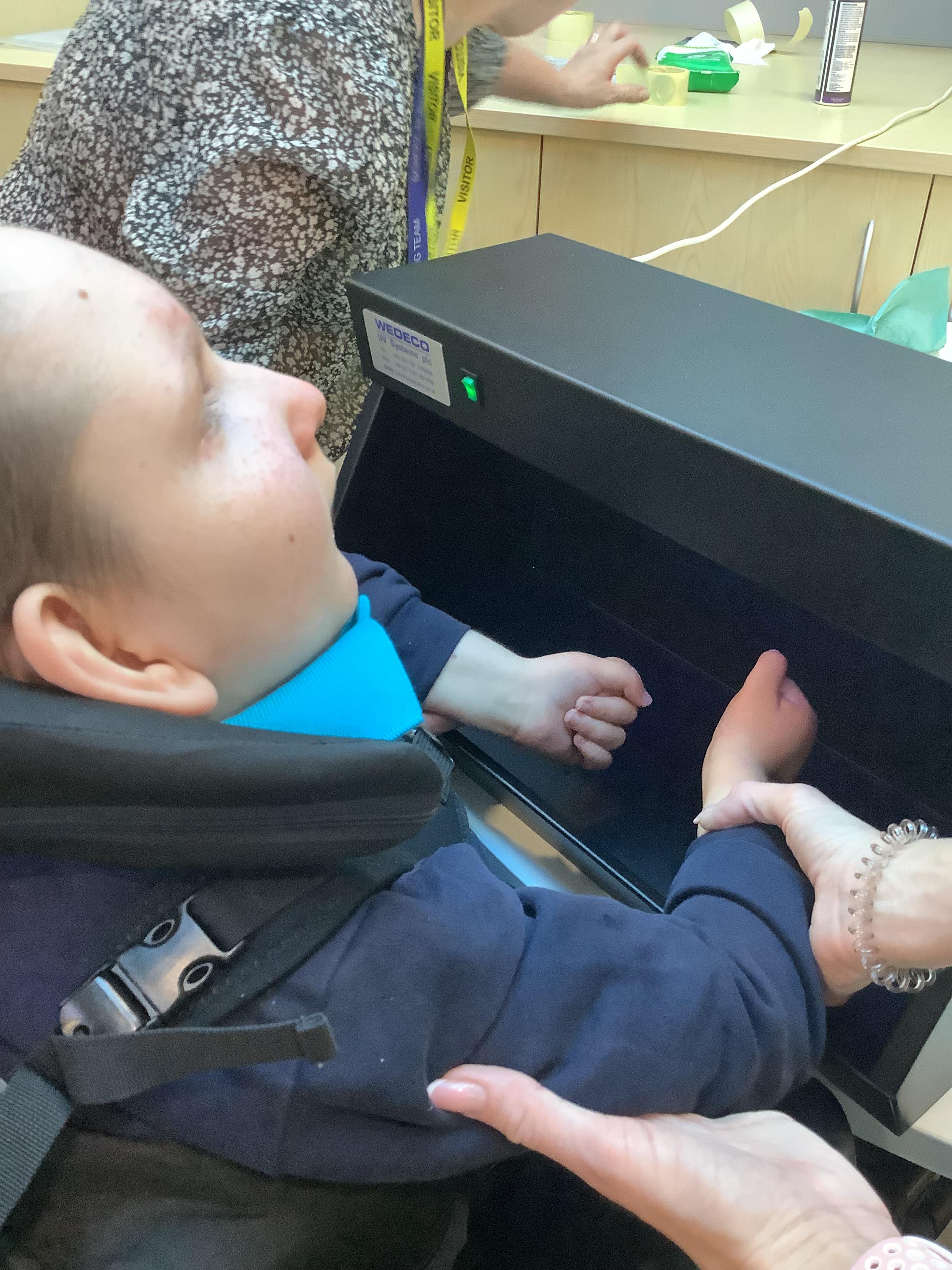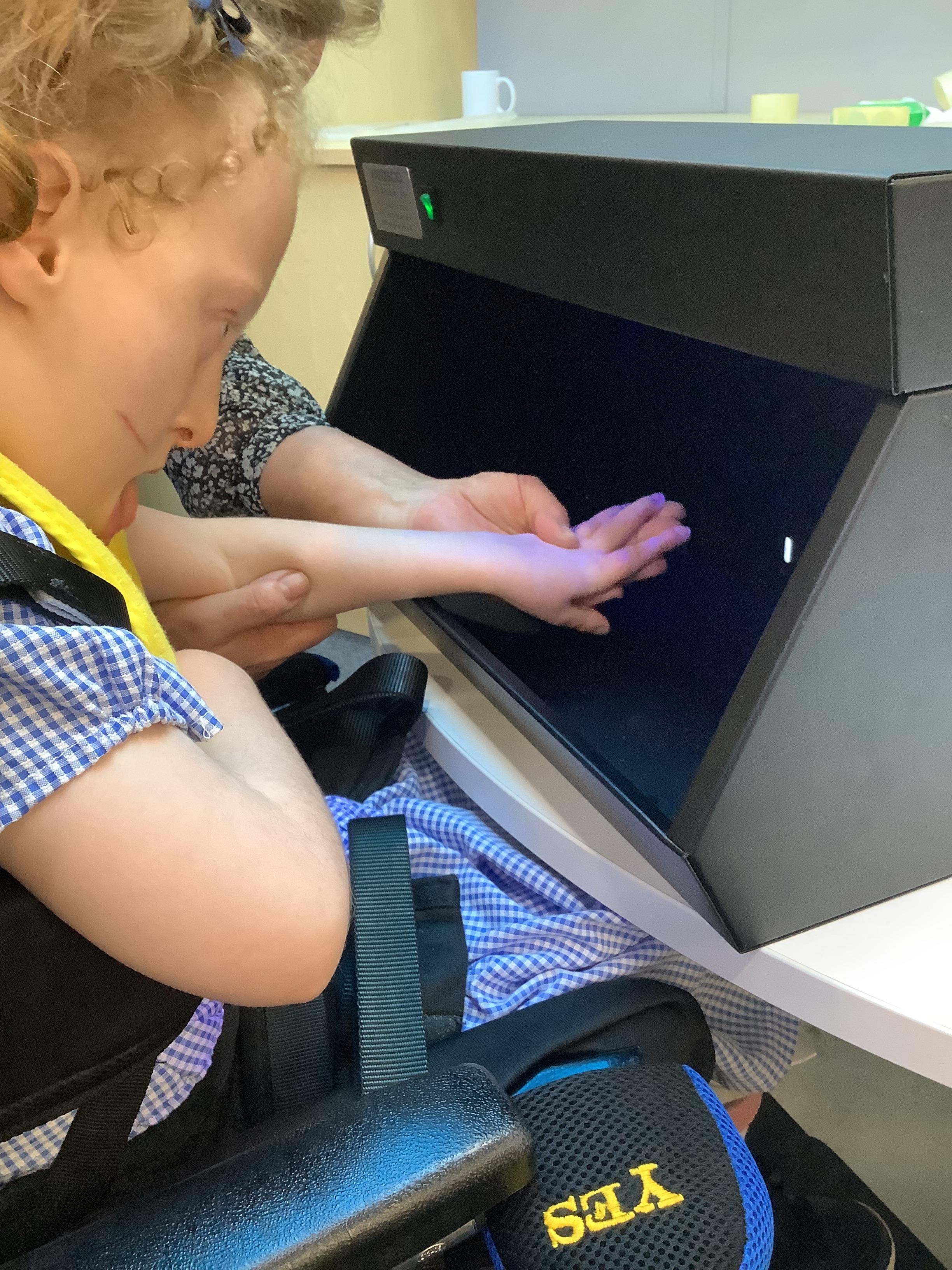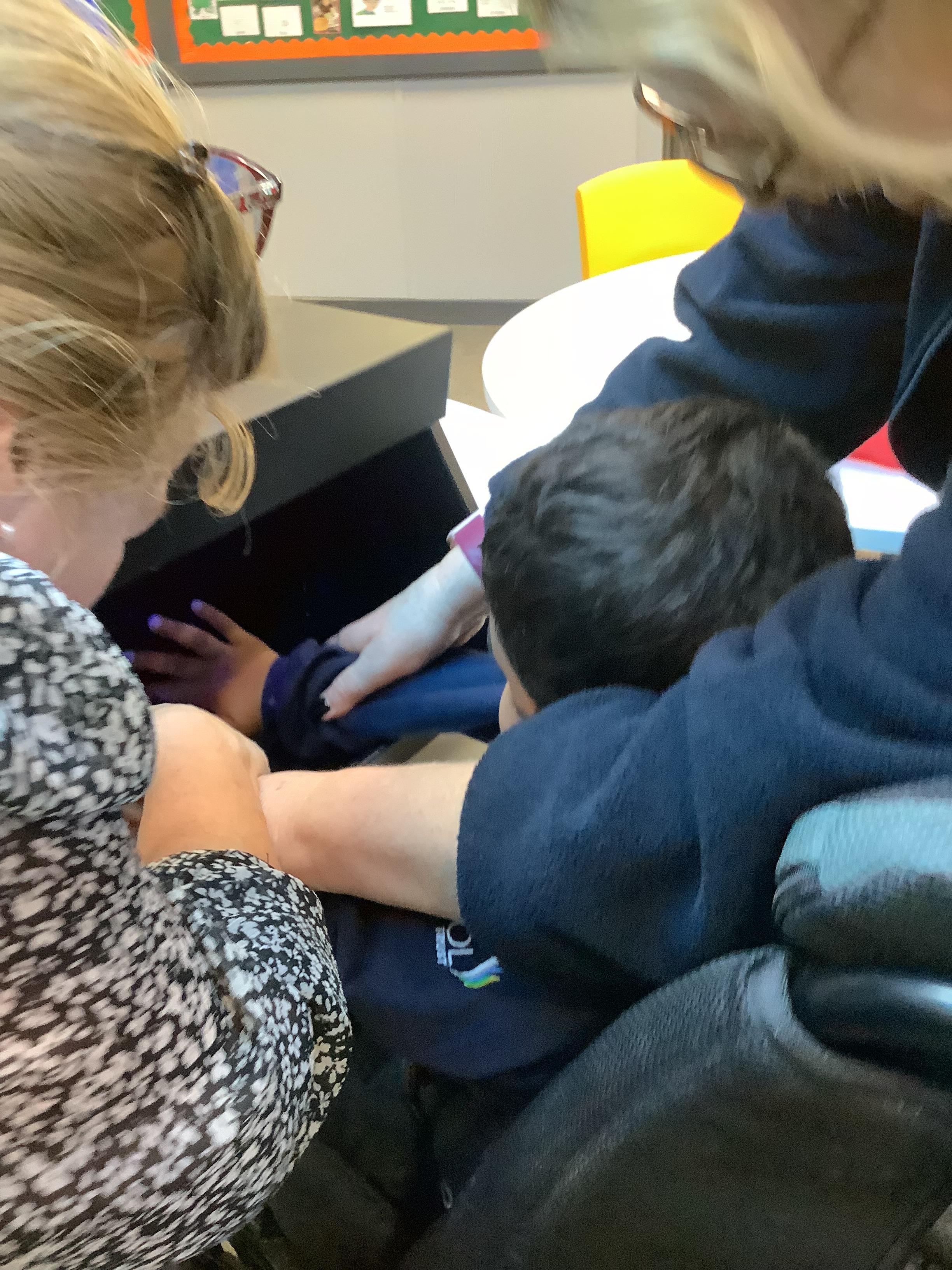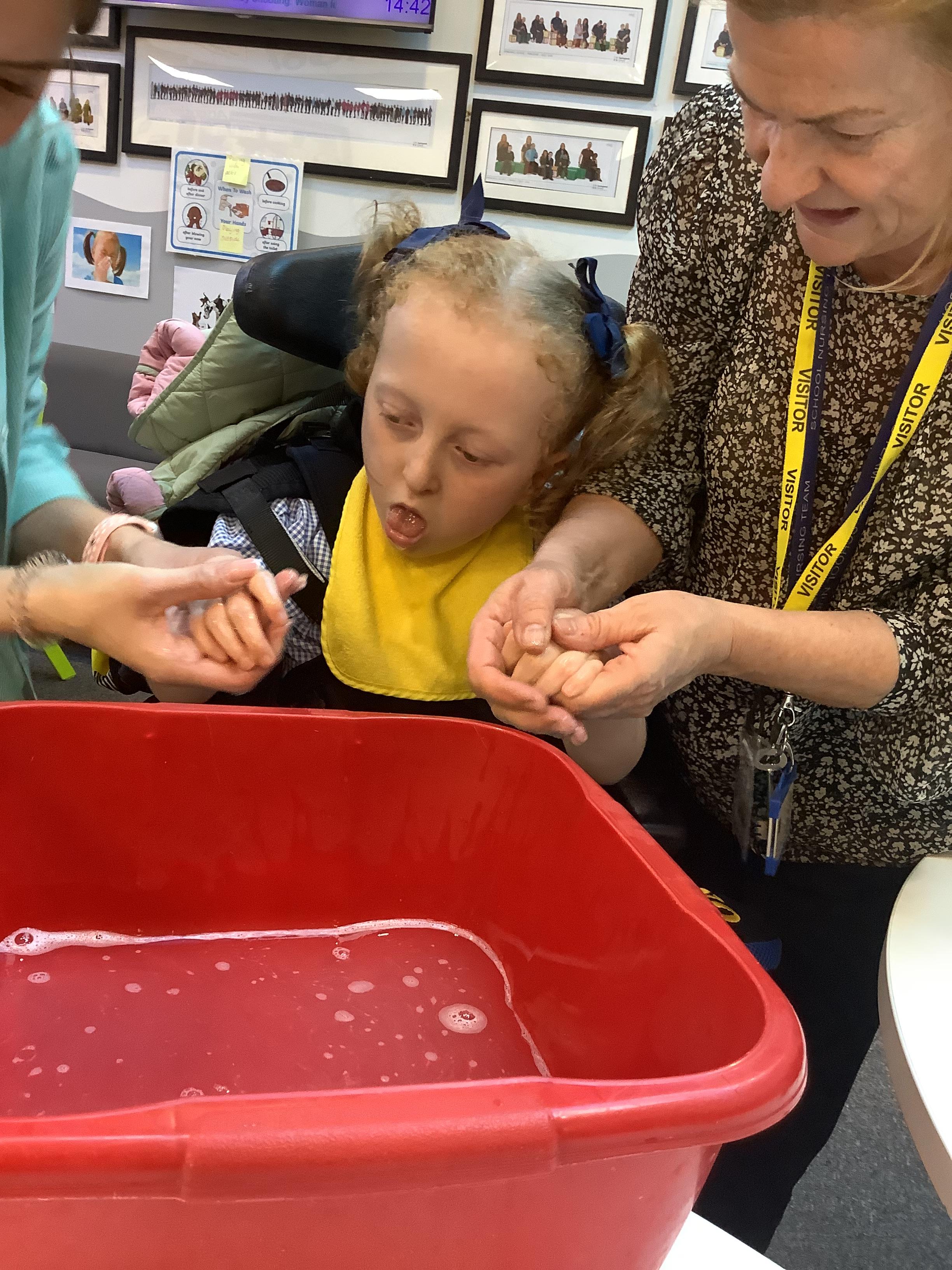 This afternoon we had a visit from the school nurse to teach us about the importance of hand hygiene. We listened to a great story about why it is important for everyone to keep their hands clean and then we took part in a little experiment to look for germs on our hands. We then washed our hands with soap and water and looked again under the special light. We could see the germs had gone!