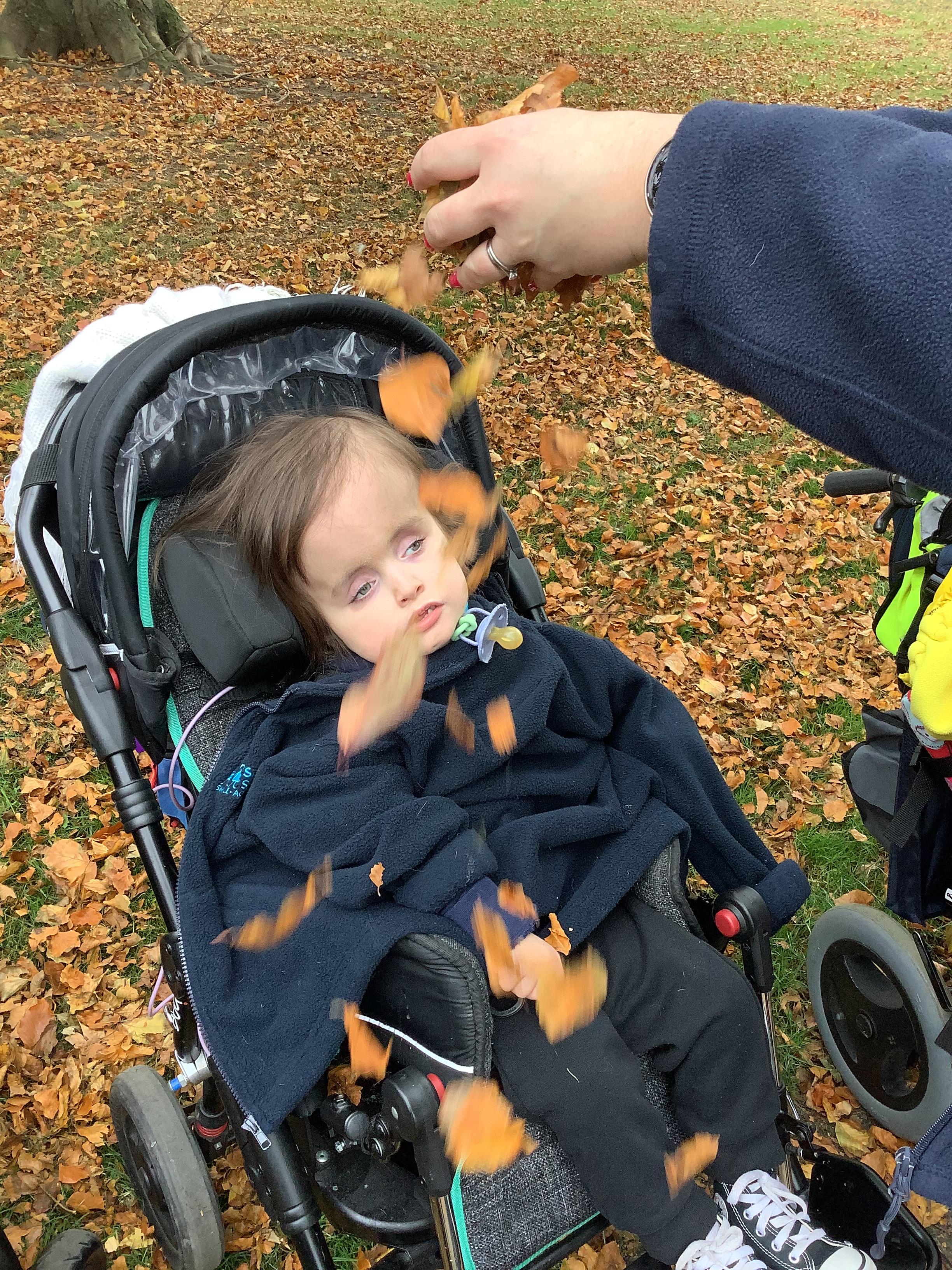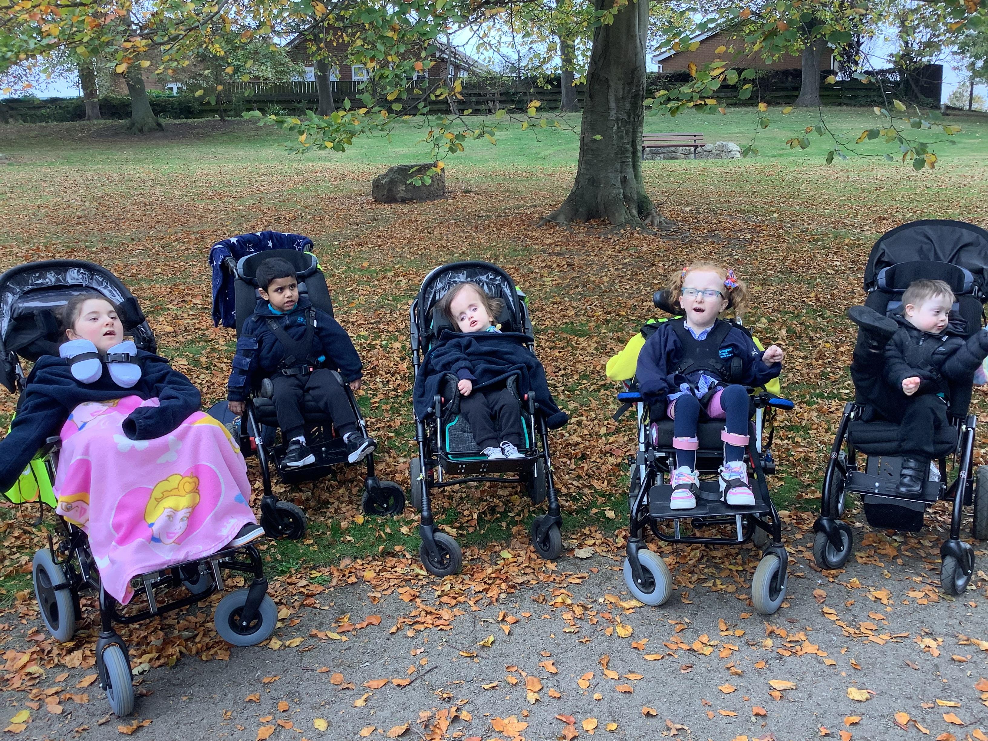 To end a wonderful week in Lion Class, we headed out for some fresh air this afternoon to a small local park. We listened to the crunch as we rode through the piles of autumn leaves that have fallen from the trees!
