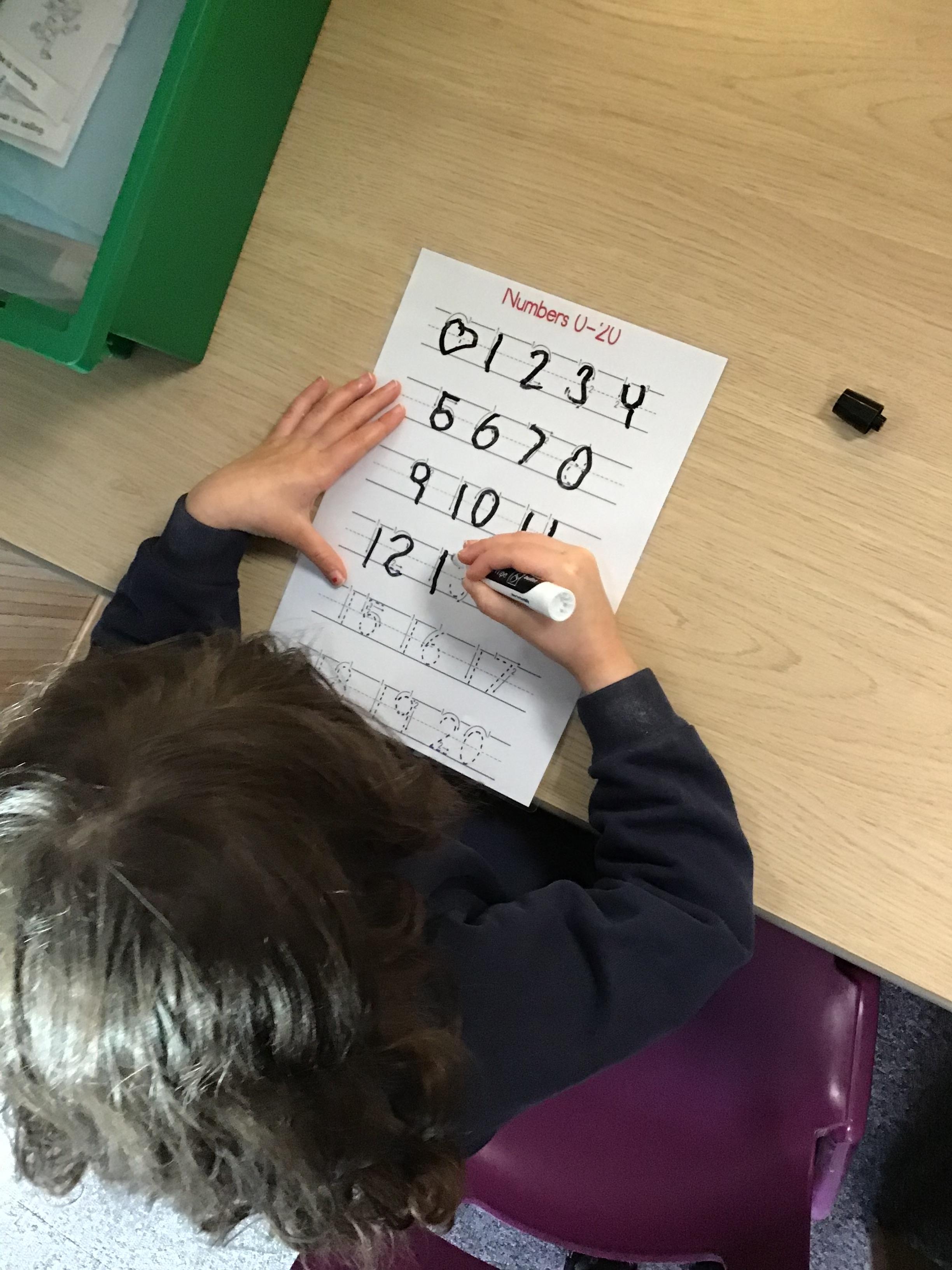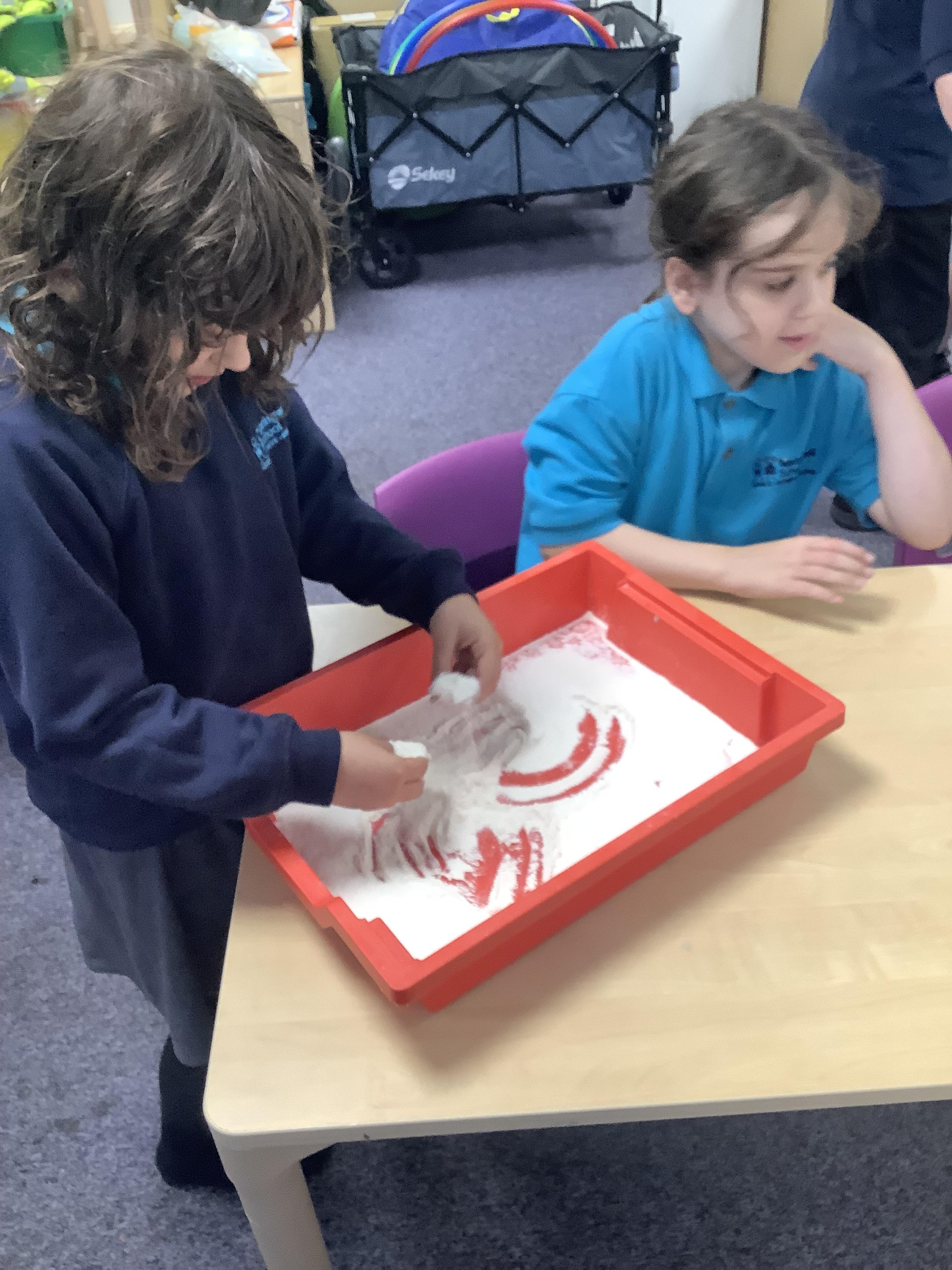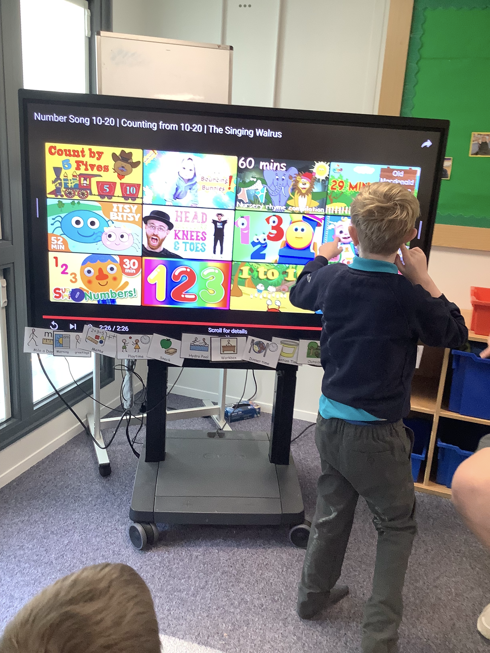 Today, in Maths, we had lots of fun taking turns picking our favourite Maths songs and then drawing numbers using different medias. The children had lots of fun!