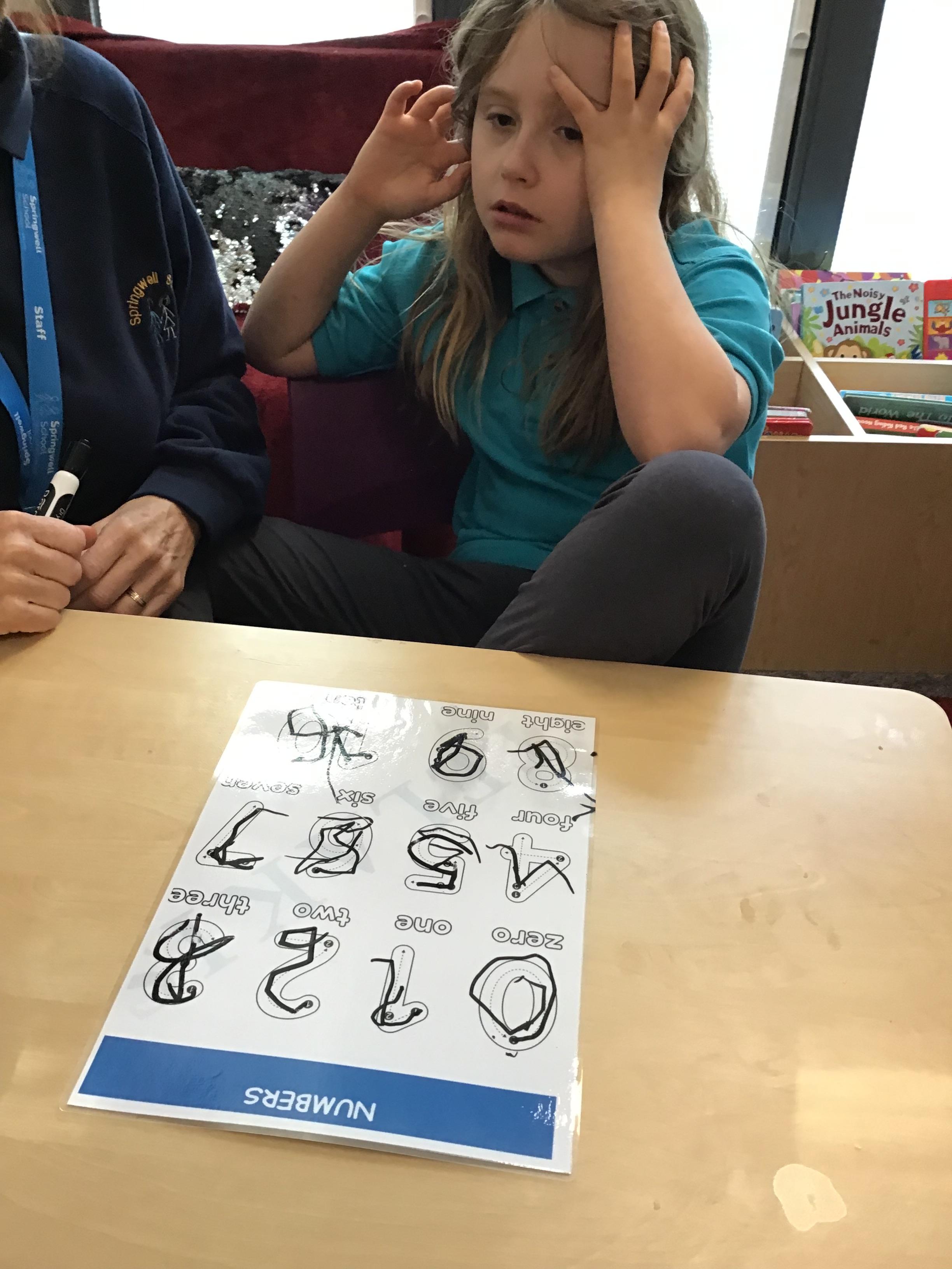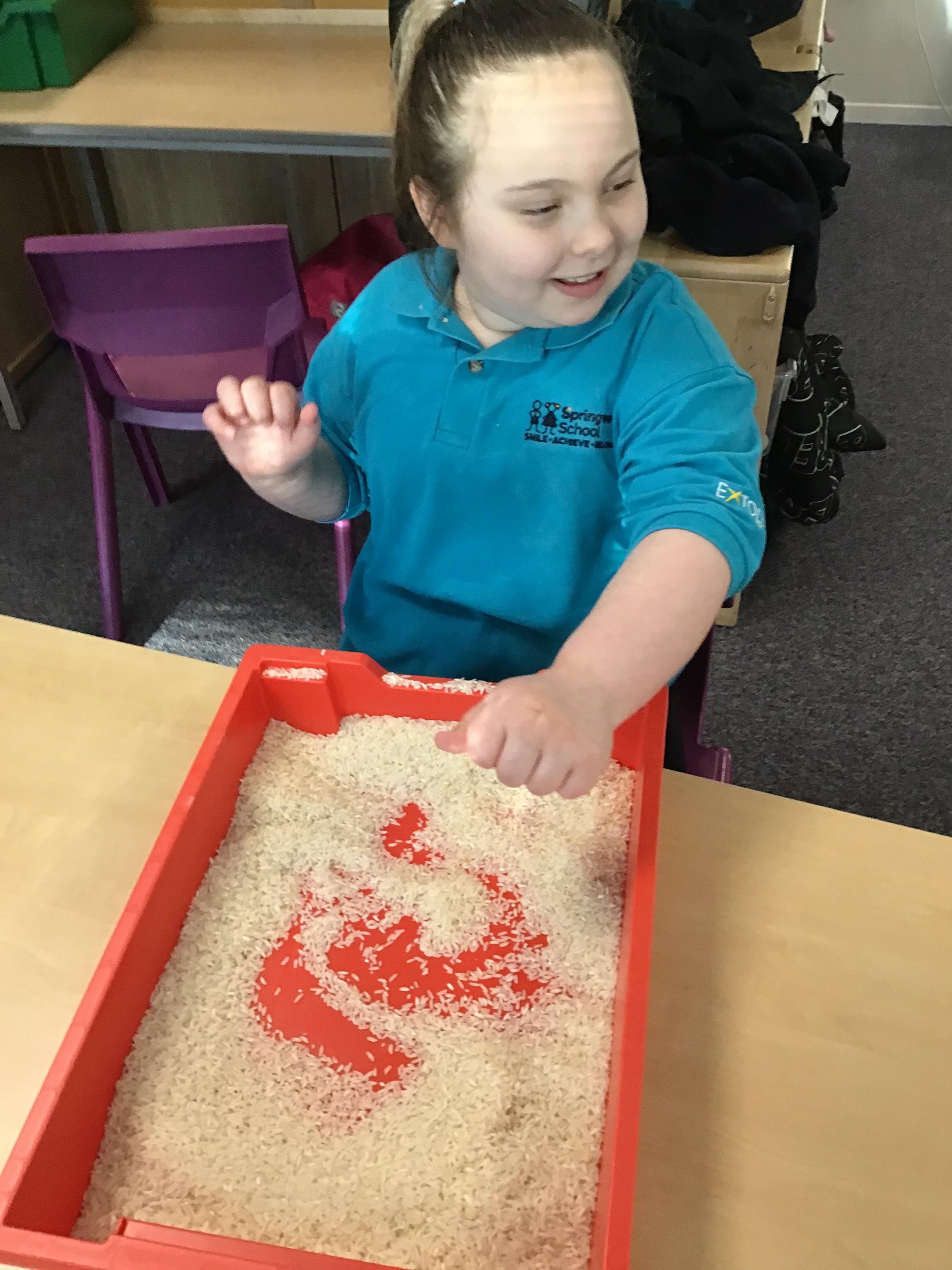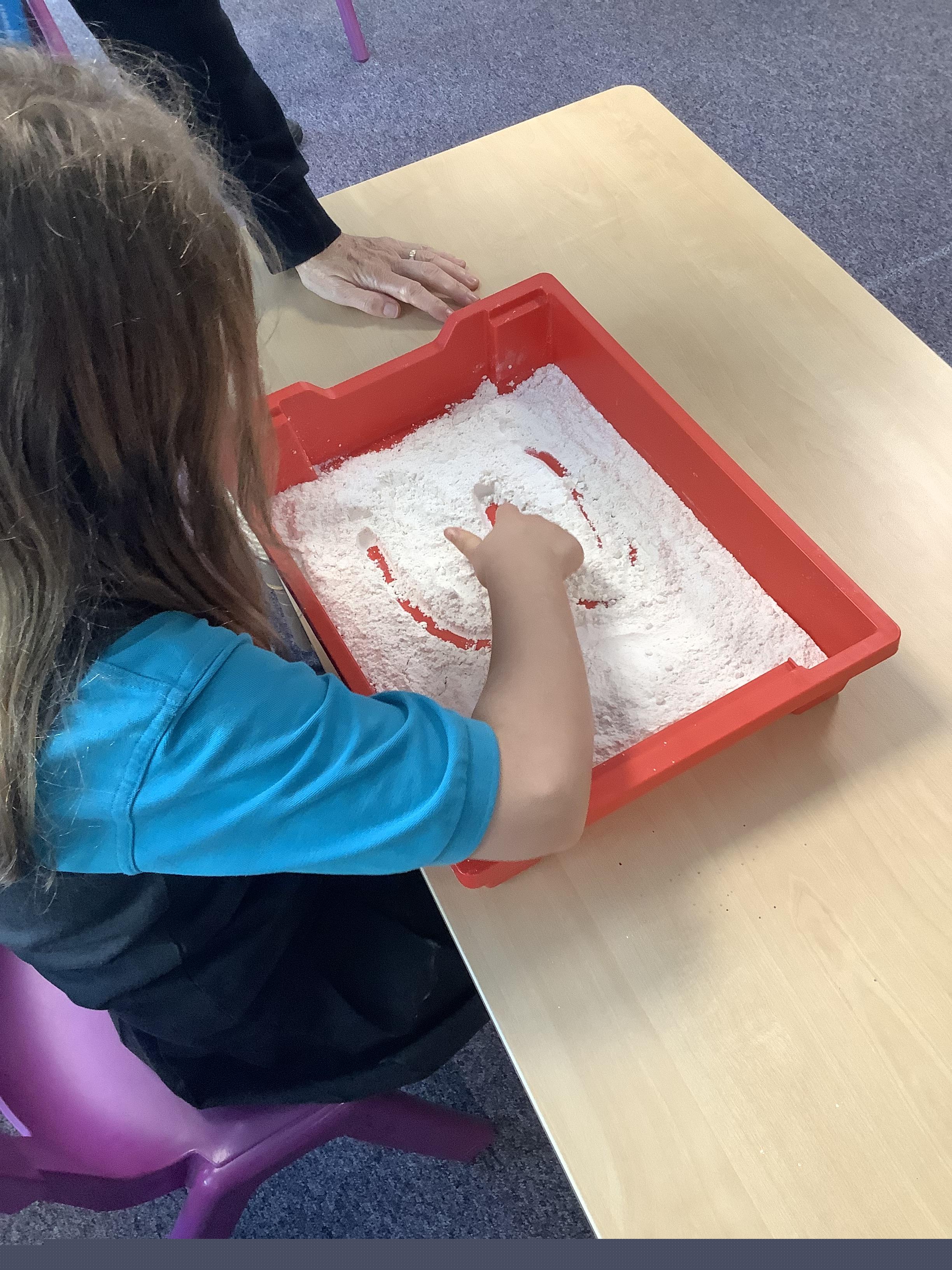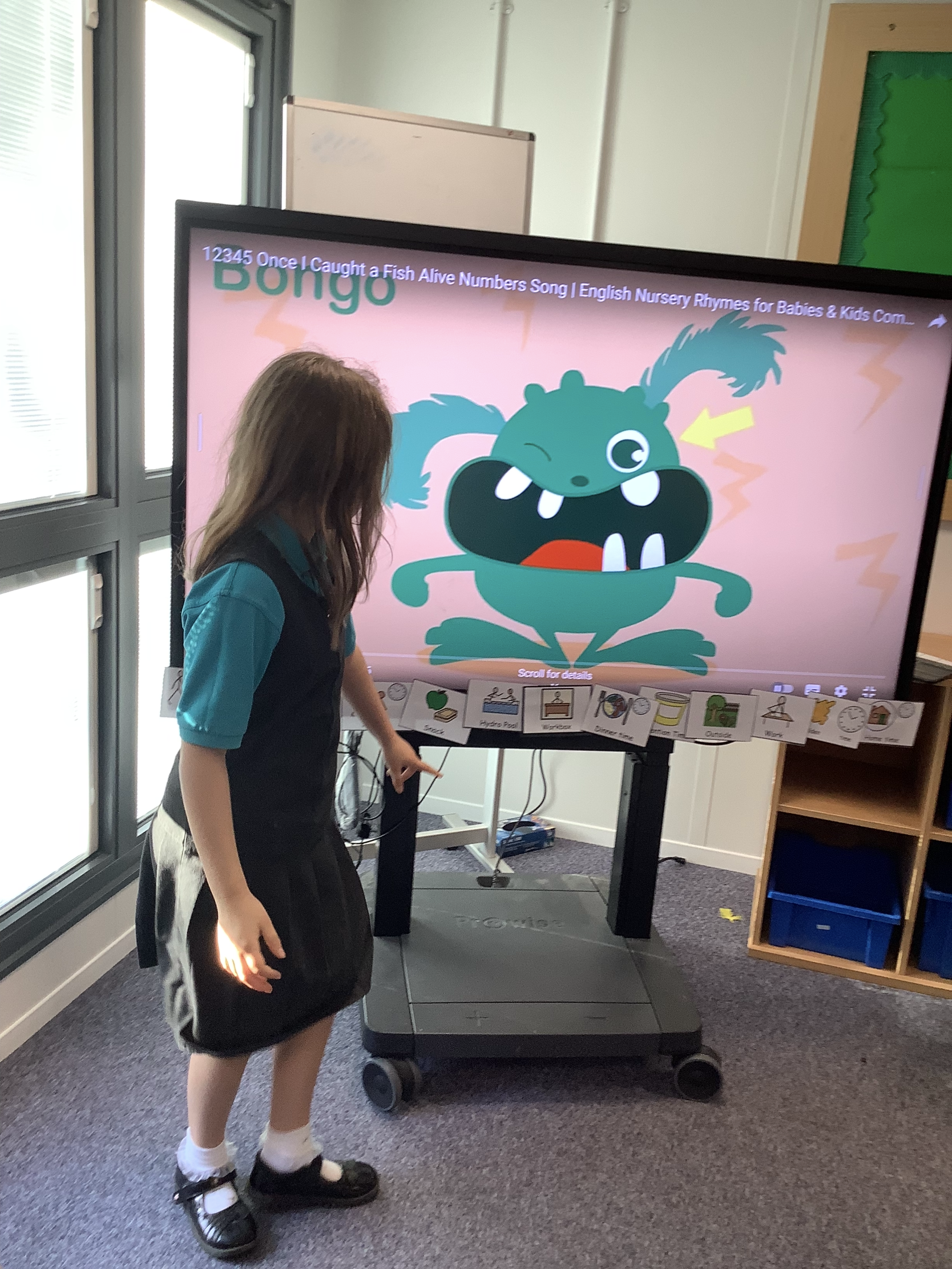 Today, in Maths, we had lots of fun taking turns picking our favourite Maths songs and then drawing numbers using different medias. The children had lots of fun!