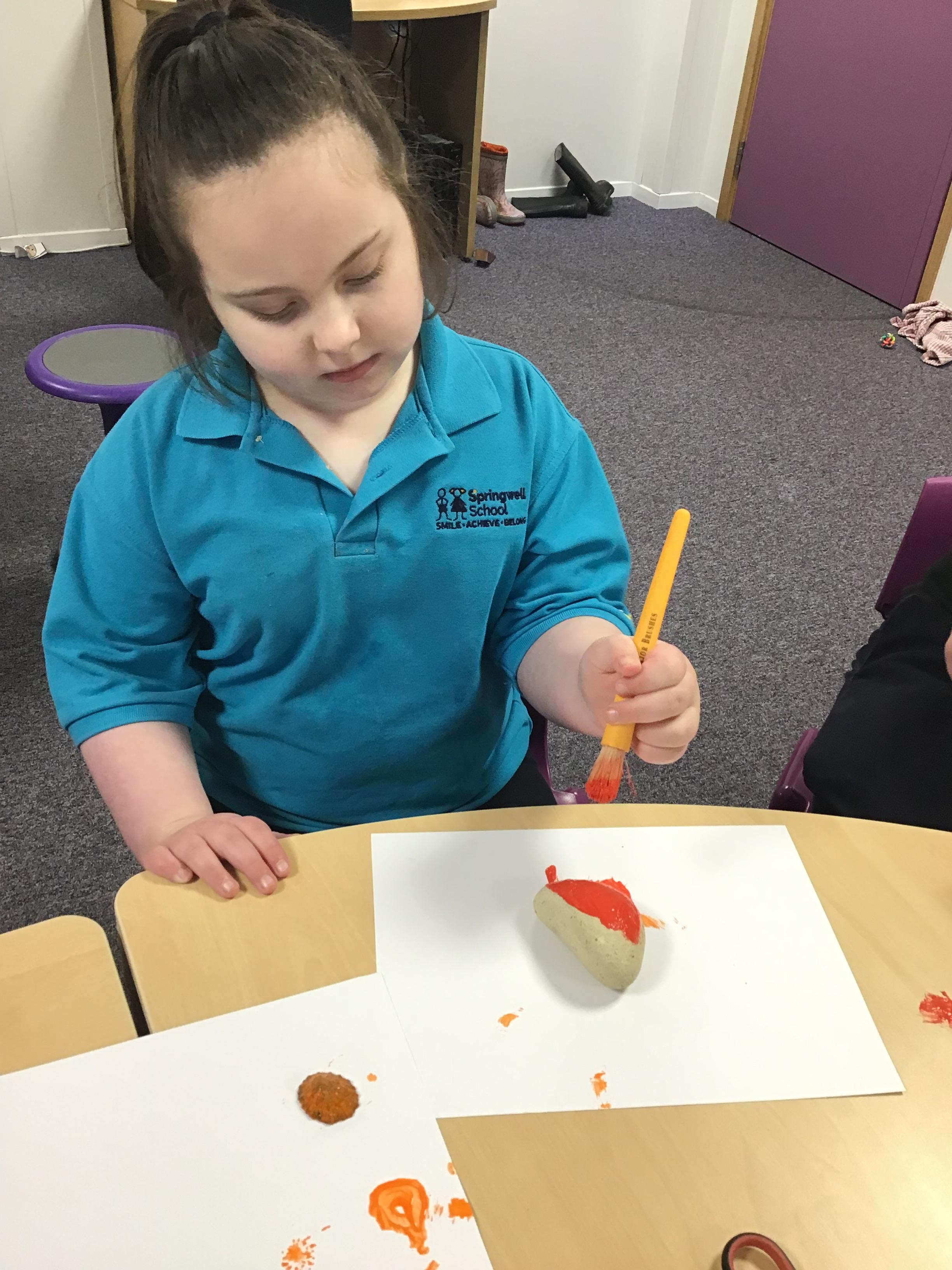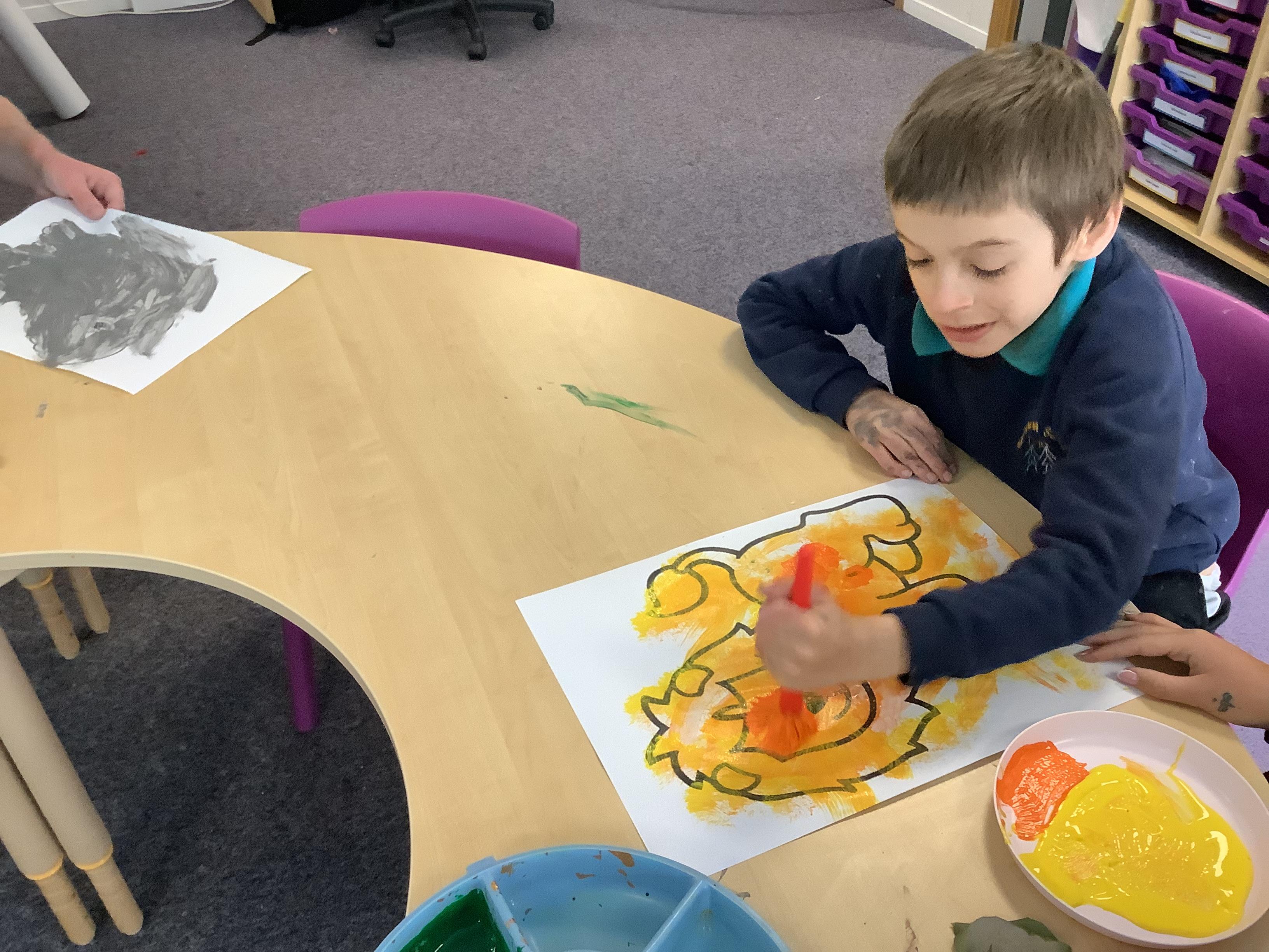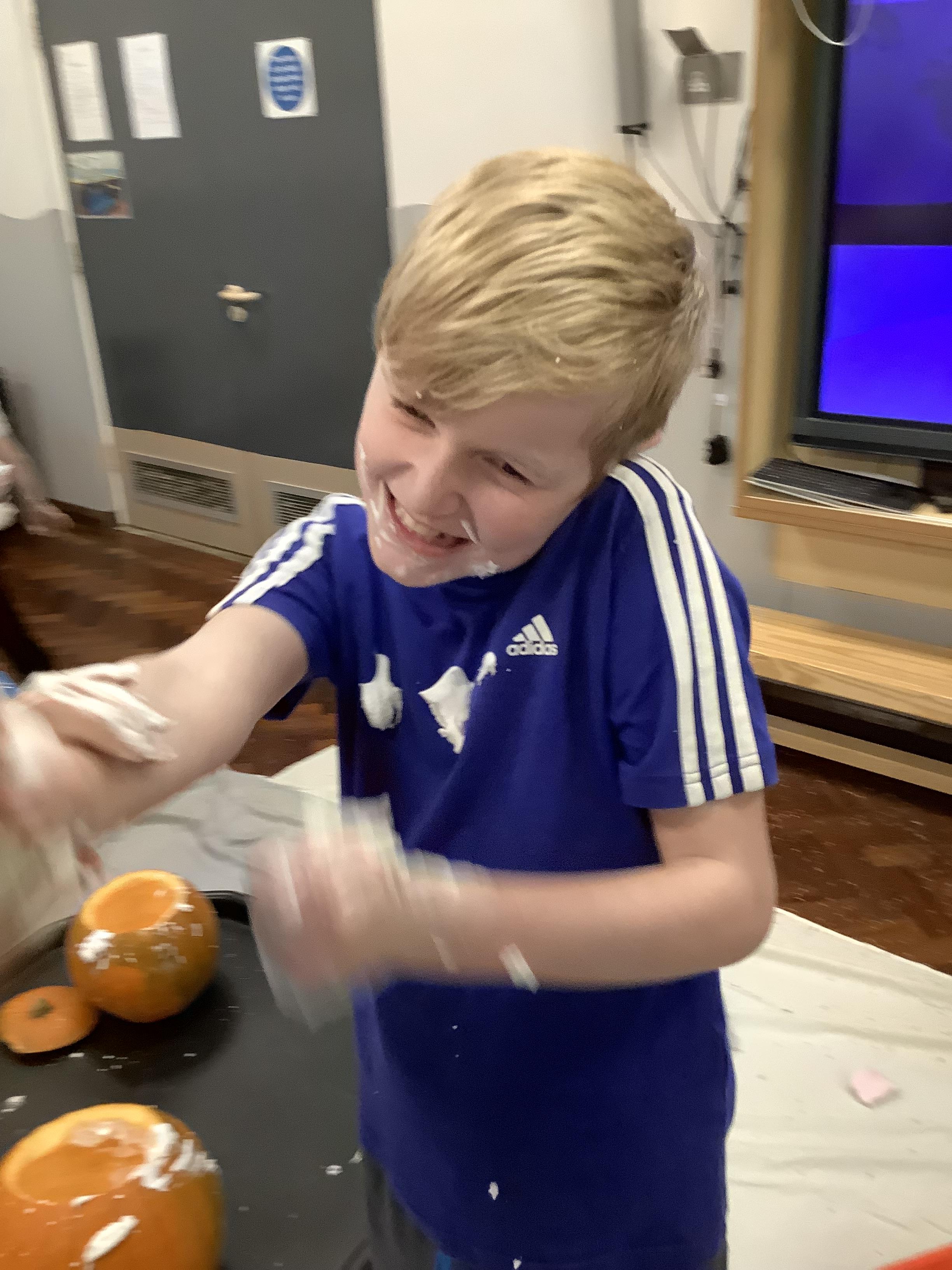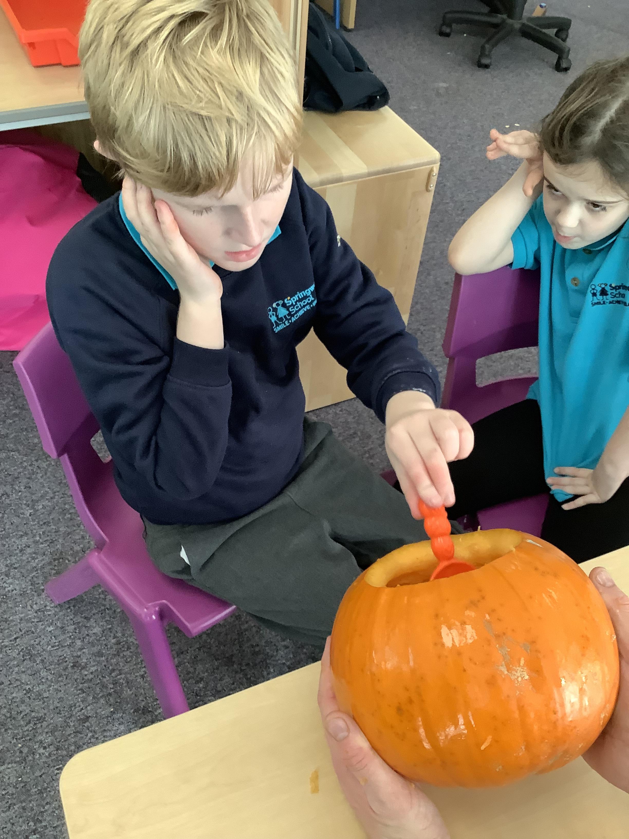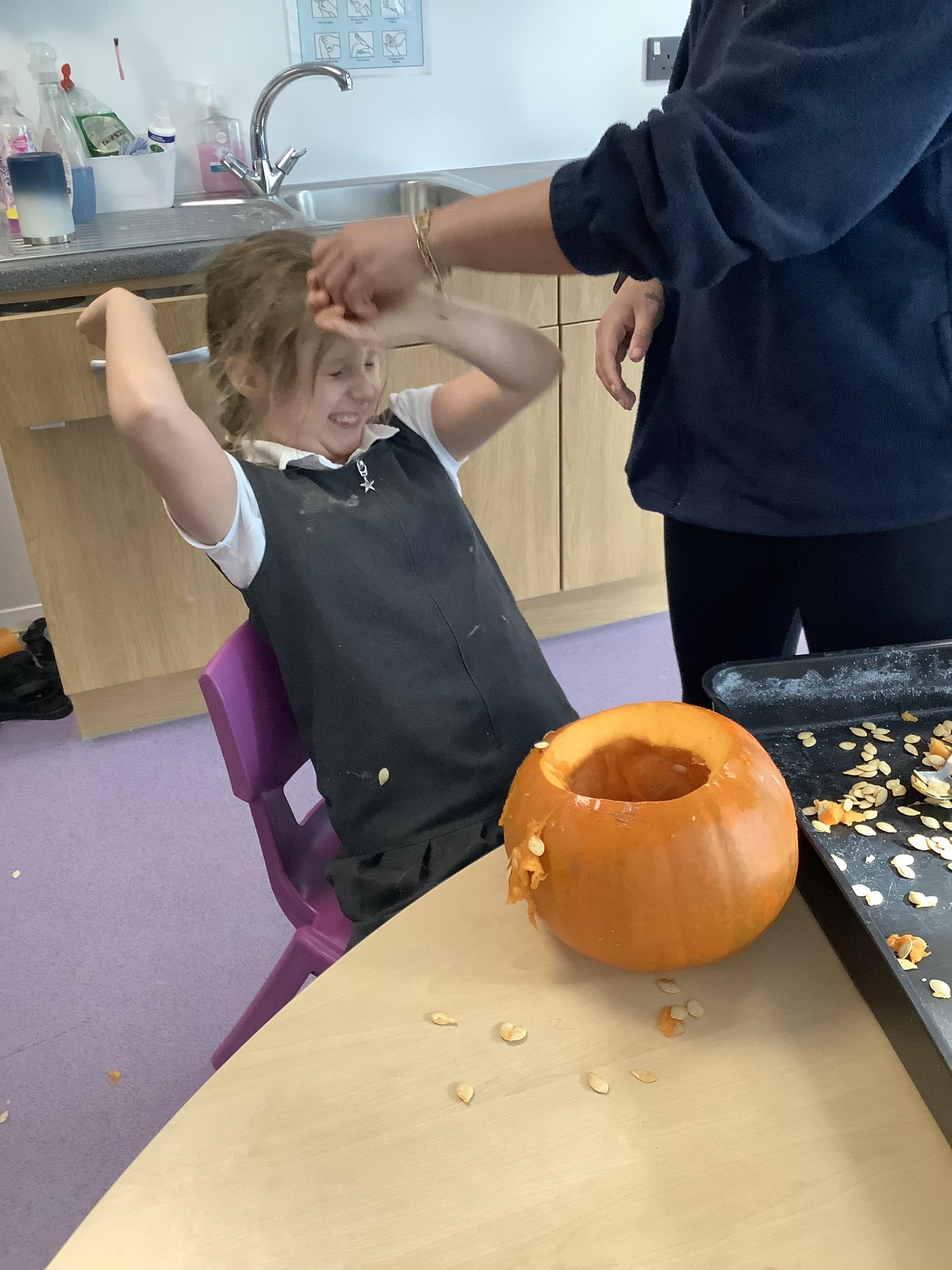 Today we had a trip to the shops to buy pumpkins. We then came back to class and carved them out. It got very messy, we had so much fun!