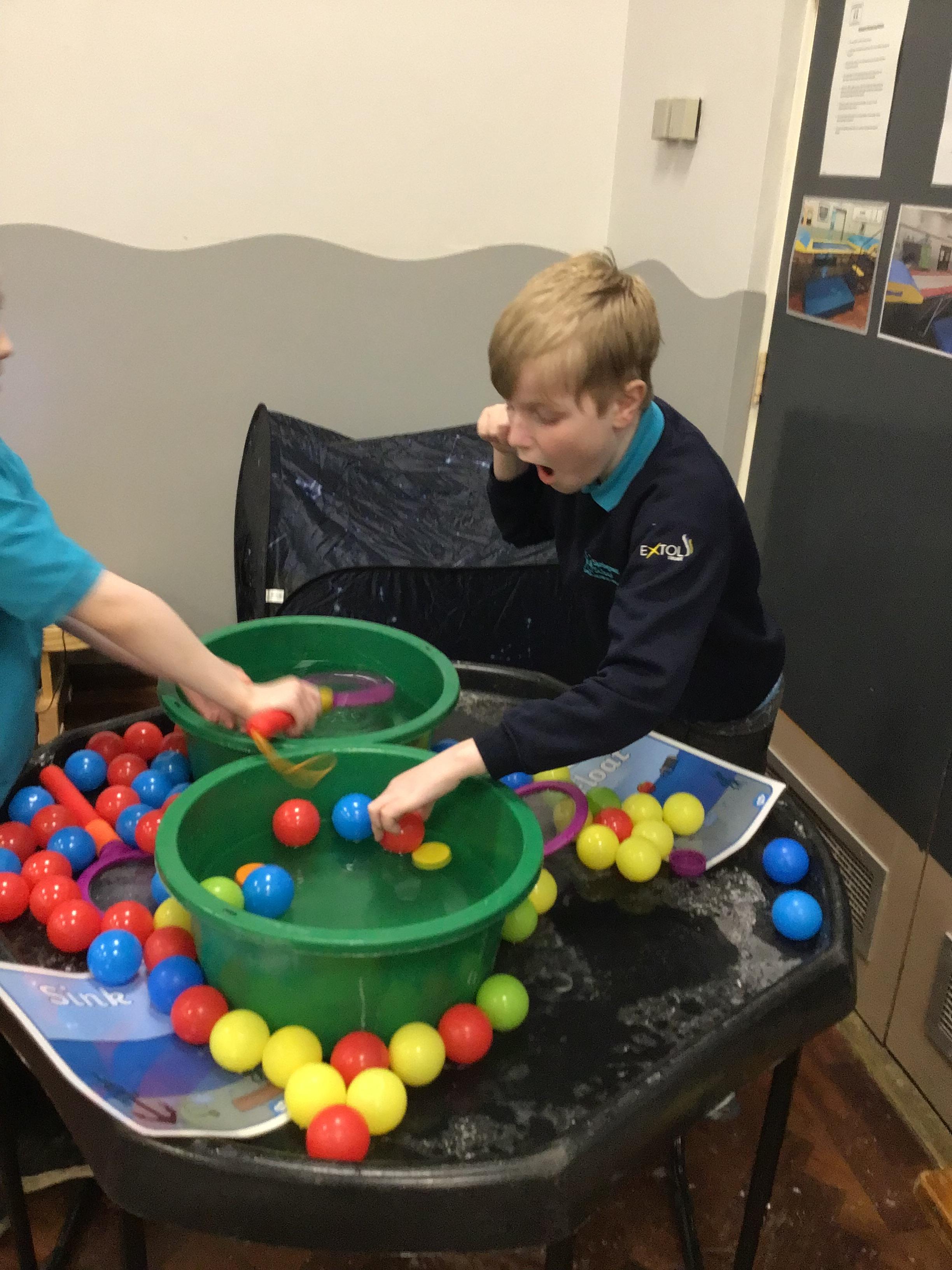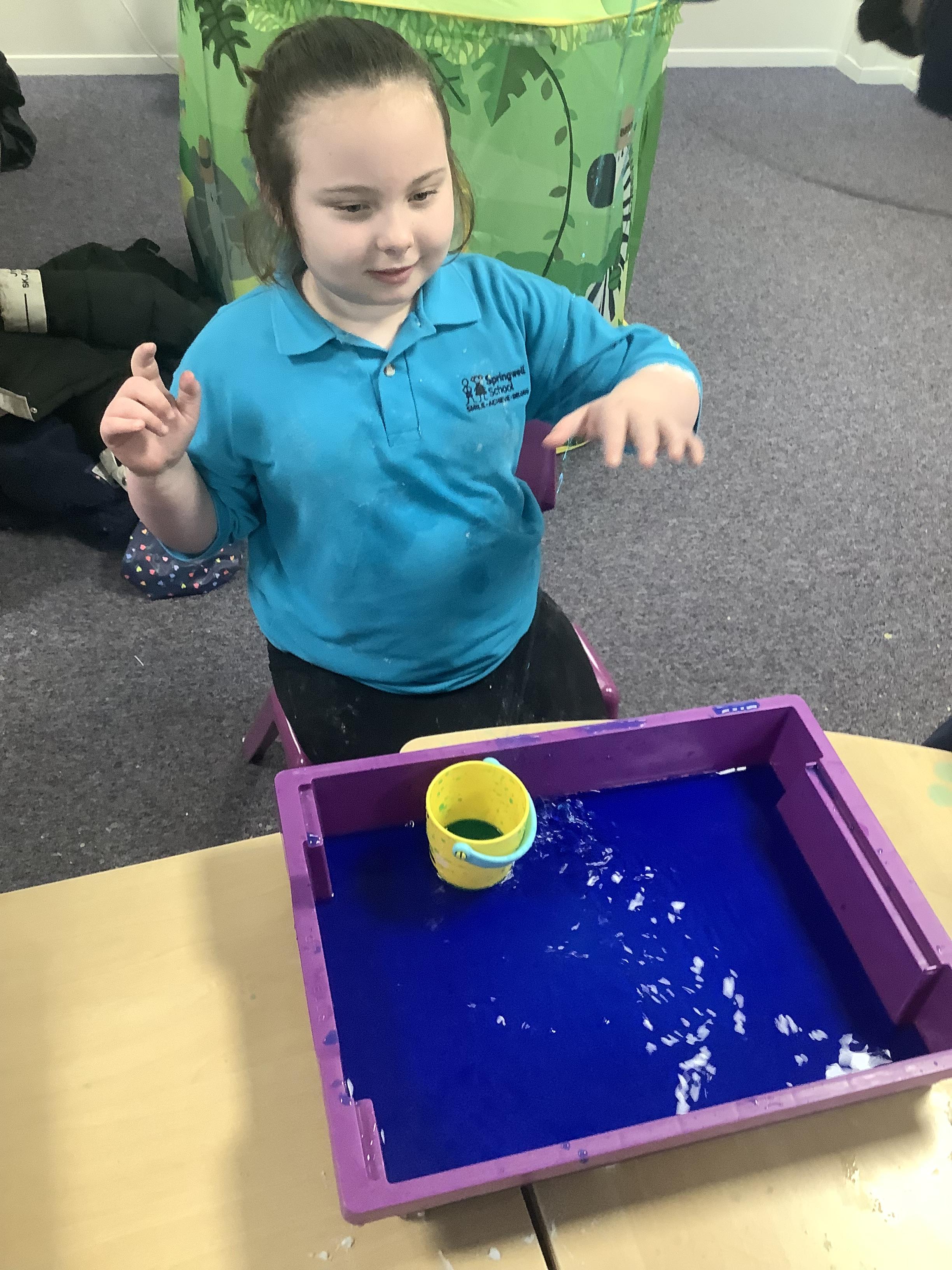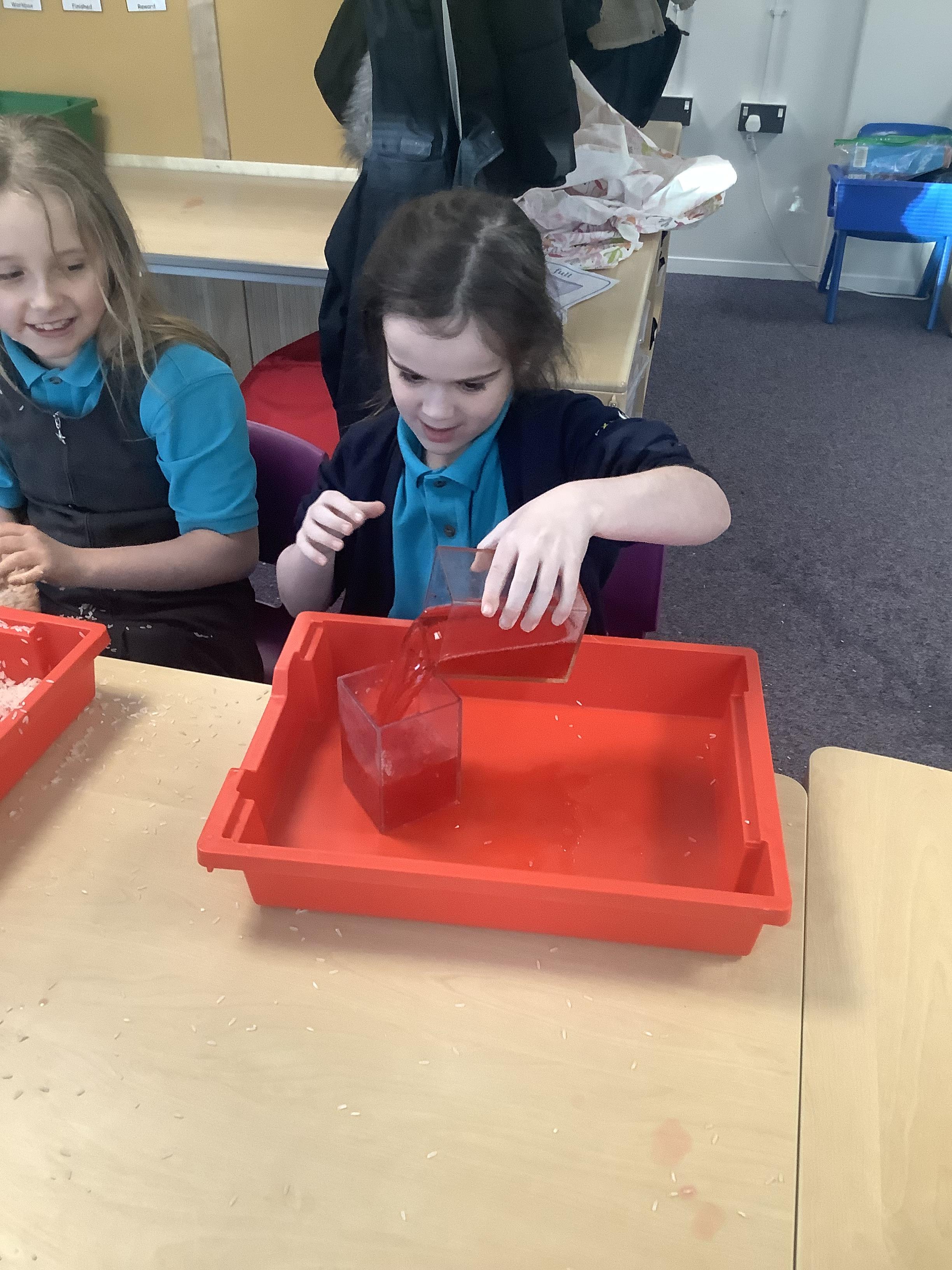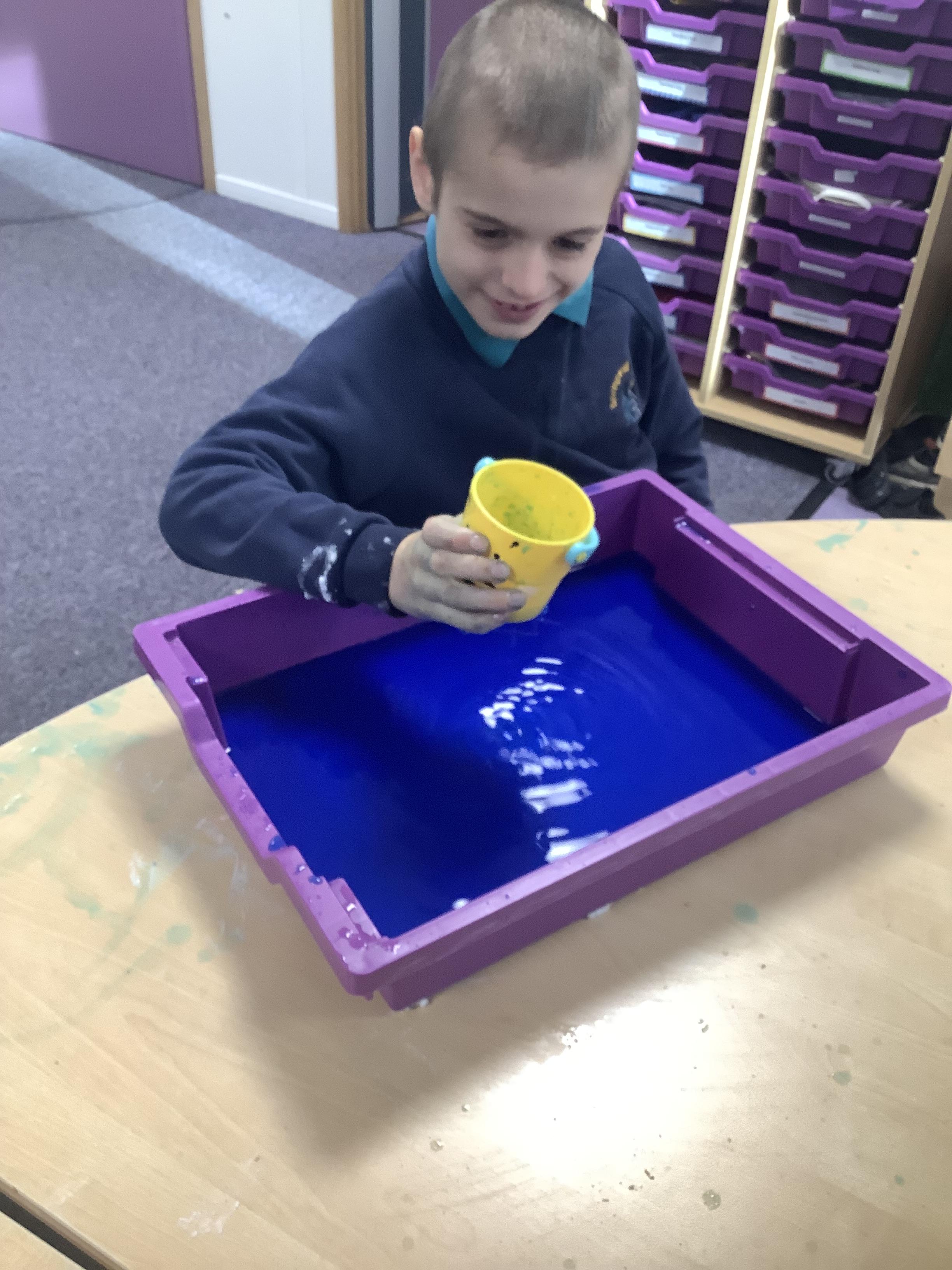 Today in our maths lesson we have been learning about empty and full, as always things got very messy!