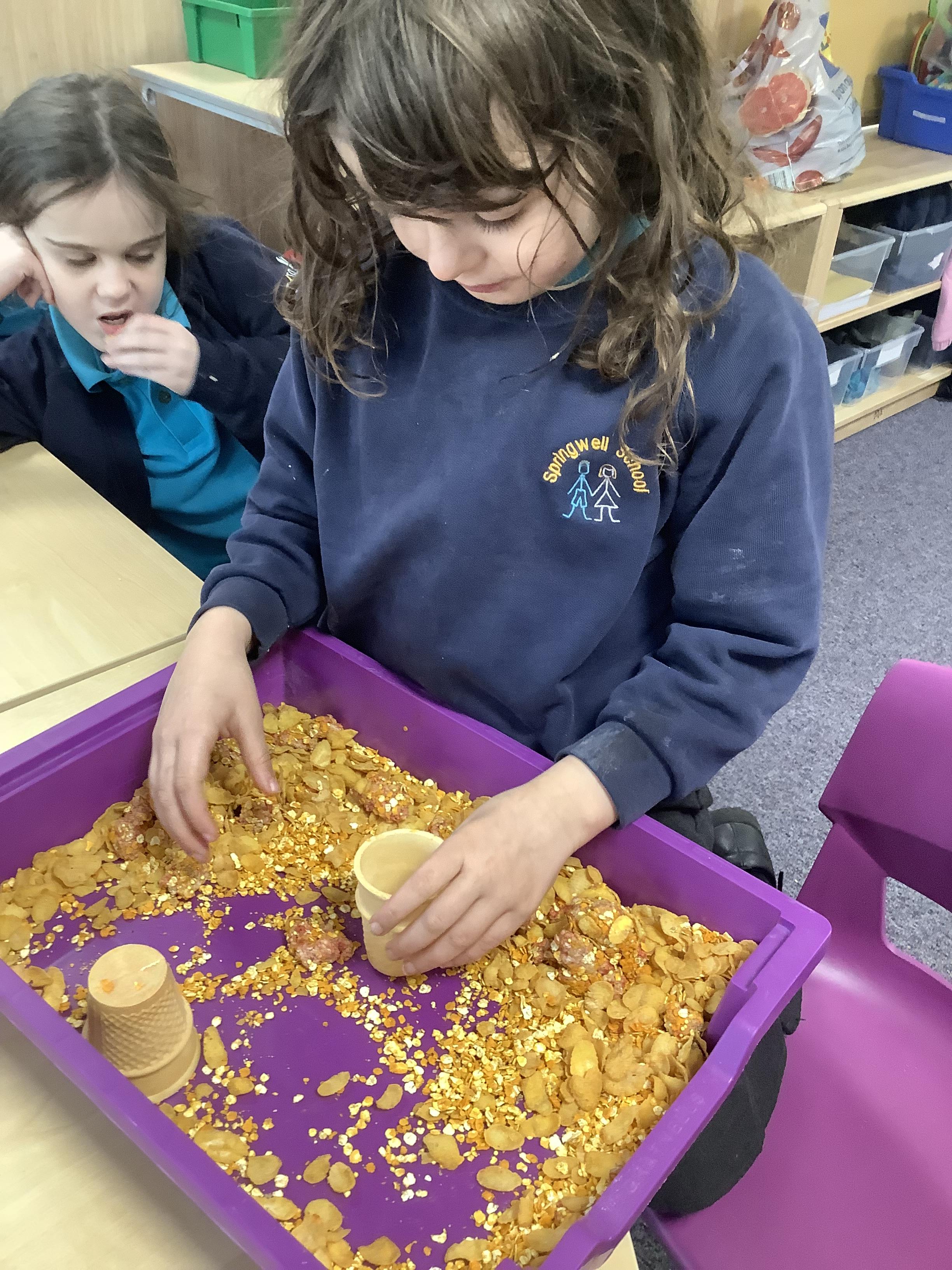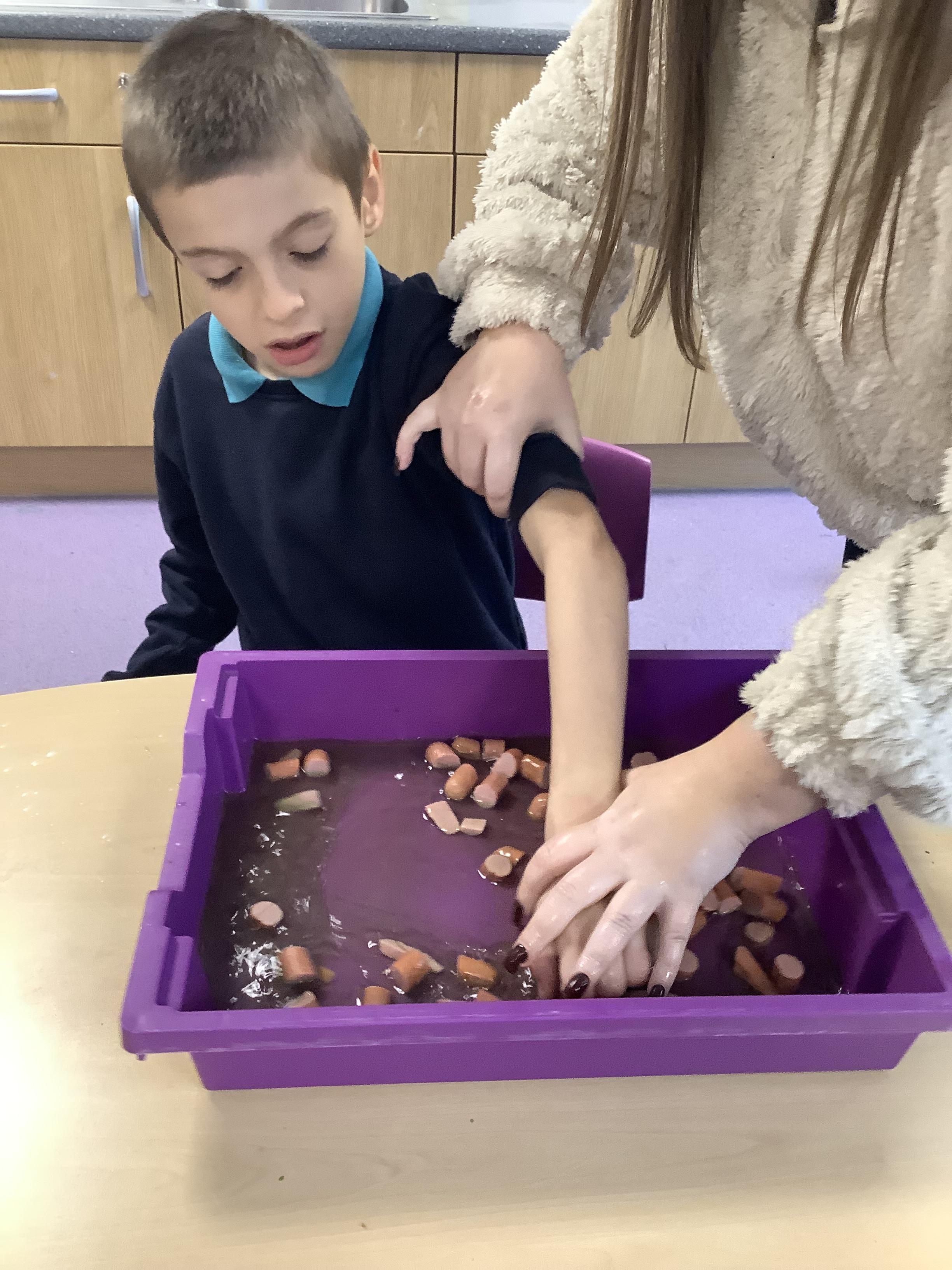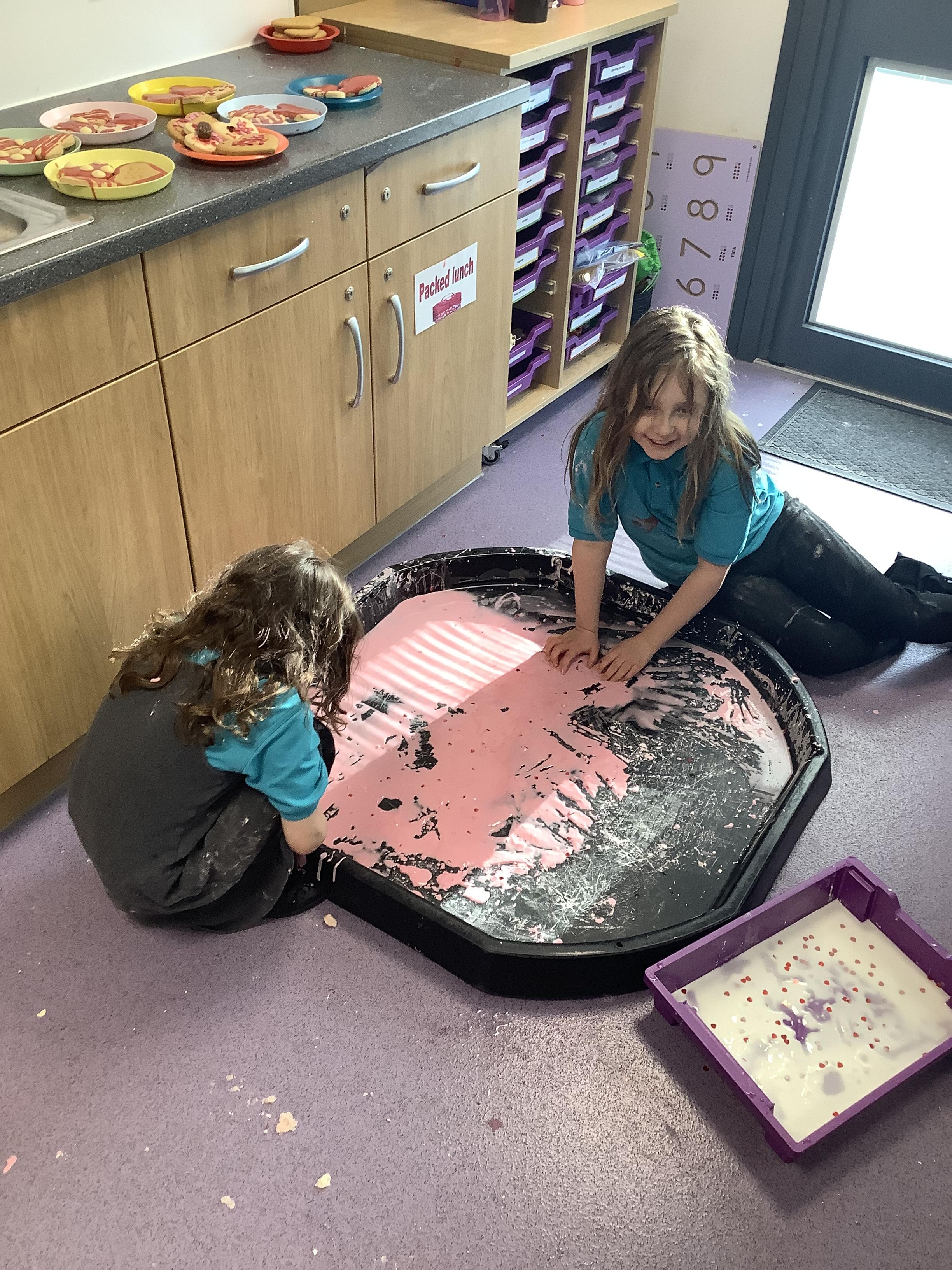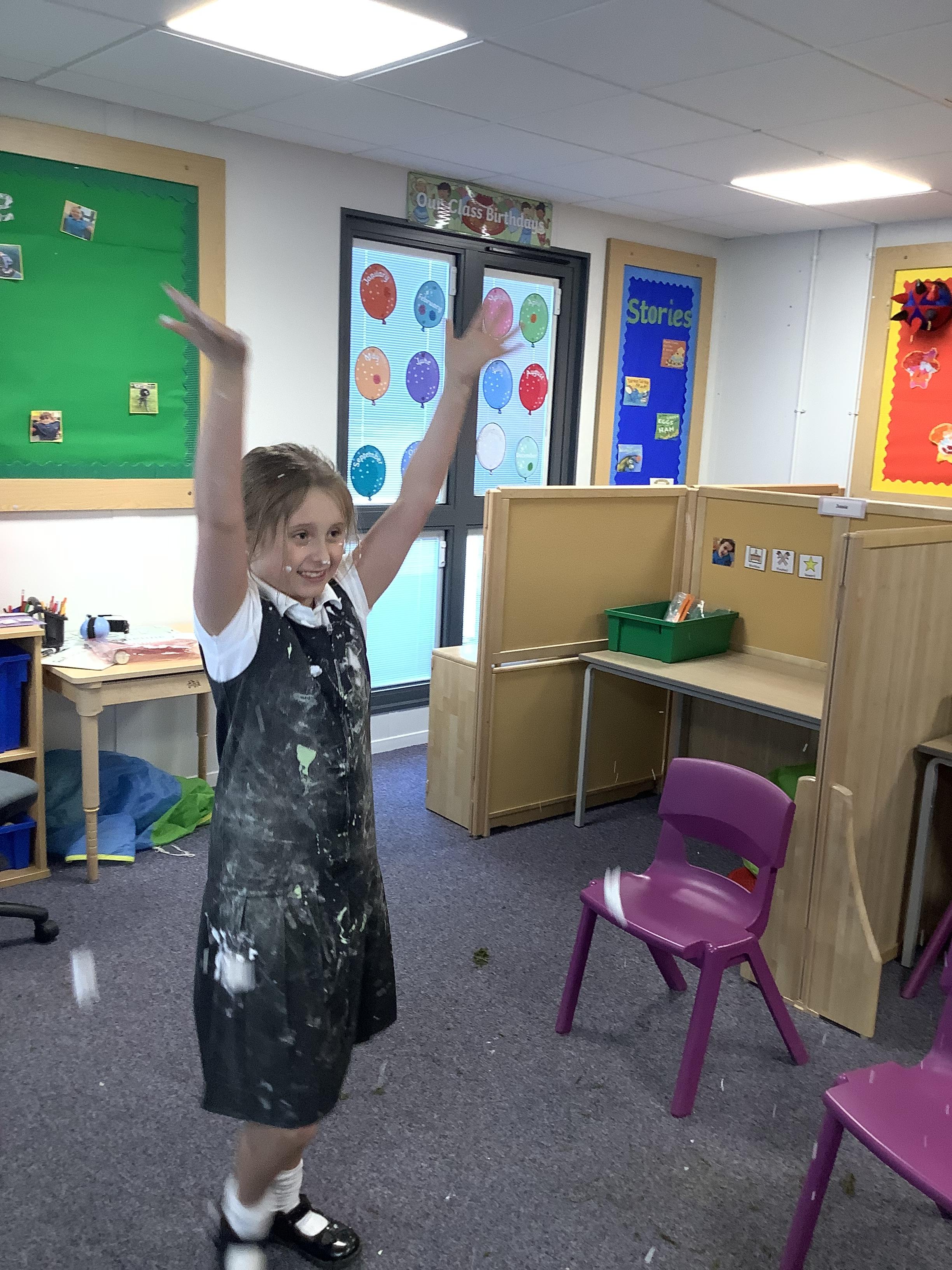 Today in our maths lesson we have been learning about empty and full, as always things got very messy!