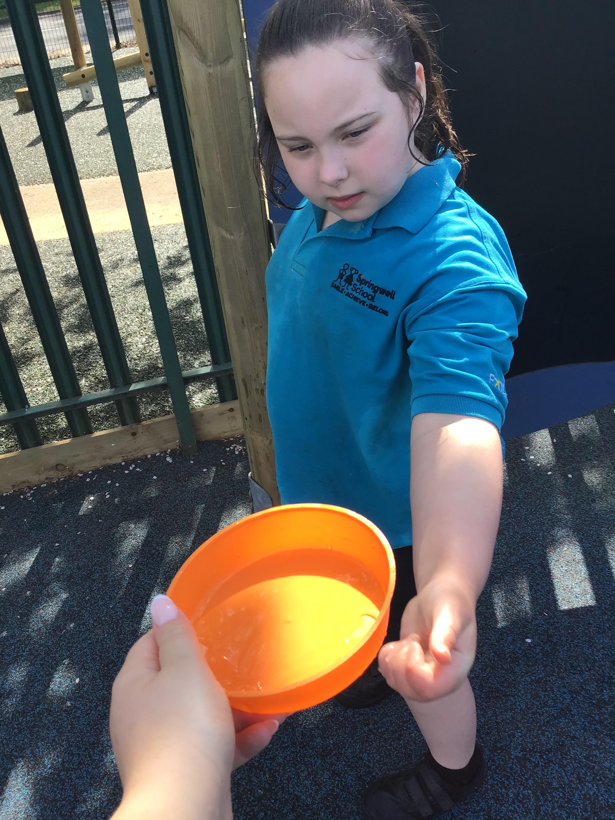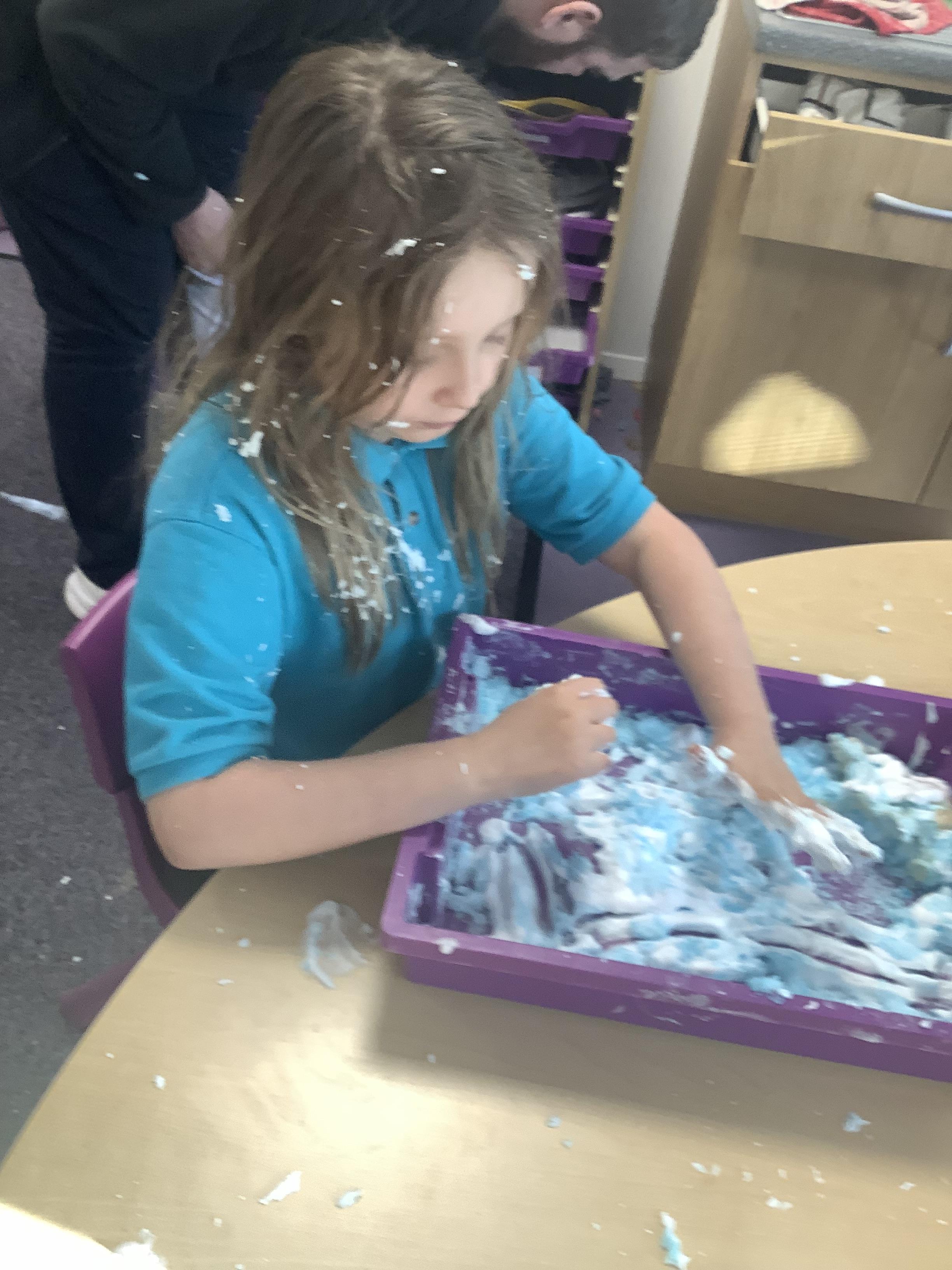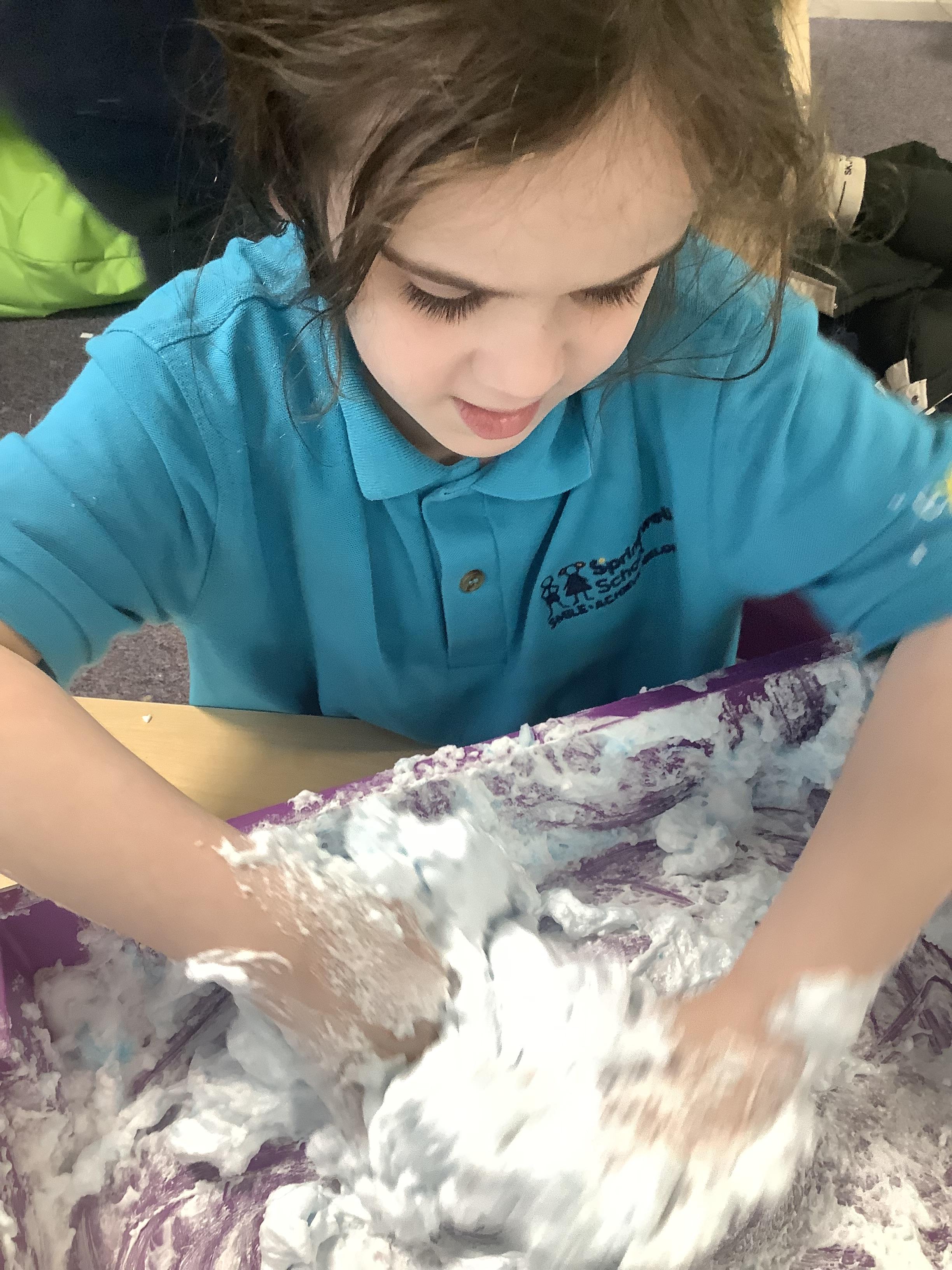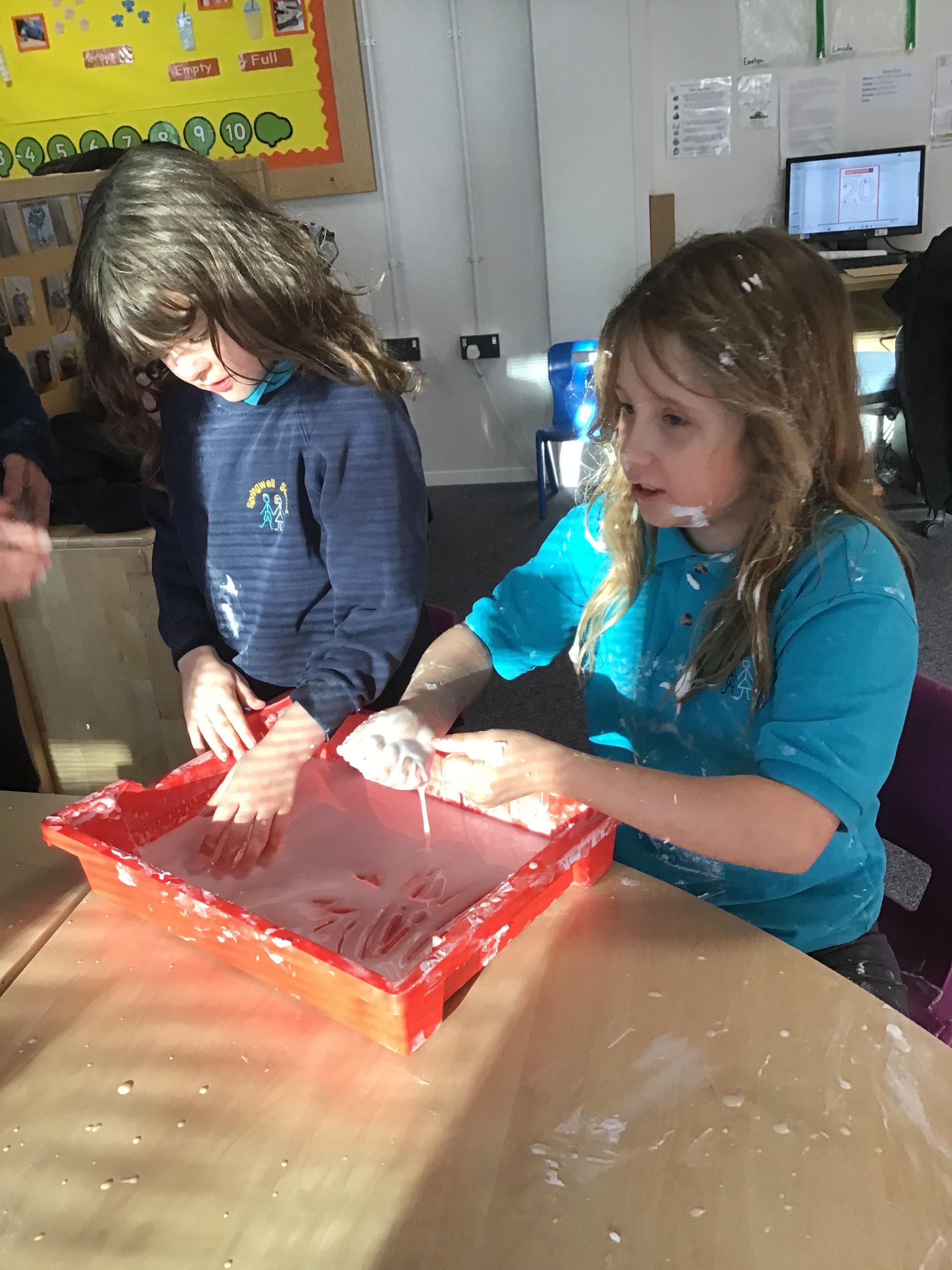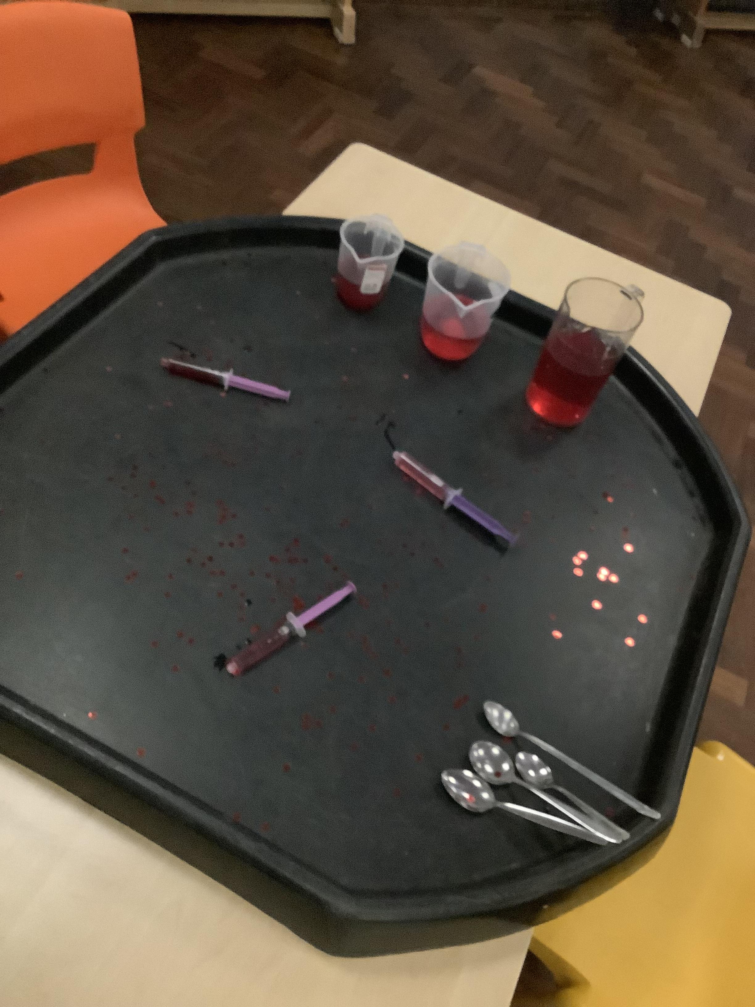 Today in our maths lesson we have been learning about empty and full, as always things got very messy!