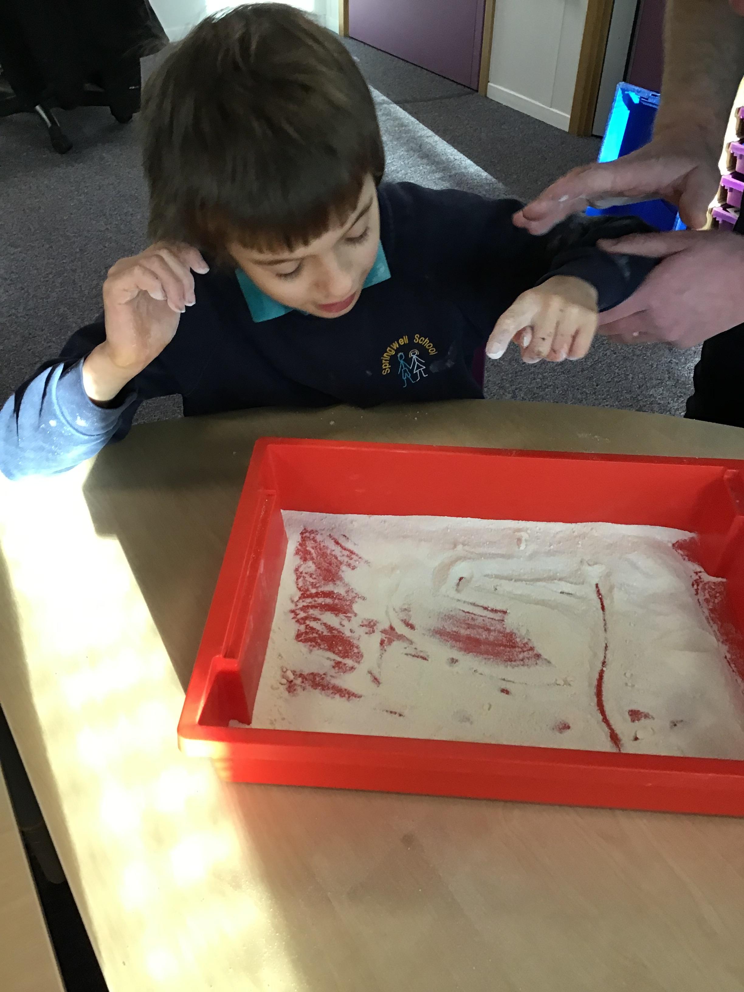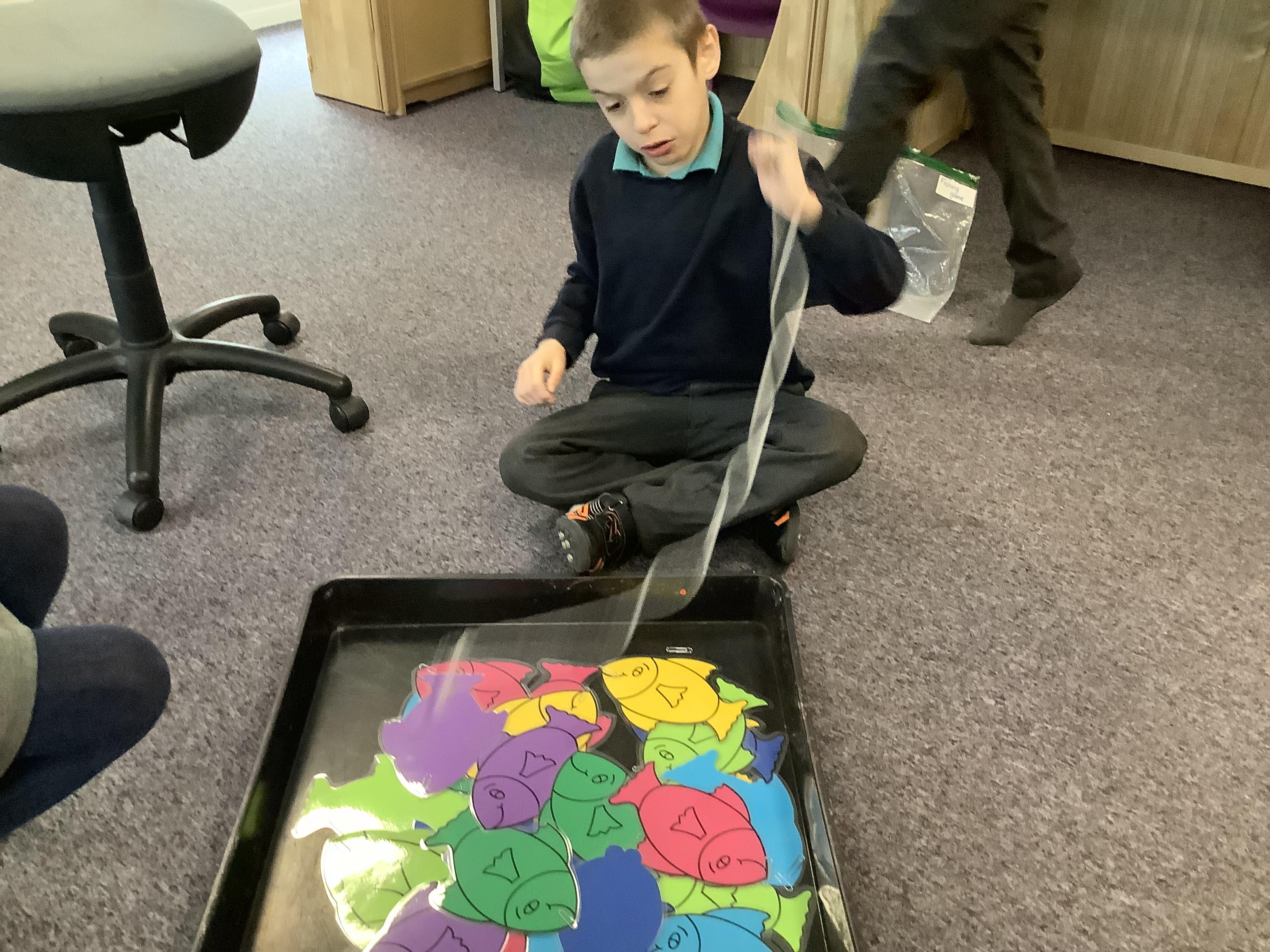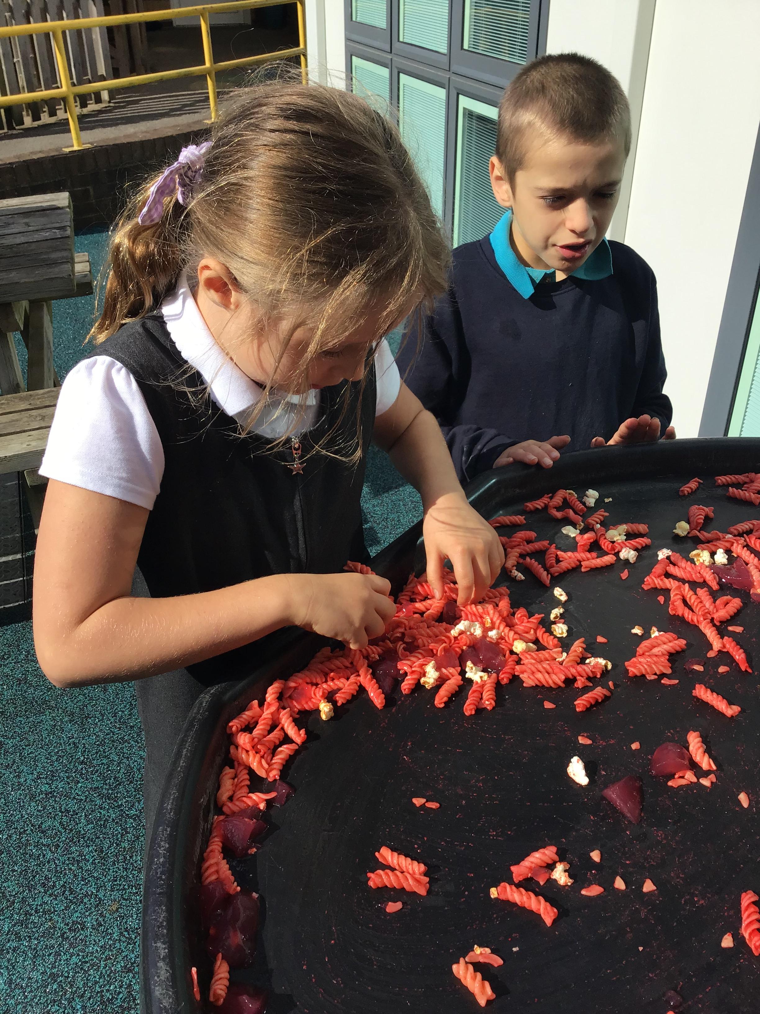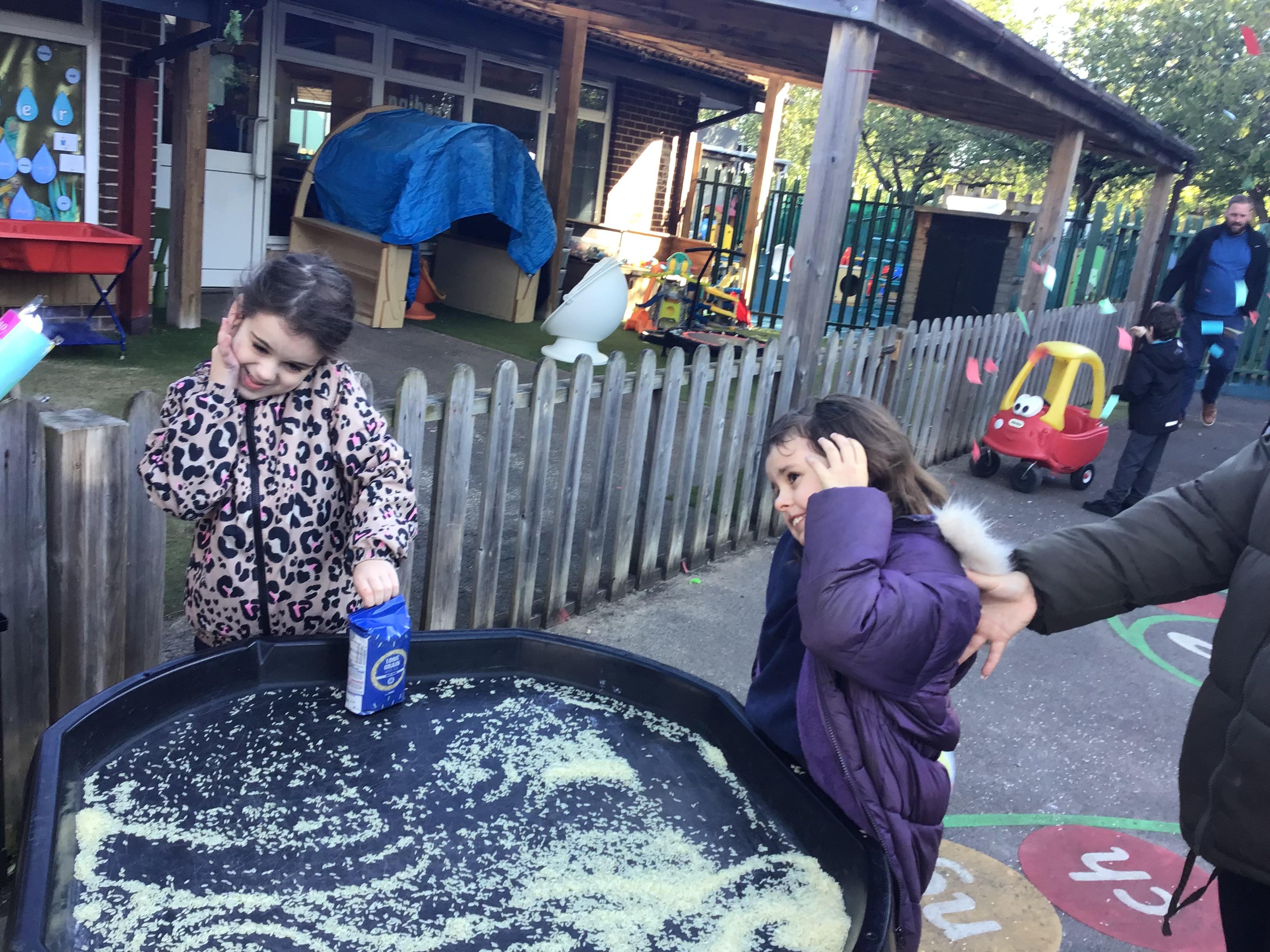 Today in our maths lesson we have been learning about empty and full, as always things got very messy!