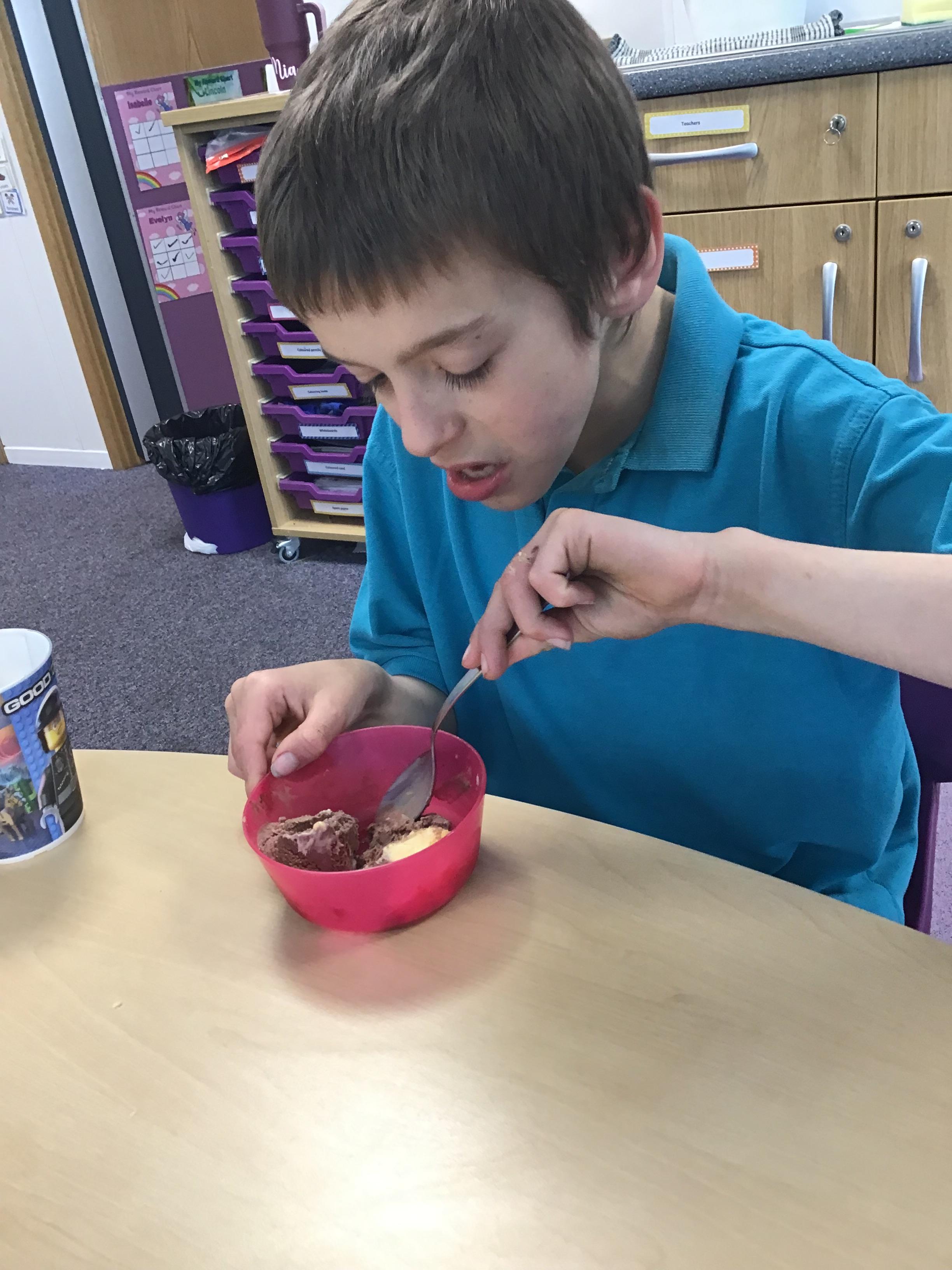 Today some of Caiman class children tried chocolate and strawberry ice cream, they enjoyed it very much.
