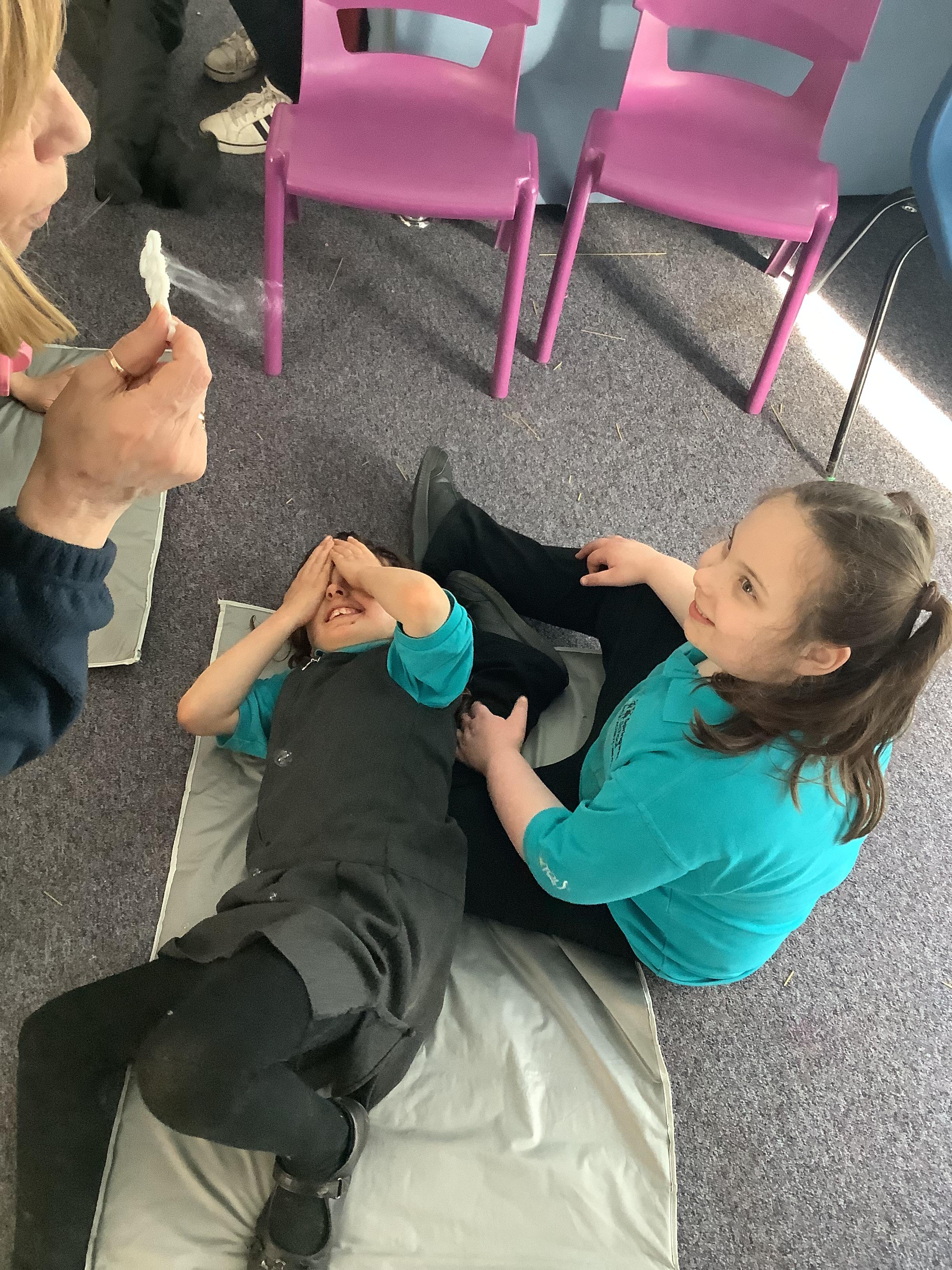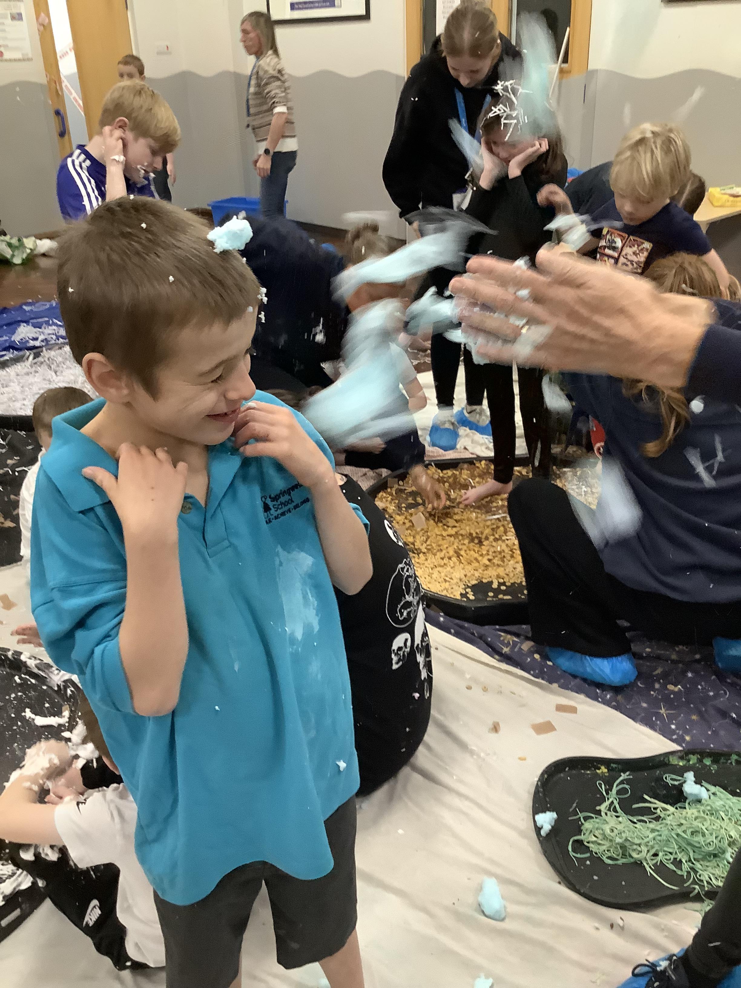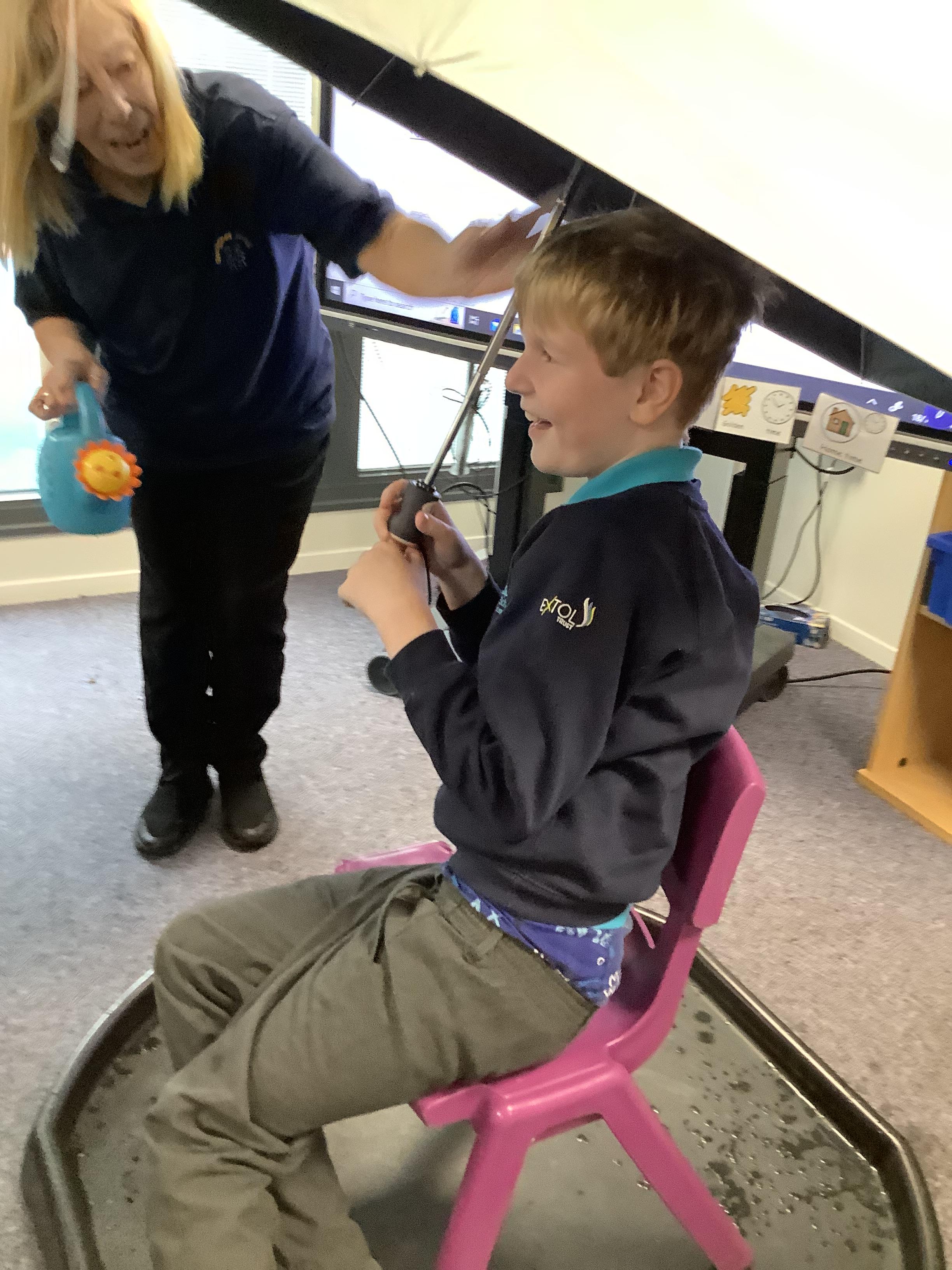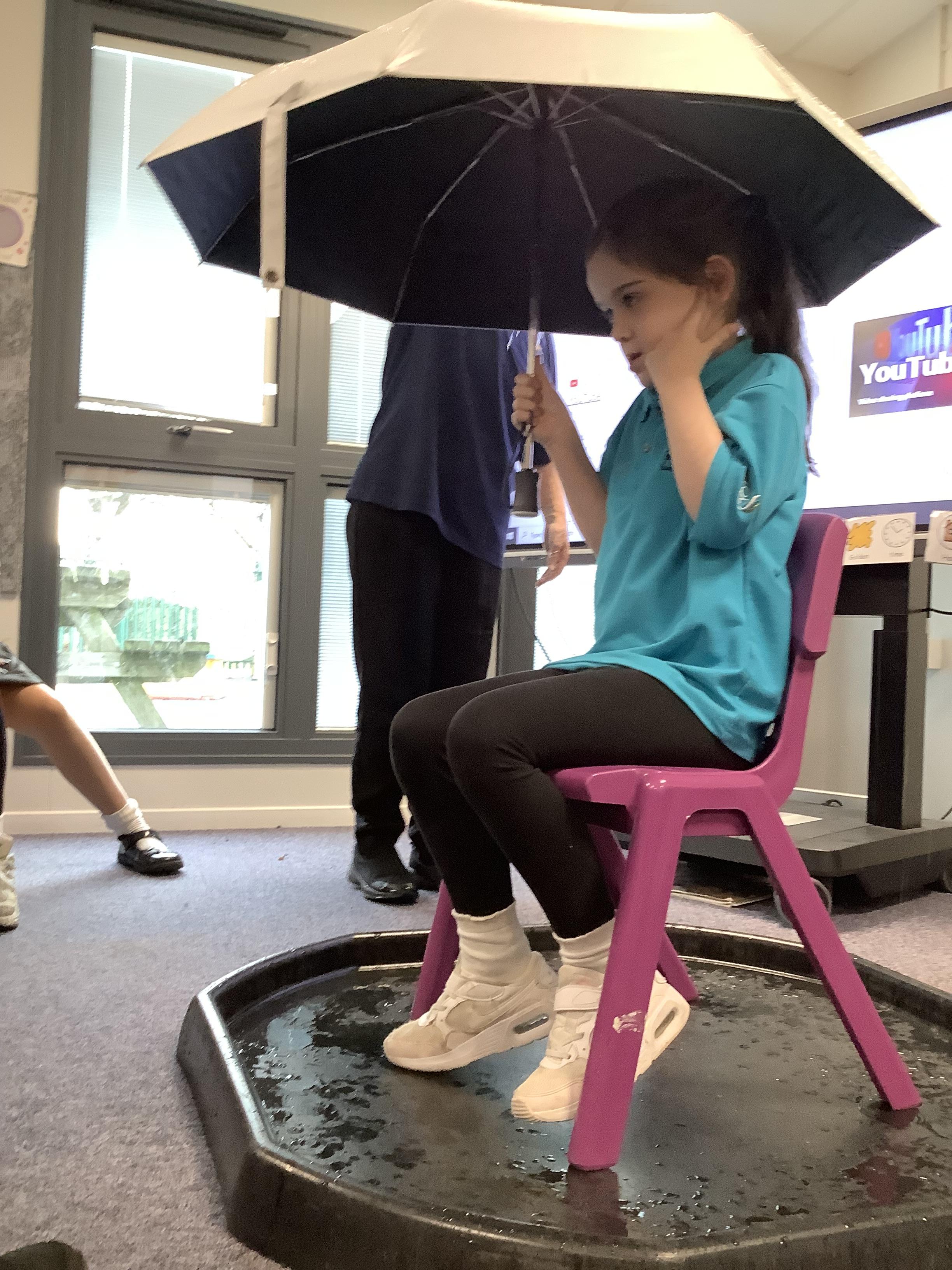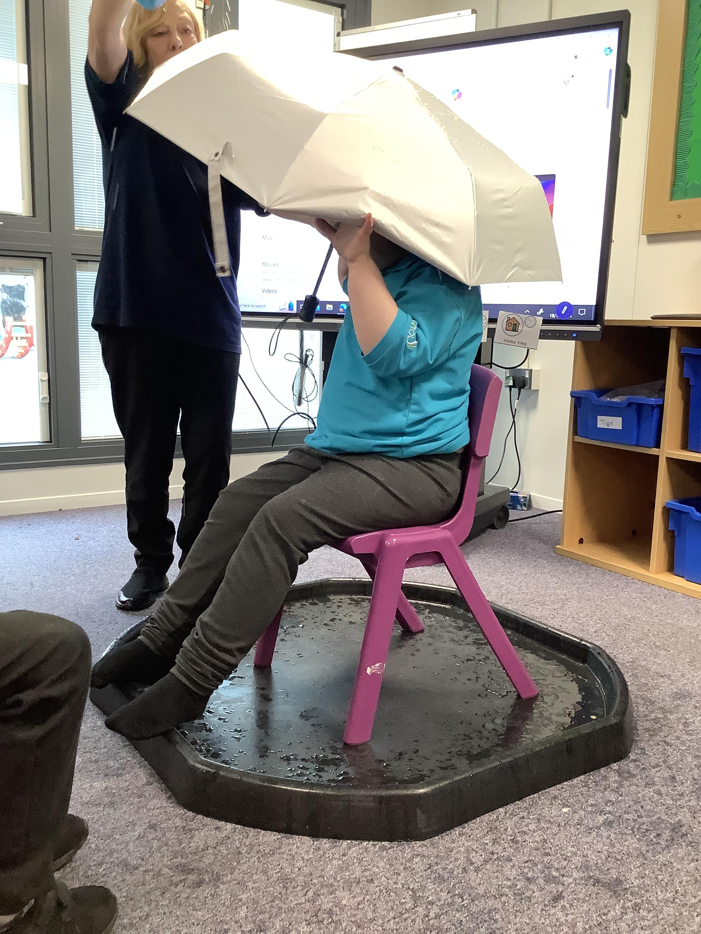 What fun we had this morning in our sensory assembly to link to our PSHE lesson ‘extreme weathers’.