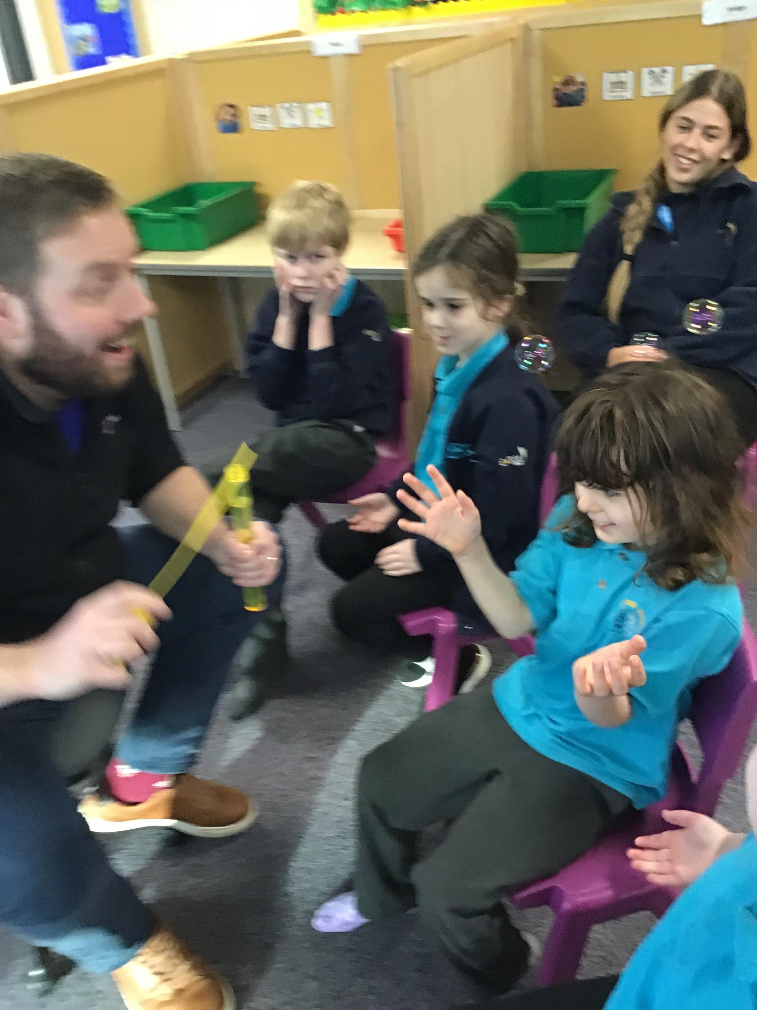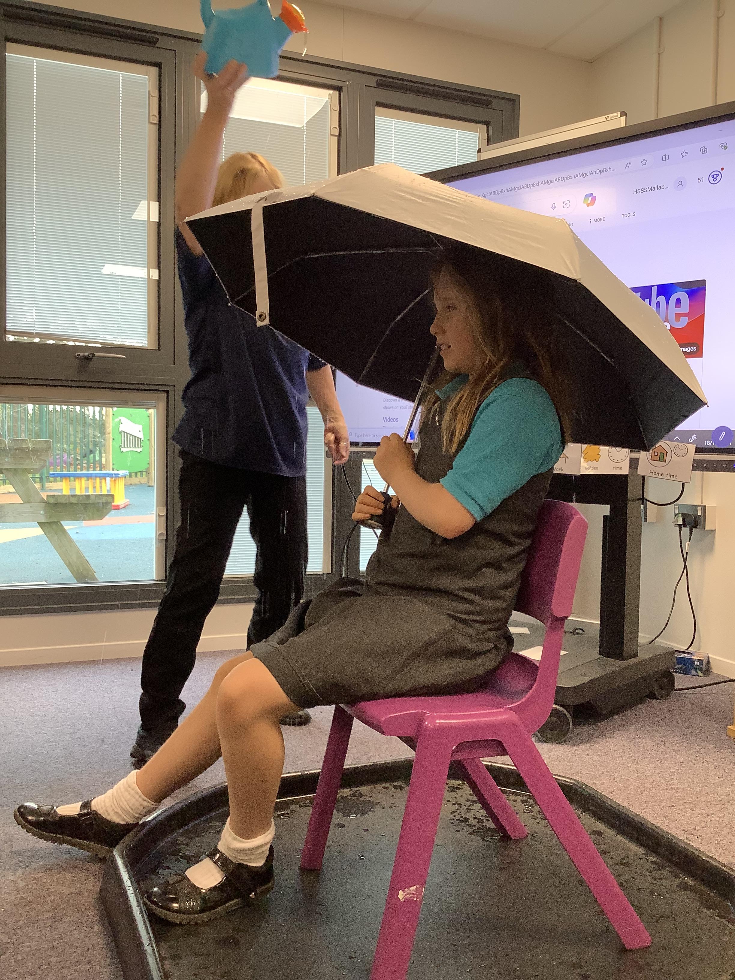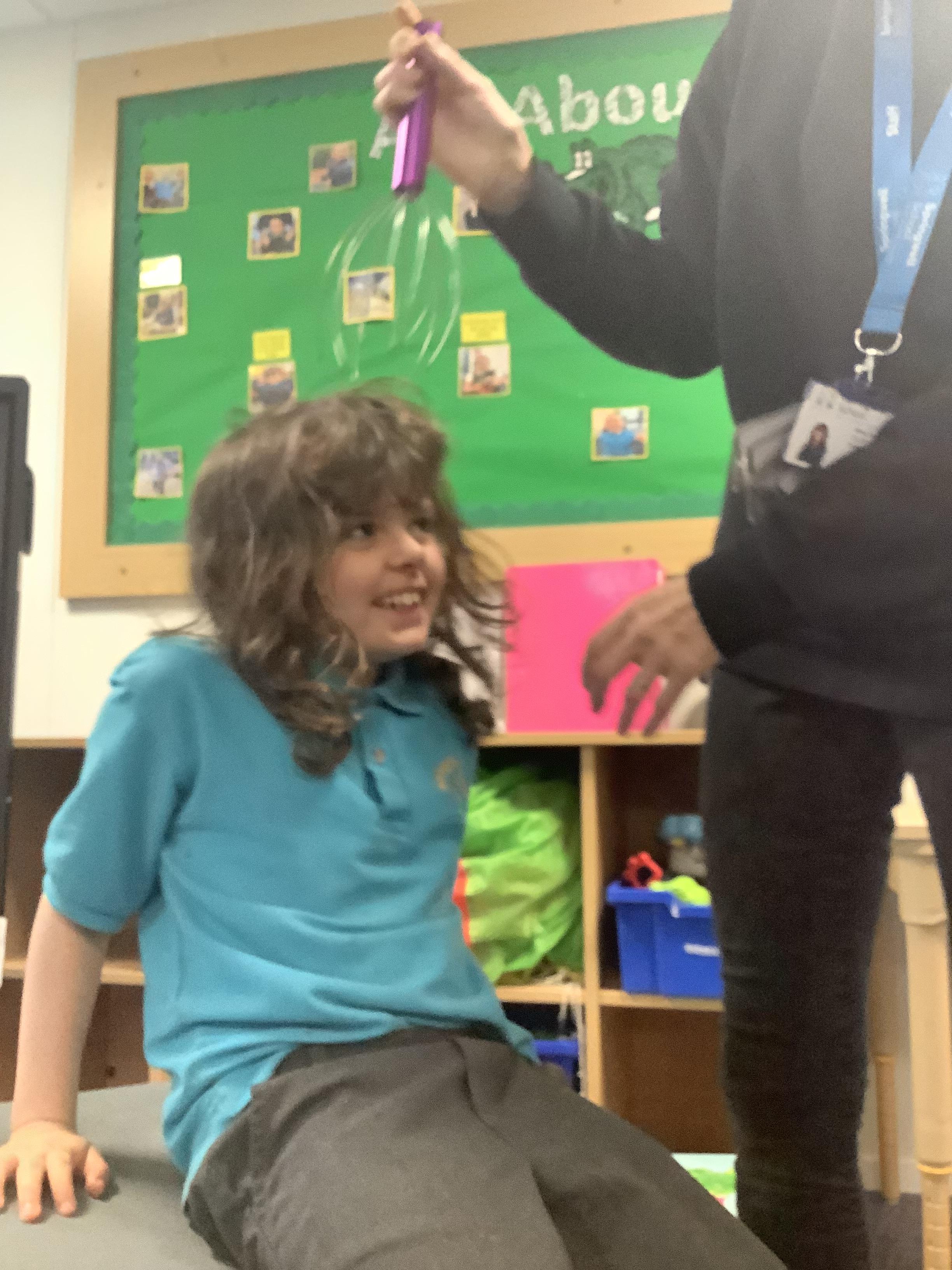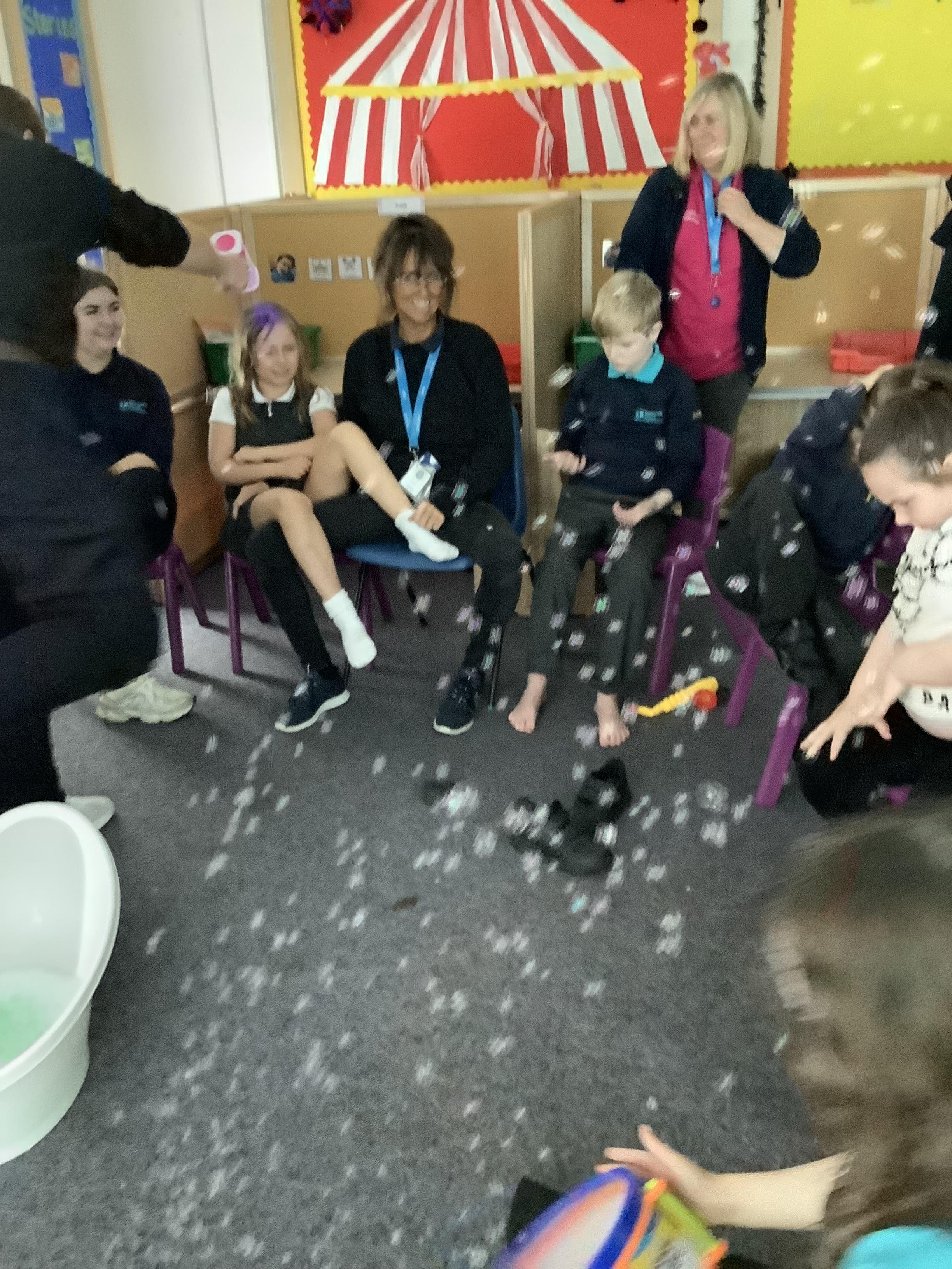What fun we had this morning in our sensory assembly to link to our PSHE lesson ‘extreme weathers’.