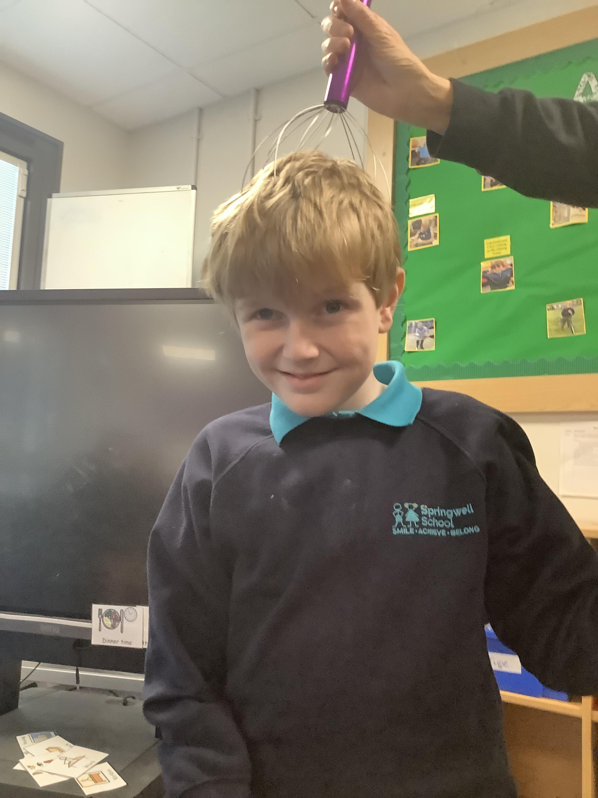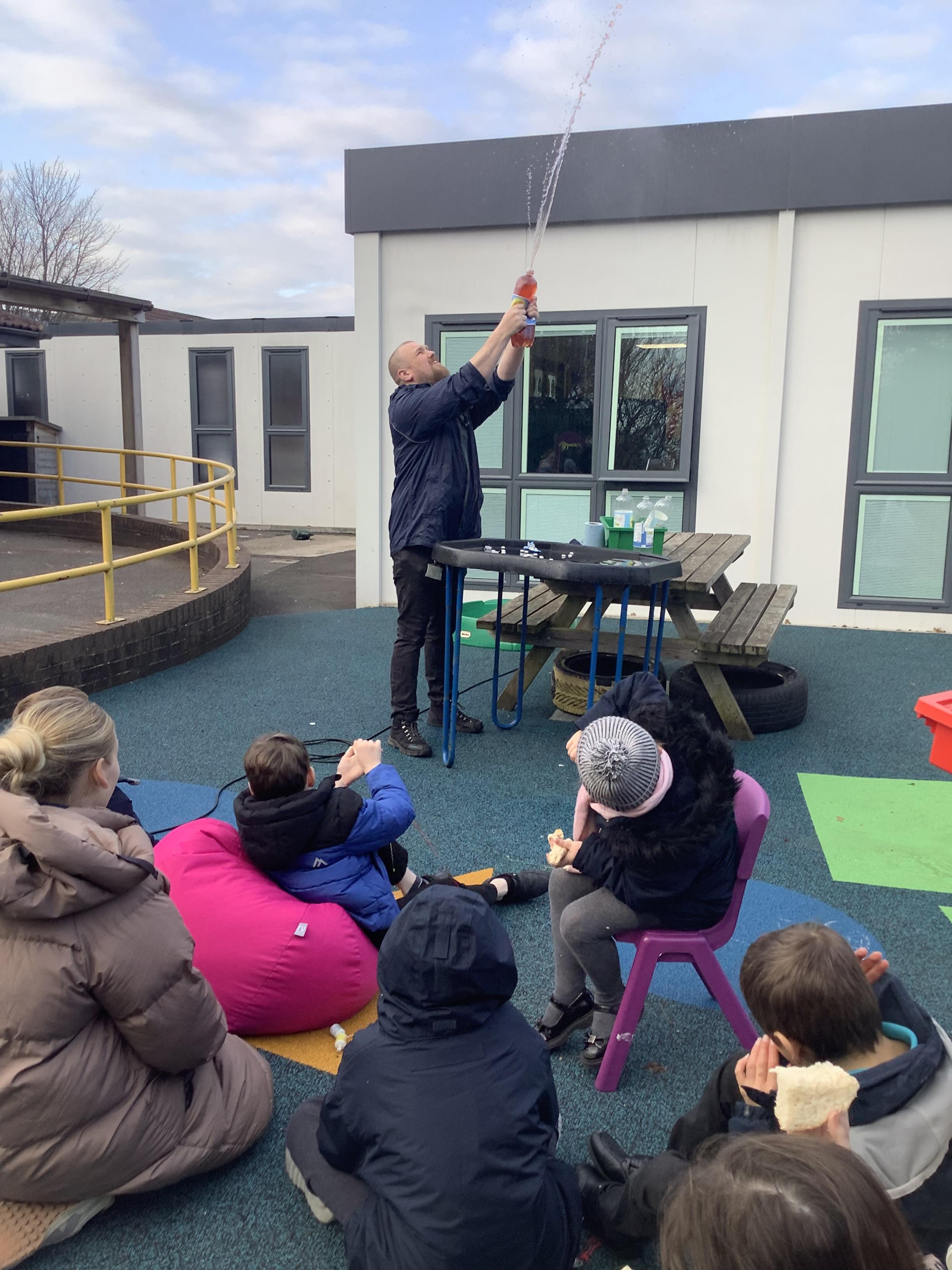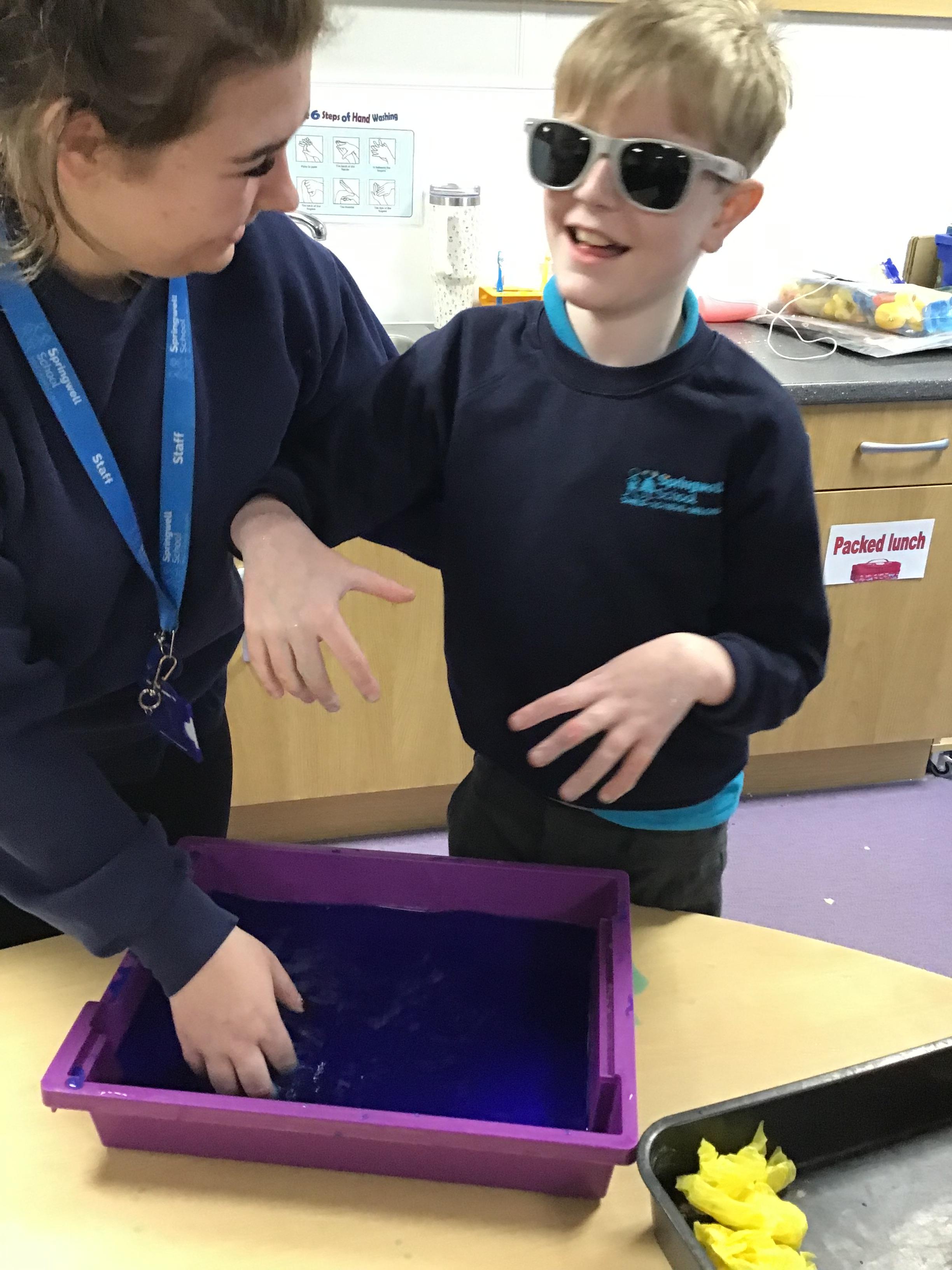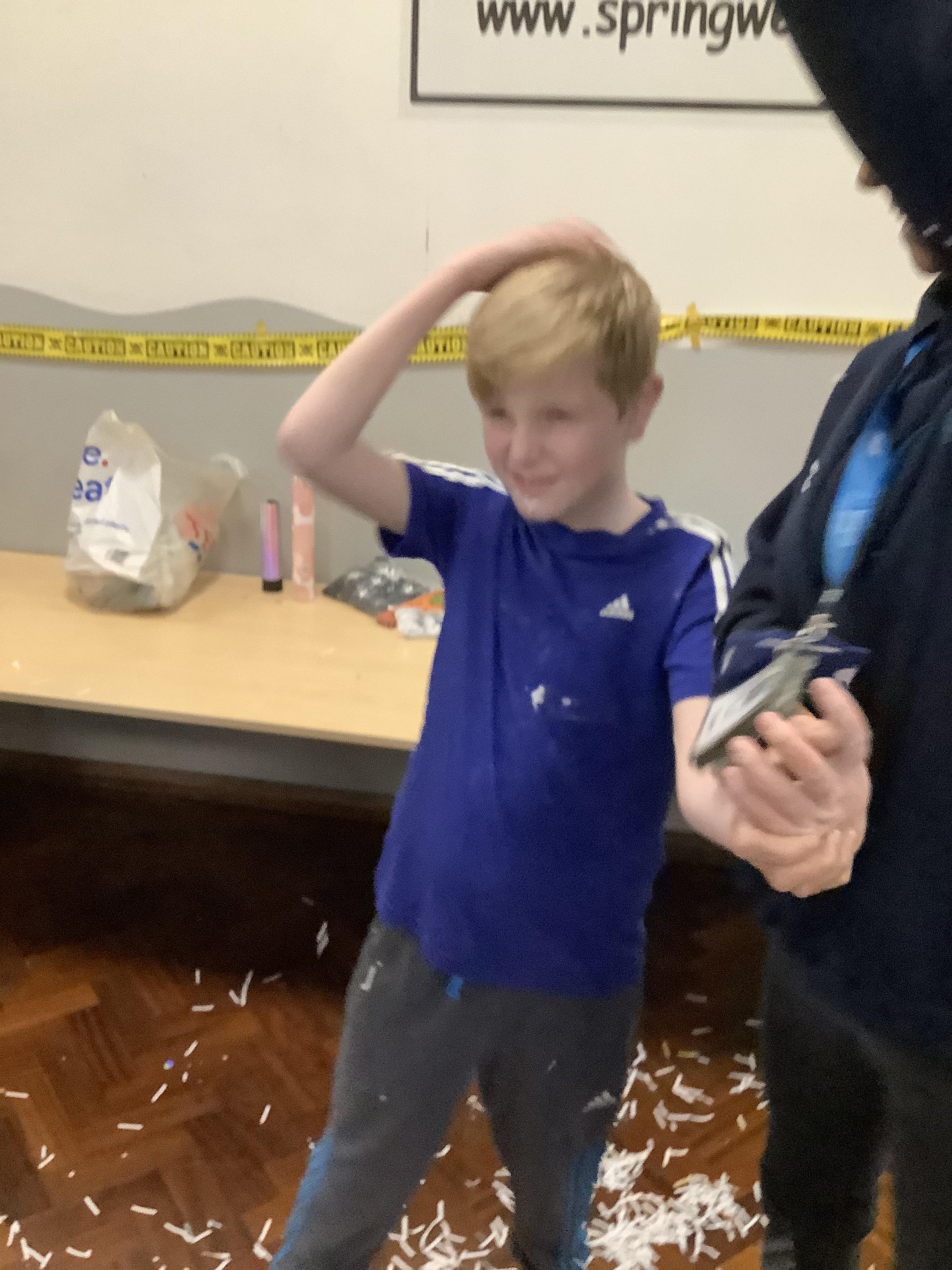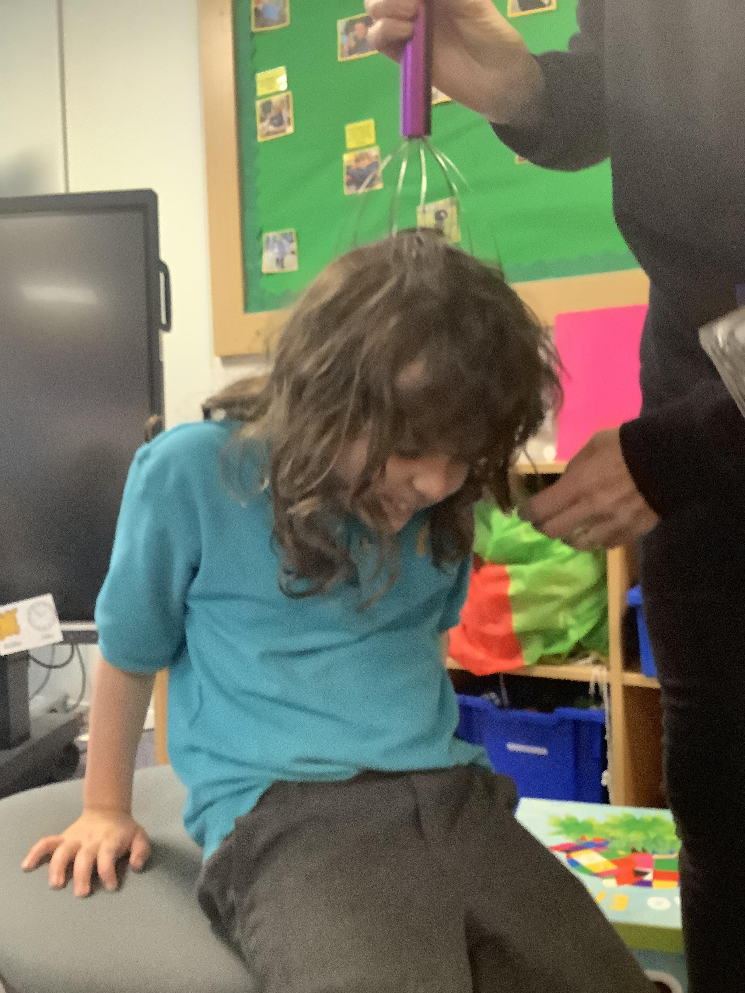 What fun we had this morning in our sensory assembly to link to our PSHE lesson ‘extreme weathers’.