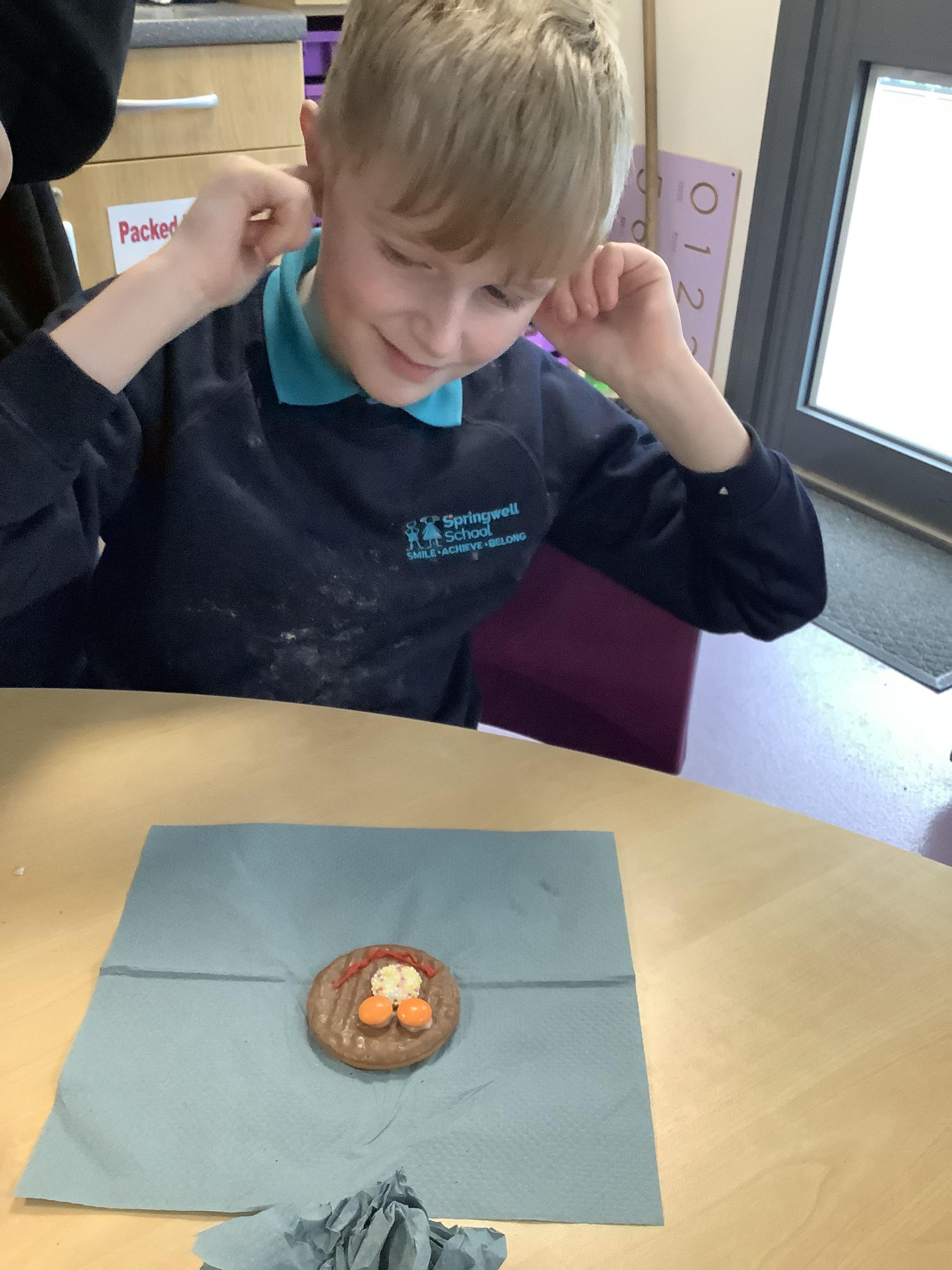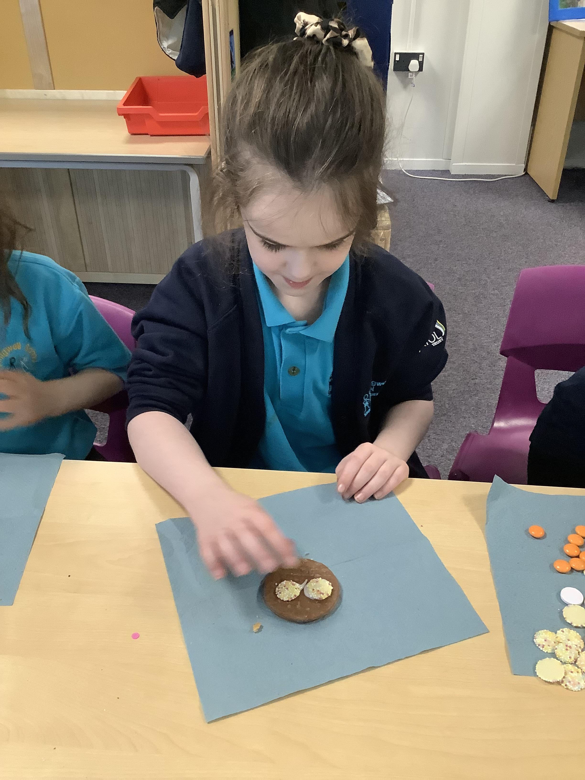 In our DT lesson, we looked at the features on our face and matched them onto the biscuits.