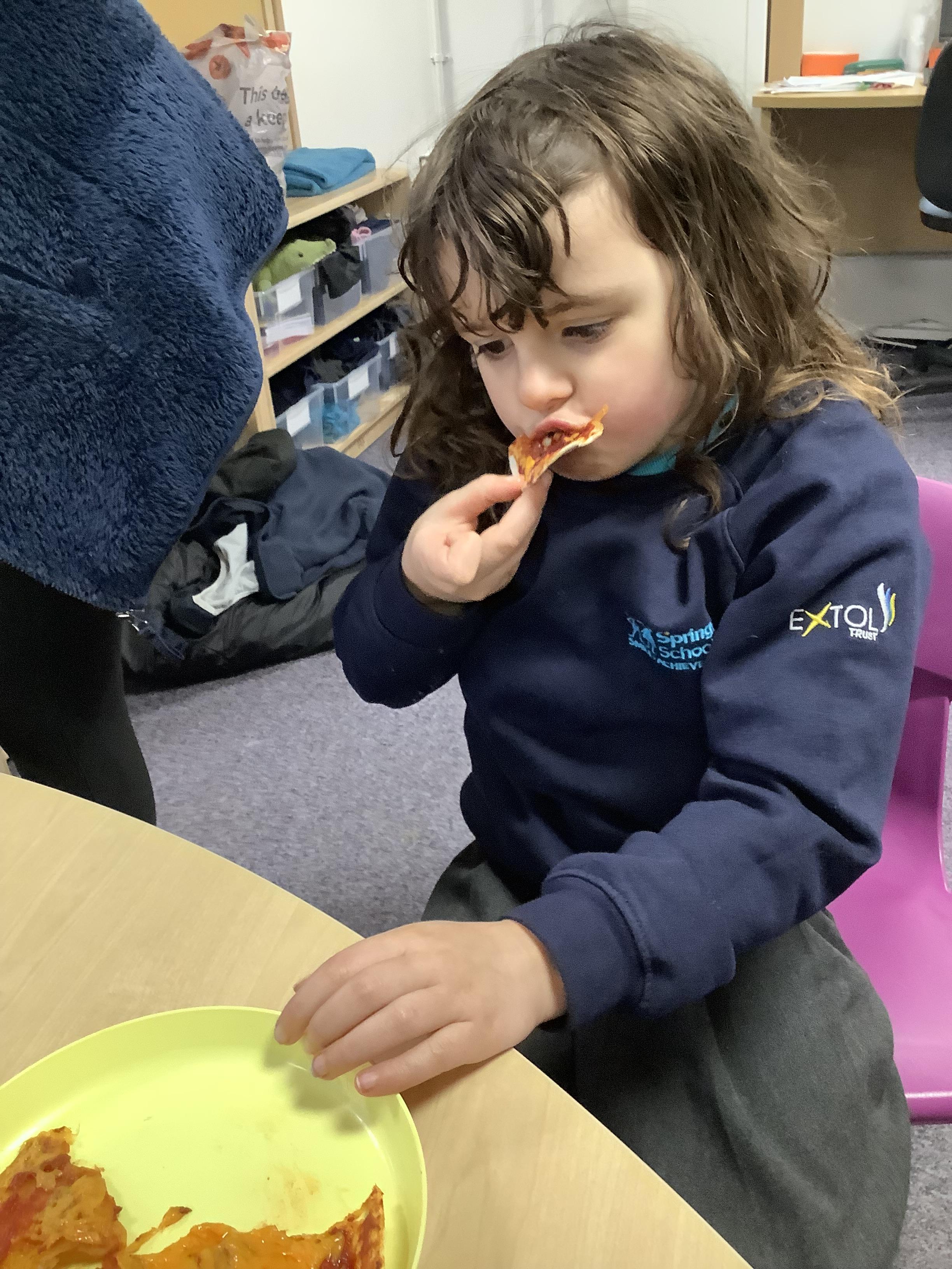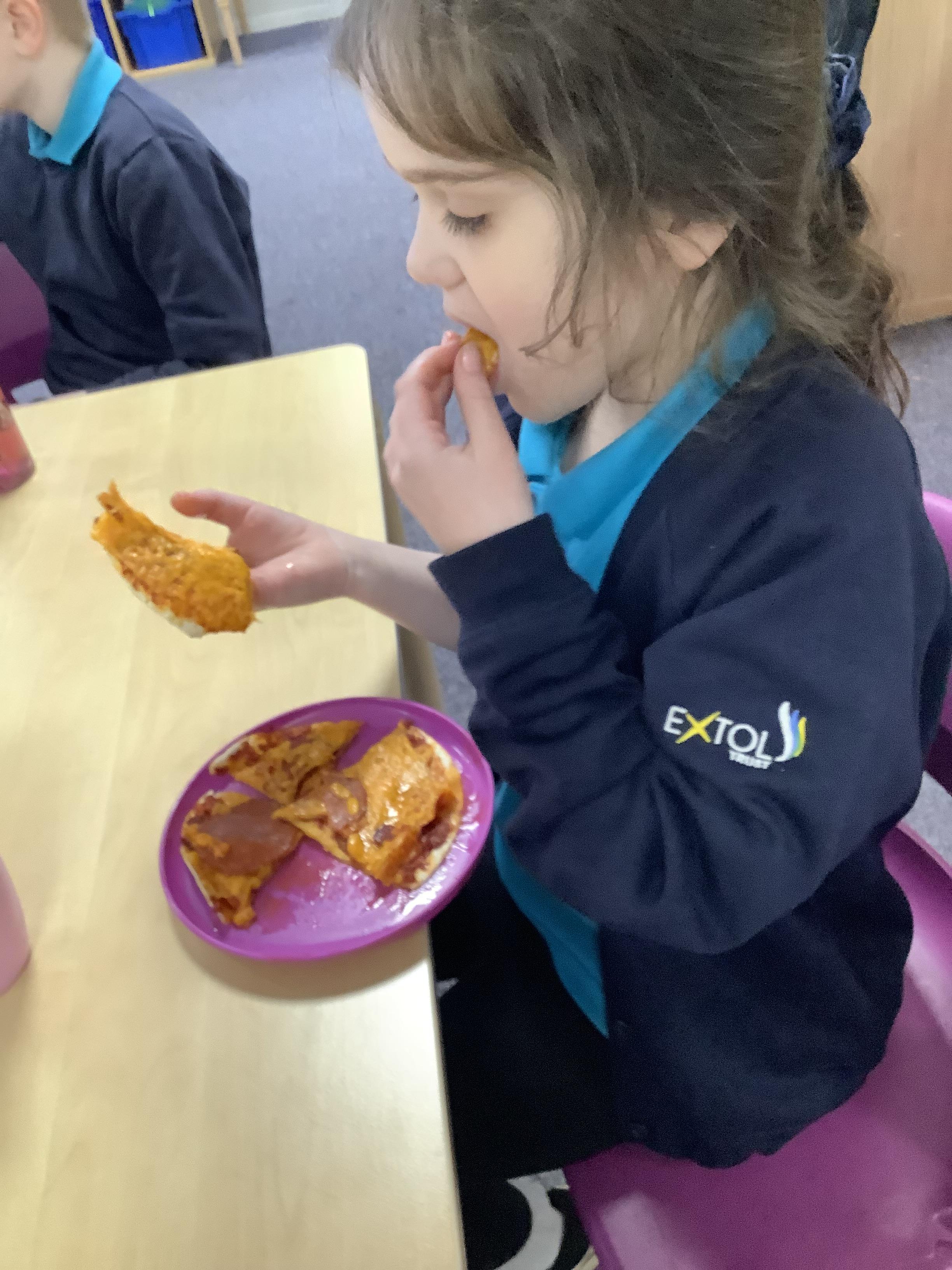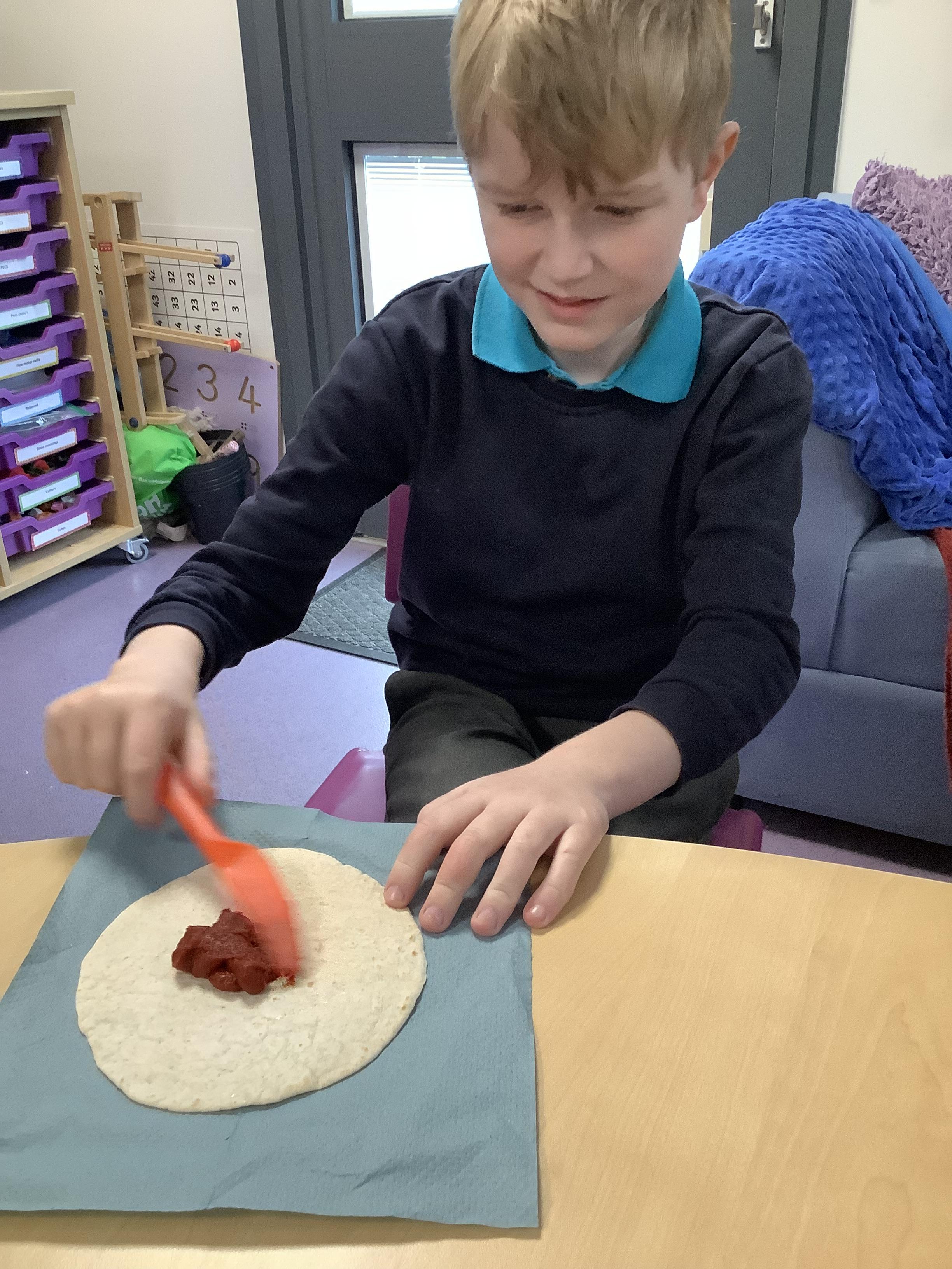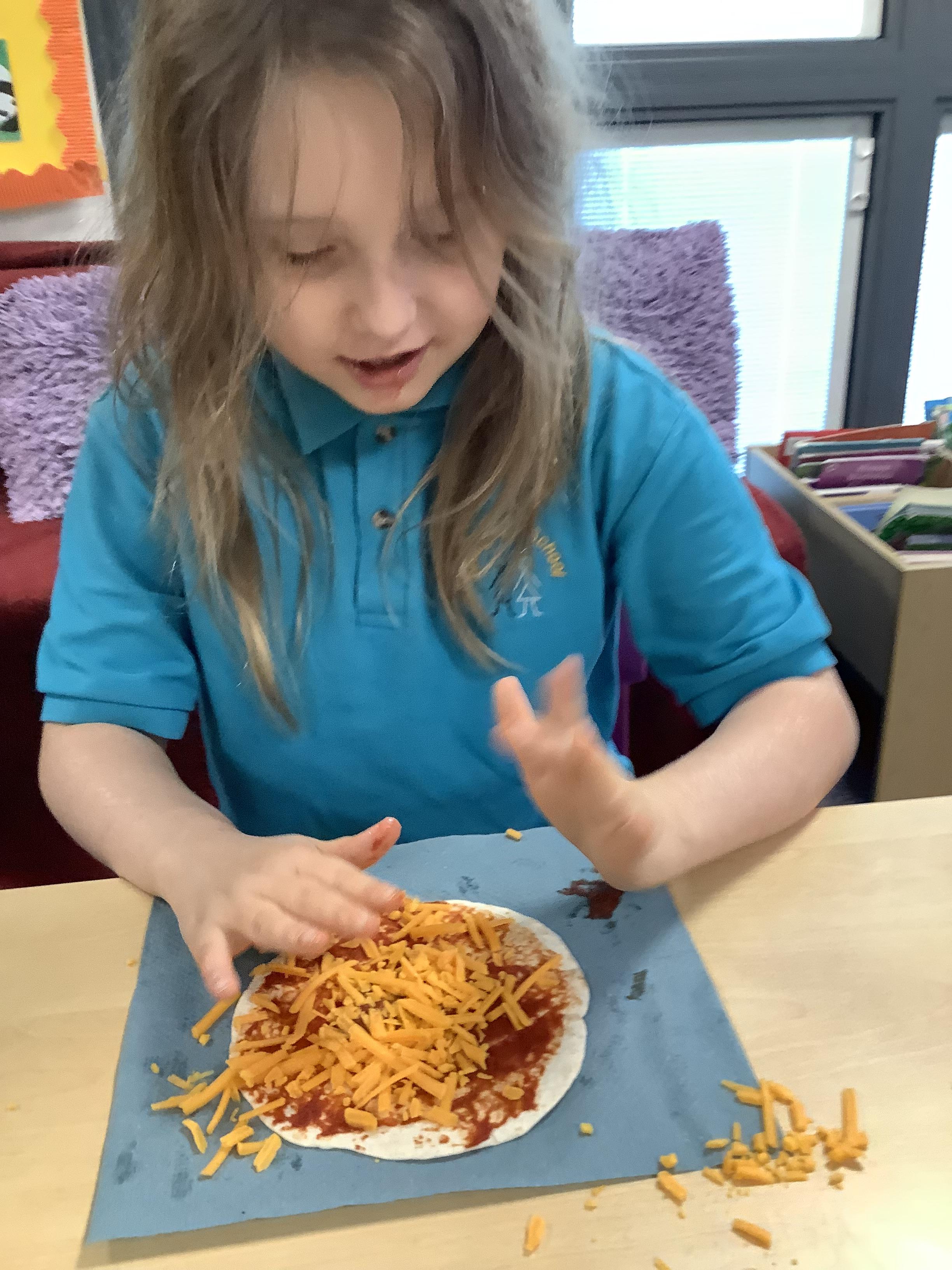 Today we also made pizzas to represent the hot weather! All the children were amazing at trying the new foods, the pizzas went down a treat!