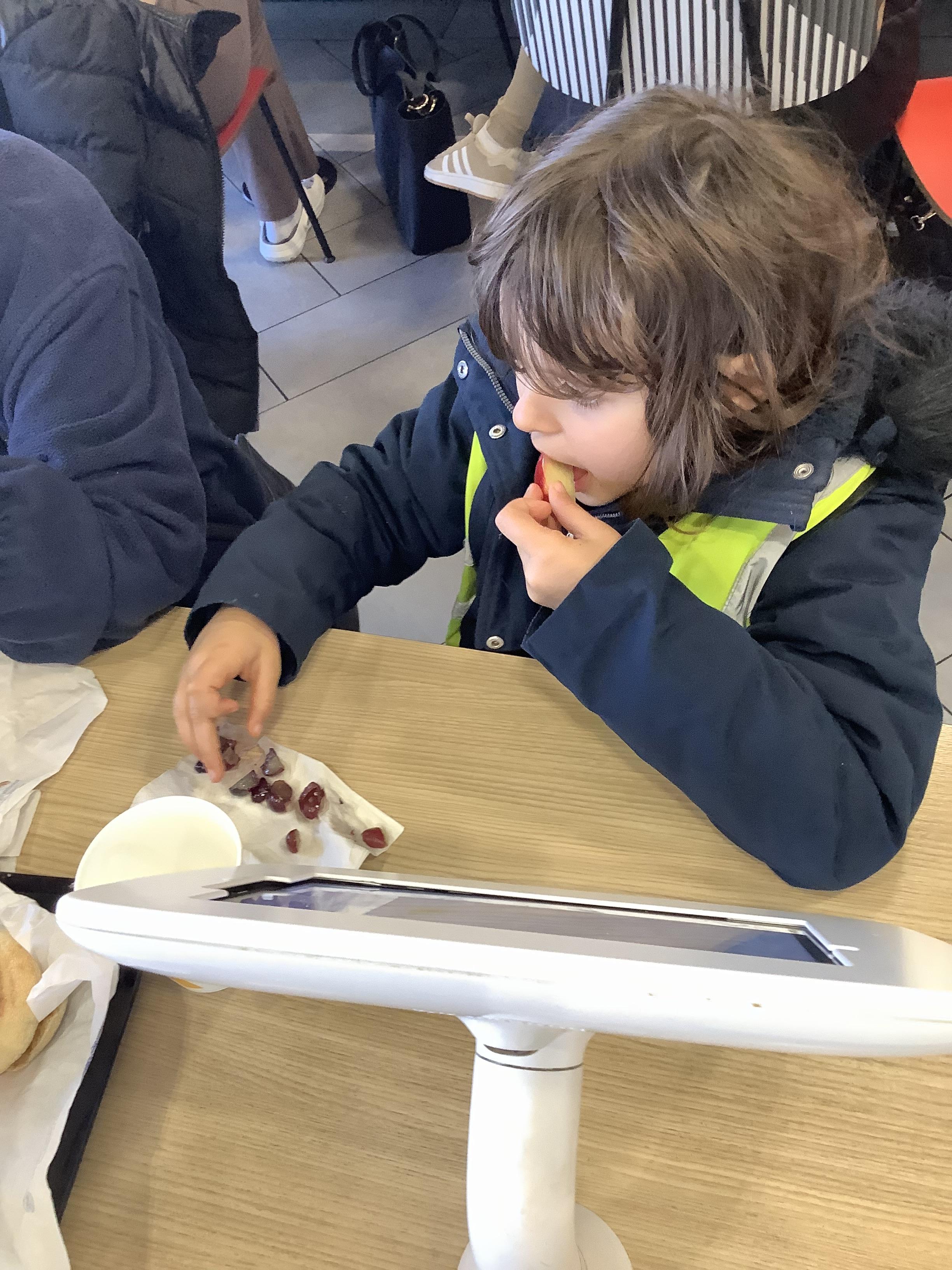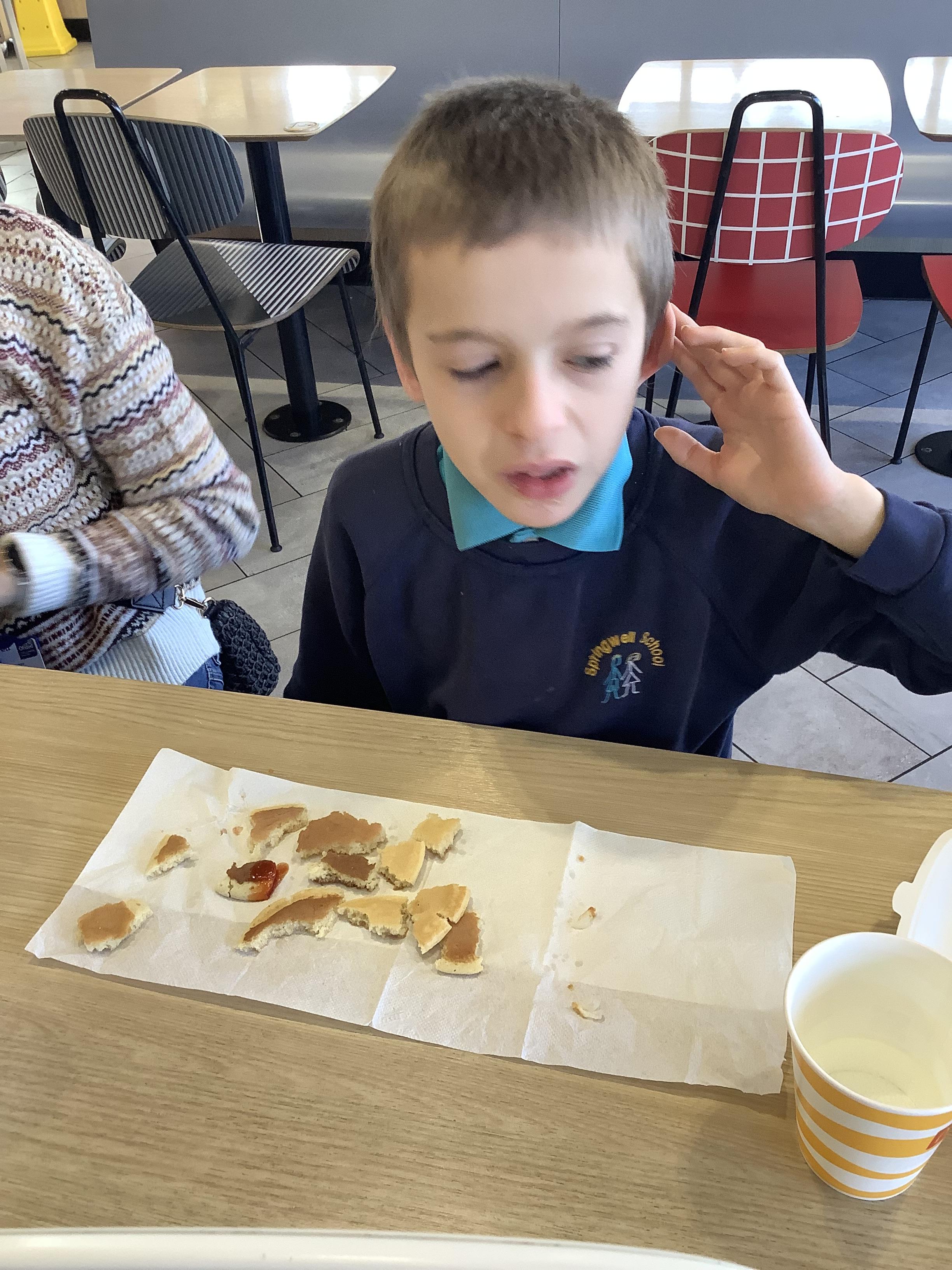 We have had a lovely trip on the bus this morning. We took some of our harvest food to the food banks and then had a end of term treat at McDonald’s!