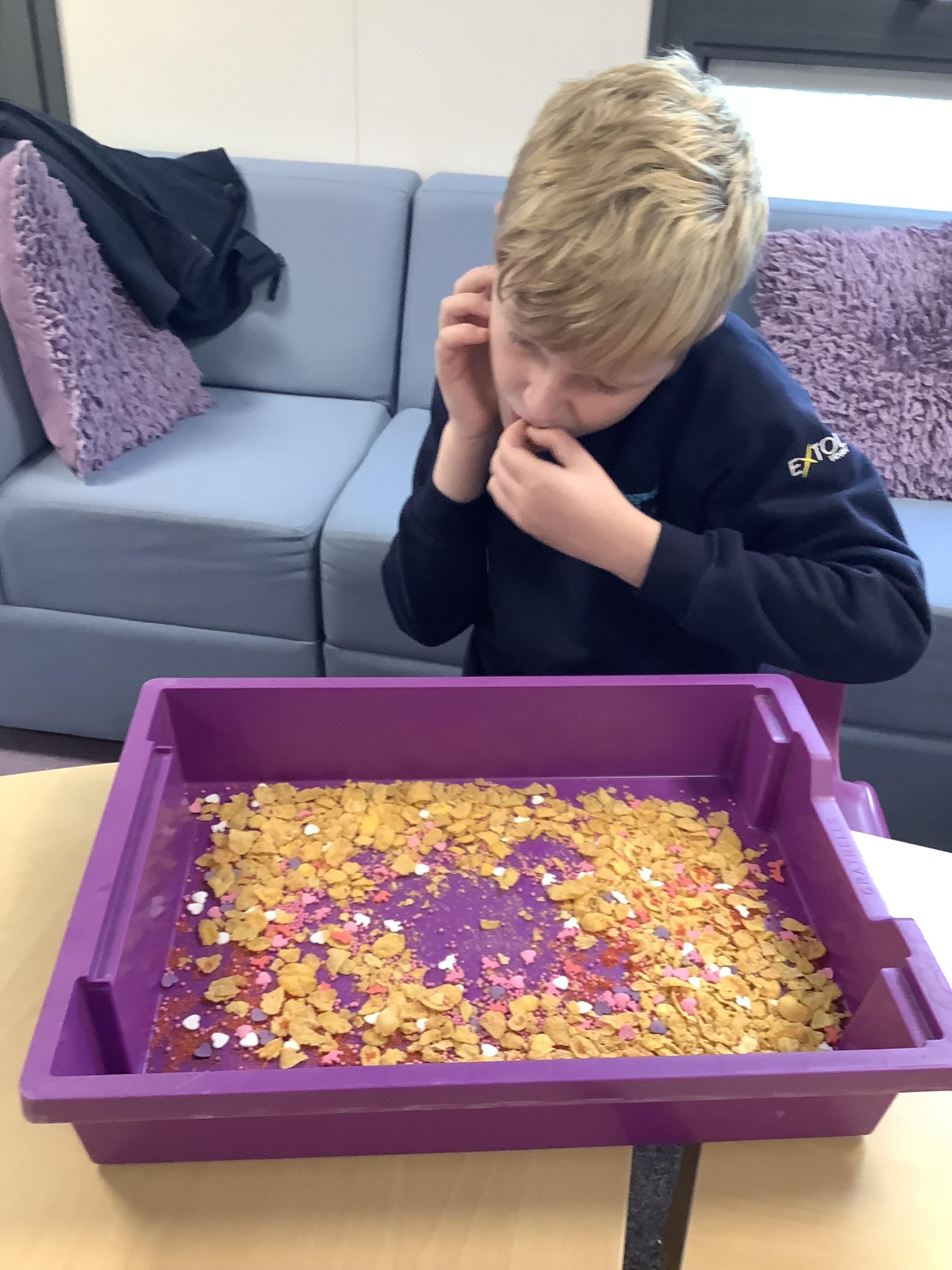 We have loved exploring the sensory trays with our different senses. It got very messy, we had so much fun!