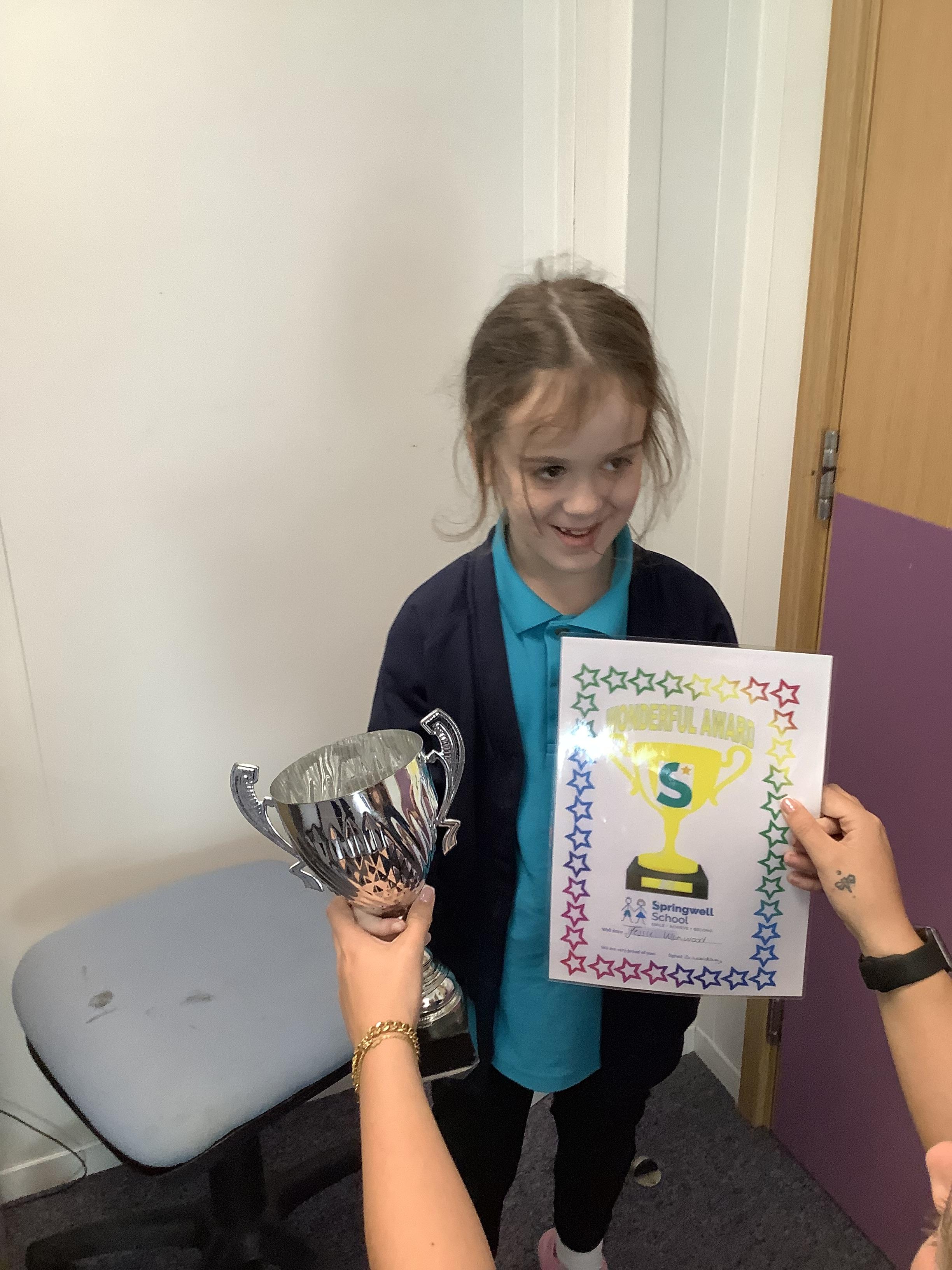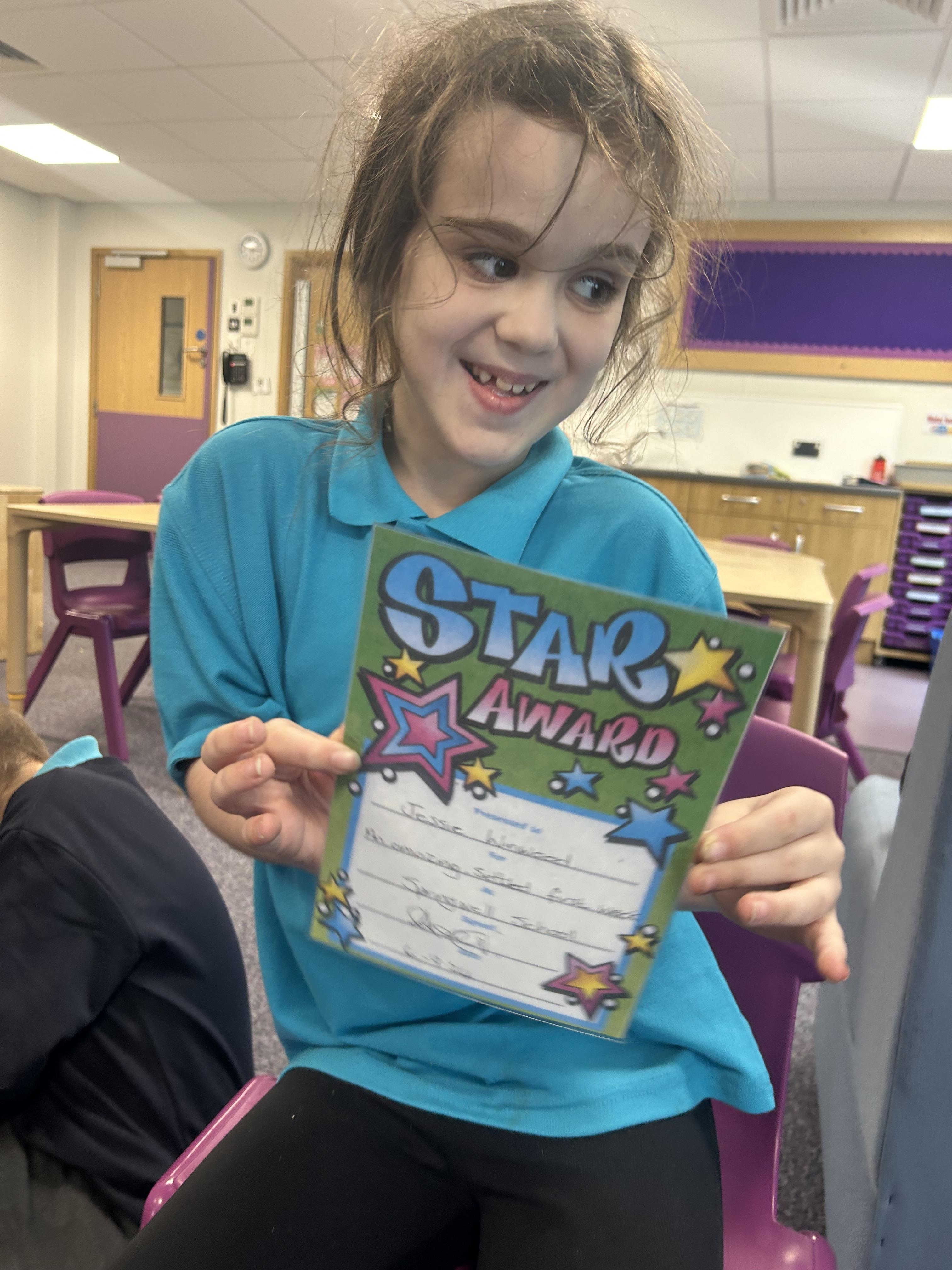 We are so pleased to award Jessie with the wonderful award for her amazing work and settling so well in her new class. We are so proud of her, well done!