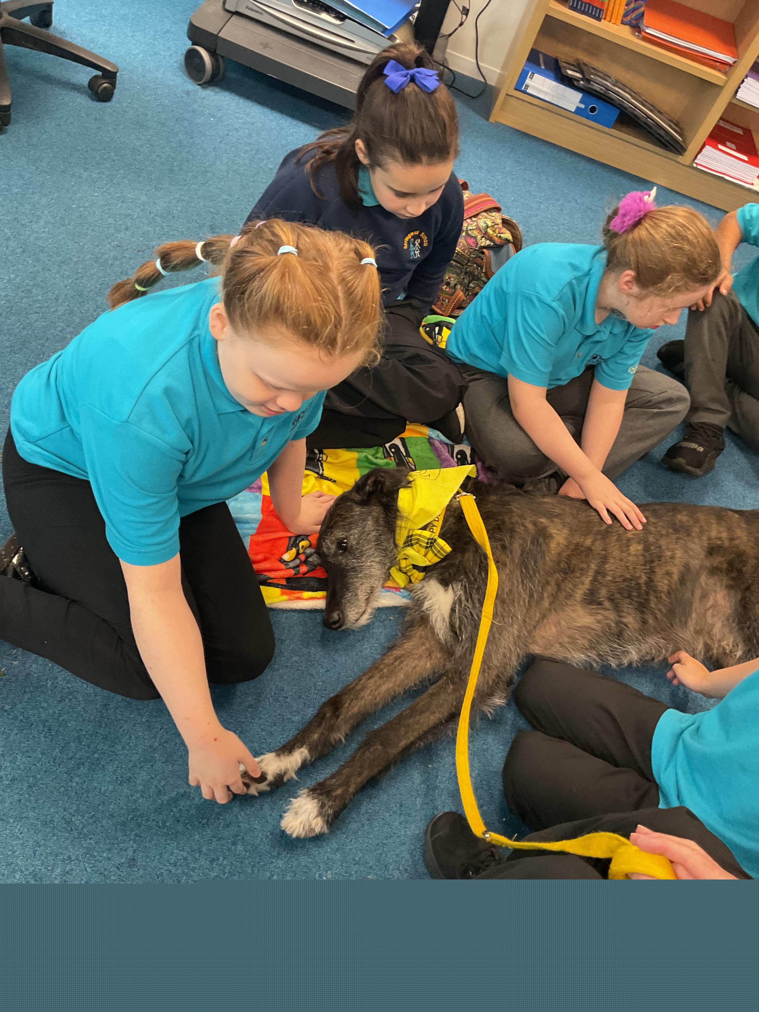 Today Ronnie the PAT Dog came to visit us, everybody took turns to stroke him and then Val gave us Ronnie's brush to help brush his fur.