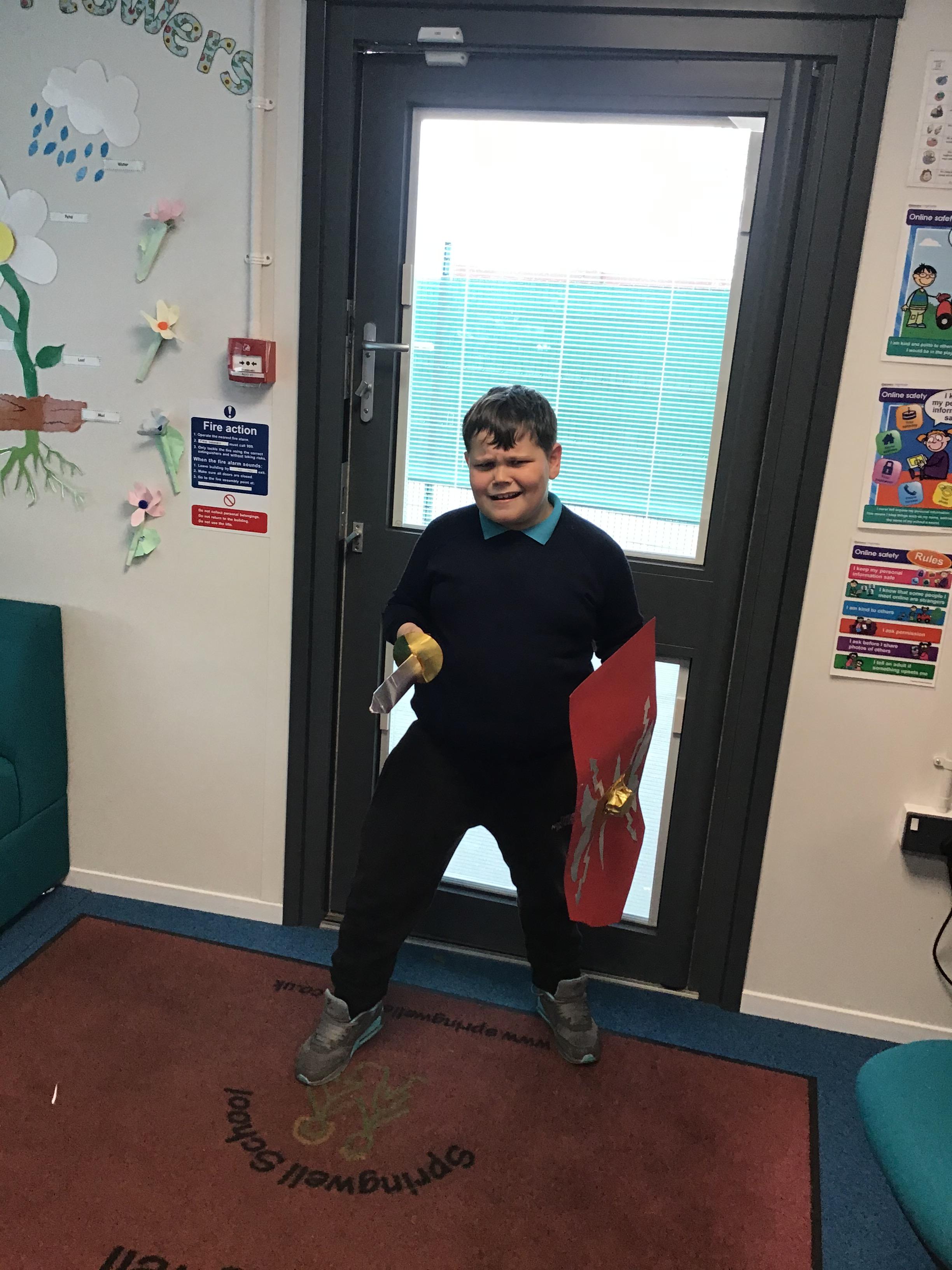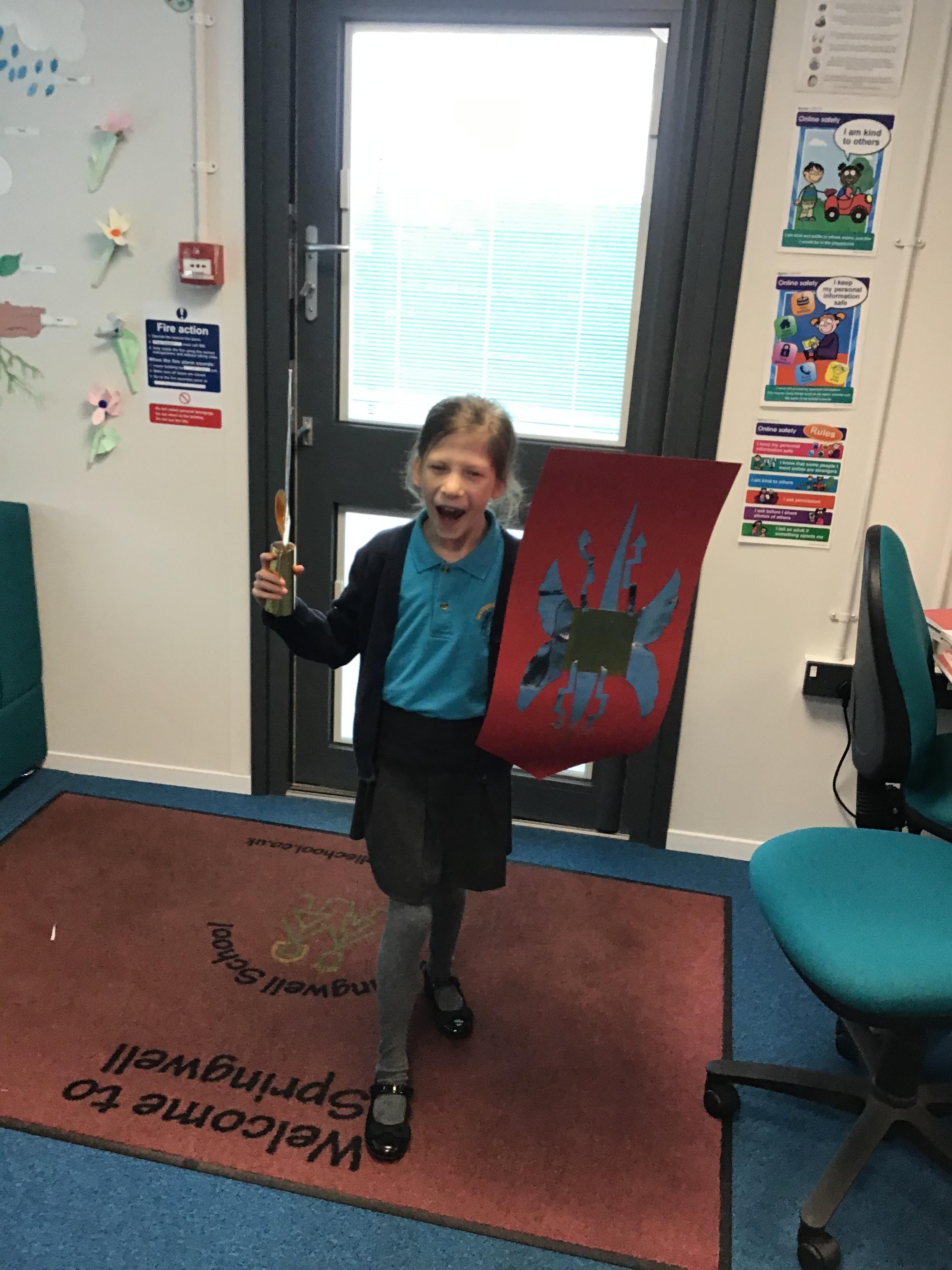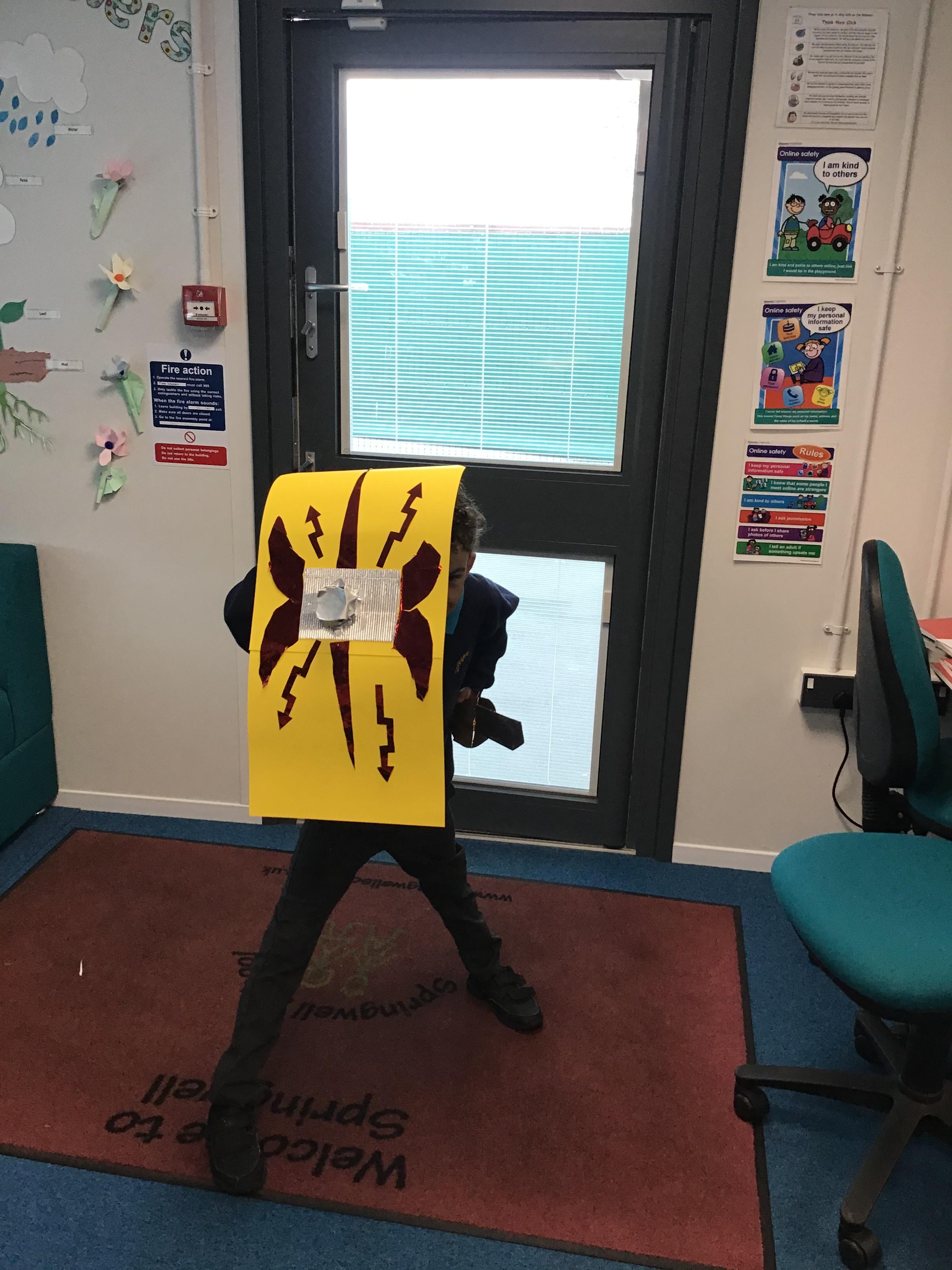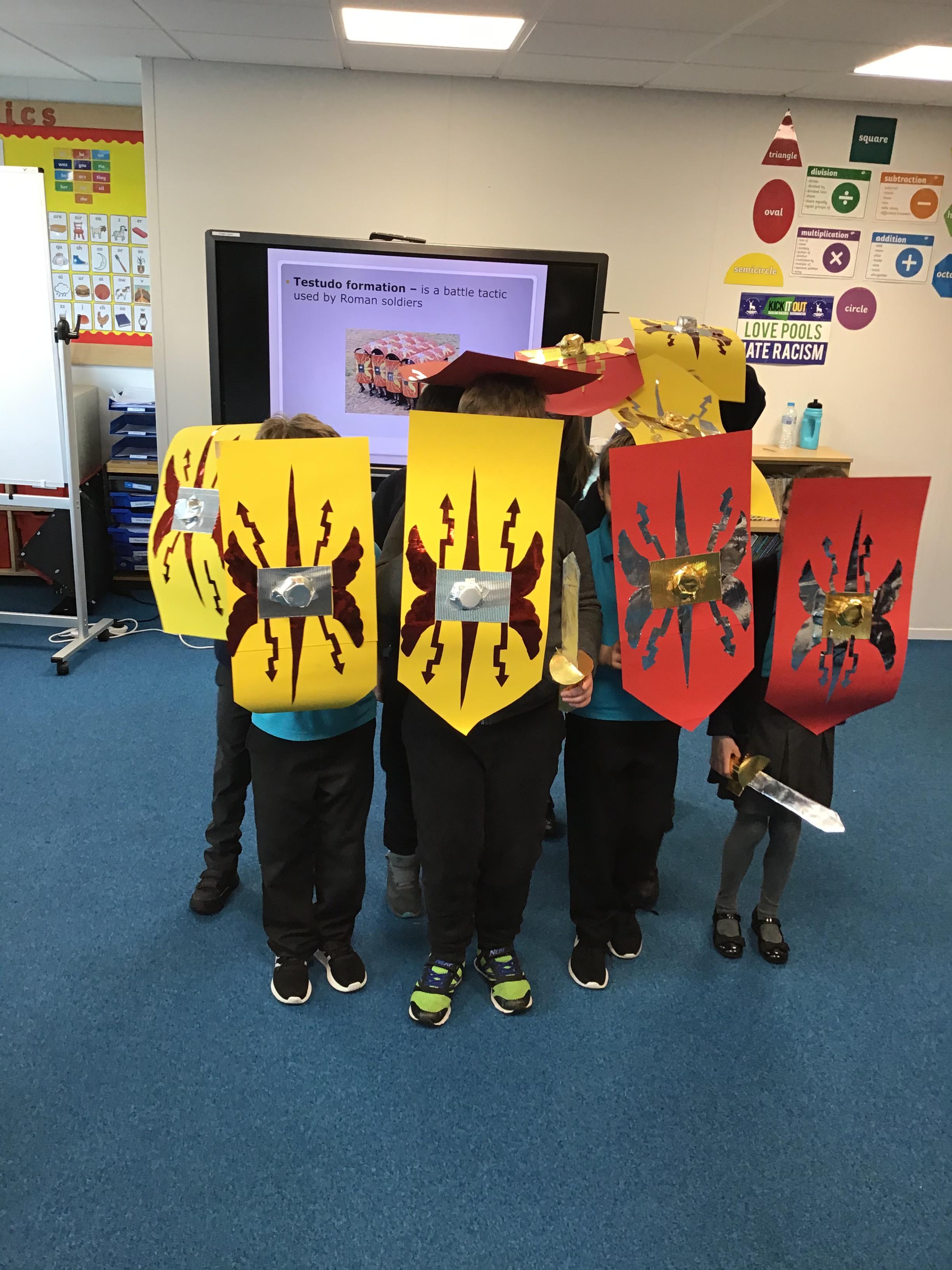 Dragon class have been learning about the Romans in History this term. This week we role played Roman battle tactics with our very own shields ands swords that we created last week.