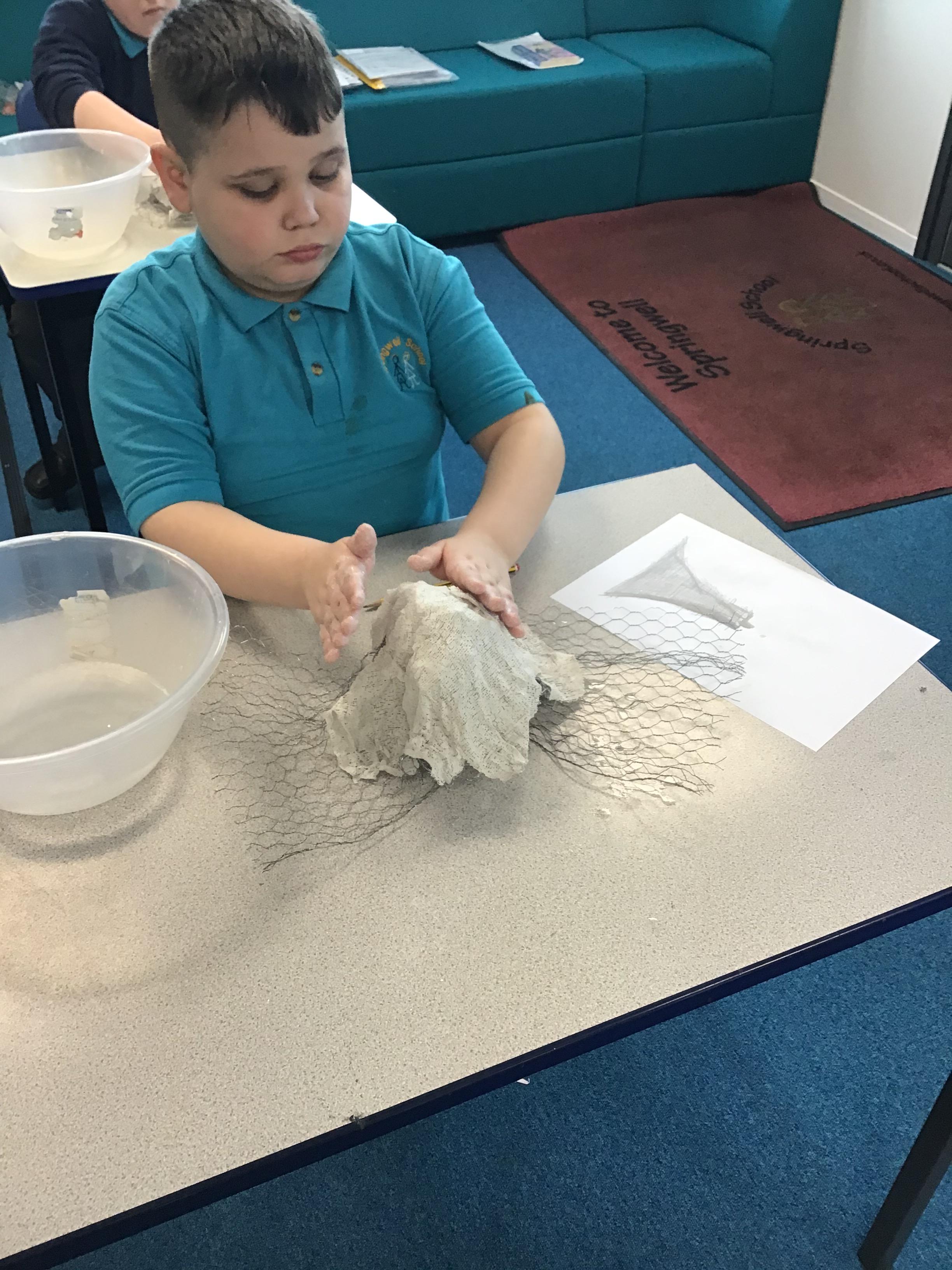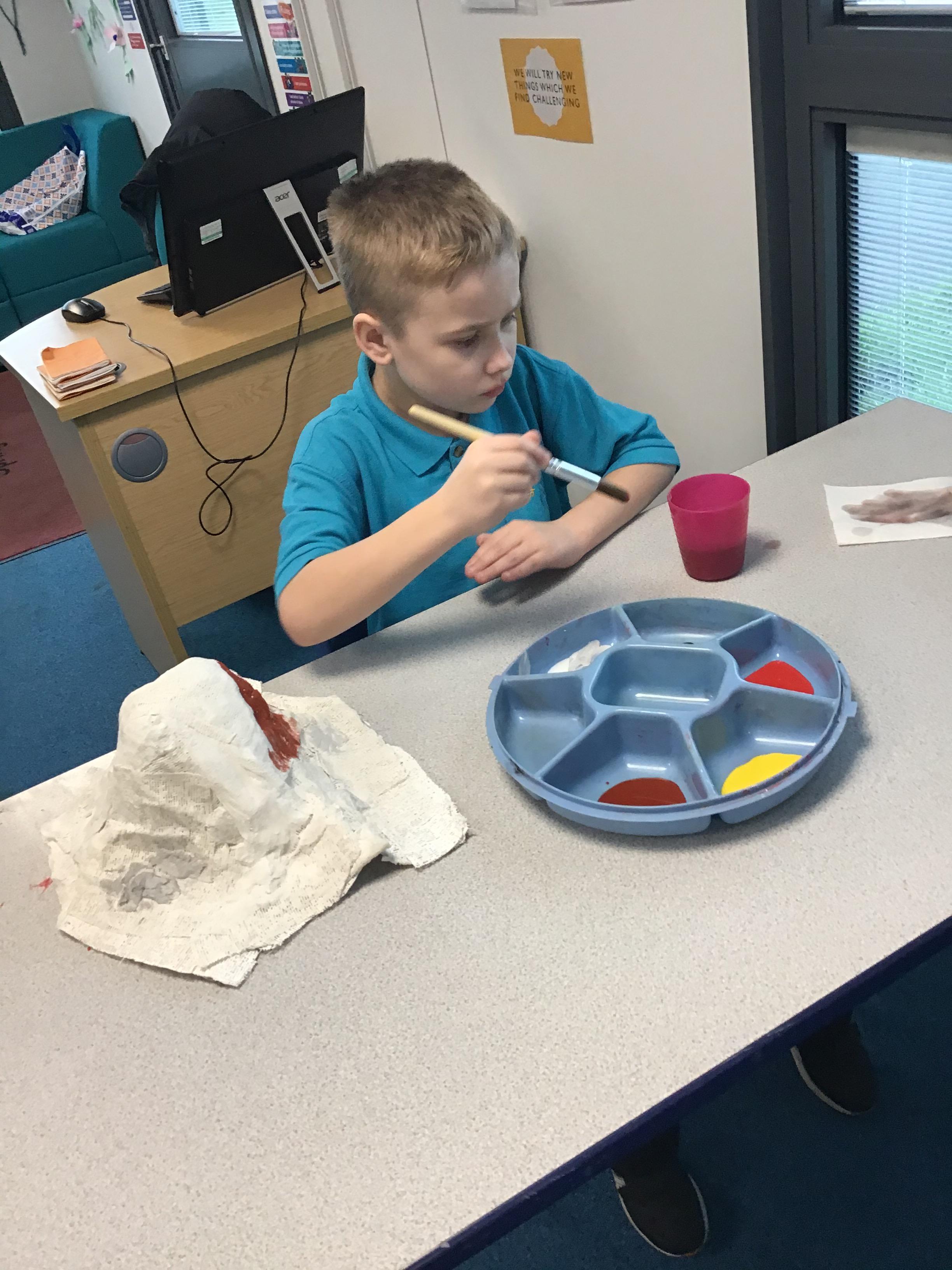 This week we have got creative in Art and made our own Volcano sculptures wit modroc.