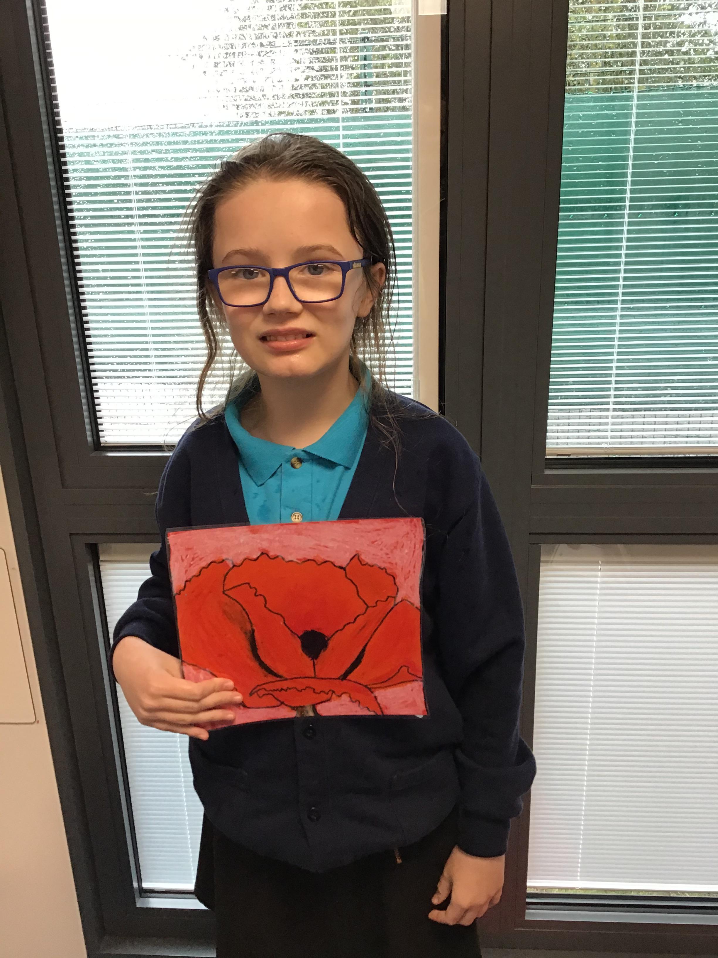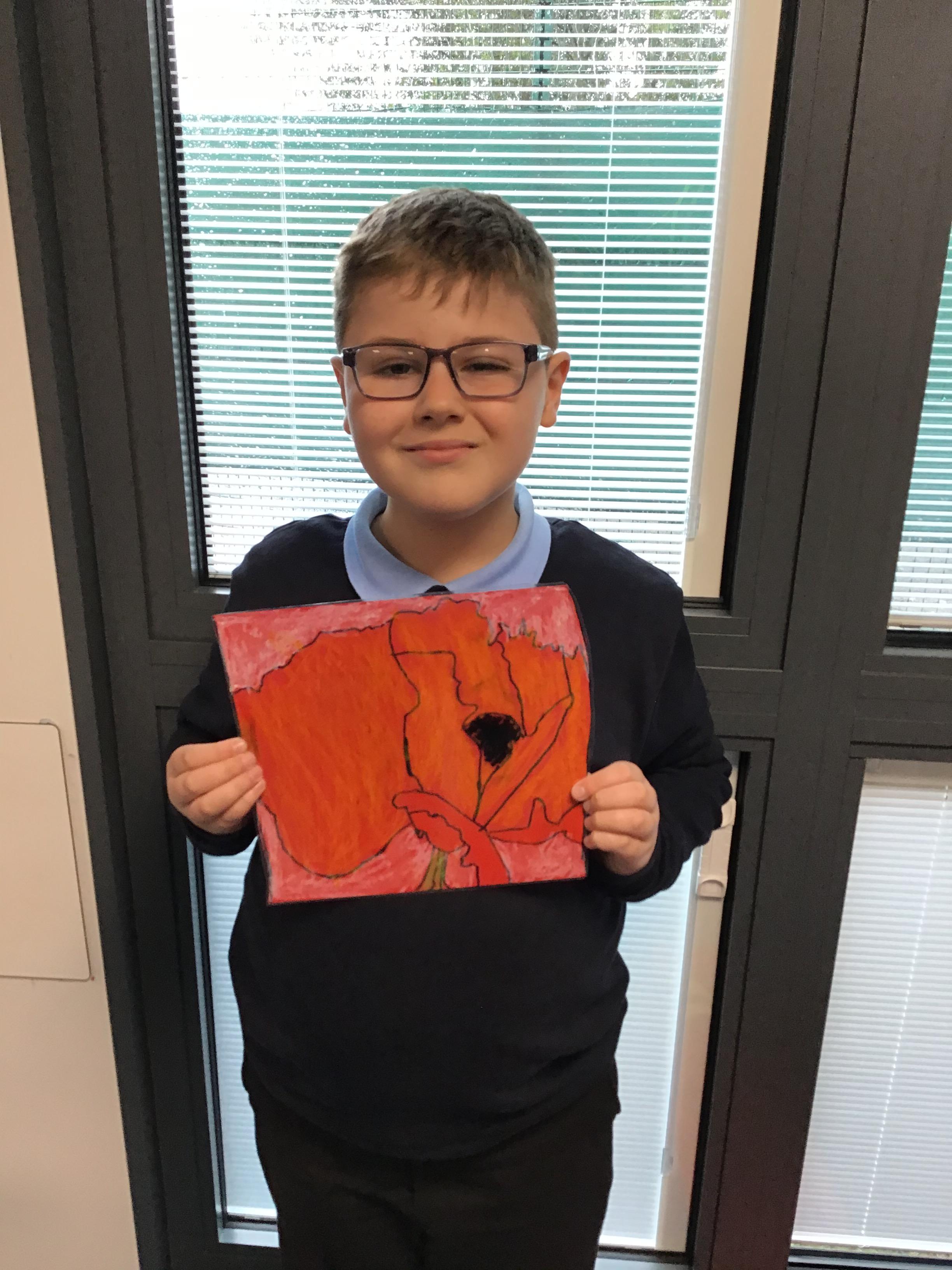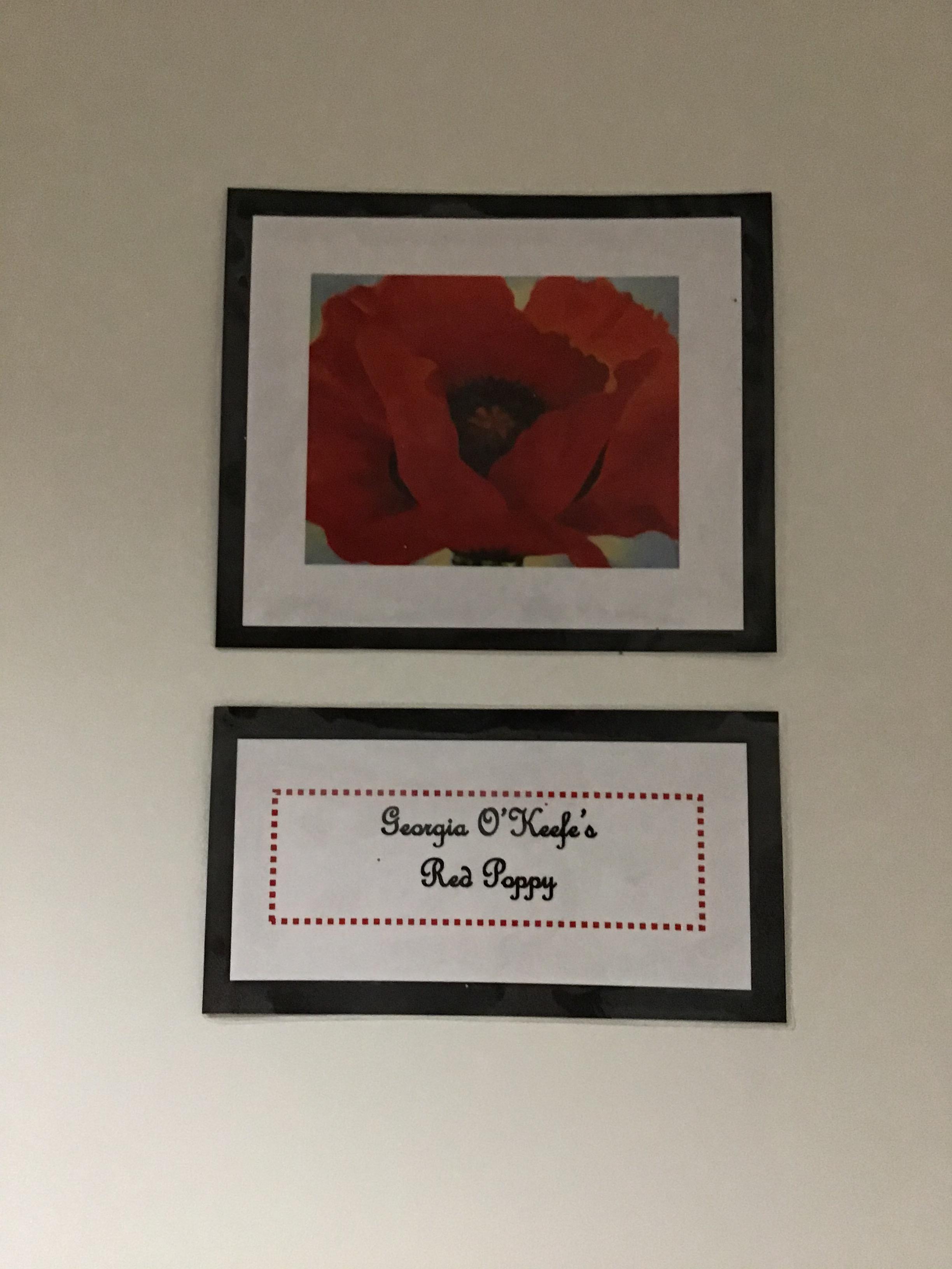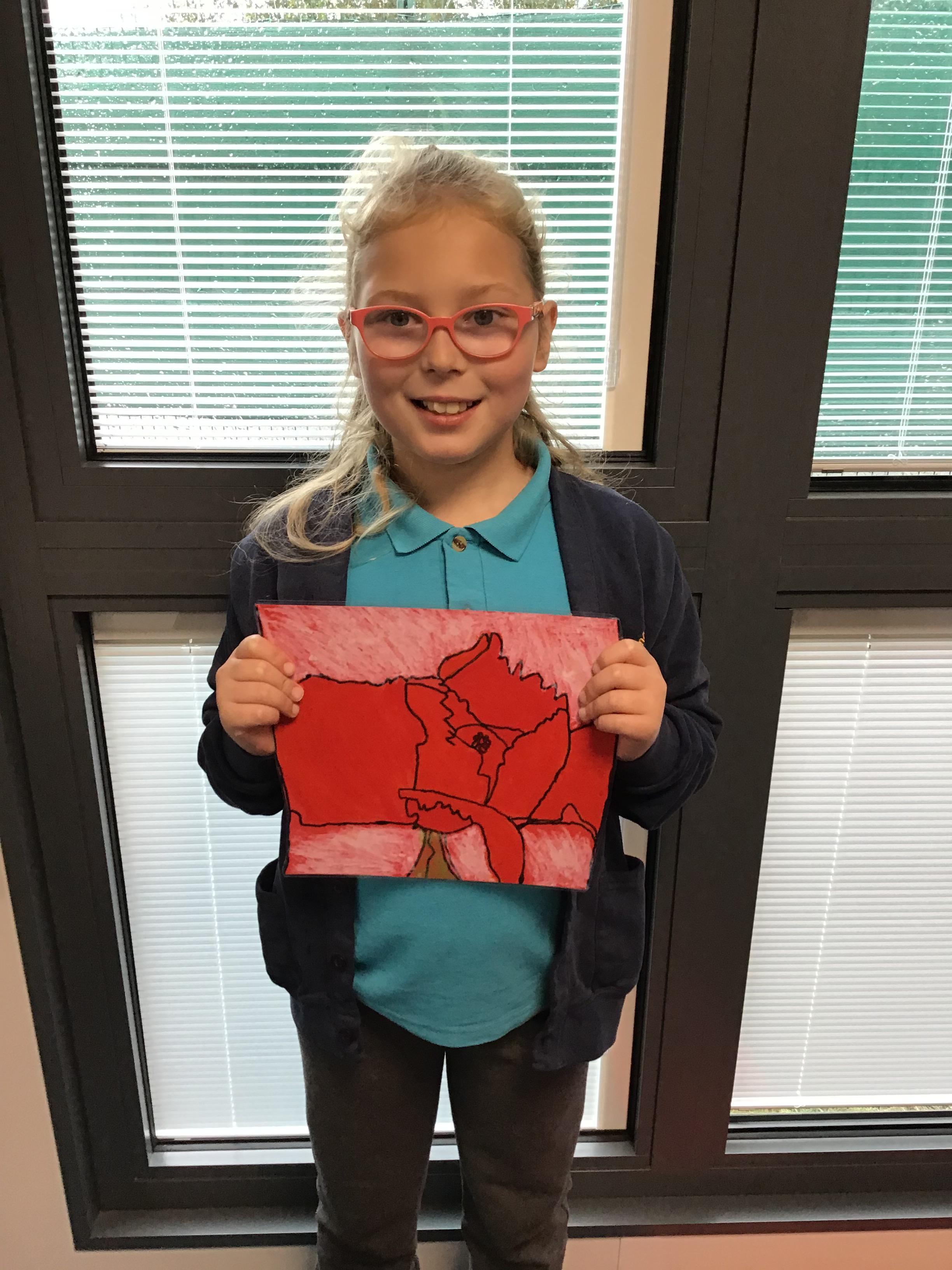 Art - In art we have been learning about the work of Georgia O'keefe. We drew our own red poppy picture and coloured it in with oil pastels.