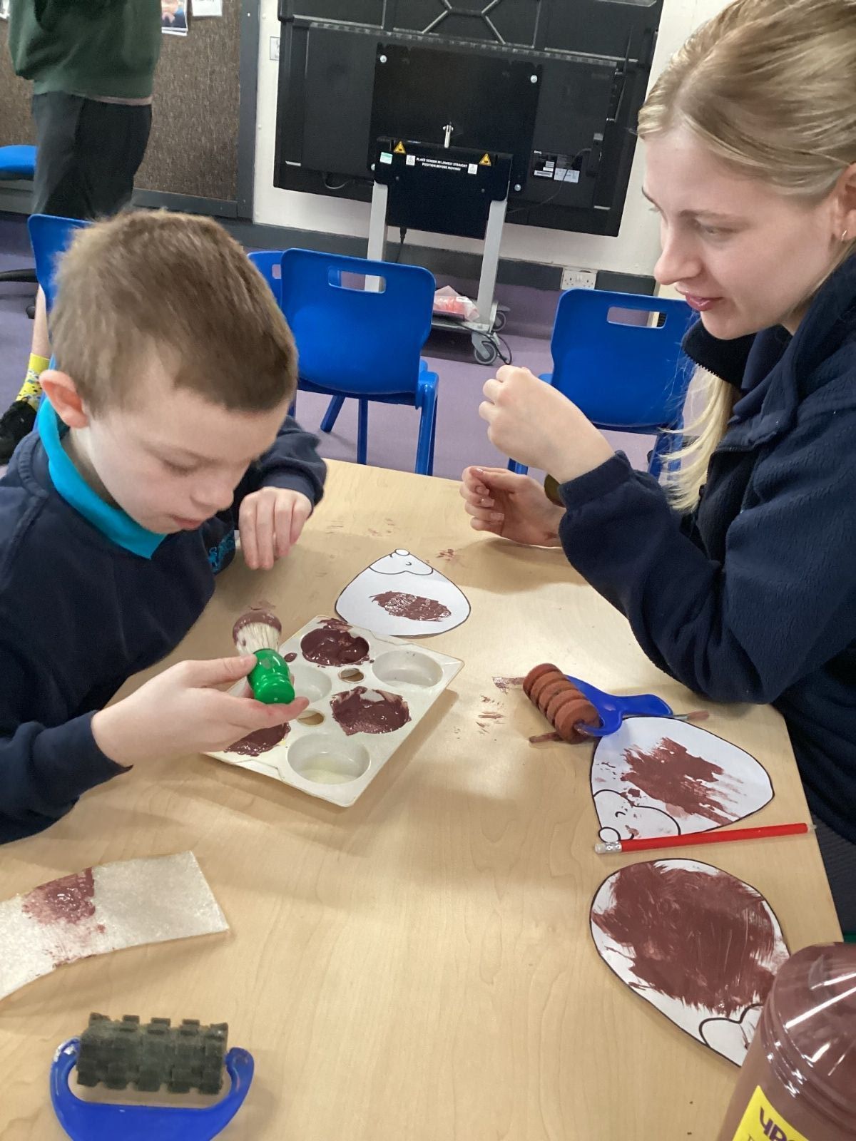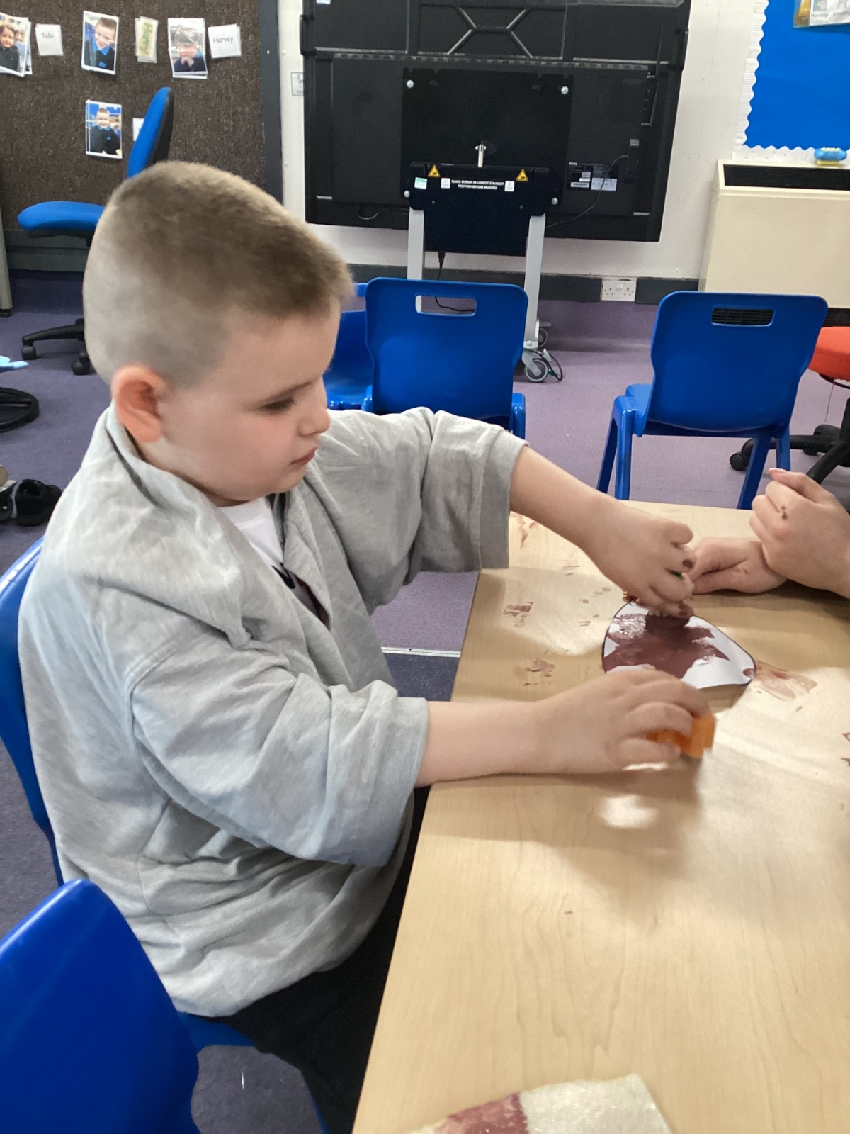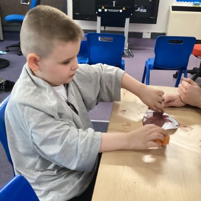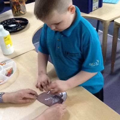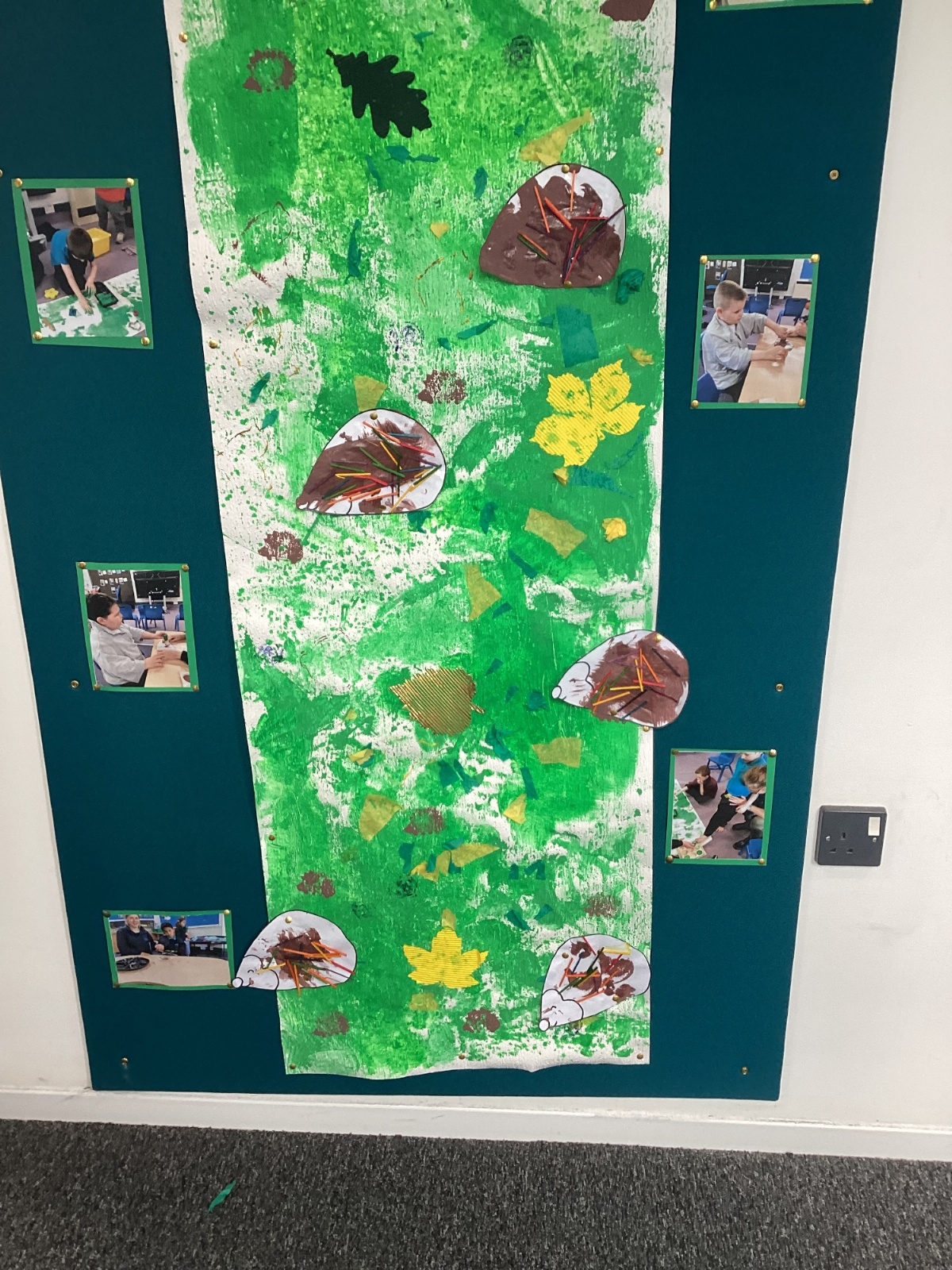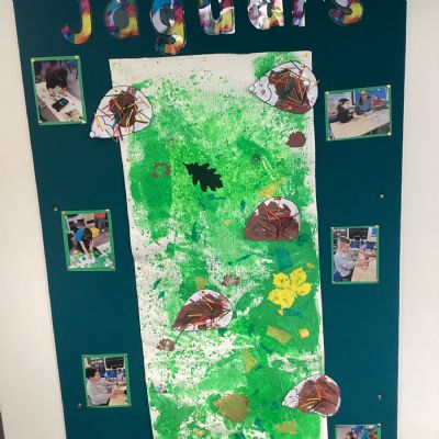 We really enjoyed painting hedgehogs and our hedge row. We painted the hedgehogs and then glued match sticks to the hedgehogs for their prickles.
