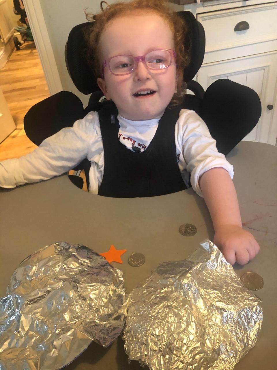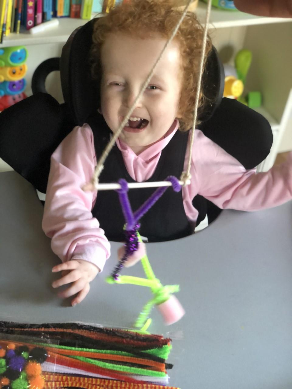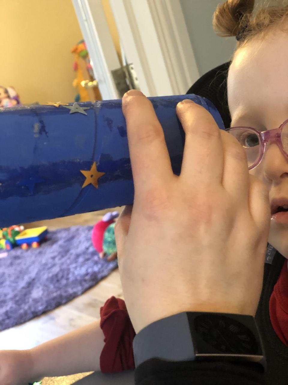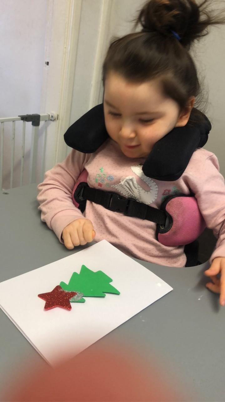 01.03.21 Eppy has enjoyed making a telescope and a rocket. I love your space helmet Eppy! She has made some delicious moon and star biscuits too. Eppy has also started to stand happily in her stander at home for longer periods of time. Well done Eppy!