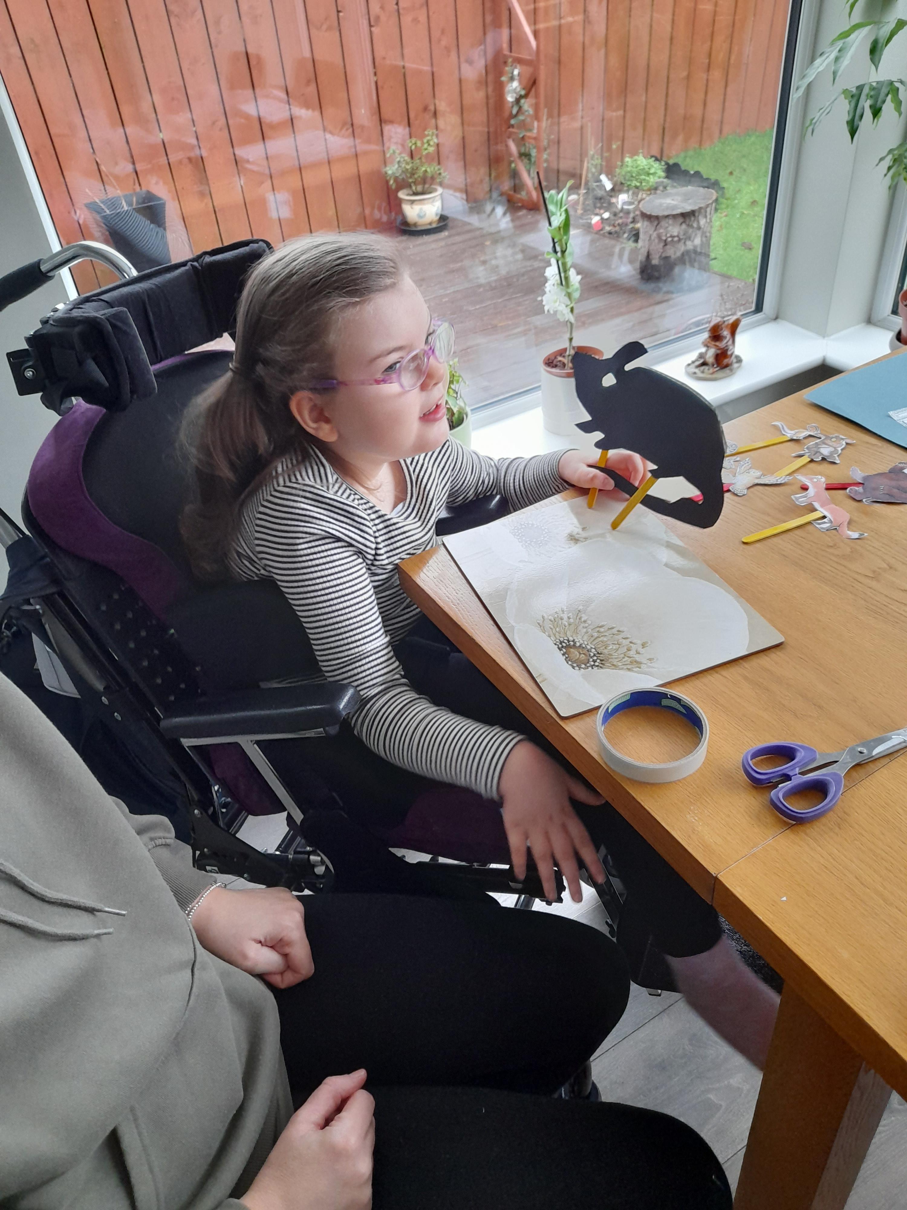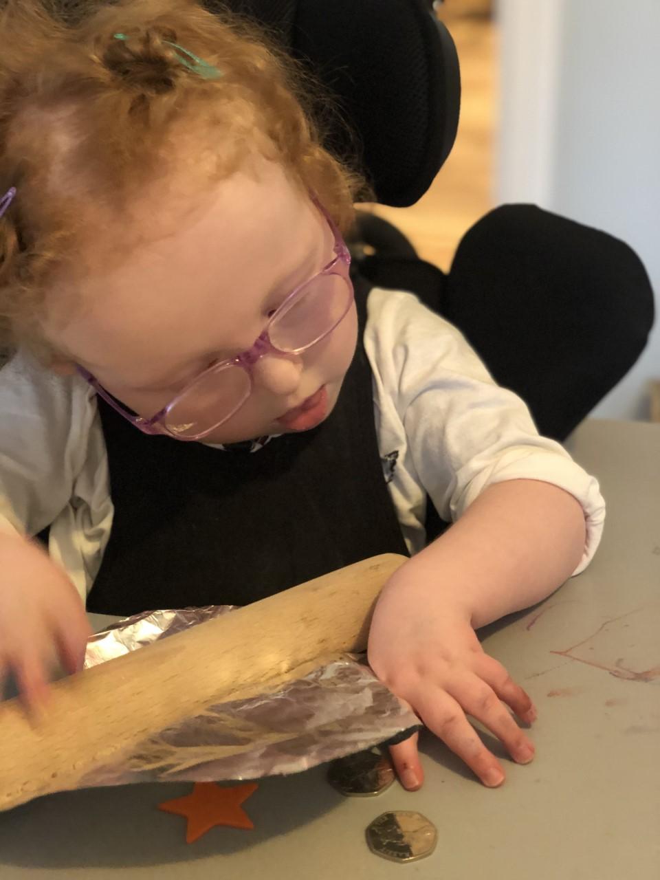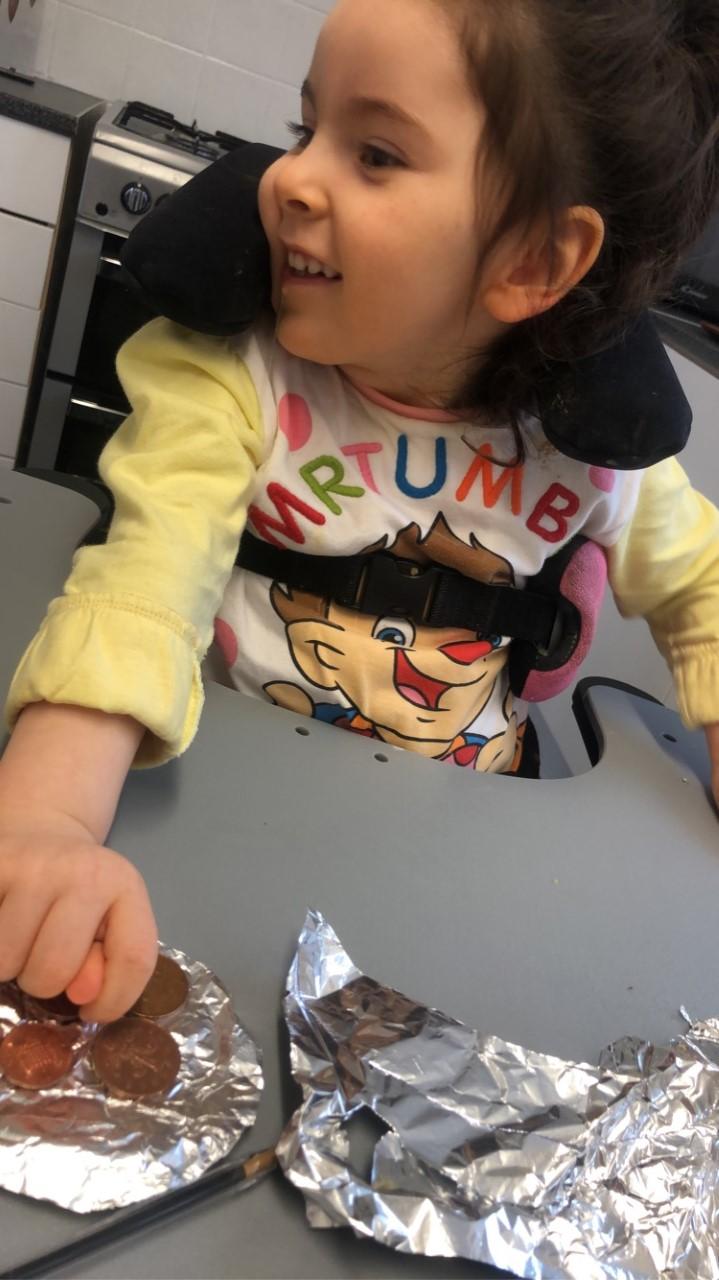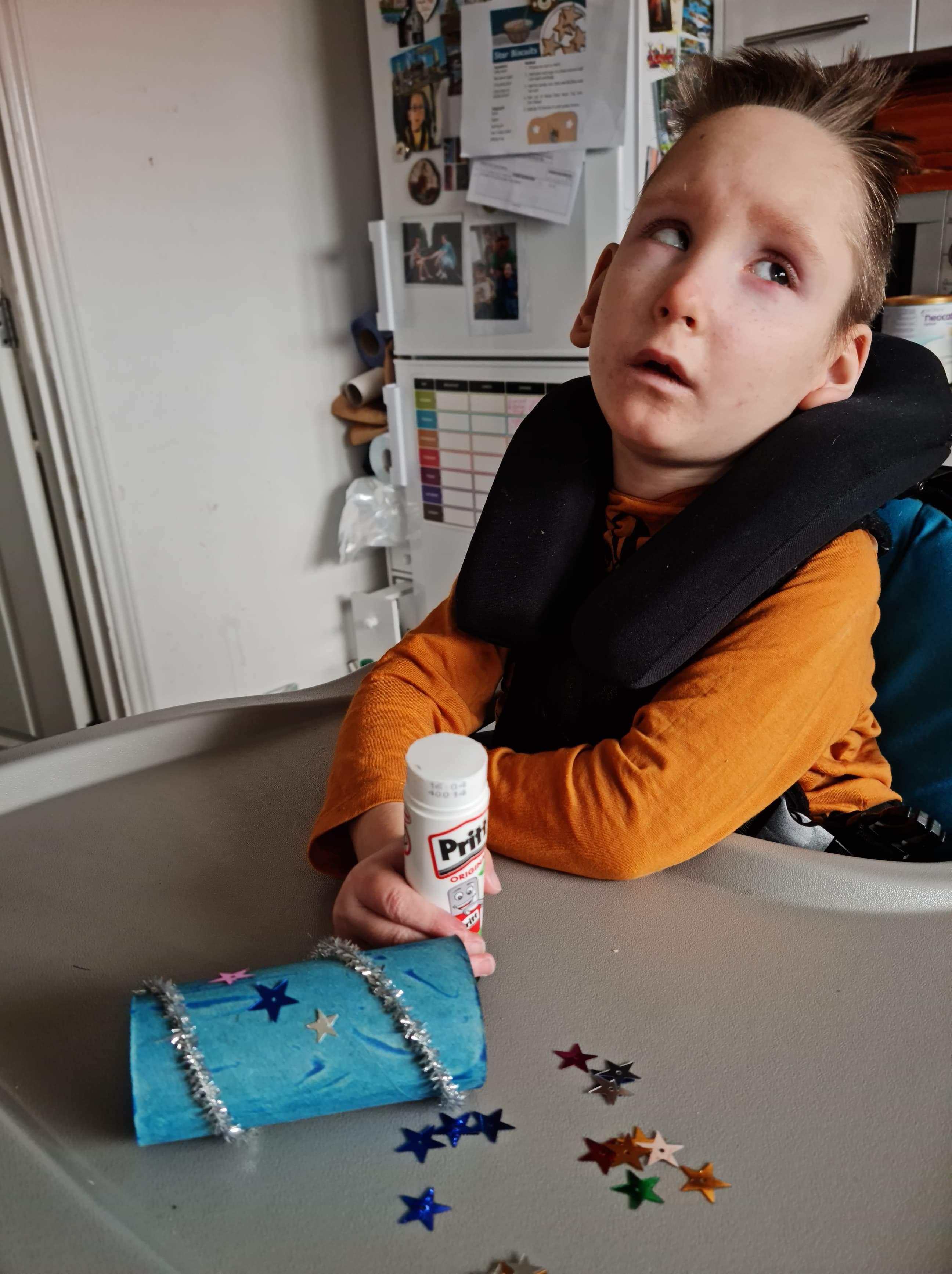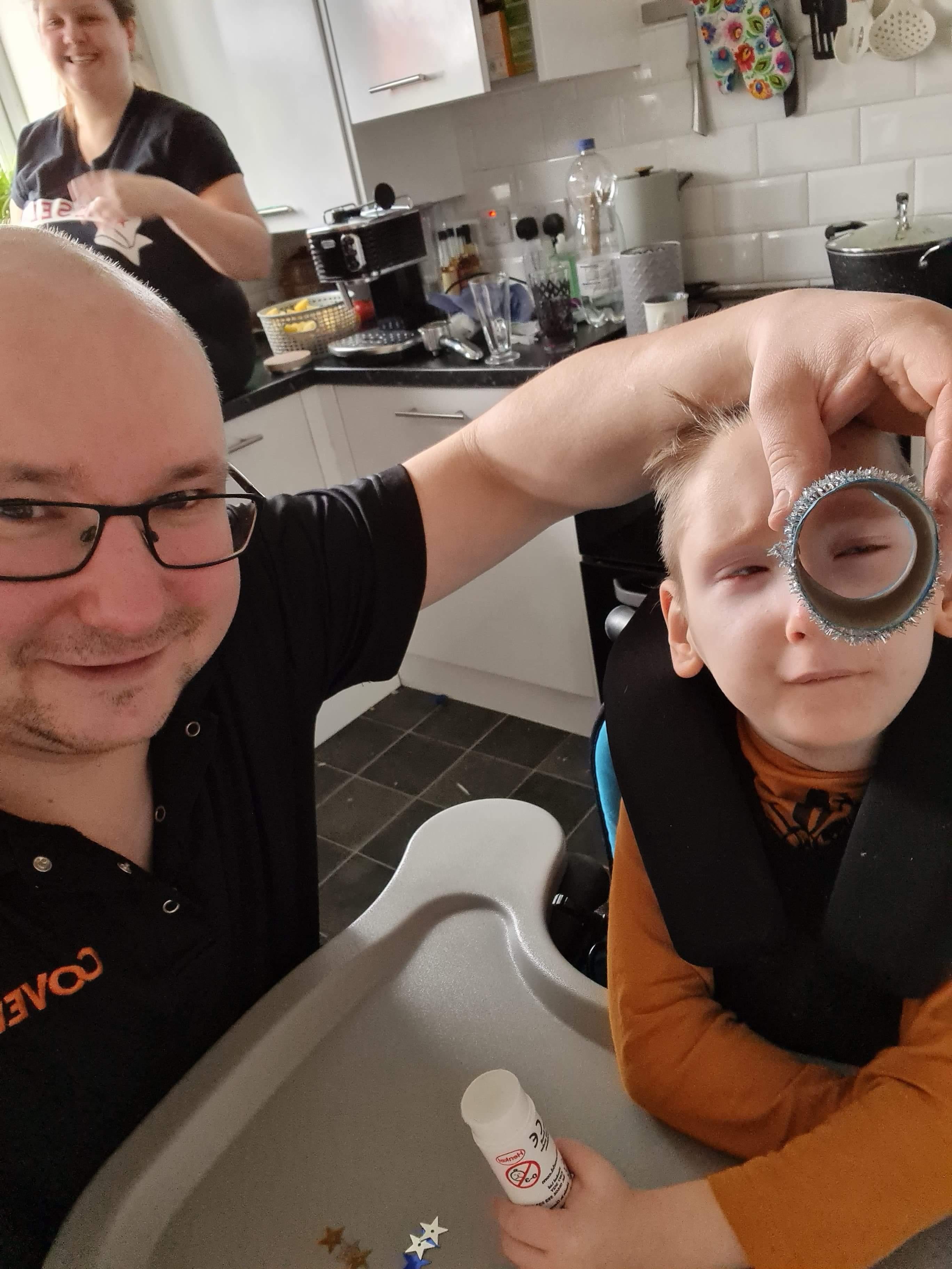 01.03.21 Eppy has enjoyed making a telescope and a rocket. I love your space helmet Eppy! She has made some delicious moon and star biscuits too. Eppy has also started to stand happily in her stander at home for longer periods of time. Well done Eppy!