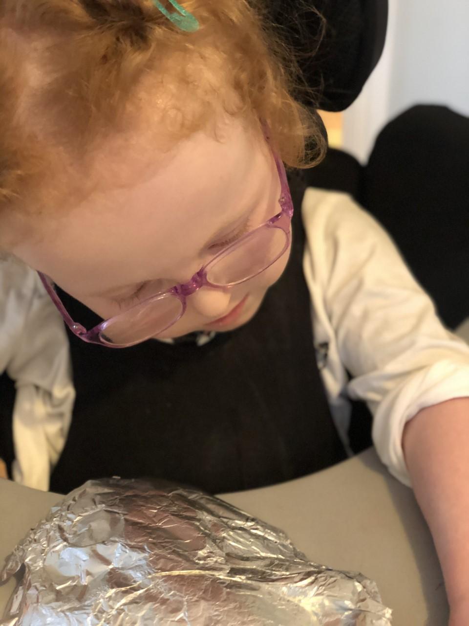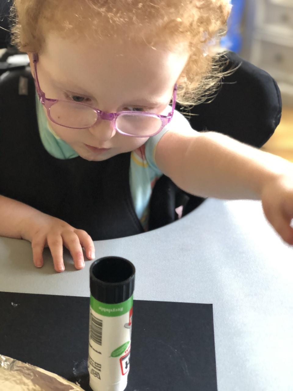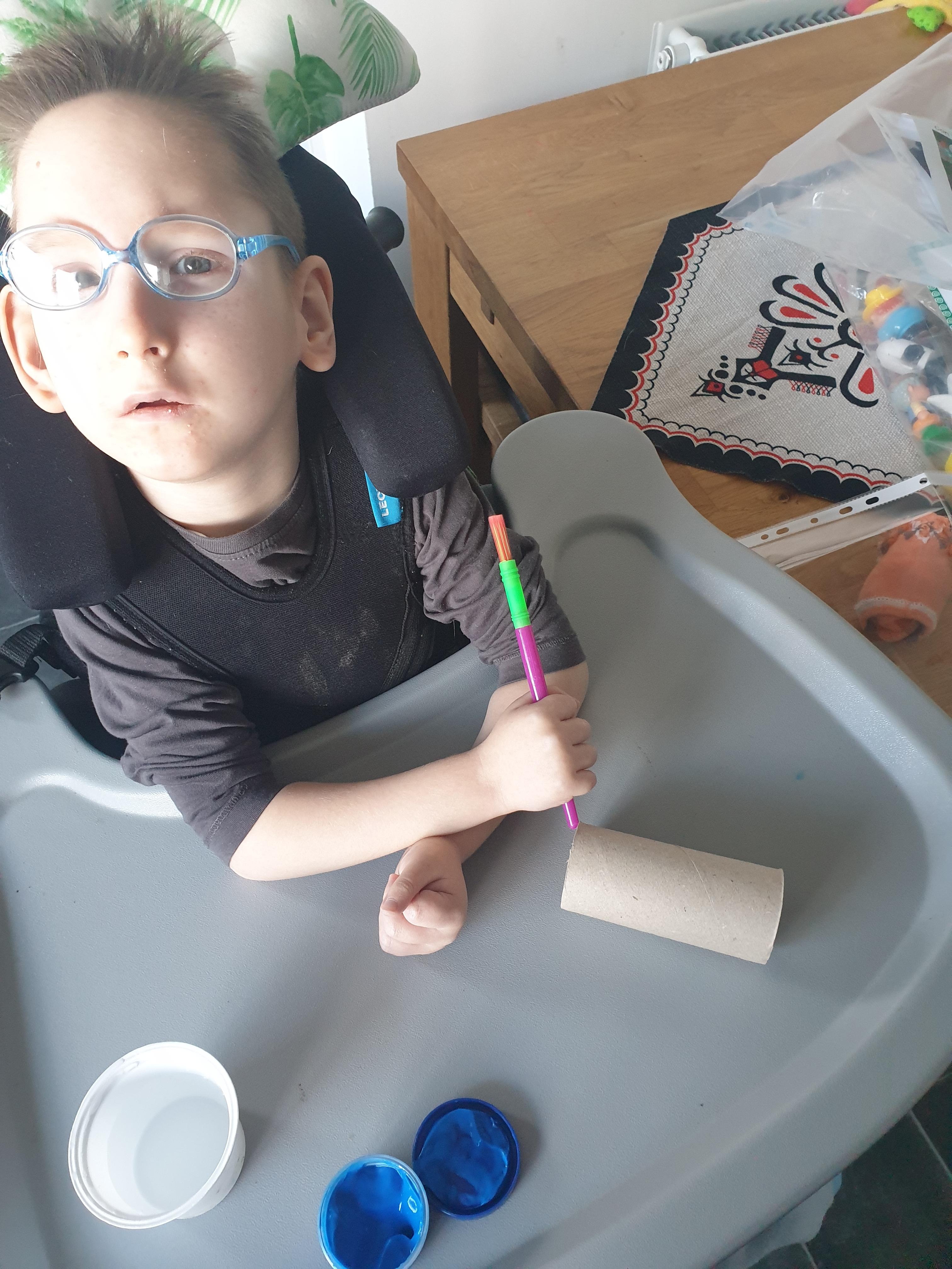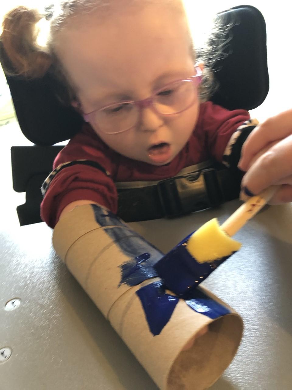 01.03.21 Eppy has enjoyed making a telescope and a rocket. I love your space helmet Eppy! She has made some delicious moon and star biscuits too. Eppy has also started to stand happily in her stander at home for longer periods of time. Well done Eppy!
