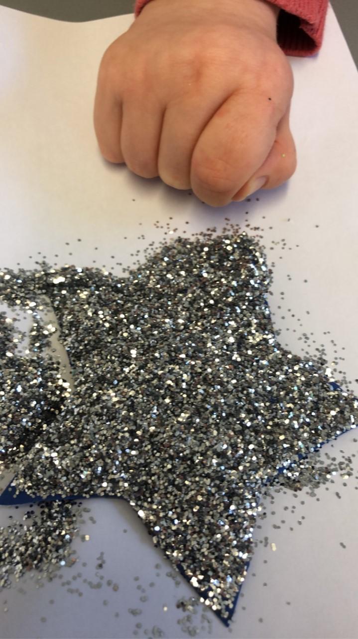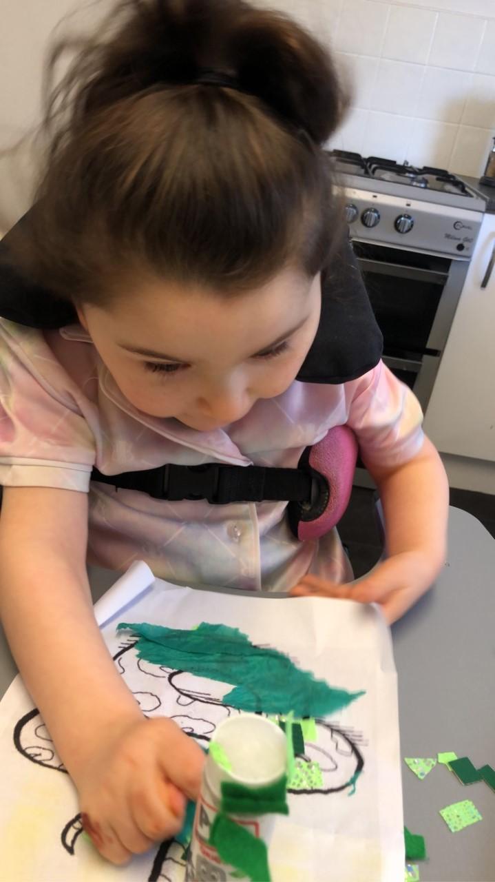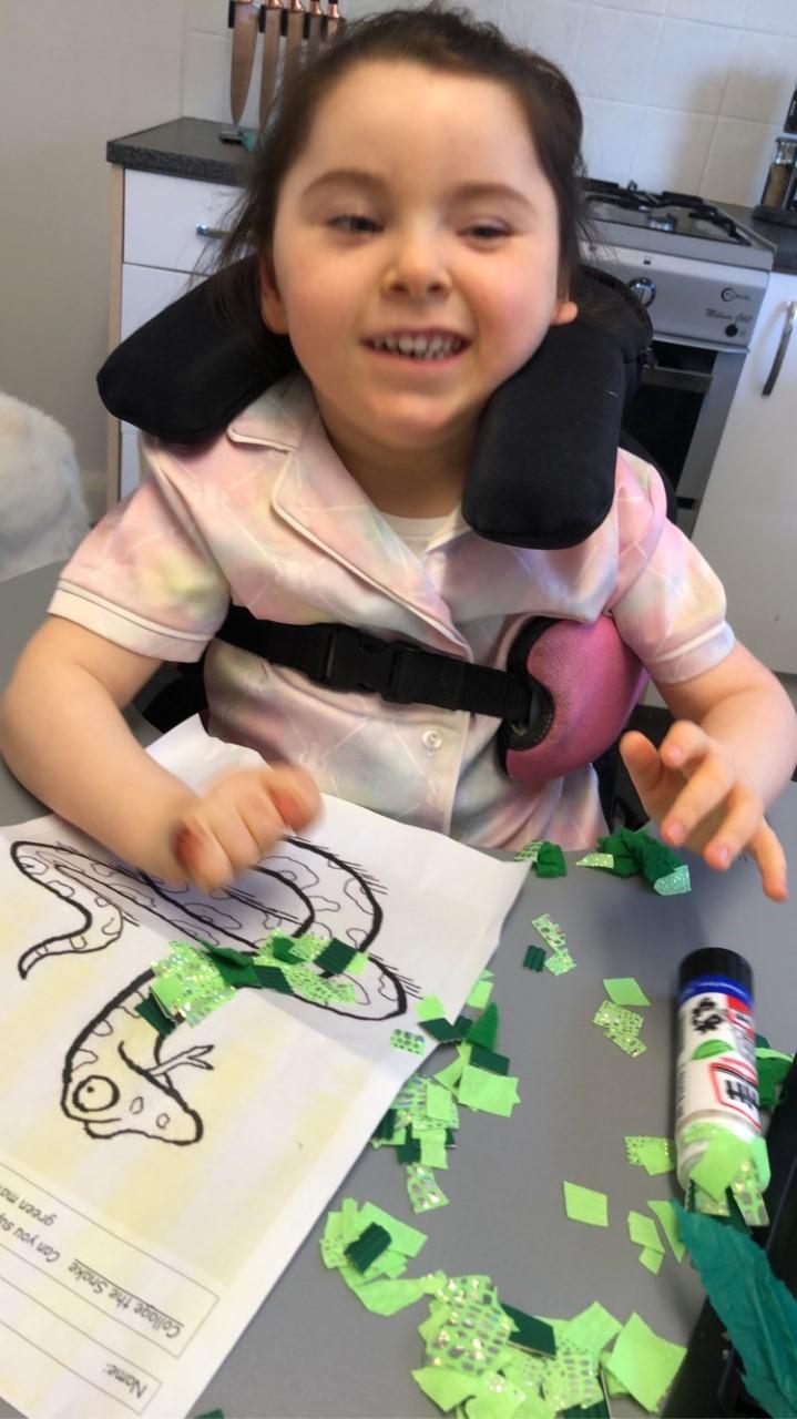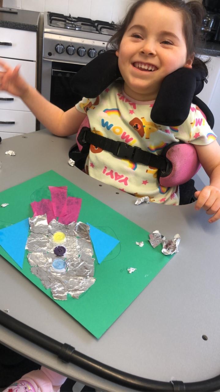 26.02.21 - Myla has completed her last tasks this morning. She's really enjoy getting messy with the glue and glitter. Her mam and her have been talking about her return to school and she's excited for bouncing on the trampoline on Monday!